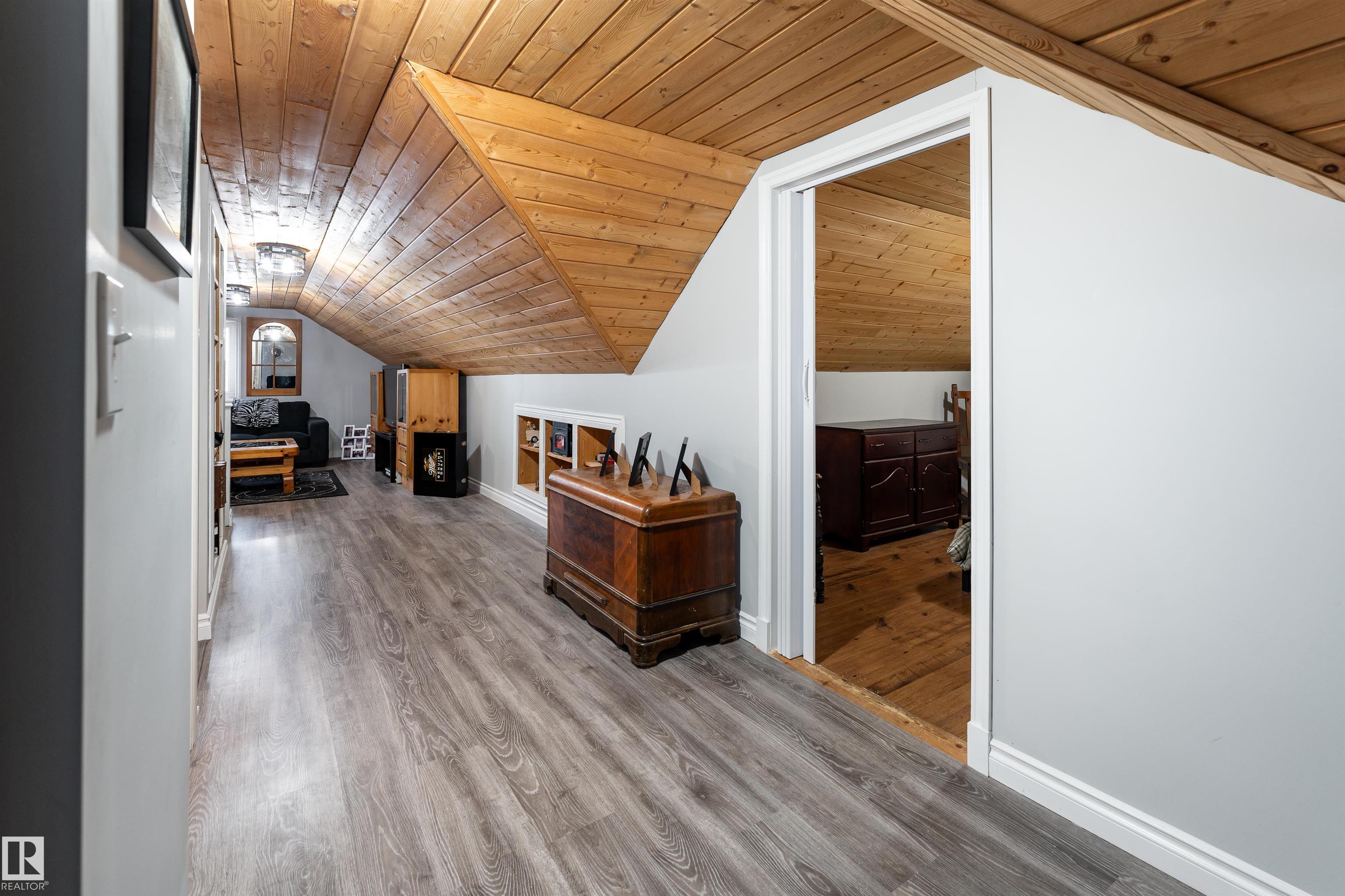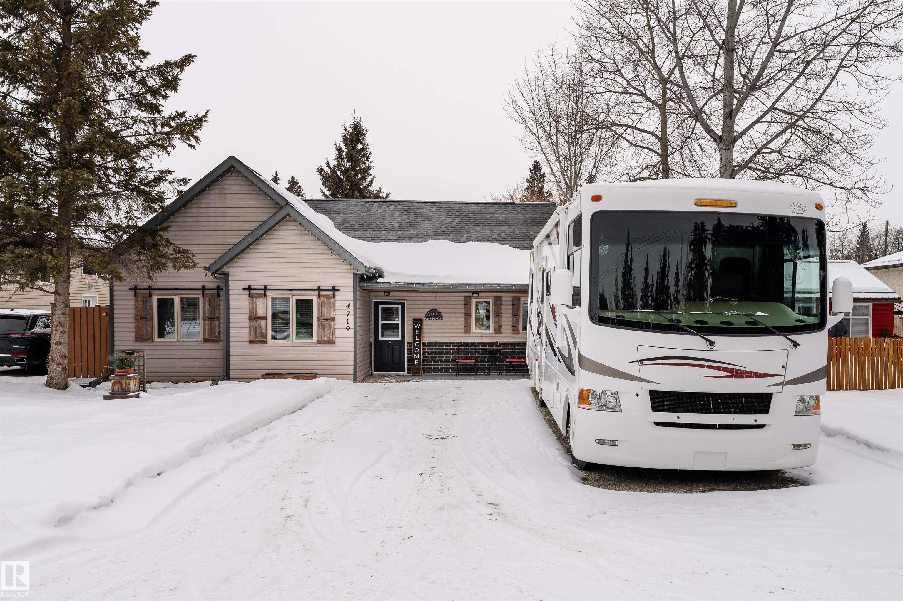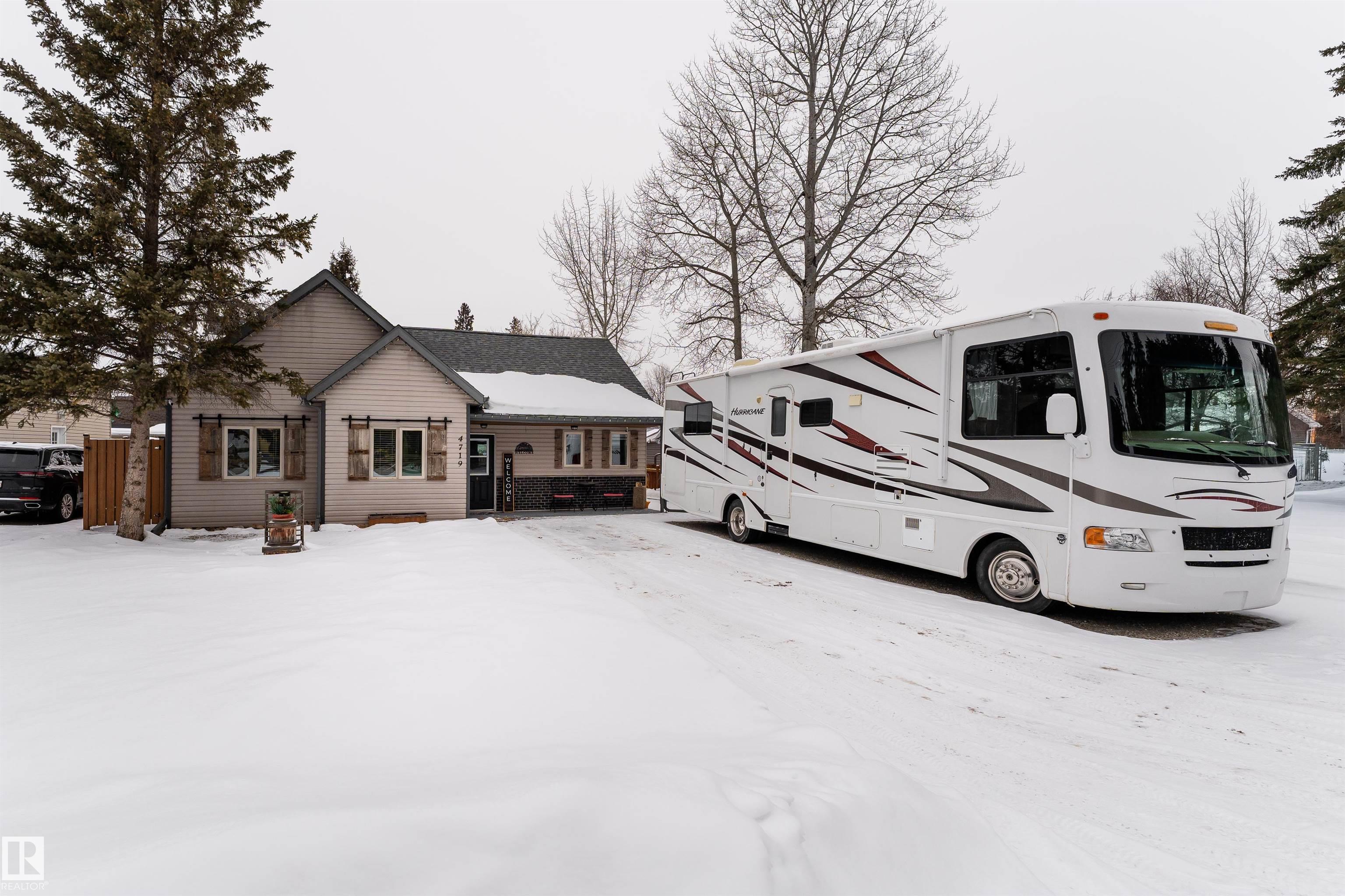 Lake life, space to grow, and small town charm come together in this inviting 1,653 sq ft home on a quiet street just blocks from the lake in Alberta Beach. The bright, open concept layout connects the kitchen, dining, and living areas, featuring rich wood ceilings, warm cabinetry, a cozy freestanding wood stove, and in-floor heating. The kitchen offers generous counter space and opens seamlessly to the dining area, ideal for everyday living and gatherings. With 3 bedrooms, 2.1 bathrooms, a spacious primary suite with walk-in closet and ensuite, plus an upper loft, this rustic-modern home is well suited for large or growing families. Outside, enjoy a fenced yard with deck and gazebo, in front is RV parking with plug-in (30 AMP) and double parking beside, plus a double detached insulated garage with loft storage and workshop area. Recent updates include a 2014 combi-boiler and new water treatment system. All within walking distance to local shops, restaurants, the library, museum and main beach.