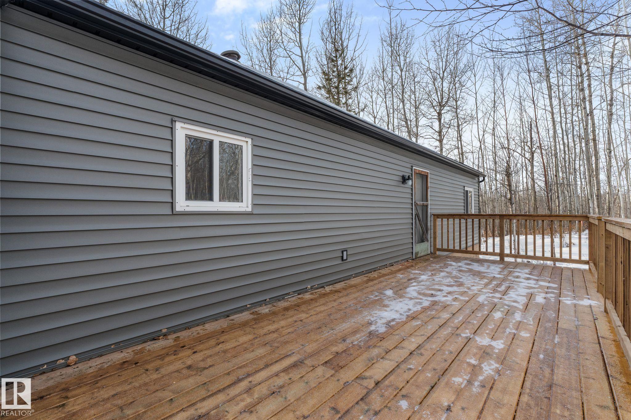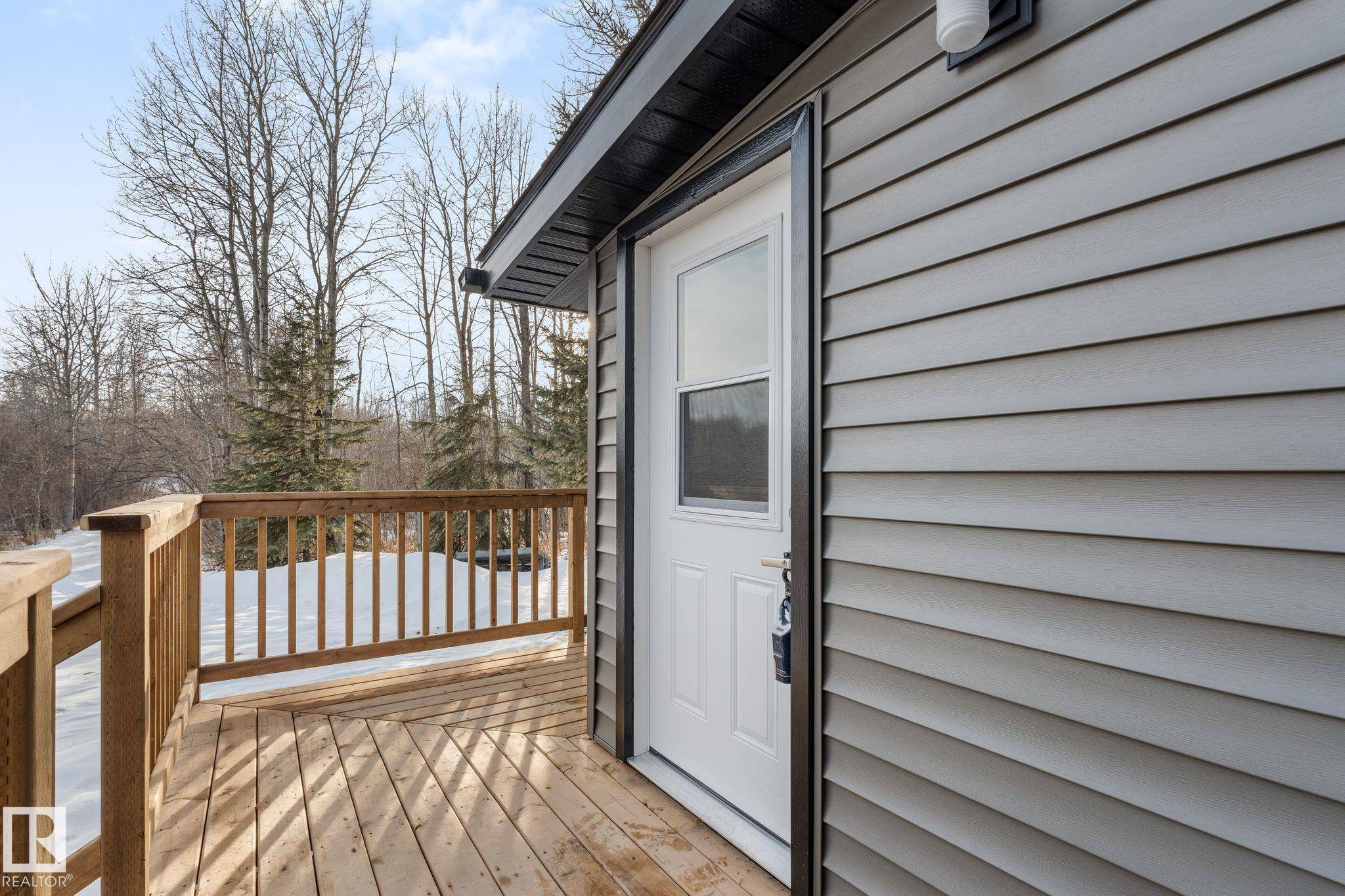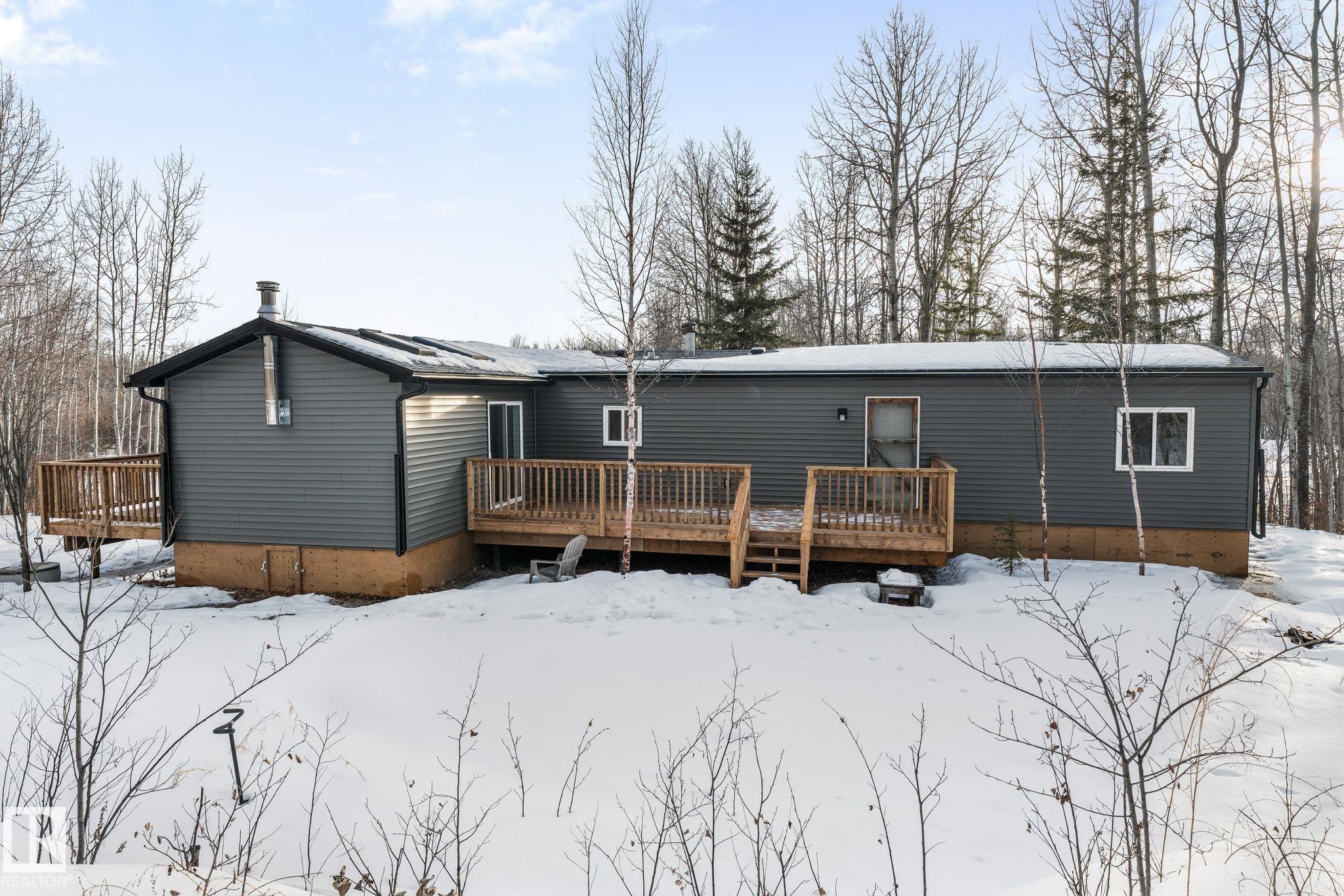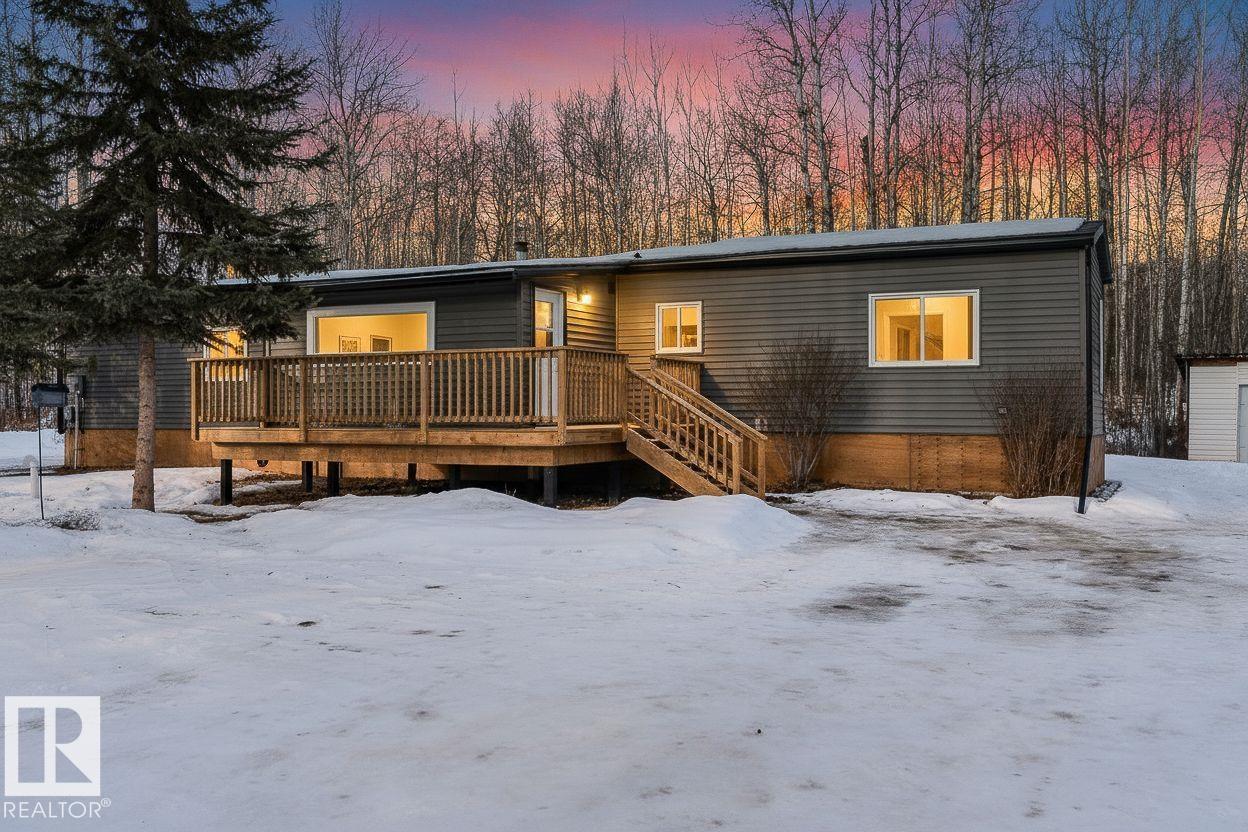 Set on 3.46 peaceful acres, this beautifully updated home offers the perfect blend of country space and lake-area convenience, just 5 minutes from Alberta Beach in Lac Ste. Anne County. Inside, the home features 3 bedrooms and a 4-piece bathroom, with a thoughtfully refreshed interior completed in 2025. The new kitchen, flooring, and fresh paint create a bright, modern feel while still maintaining the cozy charm of acreage living. A wood-burning stove anchors the living space, adding warmth and character for those cooler Alberta evenings. Outside, enjoy your surroundings from the large new front and back decks, ideal for morning coffee, entertaining, or simply taking in the quiet. Major exterior upgrades--including new shingles, soffits, eaves, and siding (all completed in 2025)--provide peace of mind and long-term value.This acreage offers space, privacy, and the convenience of lake living--all just minutes from Alberta Beach.