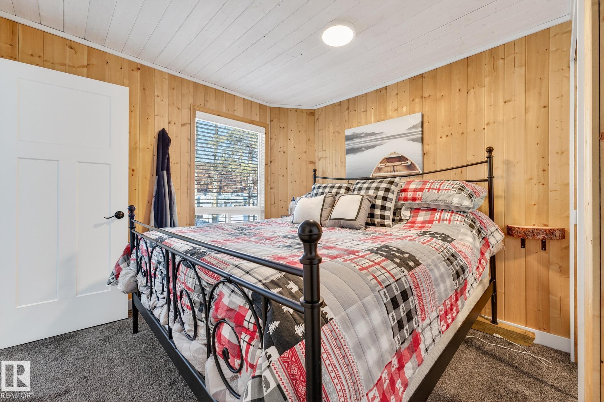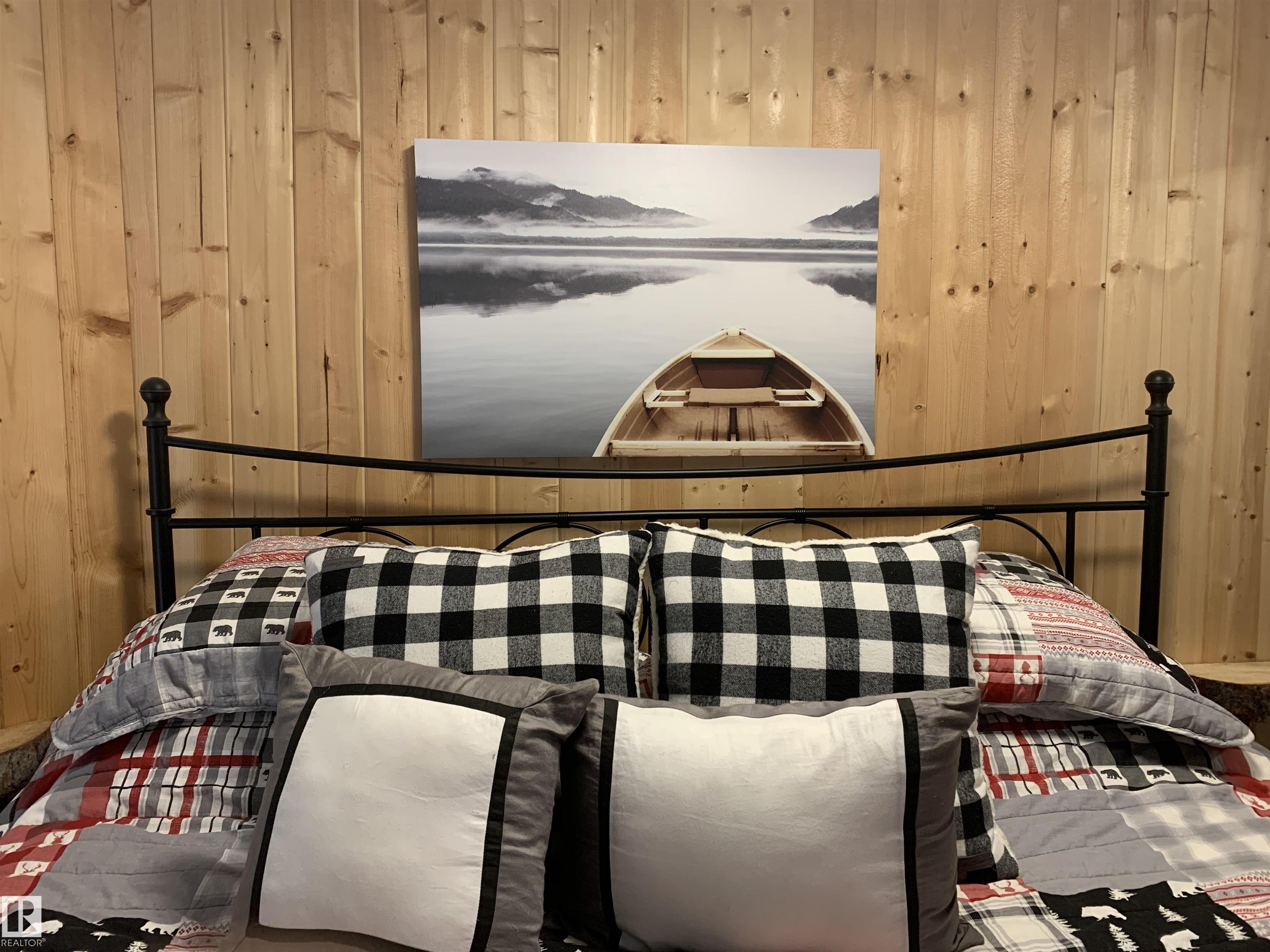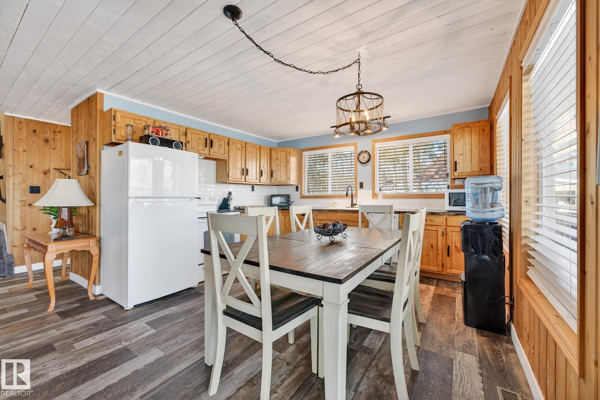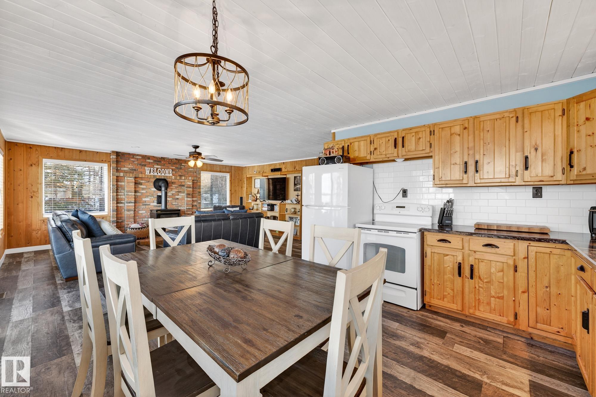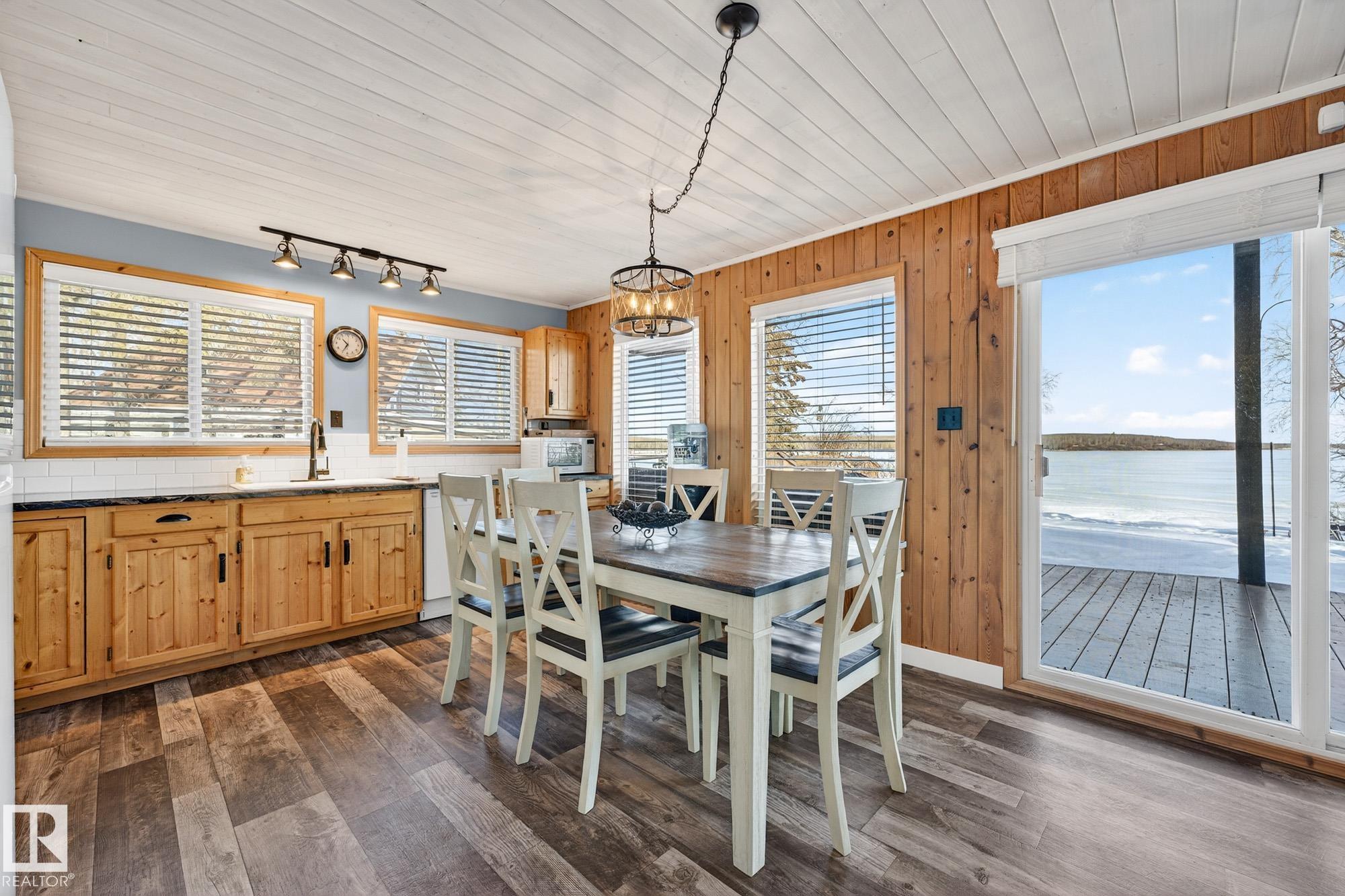 Ideal location an hour west of Edmonton and 20 mins south of Barrhead. Welcome to this immaculate and cozy four-season LAKEFRONT retreat, perfectly set on 0.27 acres and bordering environmental reserve land for added privacy and natural beauty. This thoughtfully updated property offers 3 bedrooms with closets and 2 full baths, with a major renovation completed in 2018 including all flooring, doors, casing, bathrooms, and a stunning kitchen. Natural light pours in through abundant windows, creating a bright and welcoming interior. A cozy woodstove with brick surround adds charm and comfort for year-round enjoyment. Step outside to a huge covered deck overlooking a large, flat front yard with a fire pit area--ideal for entertaining or relaxing lakeside. Gorgeous perennial beds and mature landscaping enhance the setting, all fully fenced with black chain-link. Three large storage sheds are included, one cleverly converted into a sleep shack with window and durable vinyl plank flooring. Priced to sell!