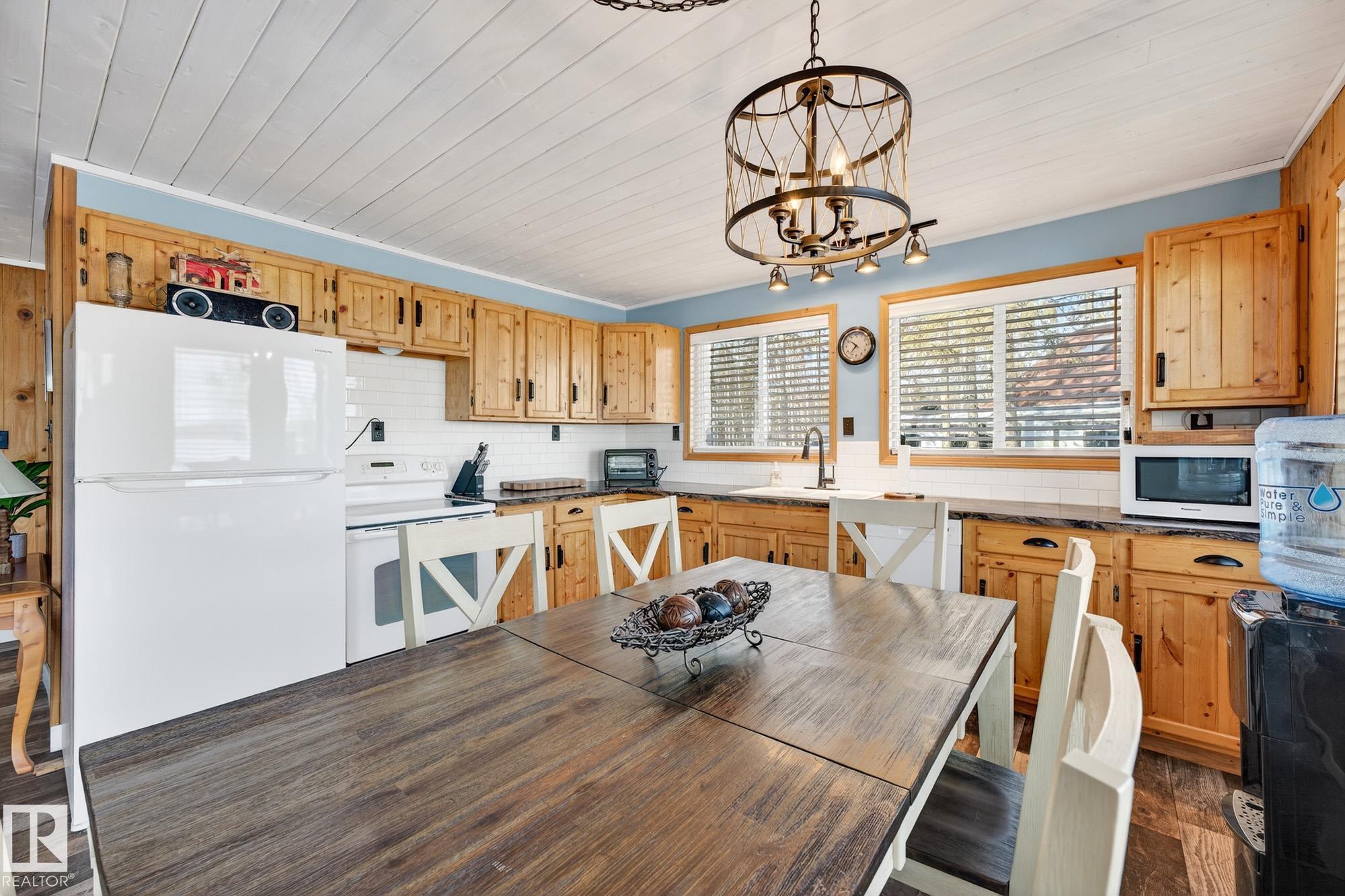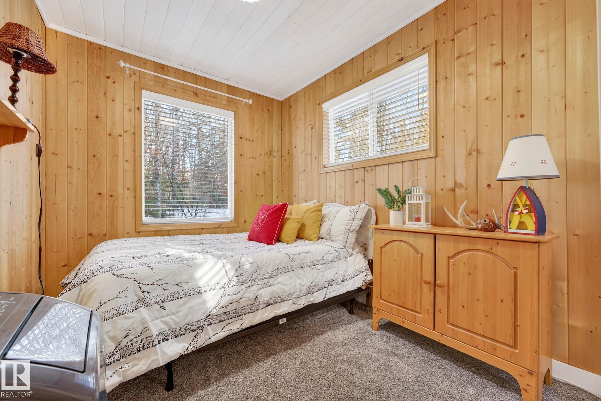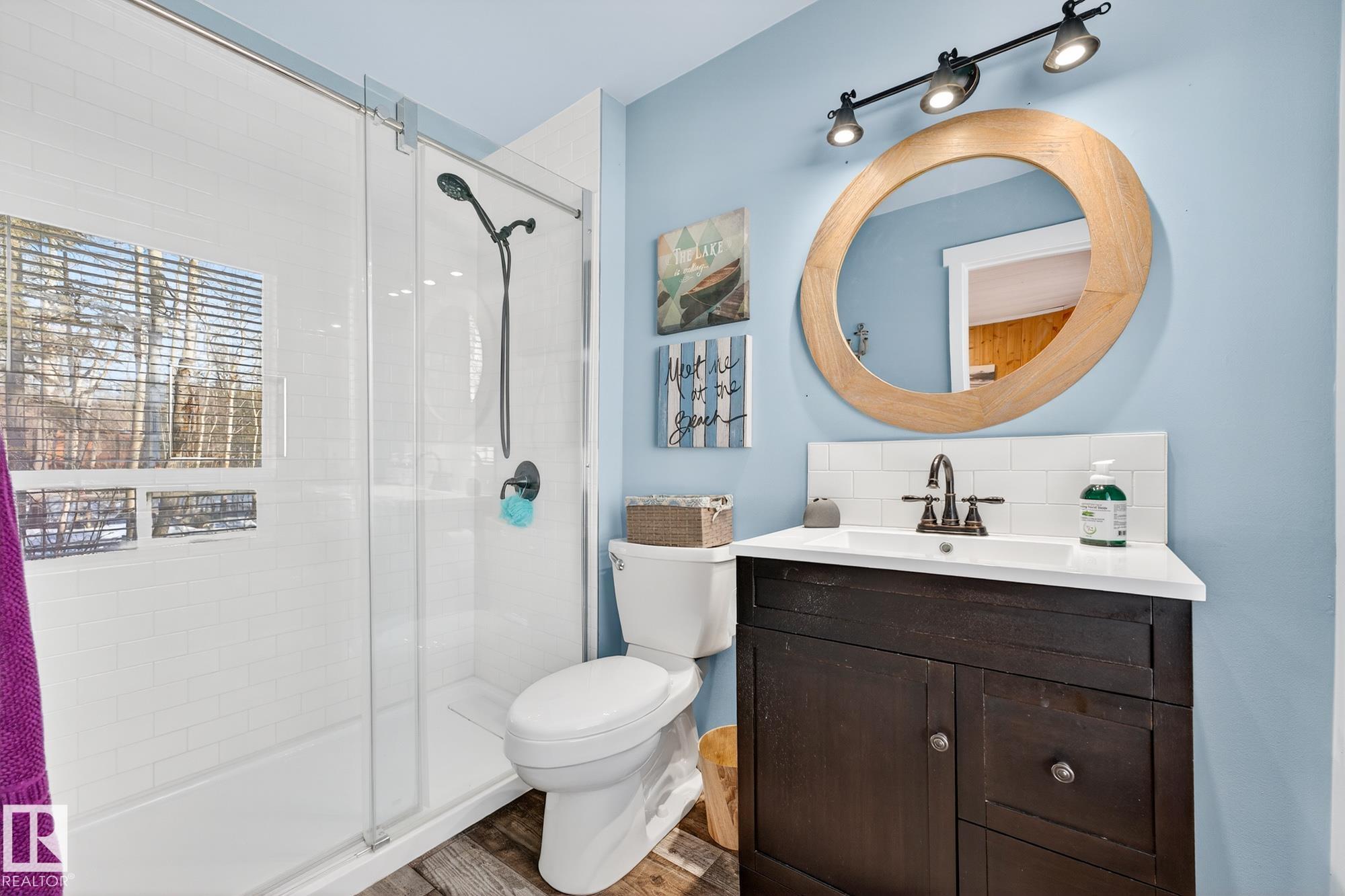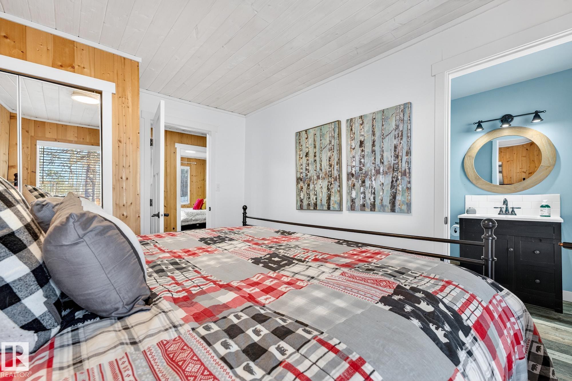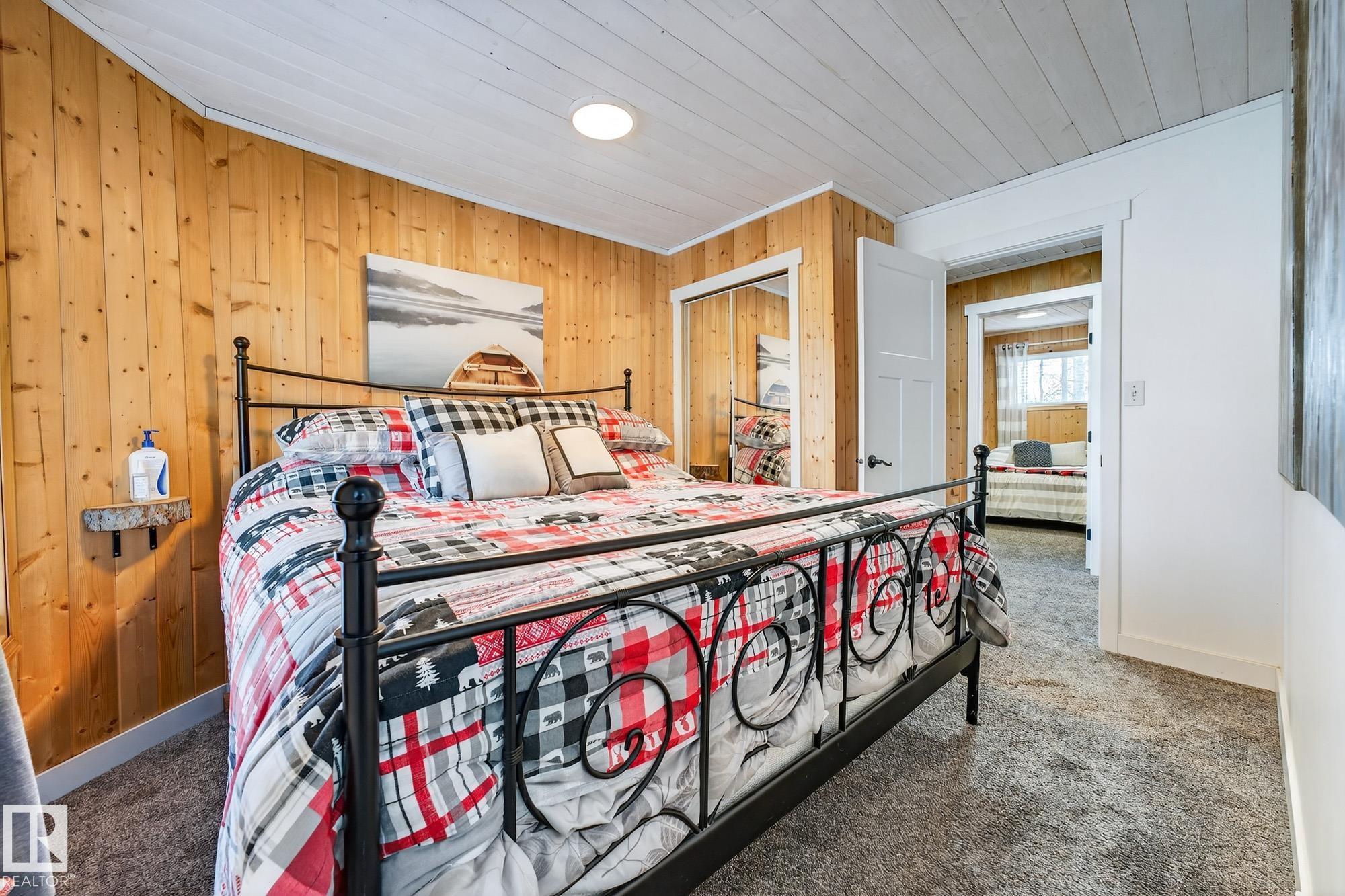 Ideal location an hour west of Edmonton and 20 mins south of Barrhead. Welcome to this immaculate and cozy four-season LAKEFRONT retreat, perfectly set on 0.27 acres and bordering environmental reserve land for added privacy and natural beauty. This thoughtfully updated property offers 3 bedrooms with closets and 2 full baths, with a major renovation completed in 2018 including all flooring, doors, casing, bathrooms, and a stunning kitchen. Natural light pours in through abundant windows, creating a bright and welcoming interior. A cozy woodstove with brick surround adds charm and comfort for year-round enjoyment. Step outside to a huge covered deck overlooking a large, flat front yard with a fire pit area--ideal for entertaining or relaxing lakeside. Gorgeous perennial beds and mature landscaping enhance the setting, all fully fenced with black chain-link. Three large storage sheds are included, one cleverly converted into a sleep shack with window and durable vinyl plank flooring. Priced to sell!