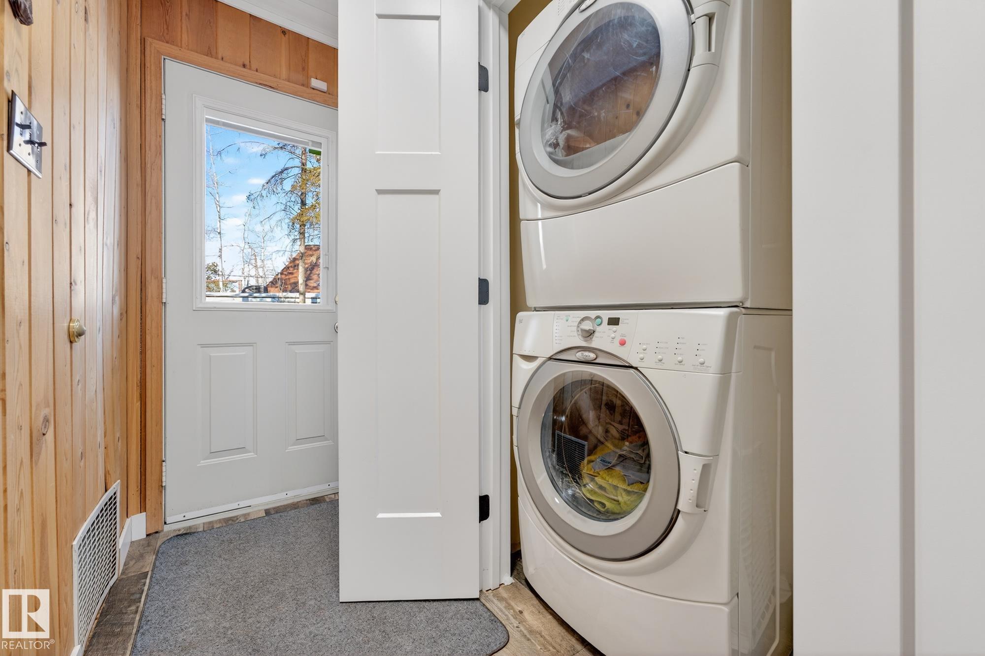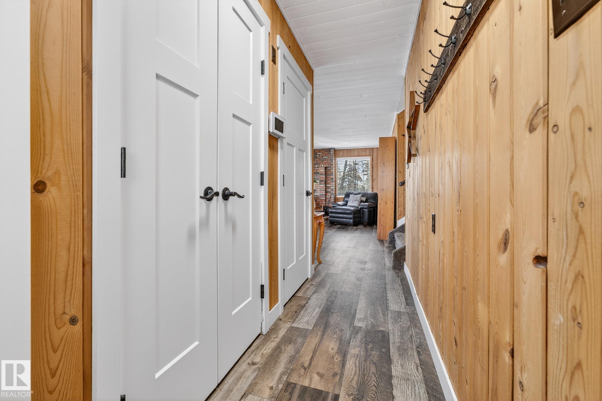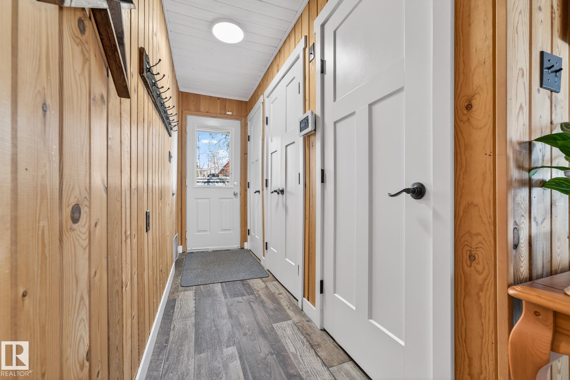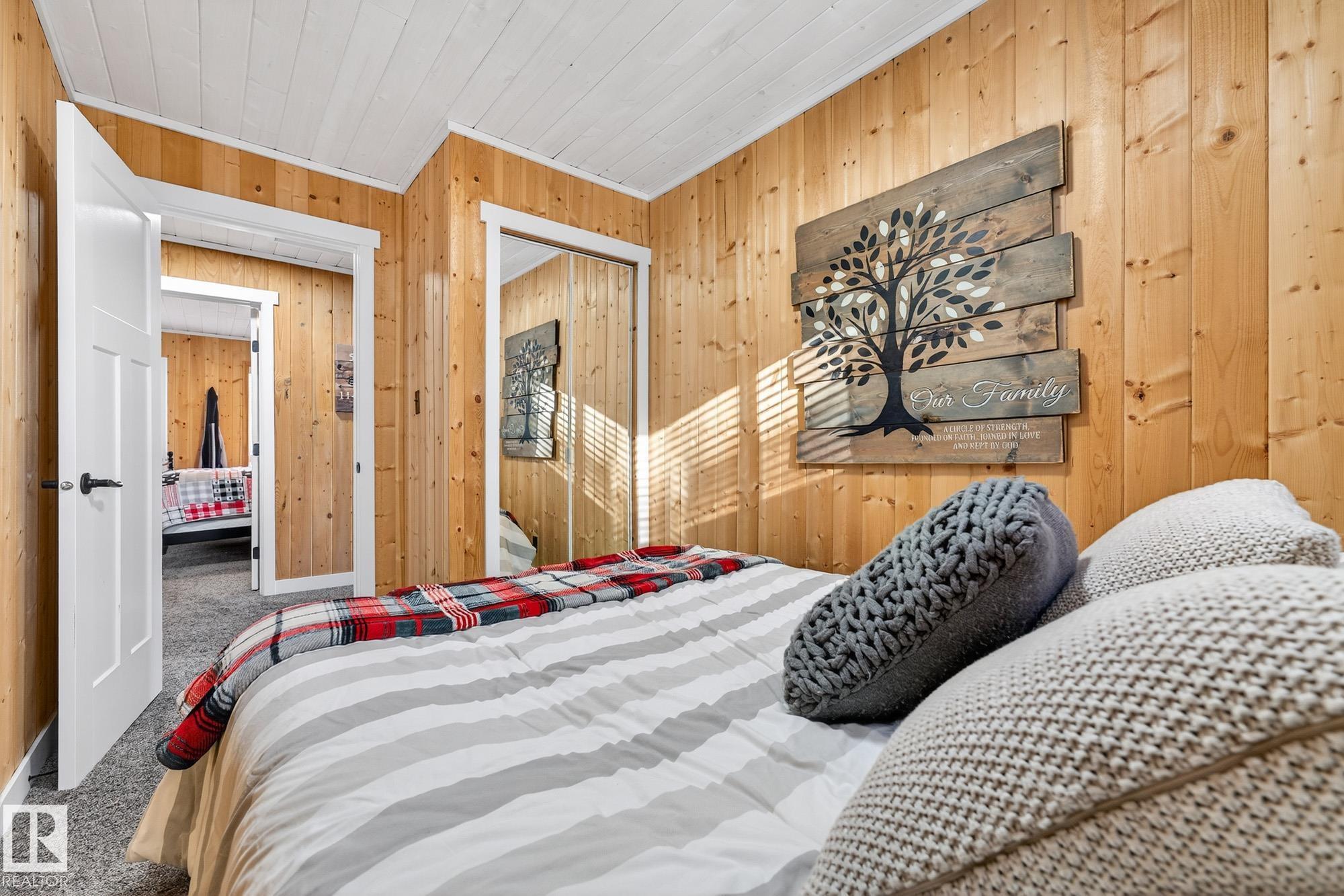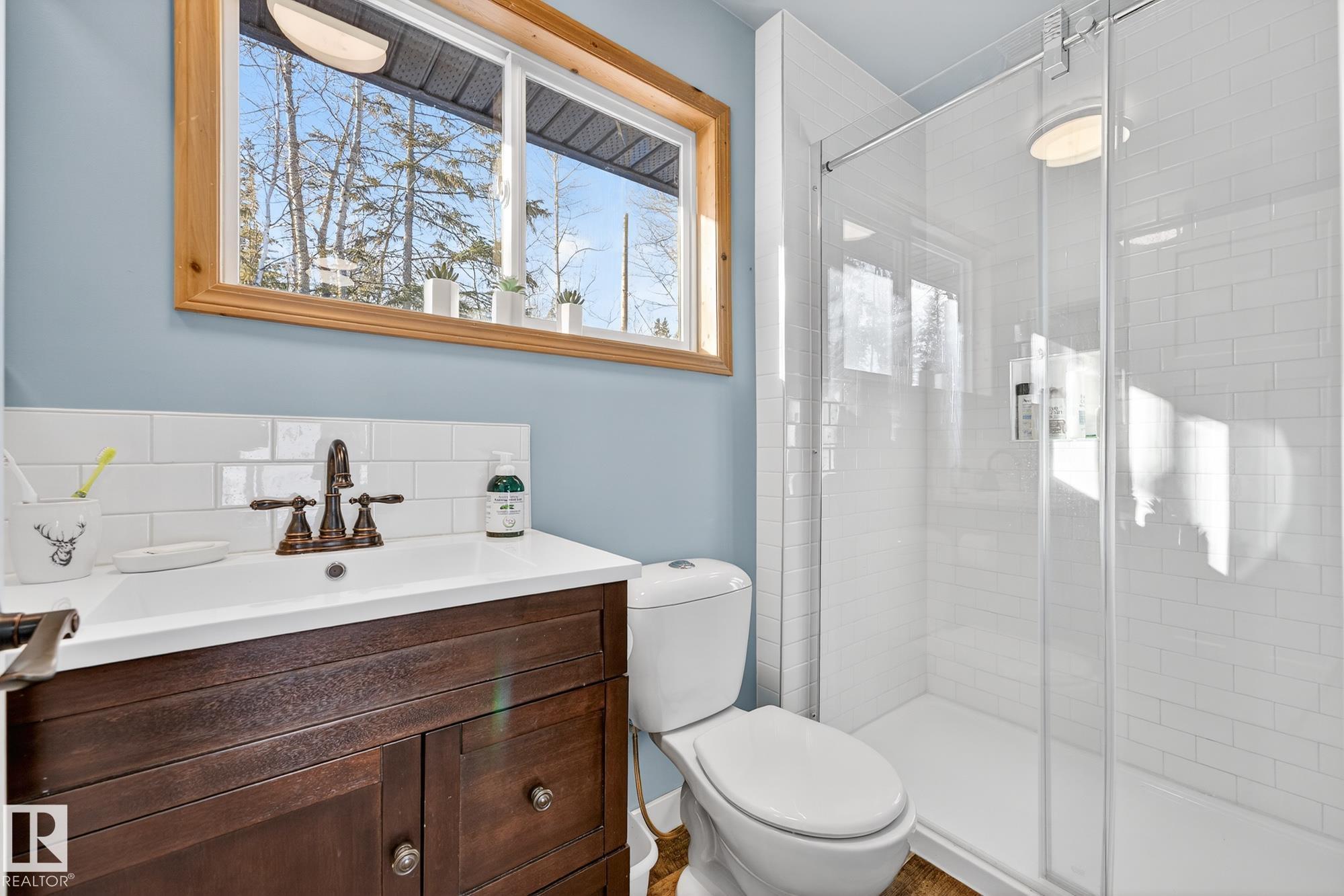 Ideal location an hour west of Edmonton and 20 mins south of Barrhead. Welcome to this immaculate and cozy four-season LAKEFRONT retreat, perfectly set on 0.27 acres and bordering environmental reserve land for added privacy and natural beauty. This thoughtfully updated property offers 3 bedrooms with closets and 2 full baths, with a major renovation completed in 2018 including all flooring, doors, casing, bathrooms, and a stunning kitchen. Natural light pours in through abundant windows, creating a bright and welcoming interior. A cozy woodstove with brick surround adds charm and comfort for year-round enjoyment. Step outside to a huge covered deck overlooking a large, flat front yard with a fire pit area--ideal for entertaining or relaxing lakeside. Gorgeous perennial beds and mature landscaping enhance the setting, all fully fenced with black chain-link. Three large storage sheds are included, one cleverly converted into a sleep shack with window and durable vinyl plank flooring. Priced to sell!