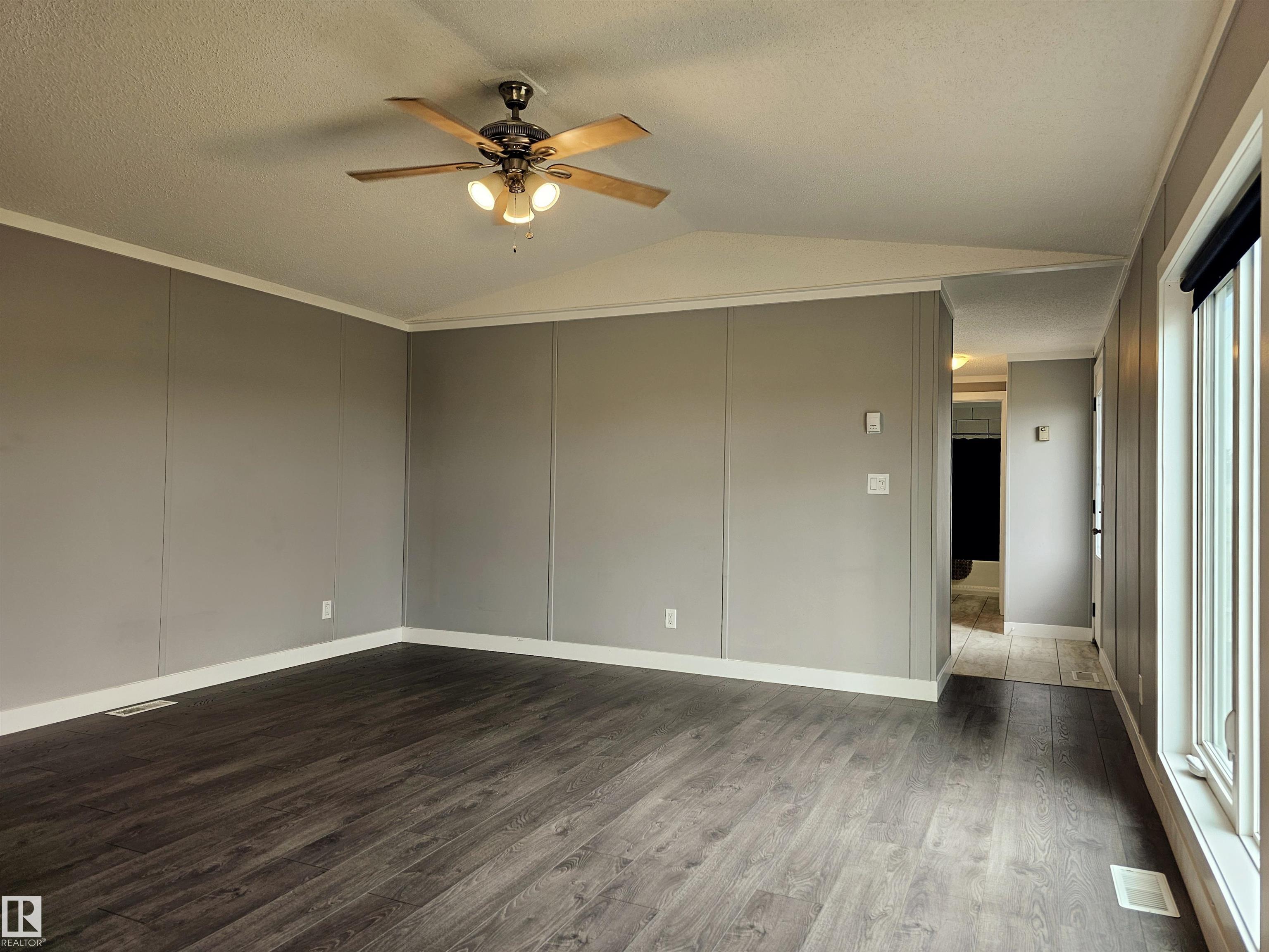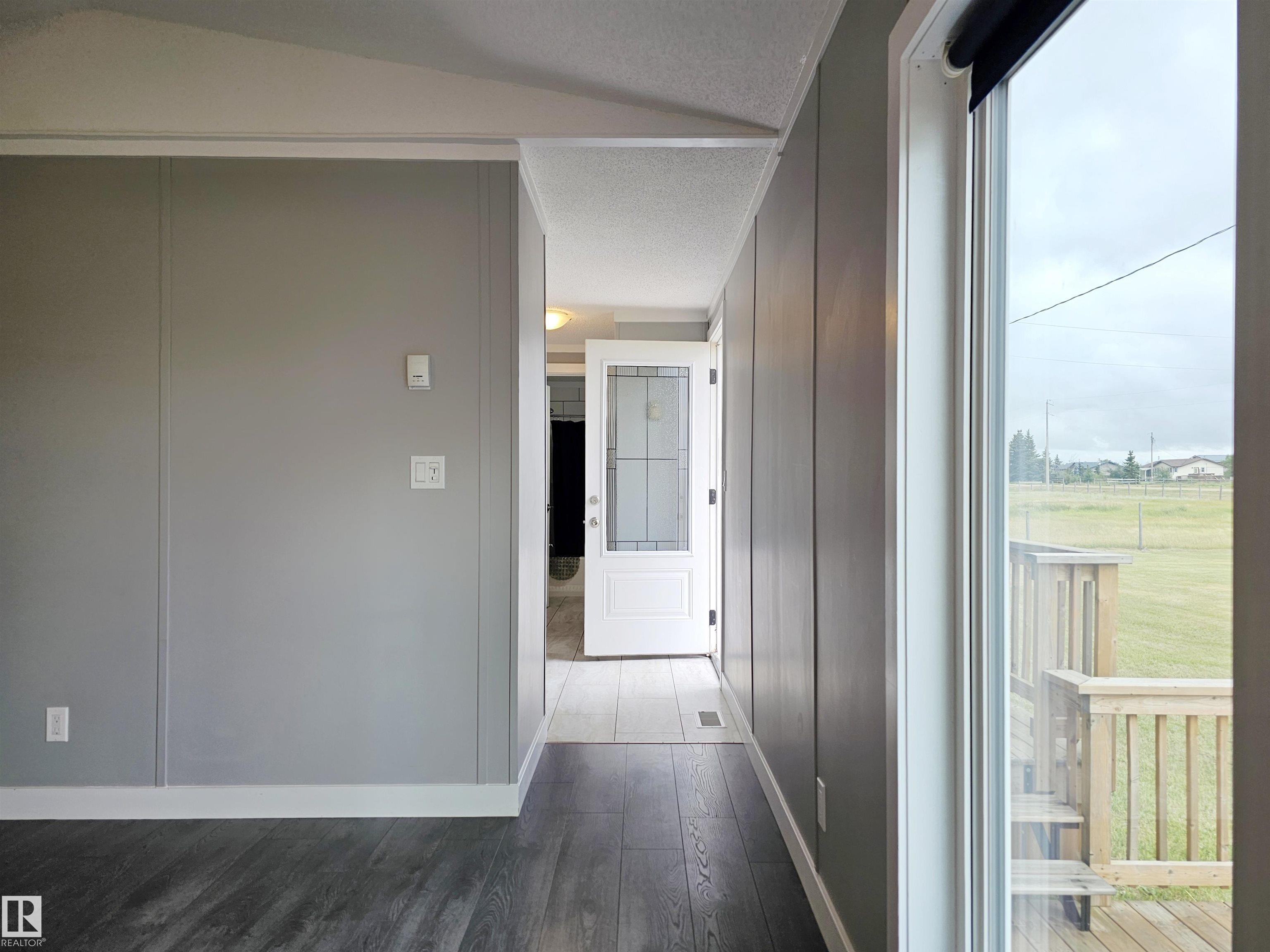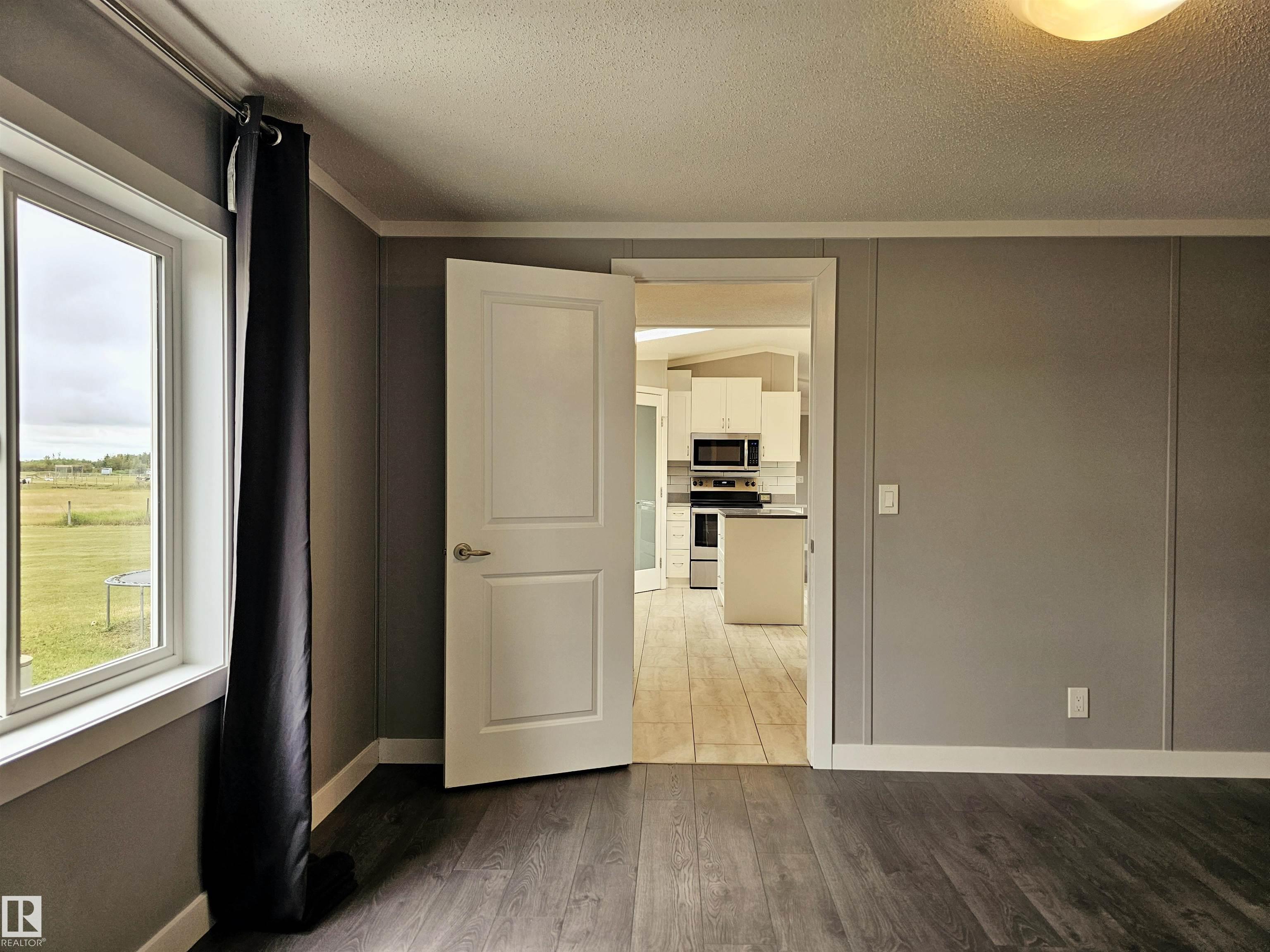 Set on a sprawling 3-acre parcel just minutes from Half Moon Lake and endless quad trails, this completely rebuilt 1992 mobile pairs country living with modern style. Reimagined from the ground up, it showcases new exterior siding, upgraded insulation, windows, exterior doors, and shingles for lasting comfort and appeal. A generous 8' x 32' front deck invites quiet mornings or sunset views, while inside, fresh flooring, a renovated kitchen with quartz countertops, new island, upgraded appliances, and chic lighting set the tone. Three spacious bedrooms include a primary suite with walk-in closet and 4-piece ensuite featuring a soaker tub. The brand-new 24' x 24' HEATED double detached garage offers 10' walls, an 8' x 16' door, and full power. A storage shed with cistern access adds practicality, creating a move-in-ready acreage retreat with space, style, and convenience.