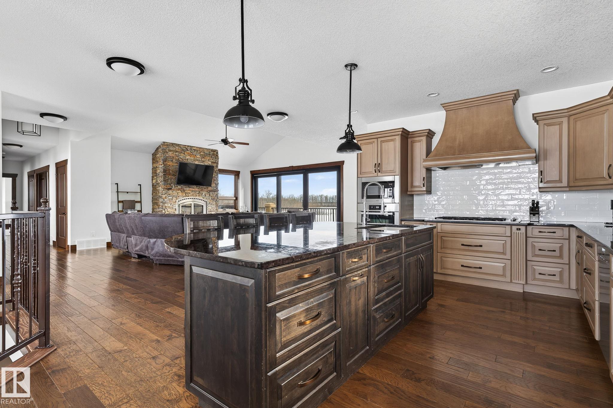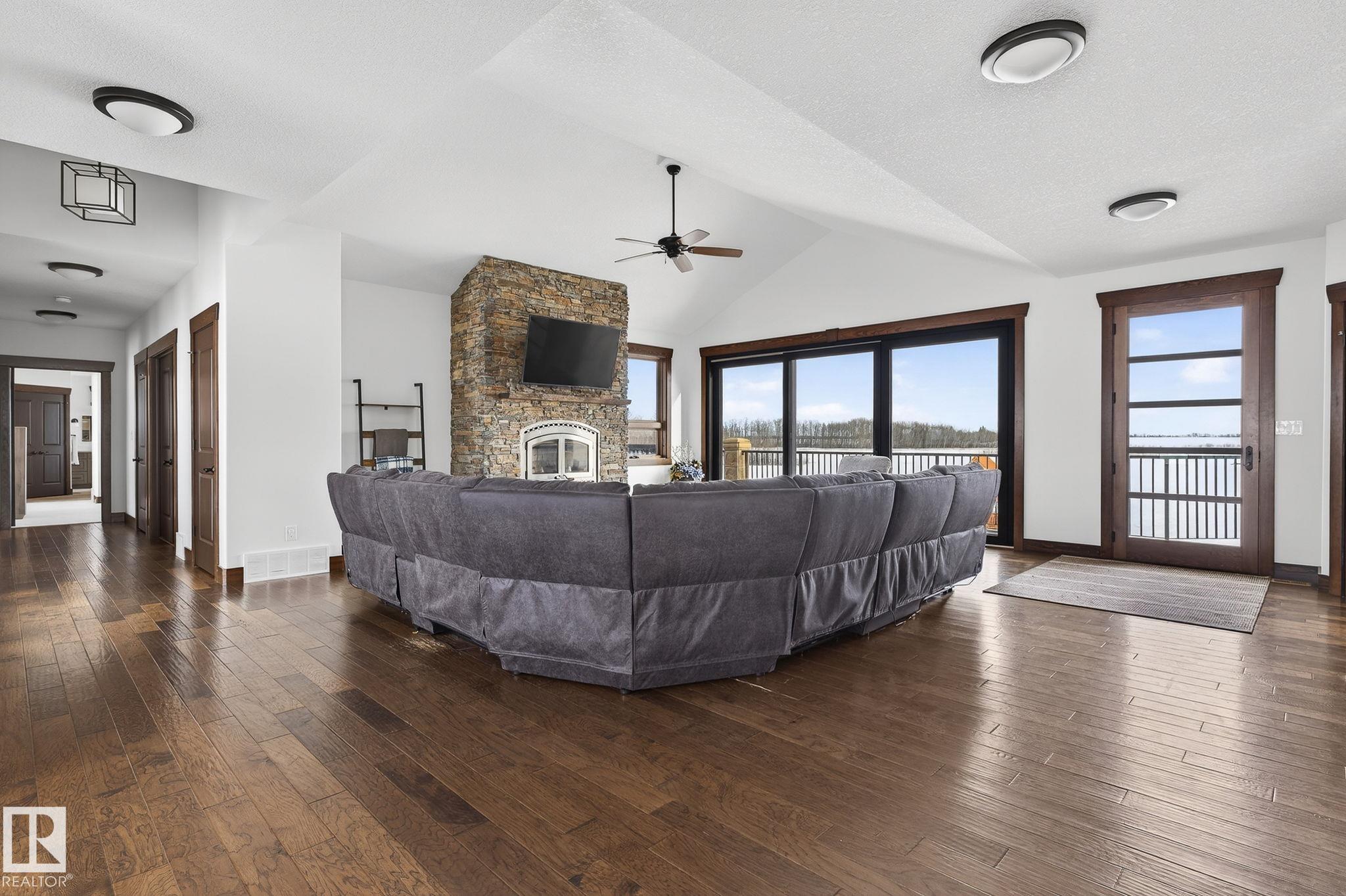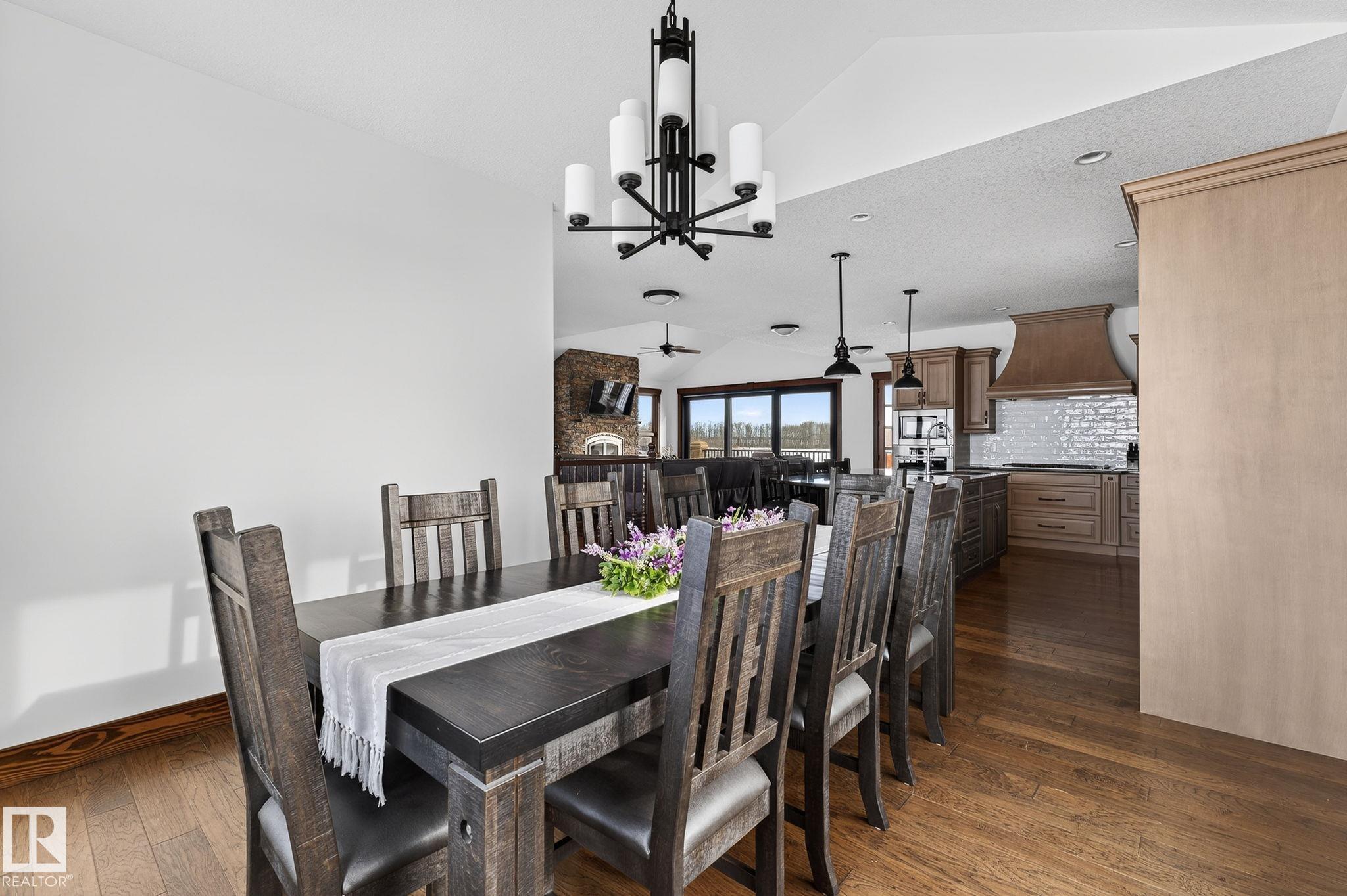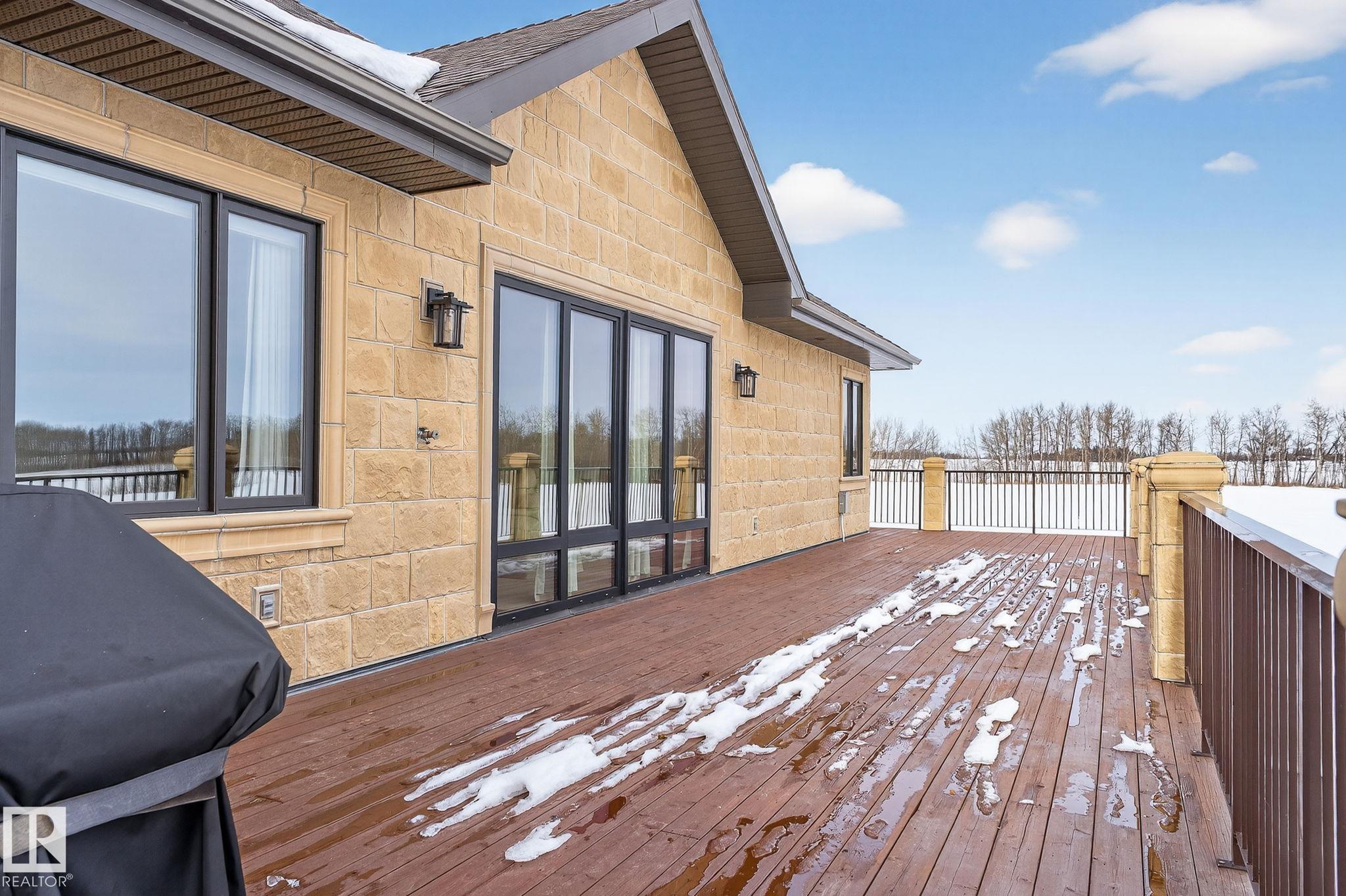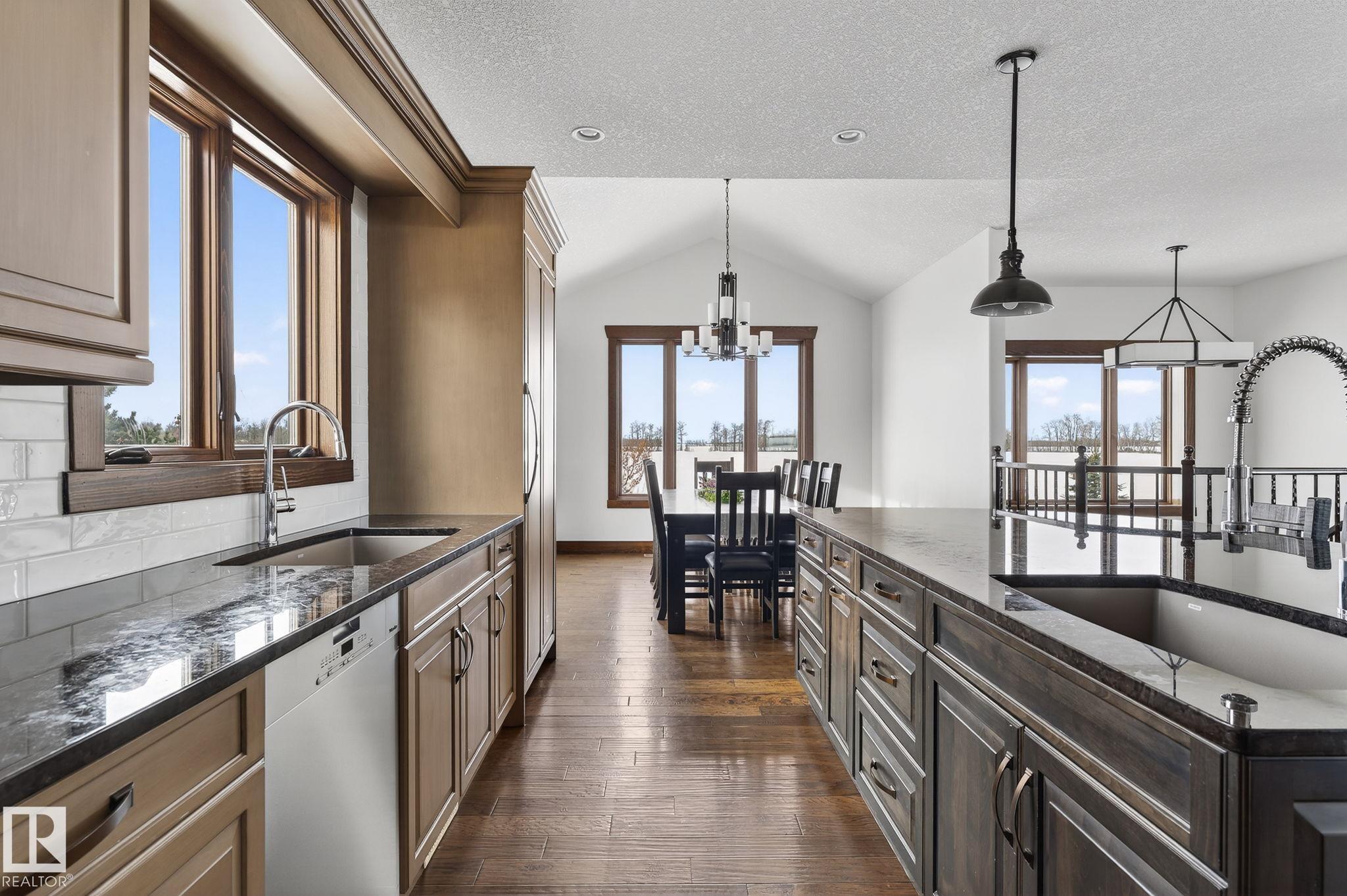 EXECUTIVE ESTATE on a PRIVATE 80-ACRE PARCEL offering TOTAL PRIVACY, surrounded by mature trees and high-producing farmland. Ideally located just 3 MINUTES TO BON ACCORD and LESS THAN 20 MINUTES TO ST. ALBERT, this hidden gem blends luxury and functionality. Showcasing a striking stone tile exterior, professional landscaping, and a FULL WALK-OUT BASEMENT, this custom open-concept bungalow features hand-scraped hardwood floors and a sun-filled great room with WALLS OF WINDOWS. The chef-inspired kitchen offers TOP-OF-THE-LINE INTEGRATED APPLIANCES and overlooks the dining area. The living room is anchored by a FLOOR-TO-CEILING STONE FIREPLACE. The spacious primary retreat includes a SPA-LIKE ENSUITE, alongside two additional bedrooms and main floor laundry. The lower level is designed for ENTERTAINING with a media room, rec room, 4th & 5th bedrooms and full bath. Complete with an OVERSIZED FOUR-BAY FULLY FINISHED GARAGE plus space to BUILD A DREAM SHOP or explore SUBDIVISION POTENTIAL. A MUST SEE IN PERSON!