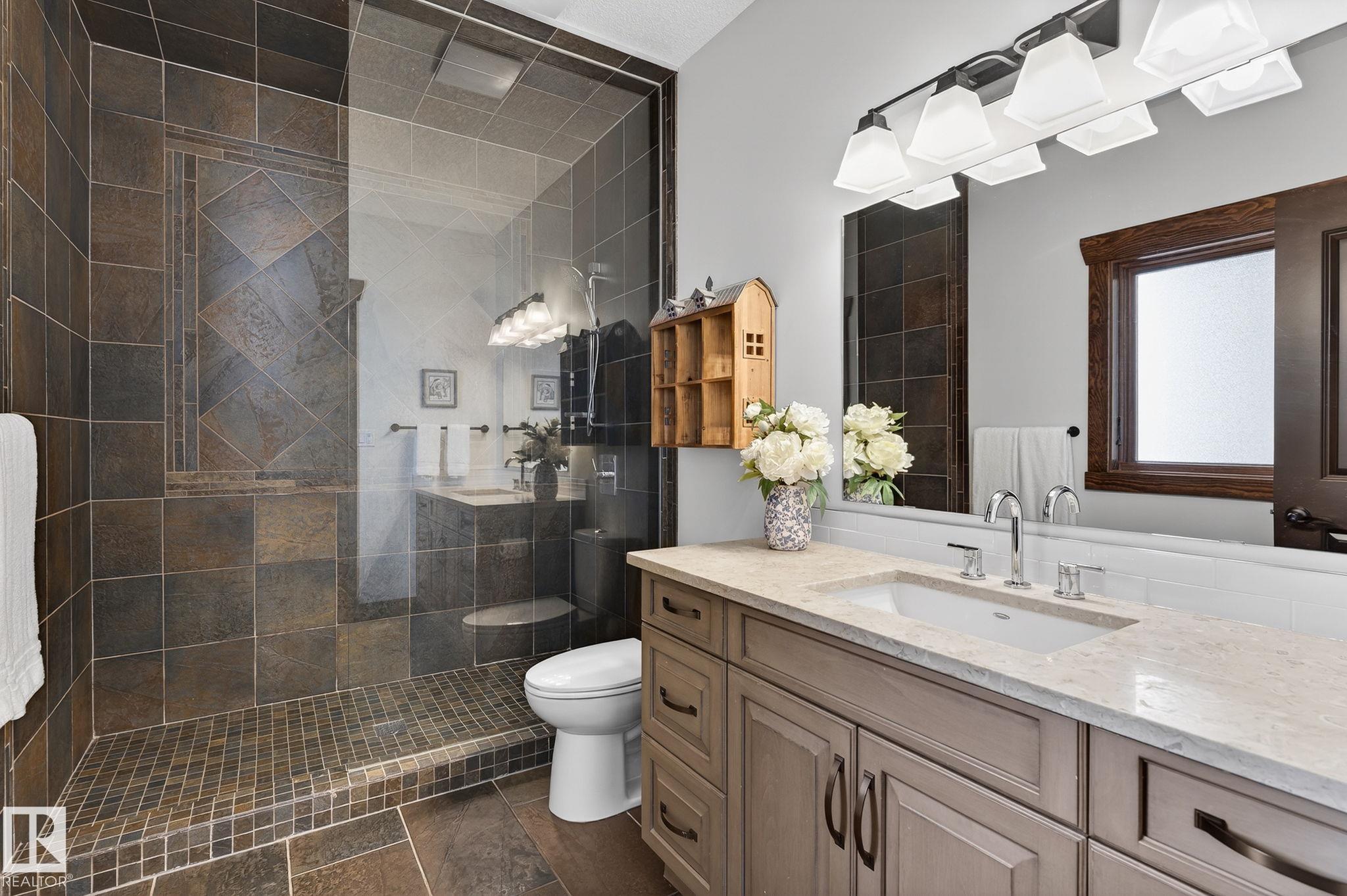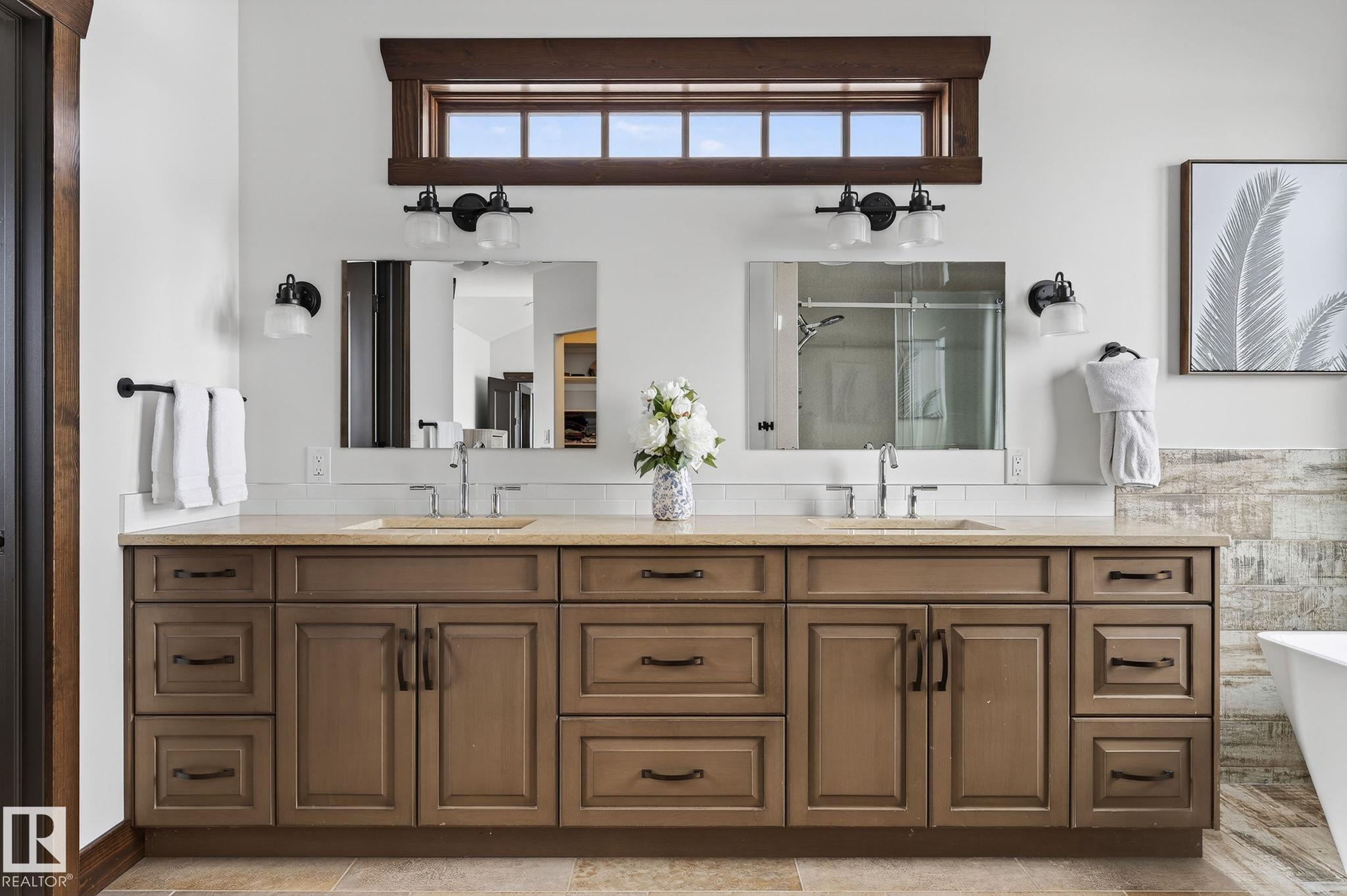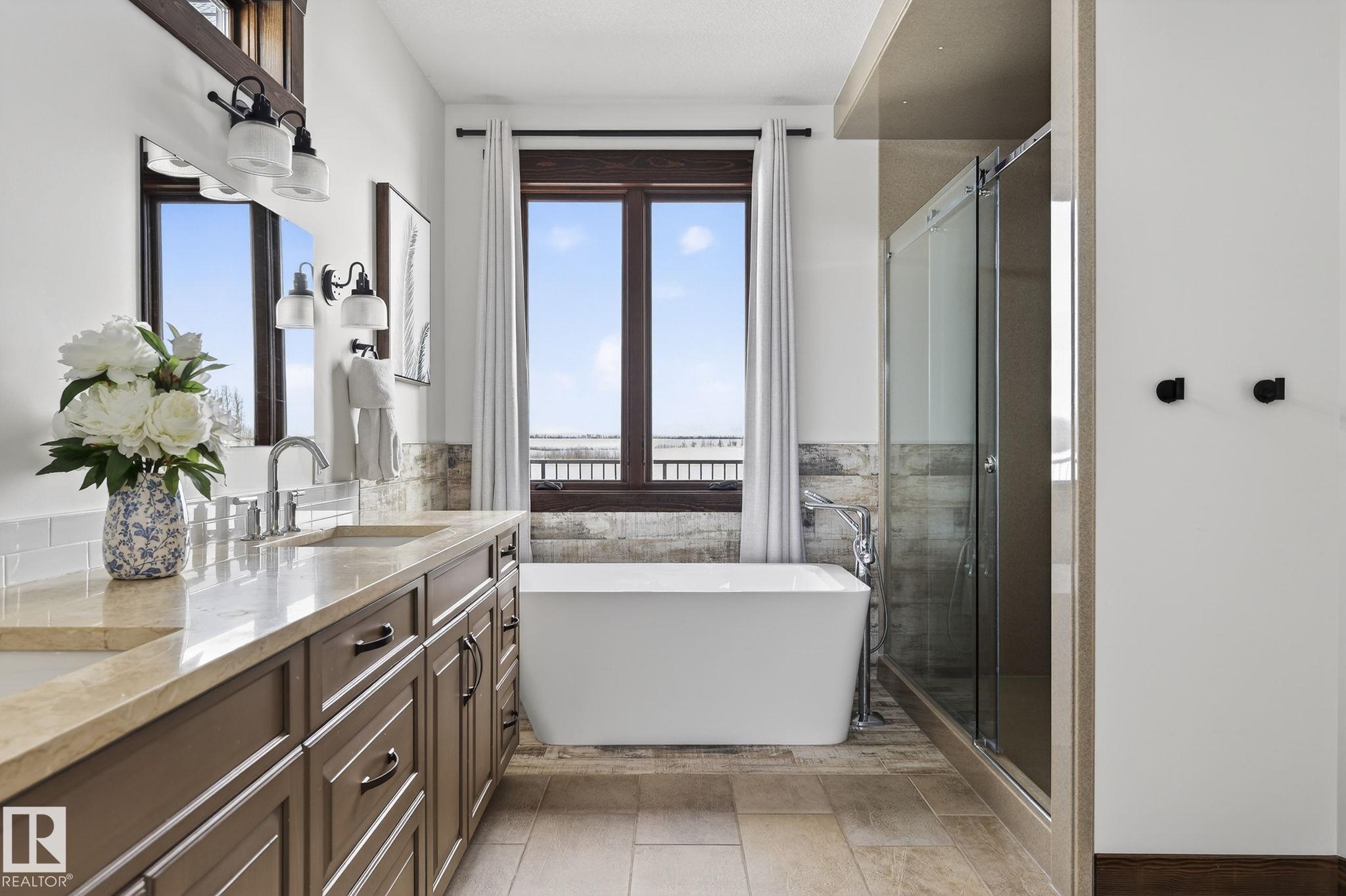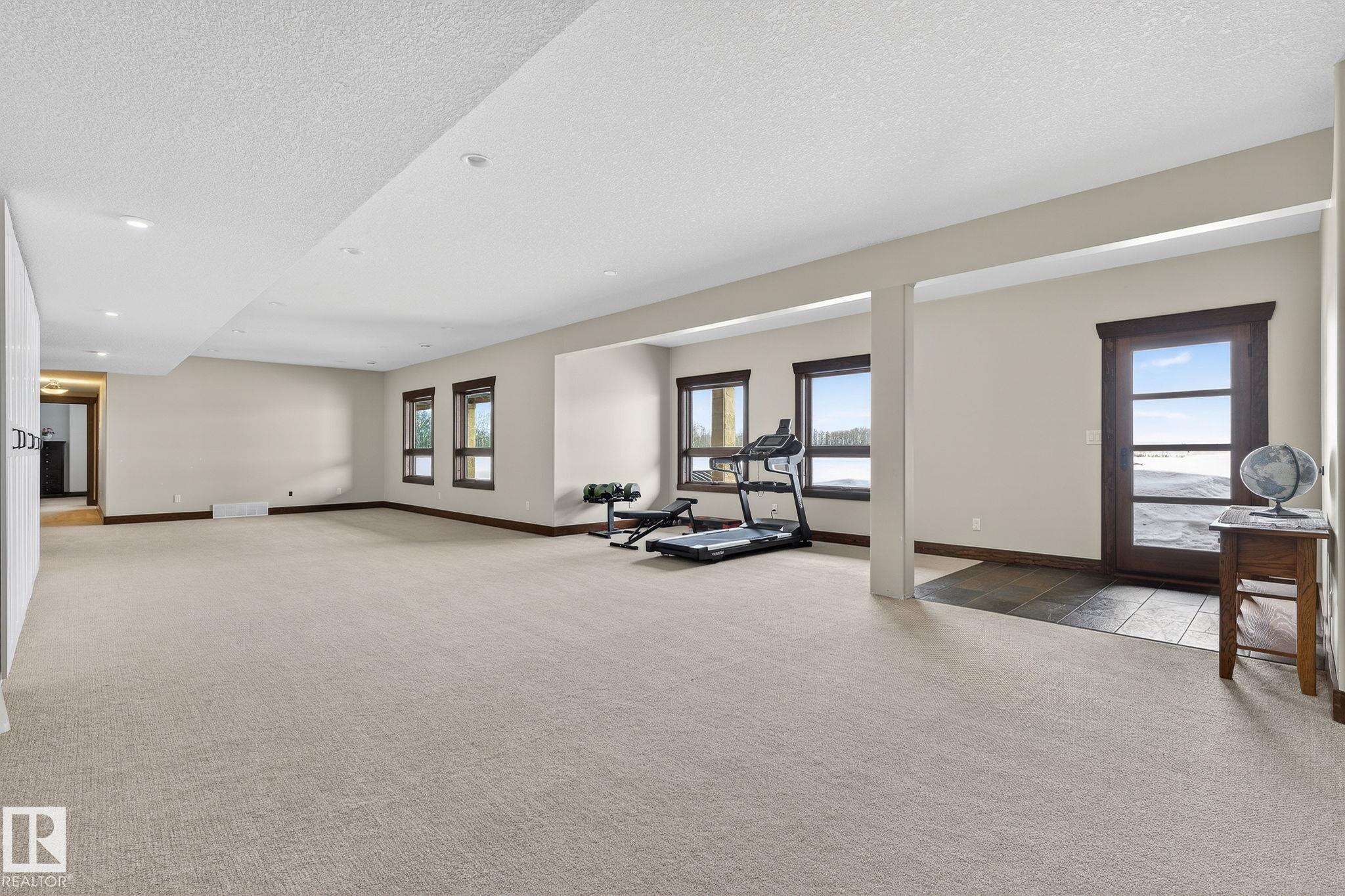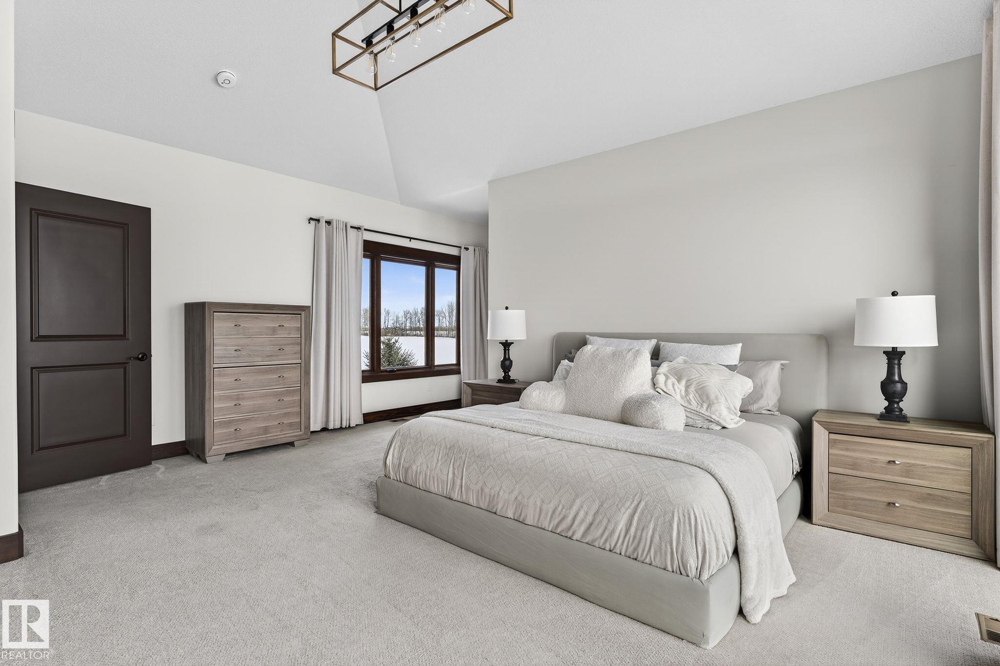 EXECUTIVE ESTATE on a PRIVATE 80-ACRE PARCEL offering TOTAL PRIVACY, surrounded by mature trees and high-producing farmland. Ideally located just 3 MINUTES TO BON ACCORD and LESS THAN 20 MINUTES TO ST. ALBERT, this hidden gem blends luxury and functionality. Showcasing a striking stone tile exterior, professional landscaping, and a FULL WALK-OUT BASEMENT, this custom open-concept bungalow features hand-scraped hardwood floors and a sun-filled great room with WALLS OF WINDOWS. The chef-inspired kitchen offers TOP-OF-THE-LINE INTEGRATED APPLIANCES and overlooks the dining area. The living room is anchored by a FLOOR-TO-CEILING STONE FIREPLACE. The spacious primary retreat includes a SPA-LIKE ENSUITE, alongside two additional bedrooms and main floor laundry. The lower level is designed for ENTERTAINING with a media room, rec room, 4th & 5th bedrooms and full bath. Complete with an OVERSIZED FOUR-BAY FULLY FINISHED GARAGE plus space to BUILD A DREAM SHOP or explore SUBDIVISION POTENTIAL. A MUST SEE IN PERSON!