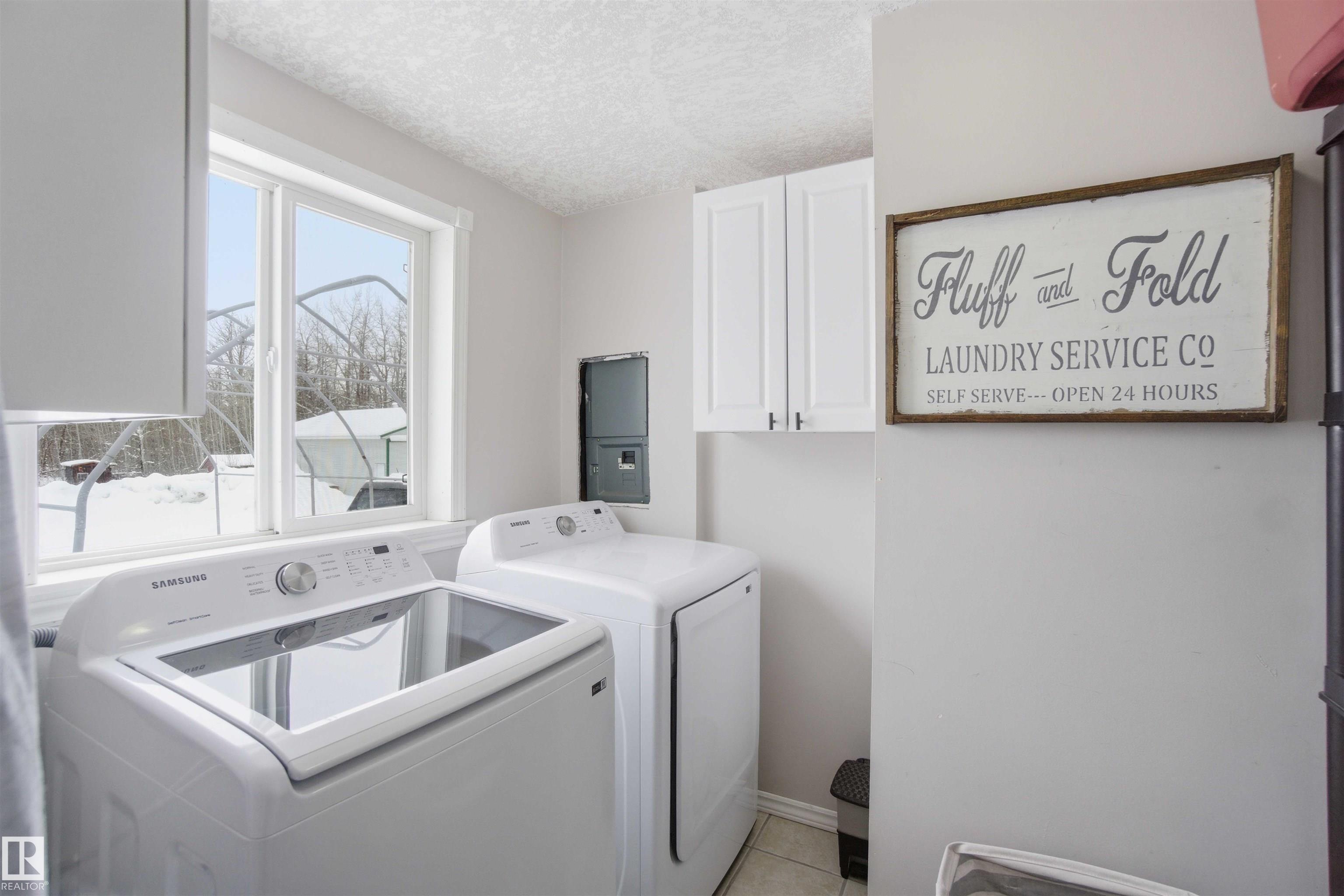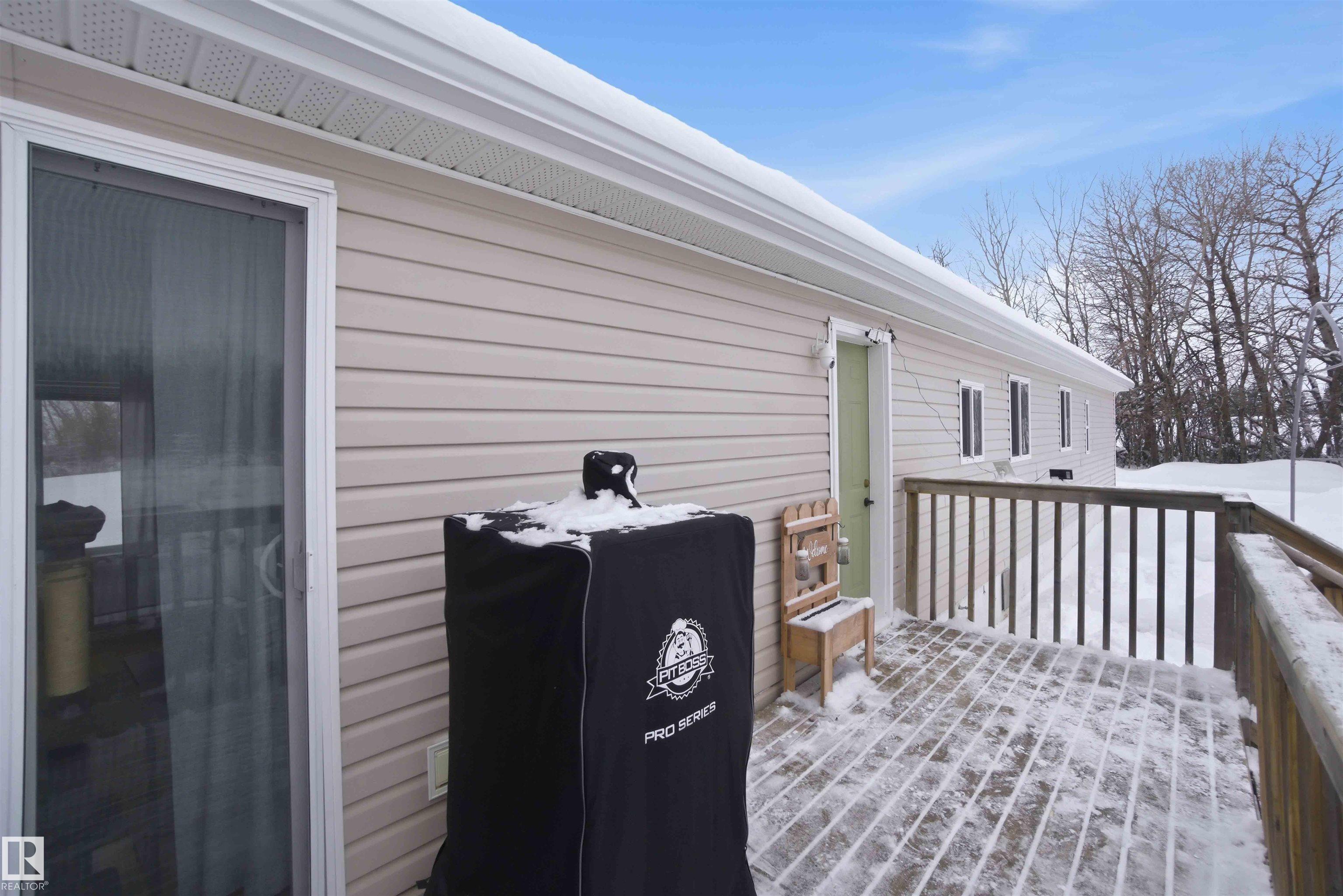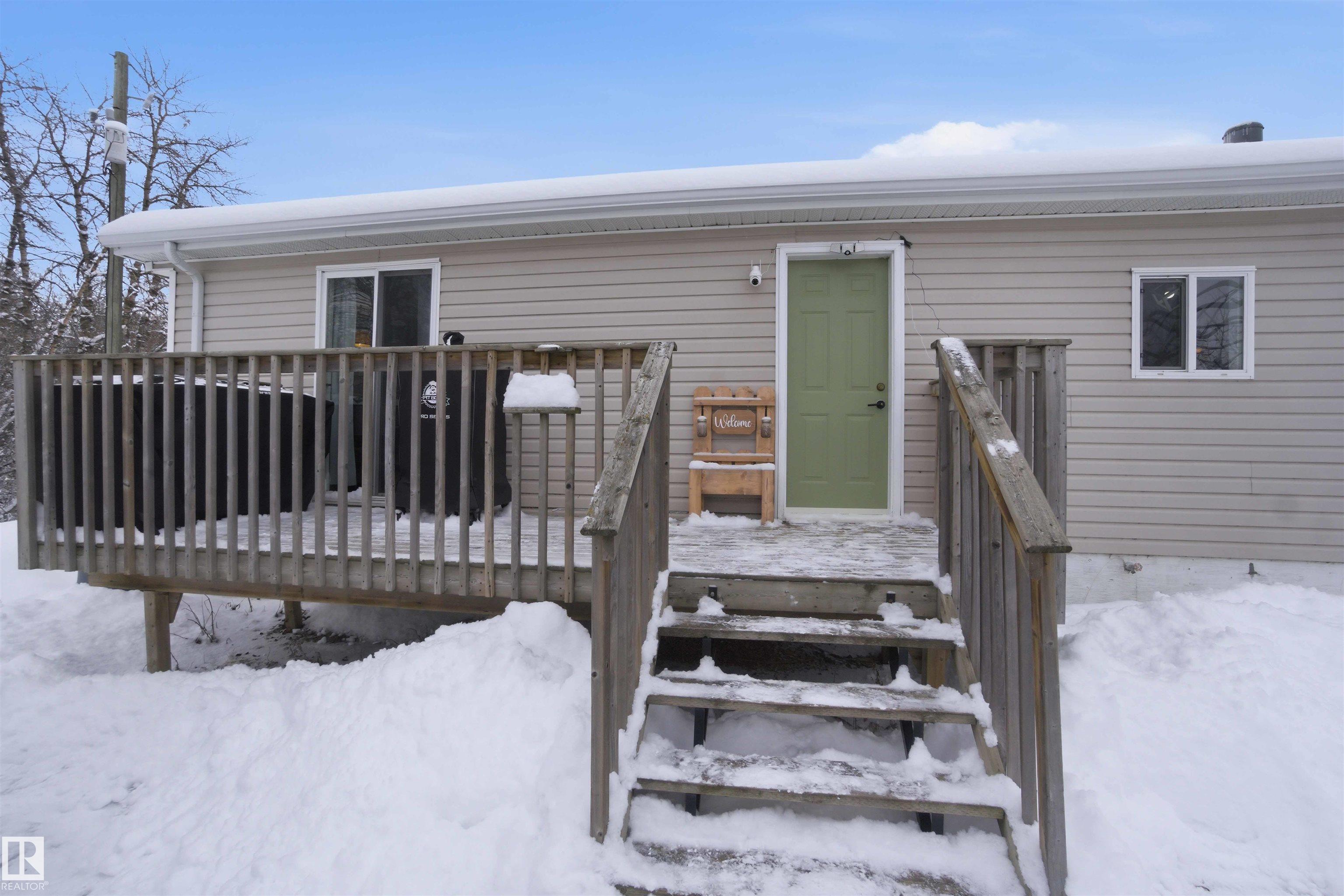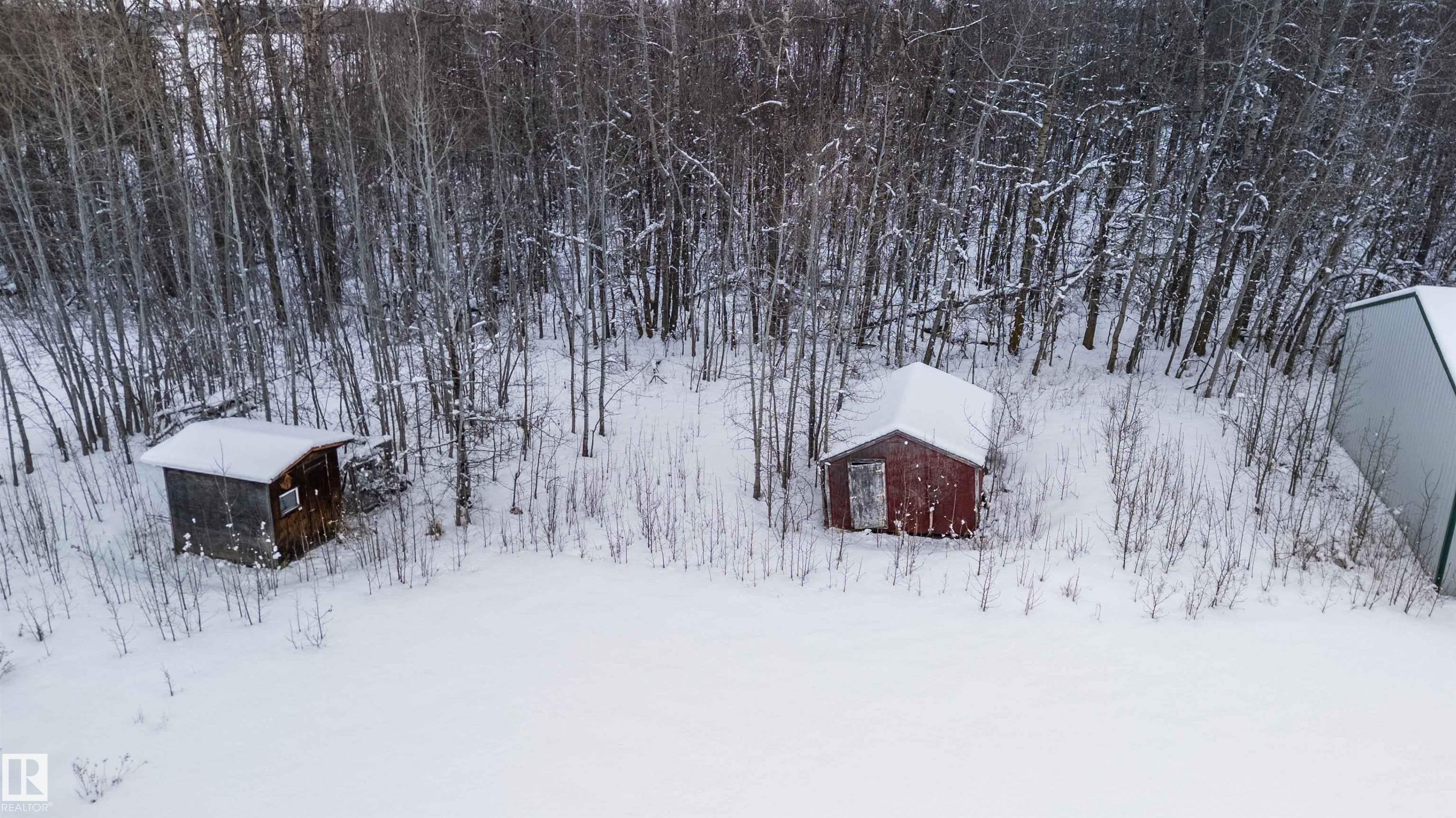 Find your peace and tranquility at this lovely acreage out of a subdivision just a few miles north of Bon Accord. Set on 2 acres with mature trees surrounding the perimeter is this completely upgraded south facing 2 bedroom modular home with a front and back landing/decks for morning coffee! Vinyl siding & windows have been replaced and the interior is nicely upgraded. Extra closet space has been added in the primary bedroom & a newer hot water tank (2013). Mature raspberry bushes & a garden area on the property and the highlight is the 30'x45' shop with lots of power & with framing around the interior walls for concrete footings. Gravel floor at present & built-in shelving will stay. Great spot for all your toys or RV storage. Enjoy country living in a great location and affordable price!