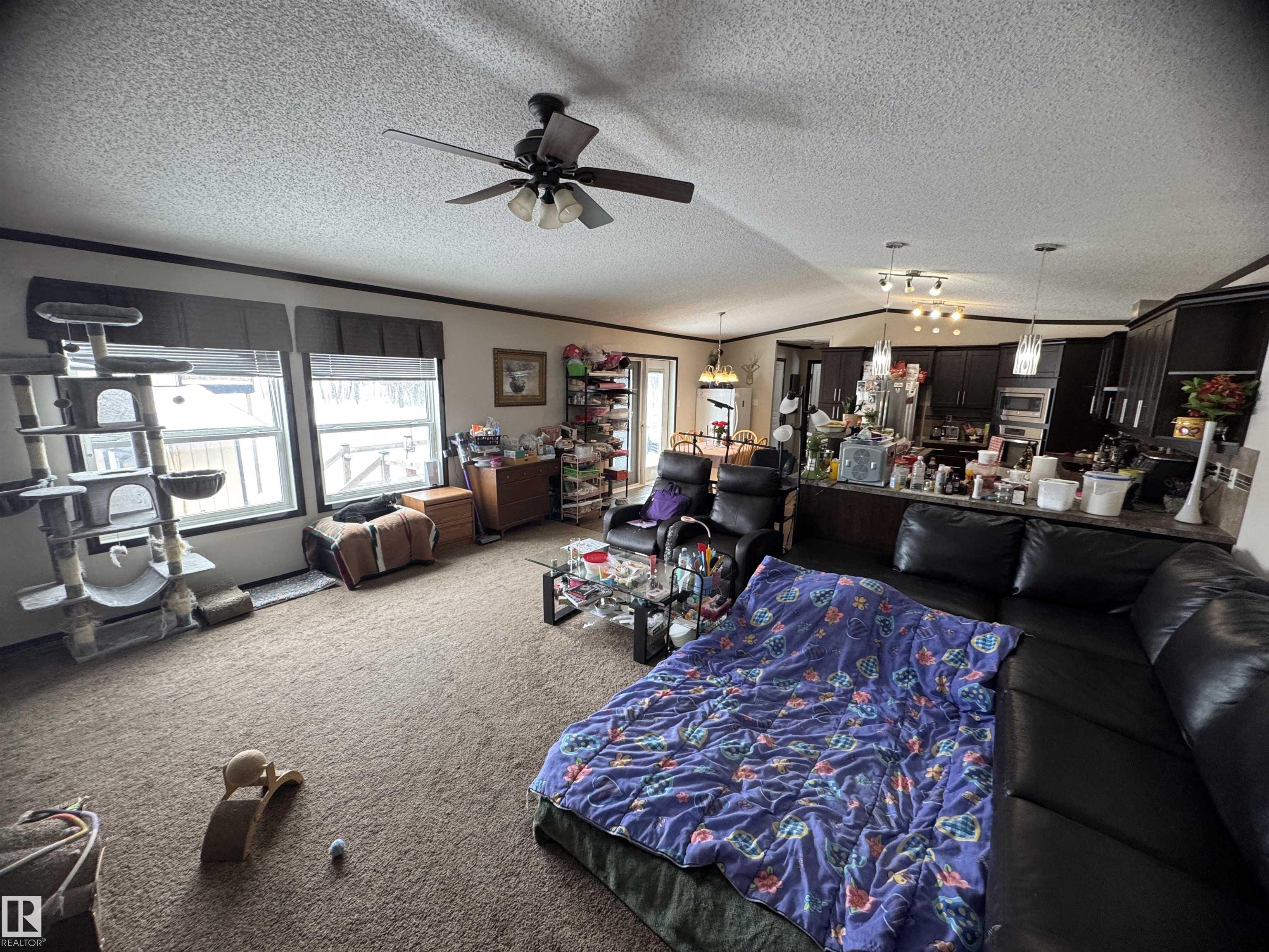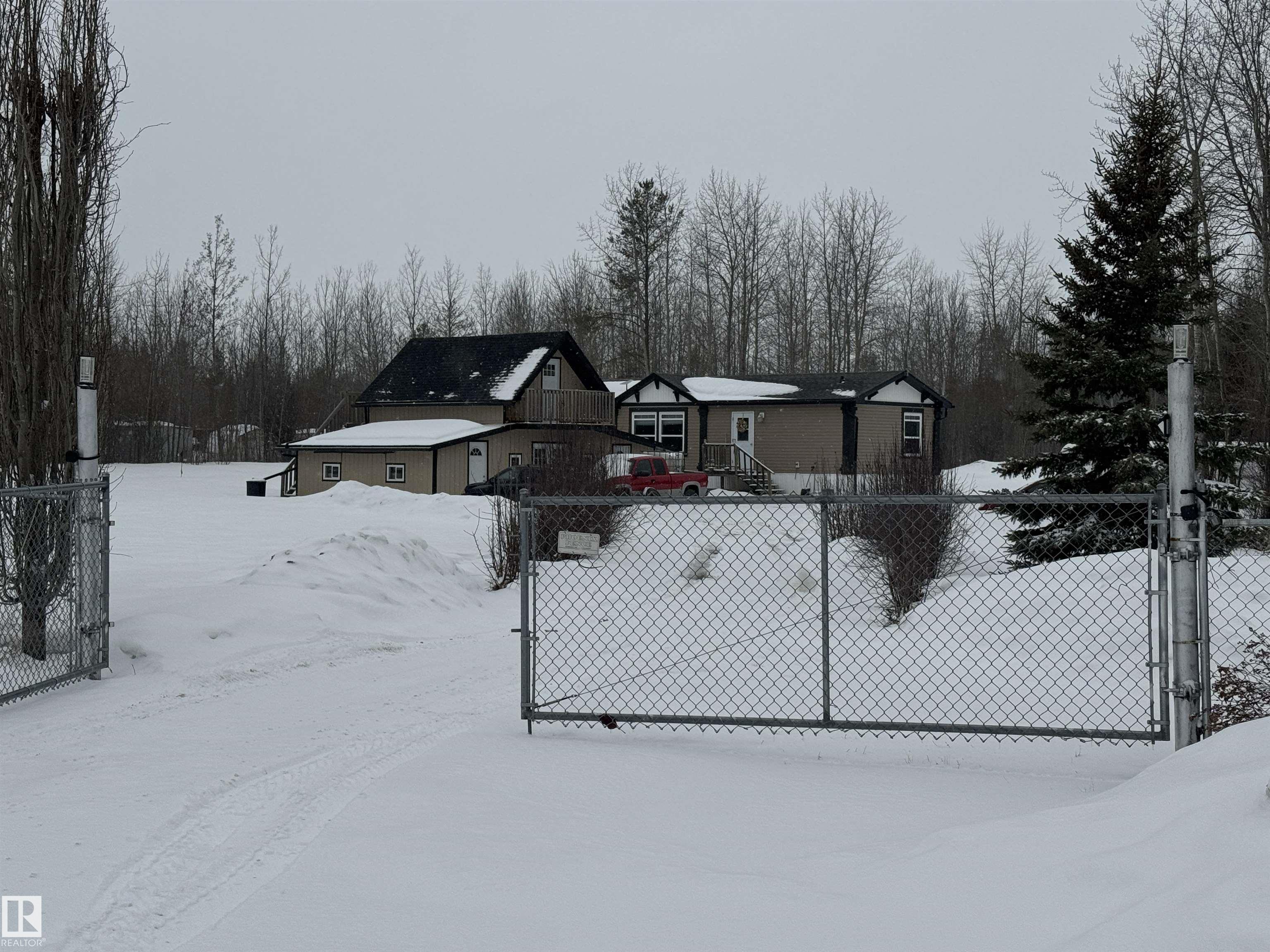 Welcome to Sprucehill Estates! Situated on 1.91 fully fenced acres, this 1520 sq ft 2014 mobile home offers space, privacy and plenty of potential. Featuring 3 bedrooms and 2 bathrooms, including a spacious 5-piece ensuite, this property is ideal for families or anyone wanting room to spread out. The home backs onto trees, giving you a peaceful rural setting with added privacy. A great well provides tons of water, and the adorable outbuilding offers exciting potential for a guest house, studio, hobby space or extra storage. Whether you are looking for country charm, functional living space, or a property with future possibilities, this one is worth a look! Enjoy acreage living in the desirable community of Sprucehill Estates.