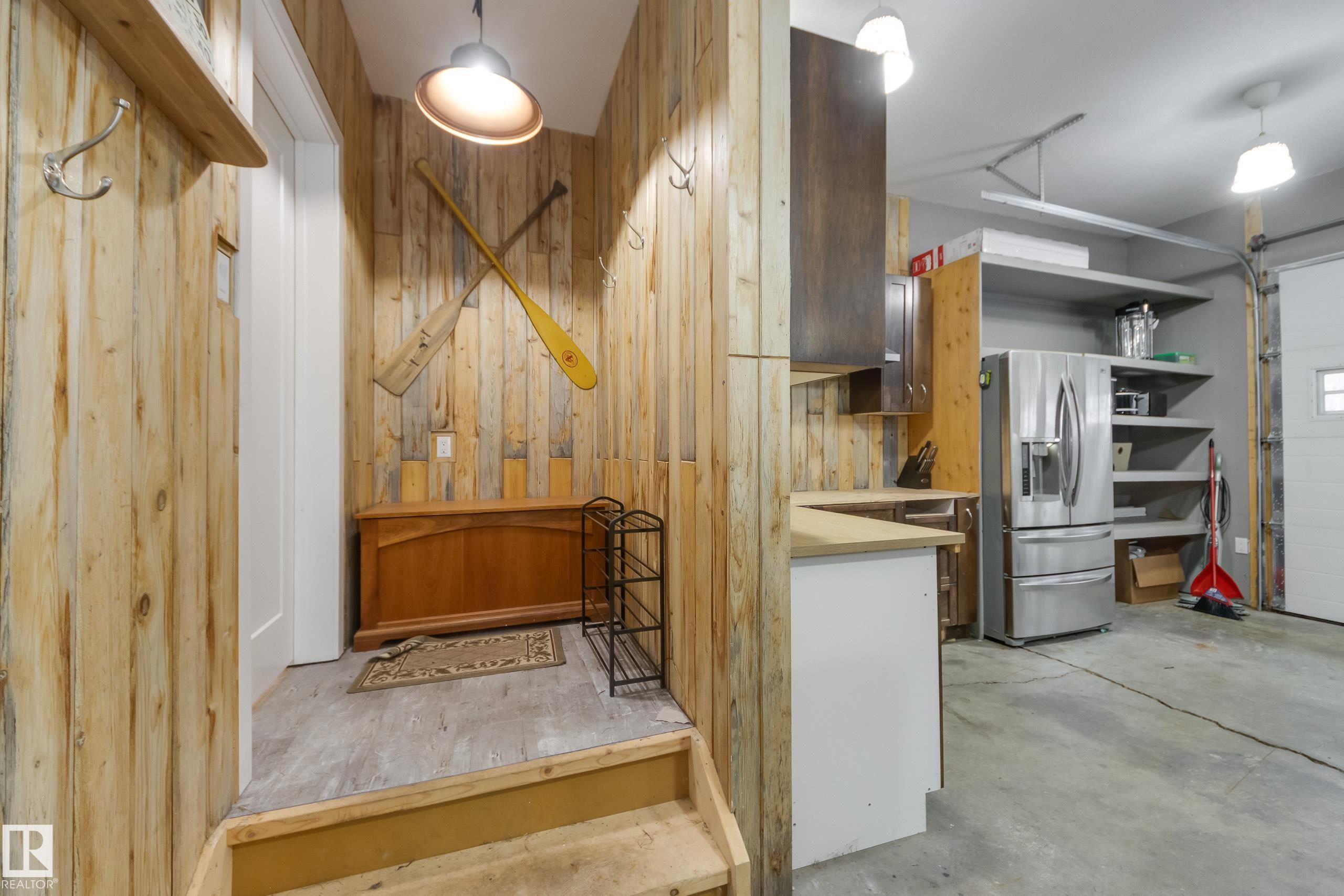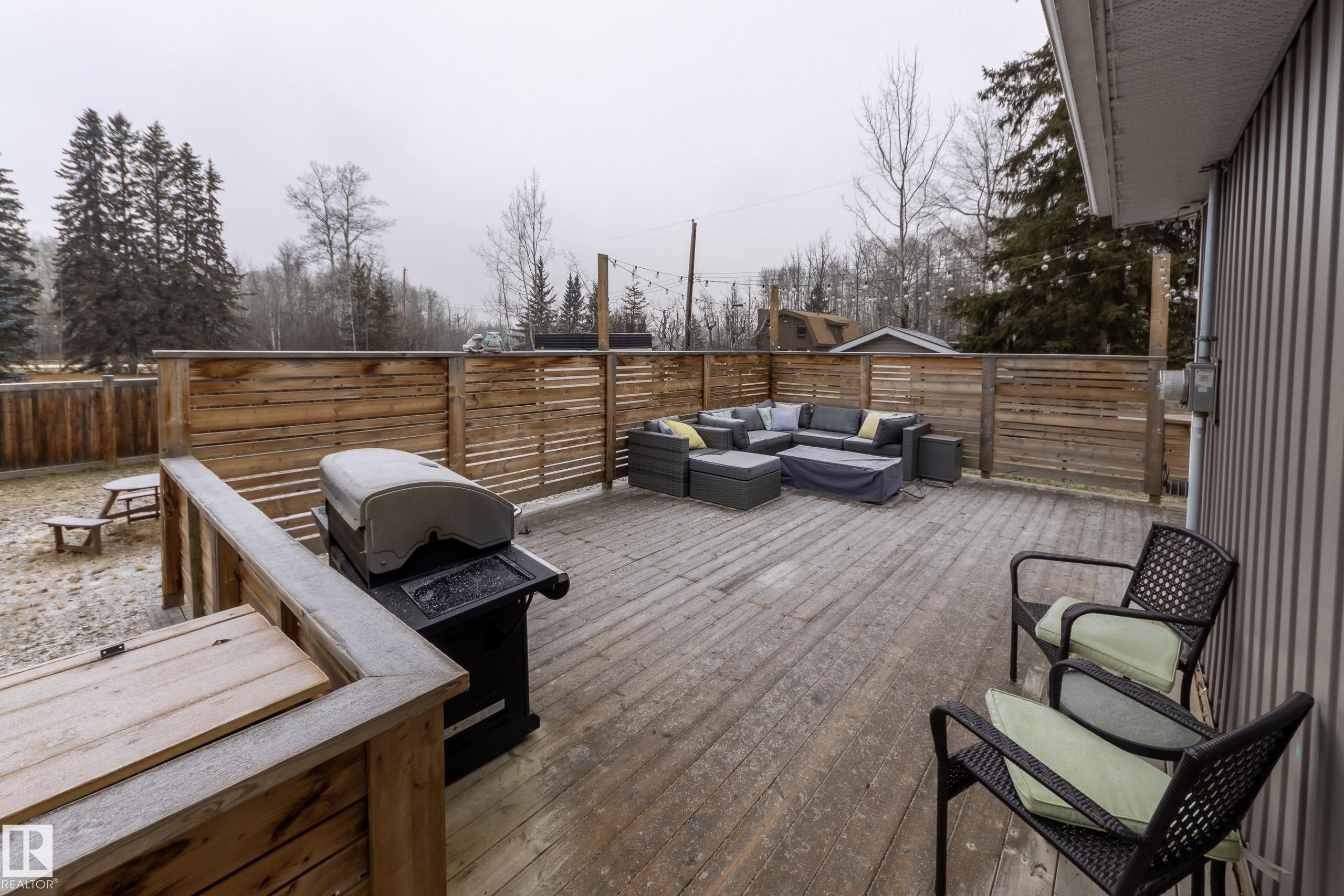 A wonderful retreat for the whole family! This unique property includes two titled lots in the community of Jones Beach--just a one-minute walk to Lake Isle. The main A-frame cottage features a loft, three bedrooms, a four-piece bathroom, a cozy living area with a wood-burning stove, and an open kitchen with an eating bar. Enjoy laminate flooring, vinyl windows, and a large wrap-around deck perfect for relaxing or entertaining. The double garage has been converted into a heated living space with a wood stove and a stainless-steel refrigerator. Attached to the garage is a two-bedroom bunkhouse, complete with a four-piece bathroom, in-suite laundry, a kitchen, dining area, and living room. Additional features include a separate storage shop, RV parking with hookups, and spacious front and back yard backing onto a creek. A firepit sits at the back of the property--perfect for those cozy summer nights. Located just one hour west of Edmonton, this property offers year-round enjoyment.