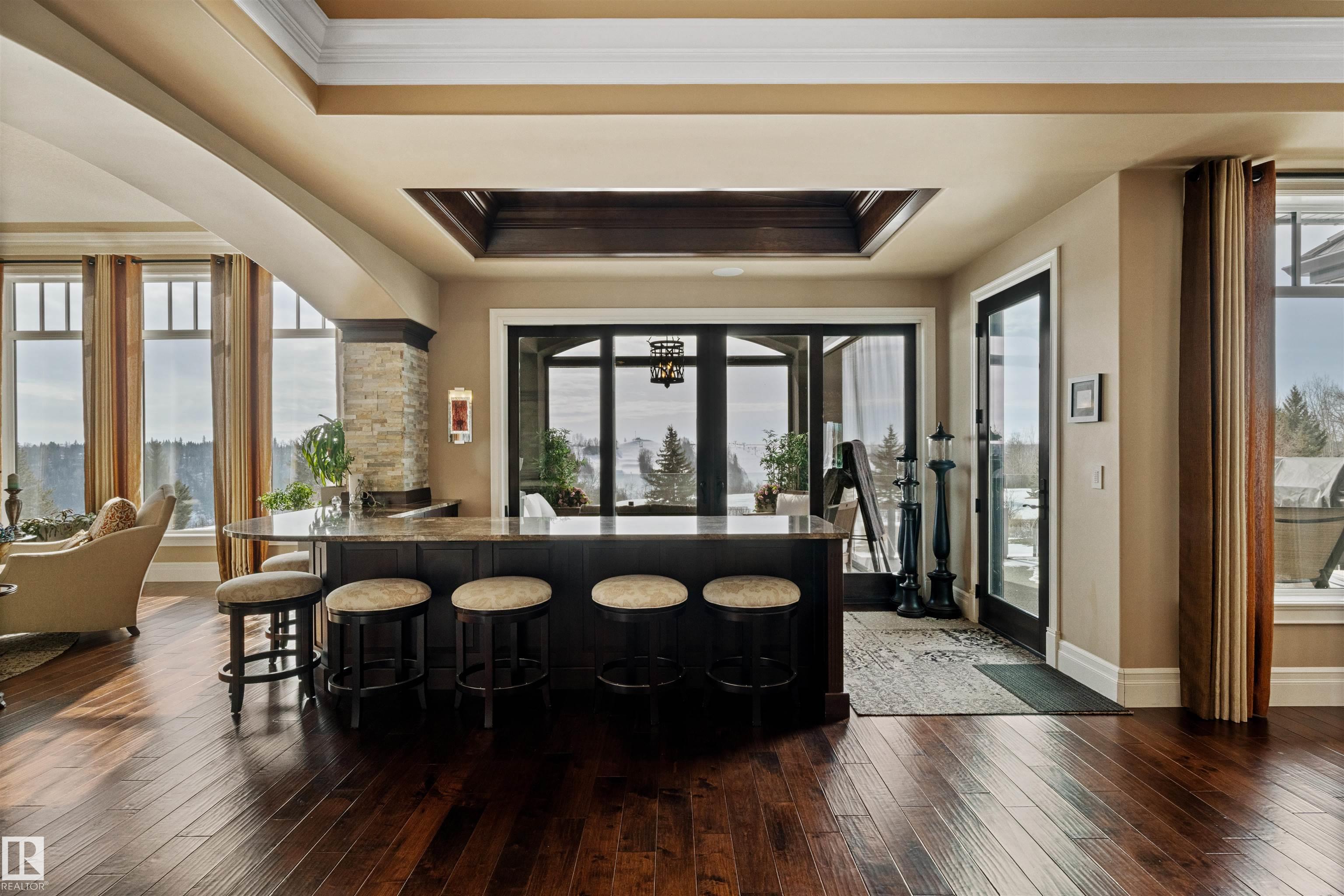 Rarely does a property of this caliber come to market. Perched above the river on 1.26 fenced acres in Blackhawk, this extraordinary walkout estate commands south-facing views that shift with every season, from the movement of the river in summer to the glow of ski slopes on a crisp winter evening. Direct trail access connects you to nature the moment you step outside, while thoughtful design & automation ensure life inside is equally effortless. Over 6,800 square feet of refined living space is complemented by 2,300 square feet of garage, four bays plus a dedicated RV bay, built for those who expect scale without compromise. Every detail, every material, every system chosen to stand the test of time. Blackhawk is Edmonton's most coveted rural enclave, offering privileged access to one of the region's most exclusive golf & country clubs. This is not simply a home. It is a generational estate, conceived for the most discerning of owners. Visit the REALTOR© website for additional information: markgummer.ca