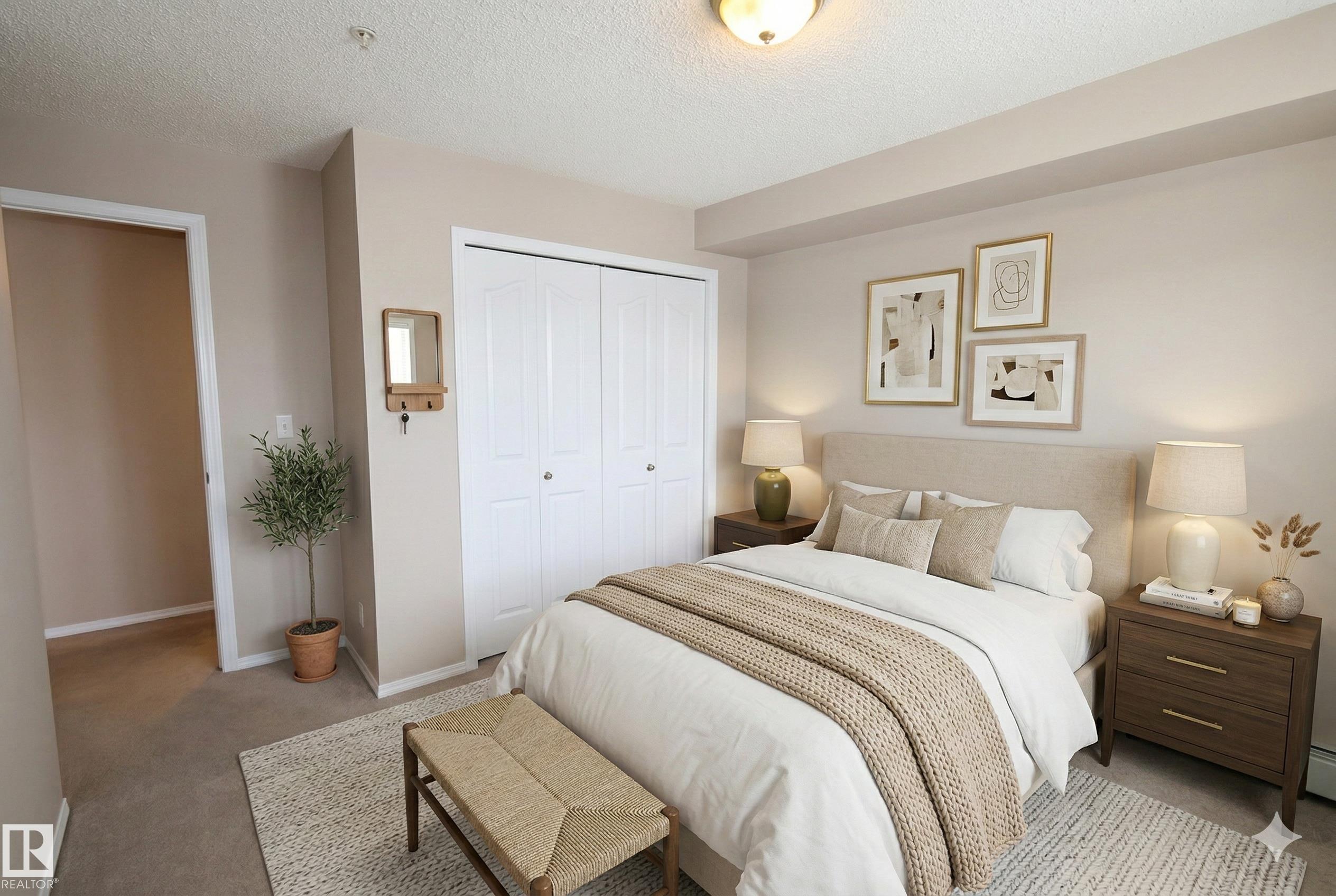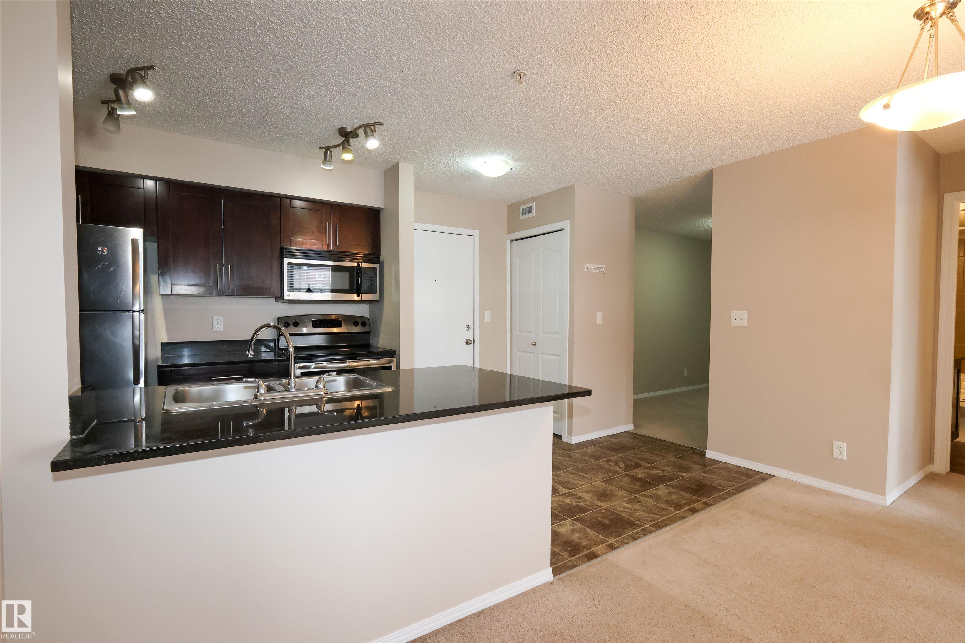 Welcome home to this wonderful 2 Bedroom, 2 Bathroom + Den condo unit w/HEATED UNDERGROUND PARKING. From the spacious entry to the open concept living room, this home is designed for easy living. The kitchen features dark maple cabinets, granite counter tops, double mounted sink, and stainless steel appliances. This home is bright and spacious, with a kitchen that is open to the living room. The master bedroom has a walk-through his and hers closet and 3 piece en-suite. The 2nd bedroom is great size. Suite includes a Den for extra storage space or office use and the convenience of in-suite laundry, and Air Conditioning for those hot summer days. Amazing location, close to Anthony Henday, QE2, shopping and all amenities.