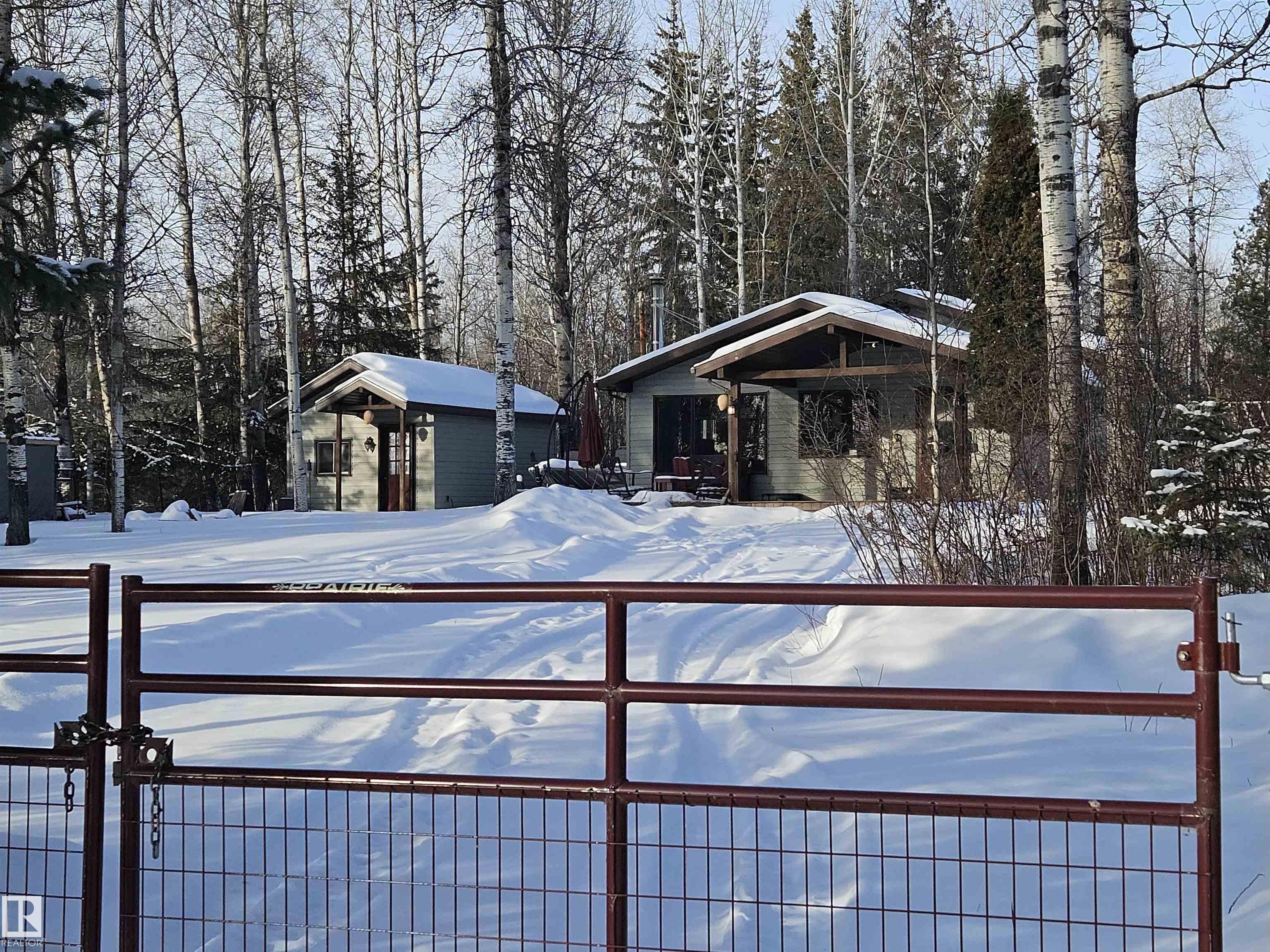 Welcome to the Lake!!!! This beautiful lakeview property starts with an upgraded 2 bedroom, 1 bath home with newer furnace and HWT, remodeled kitchen and Bathroom, including a jacuzzi tub. The primary bedroom comes with built ins, the second bedroom or office has a murphy bed, and both have access to outside for increased privacy when required. The large kitchen and living room has outstanding views of the lake and fantastic natural light. The woodburning stove provides the ultimate ambience for those chilly nights. Outside there is 2 cozy bunkhouses, one even has its own environmentally friendly bath. Fully fenced with 2 car garage and storage its a great place to stage for both summer and winter activities. Just steps to lake for swimming, boating, cross country skiing, sledding or fishing, there are so many great activities right at your doorstep.