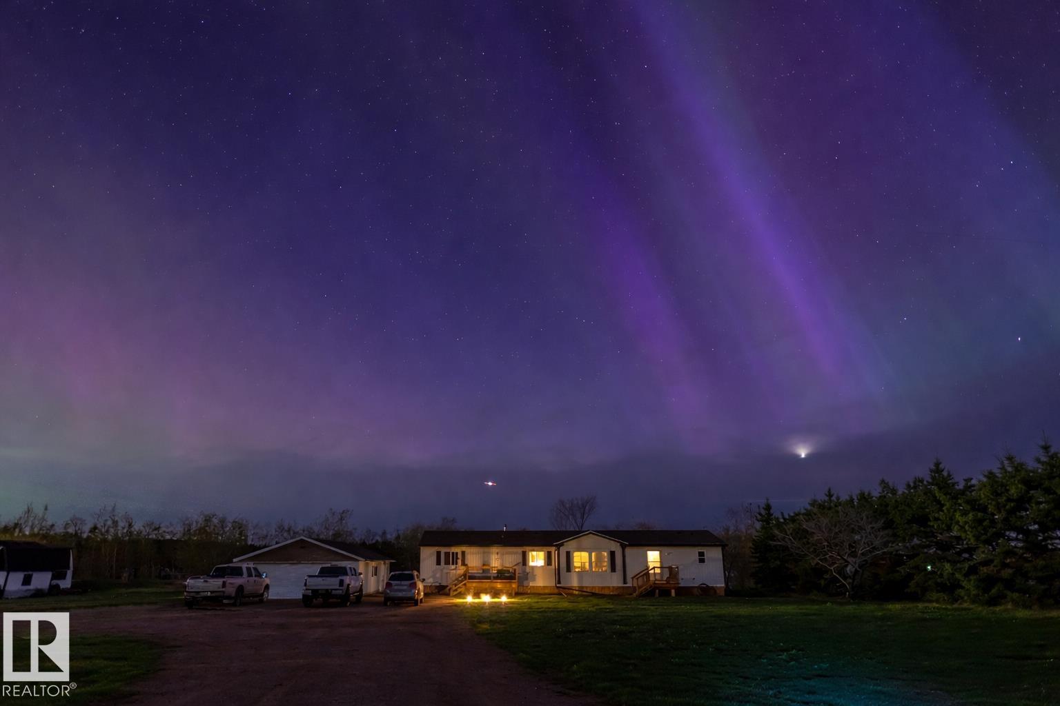 Looking for space to stretch out, start a HOBBY FARM, or finally build that dream workshop? This just-over-3-acre gem delivers freedom with flair! Renovated and refreshed, the home features NEWER flooring, UPDATED front and rear covered decks for sunrise coffees and sunset unwinding, plus a newer roof for added peace of mind. Built on screw piles, it offers smart stability wrapped in country charm. The oversized double detached garage is more than parking--it includes newer windows, a dedicated shop/office area, and even a bathroom already in place (just add a pump and you're set!). Outbuildings galore--sheds and a SEACAN--mean storage is never a problem. And yes, livestock is welcome, so bring the horses, cows, chickens and big country dreams. Bonus: a county-maintained walking trail is near the property, and the subdivision also features a community hall with a playground and skating rink--perfect for year-round family fun. This is where room meets endless possibility! DON'T MISS OUT!