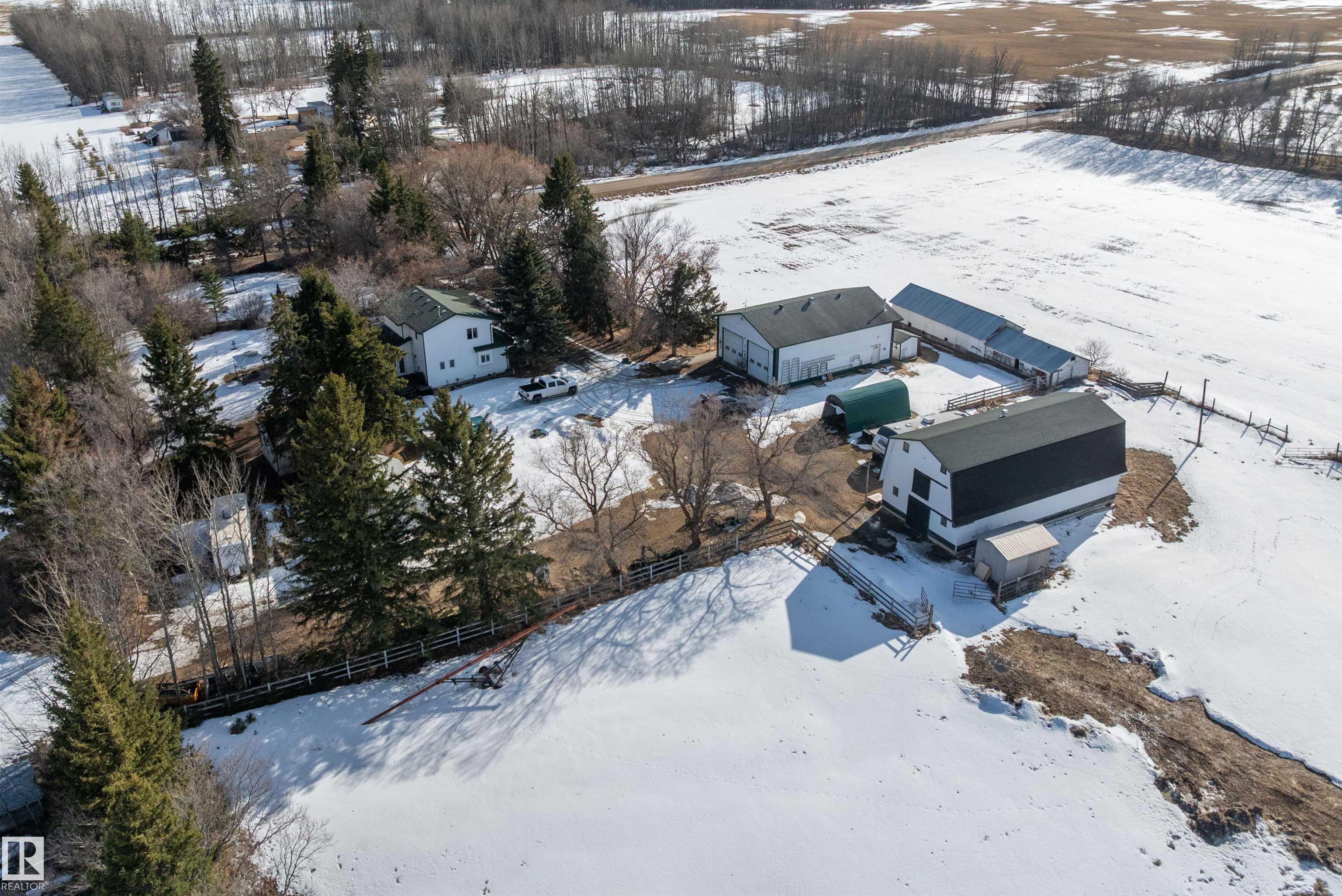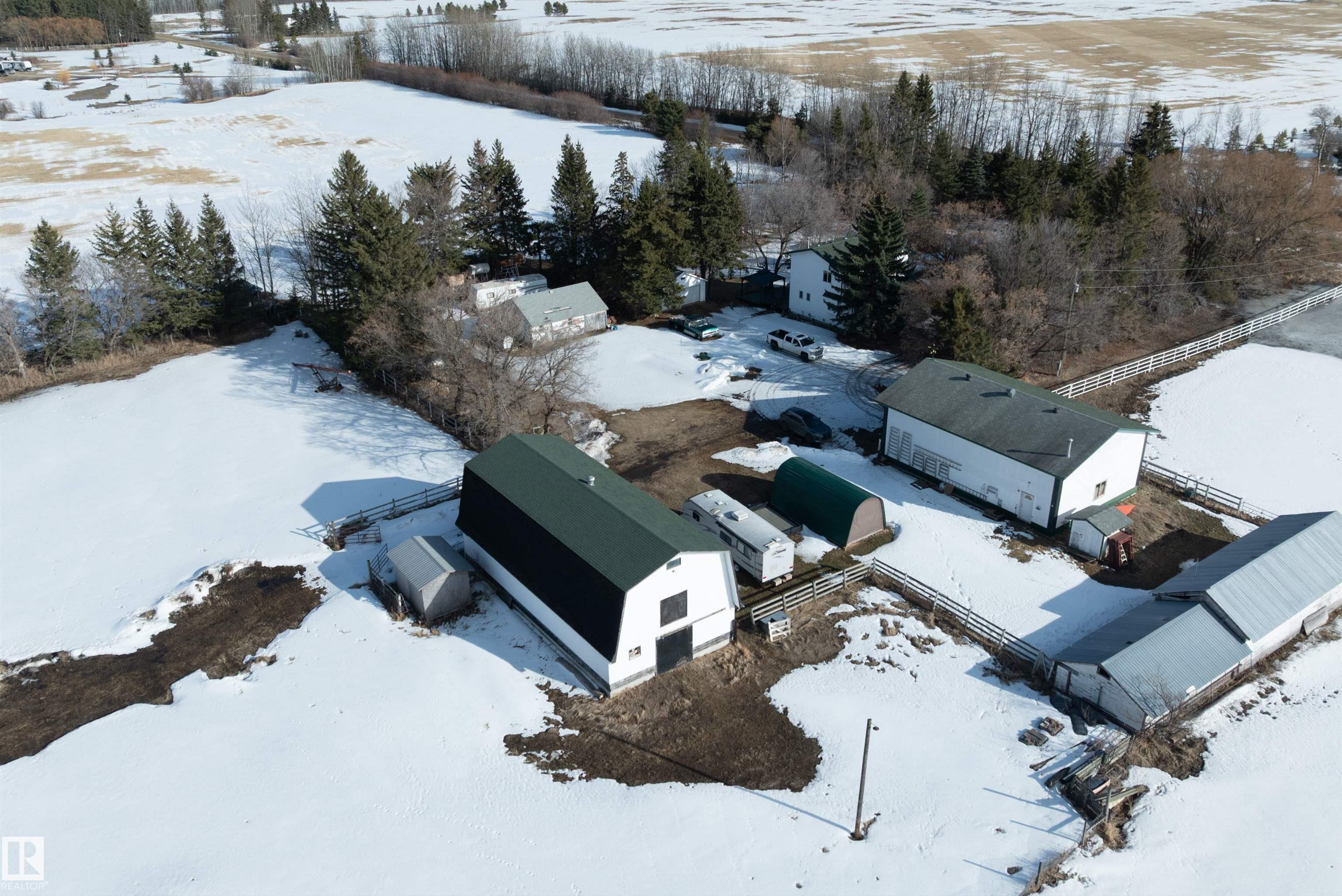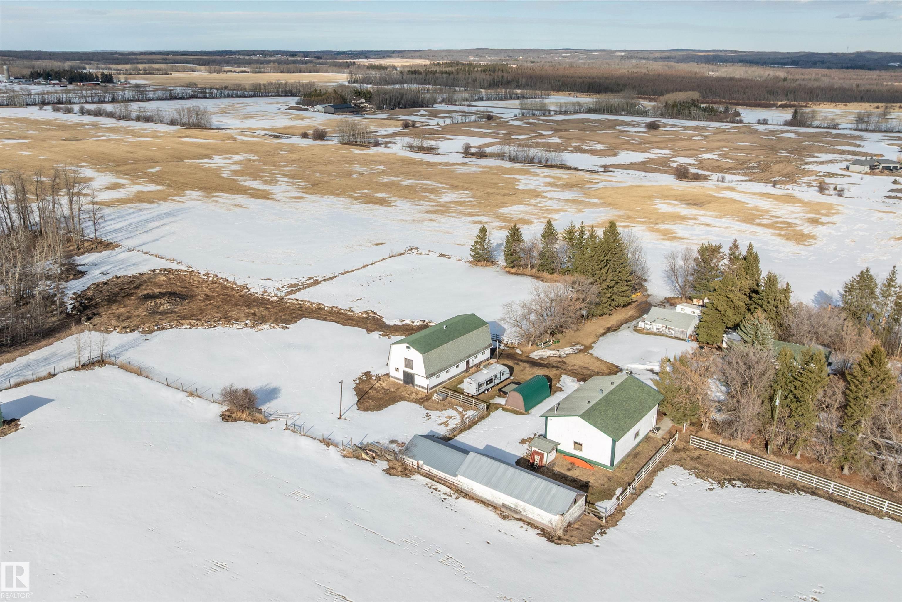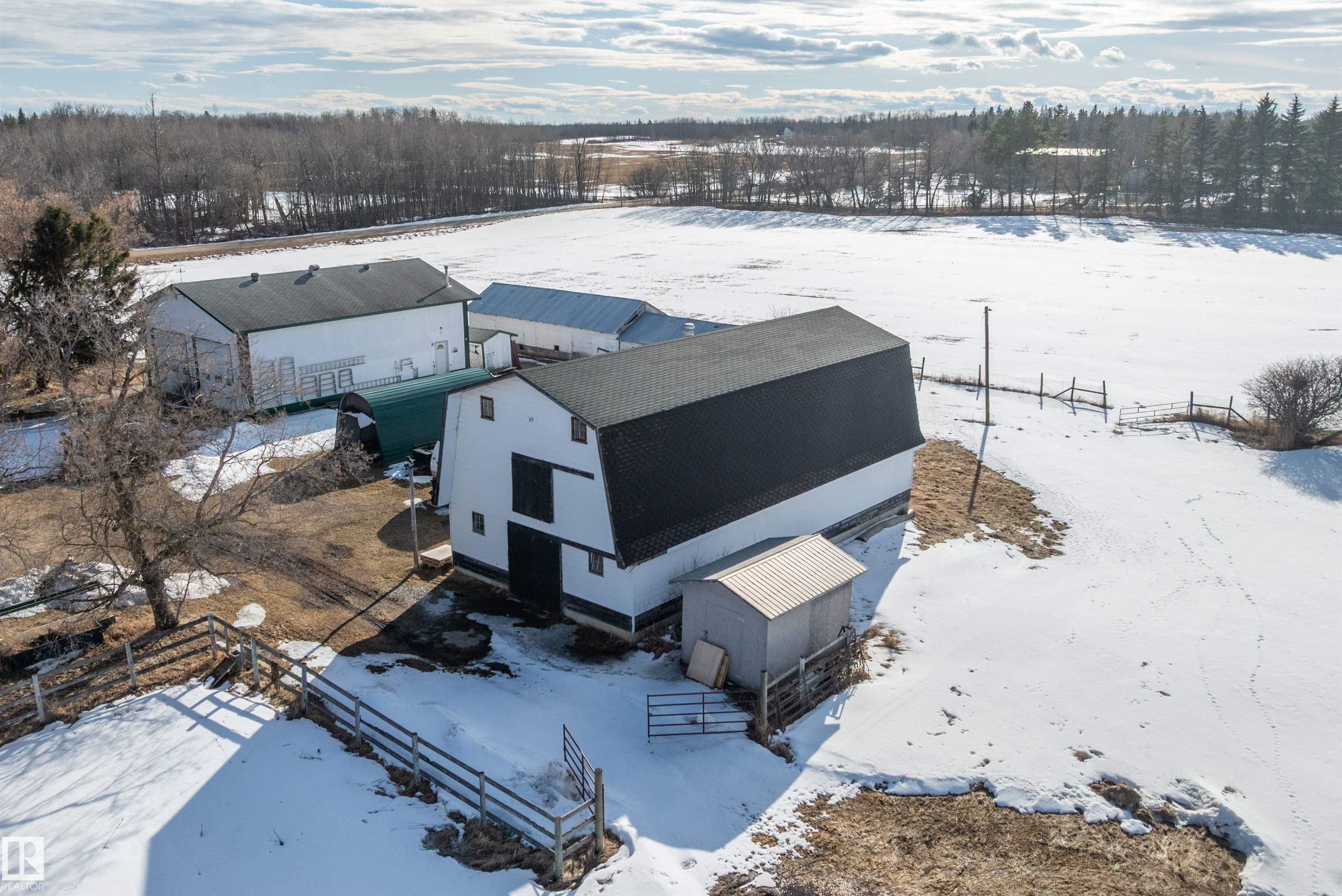 80 Acres with possible one more subdivision off of it . This 1770 sq ft one and a half story home with 3 bedrooms 3 bathrooms and Basement ready to be finished to buyers liking. Doudle detached garage plus a 32ft by 50ft heated shop with mezzanine,220 power. 40 by 80 hip roof barn with box stalls for horses and hay loft. 60 acres under cultivation fenced and cross fenced. Just off of highway 43 near Onoway and 30 minute drive to Edmonton