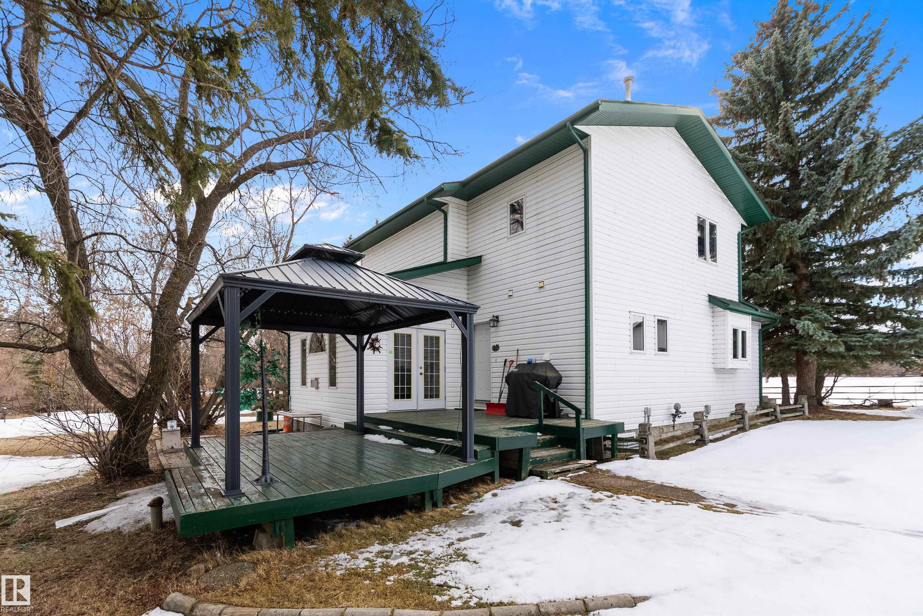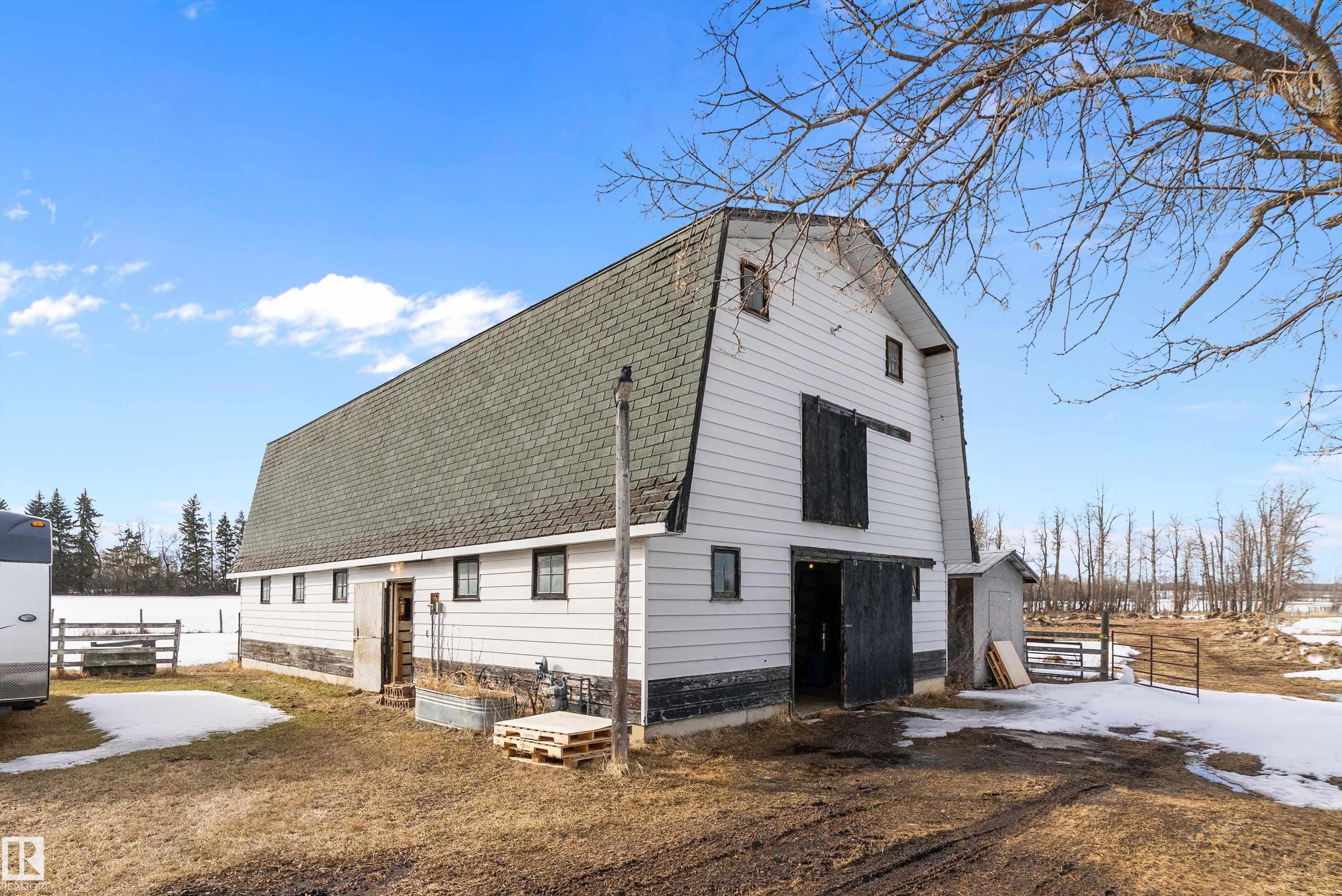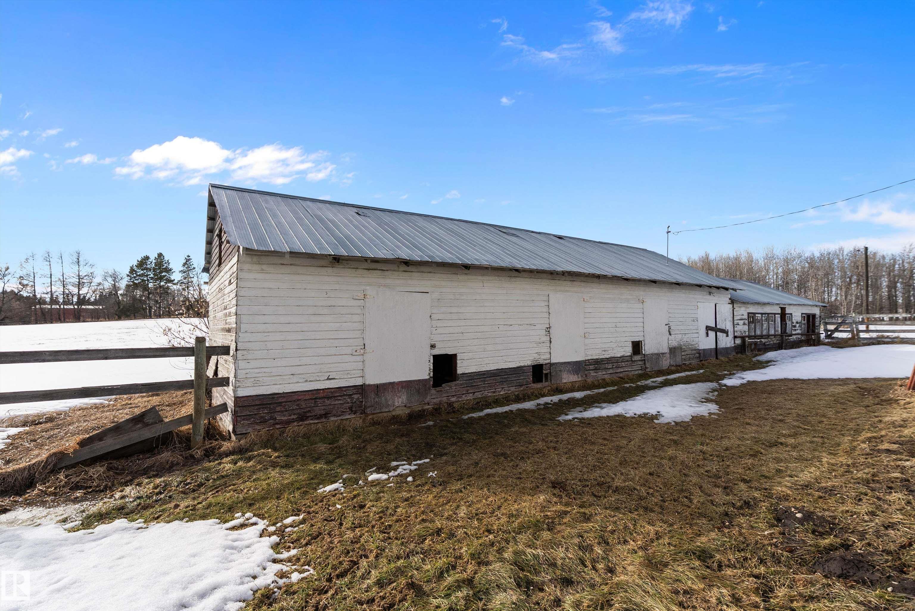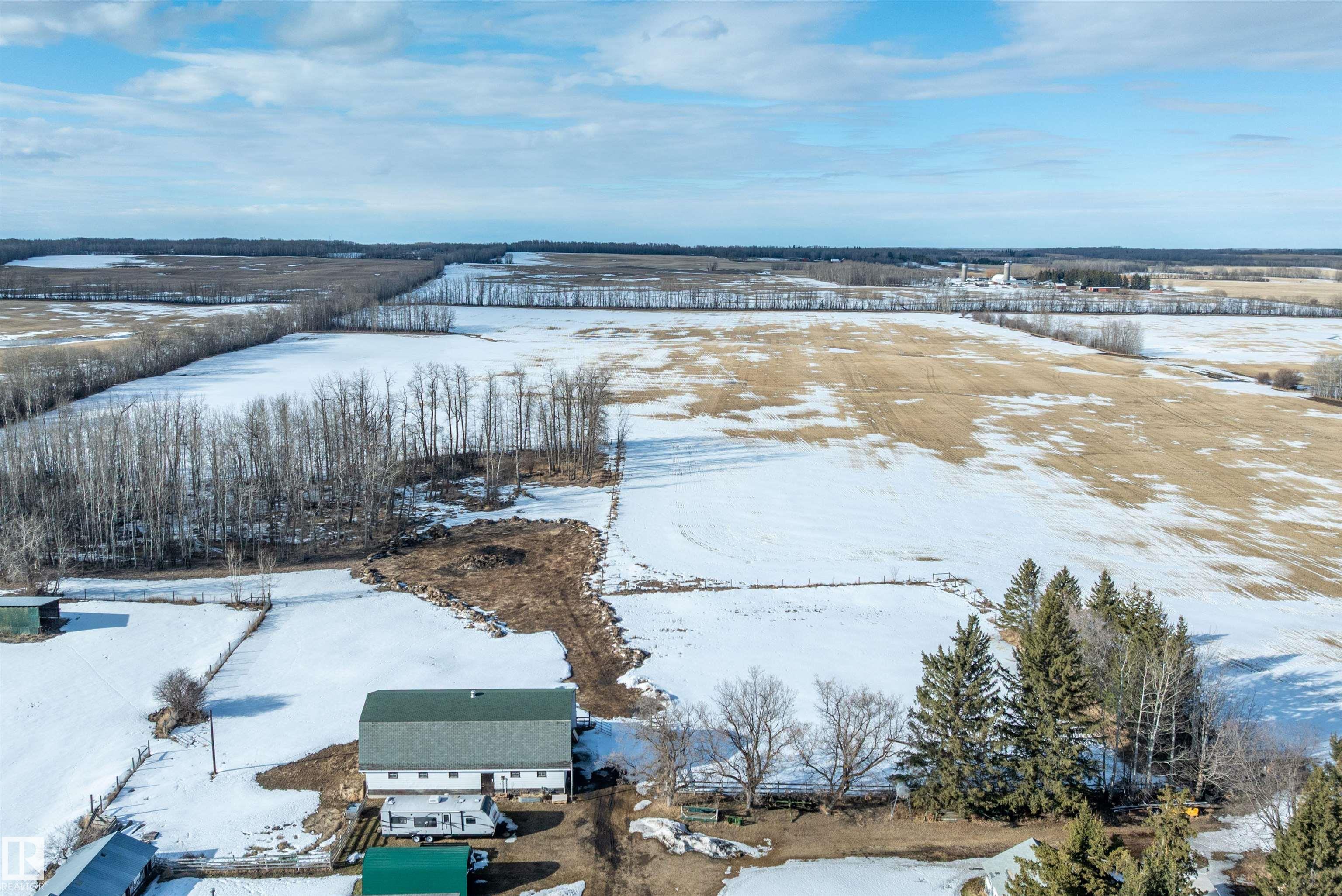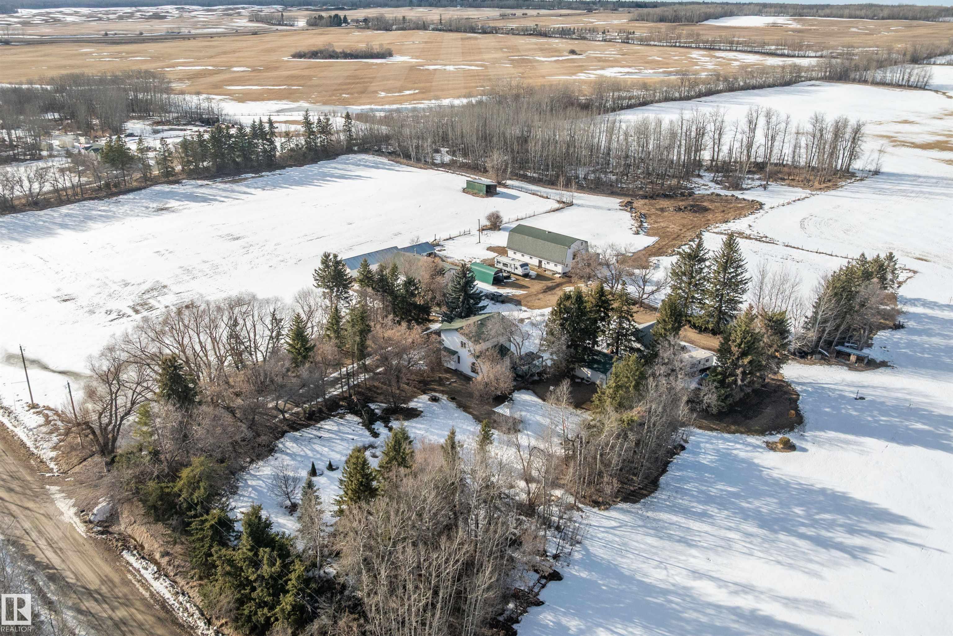 80 Acres with possible one more subdivision off of it . This 1770 sq ft one and a half story home with 3 bedrooms 3 bathrooms and Basement ready to be finished to buyers liking. Doudle detached garage plus a 32ft by 50ft heated shop with mezzanine,220 power. 40 by 80 hip roof barn with box stalls for horses and hay loft. 60 acres under cultivation fenced and cross fenced. Just off of highway 43 near Onoway and 30 minute drive to Edmonton