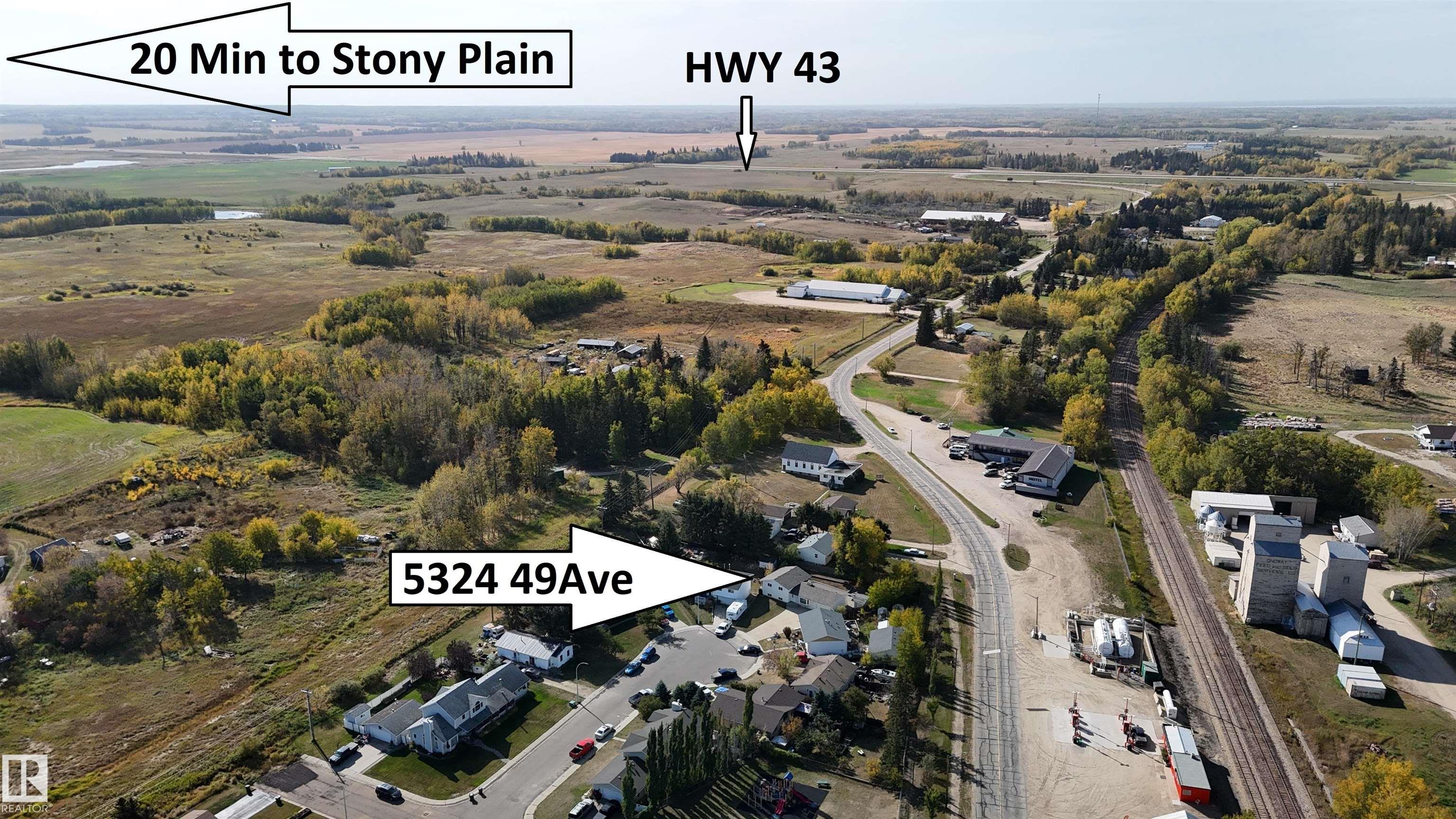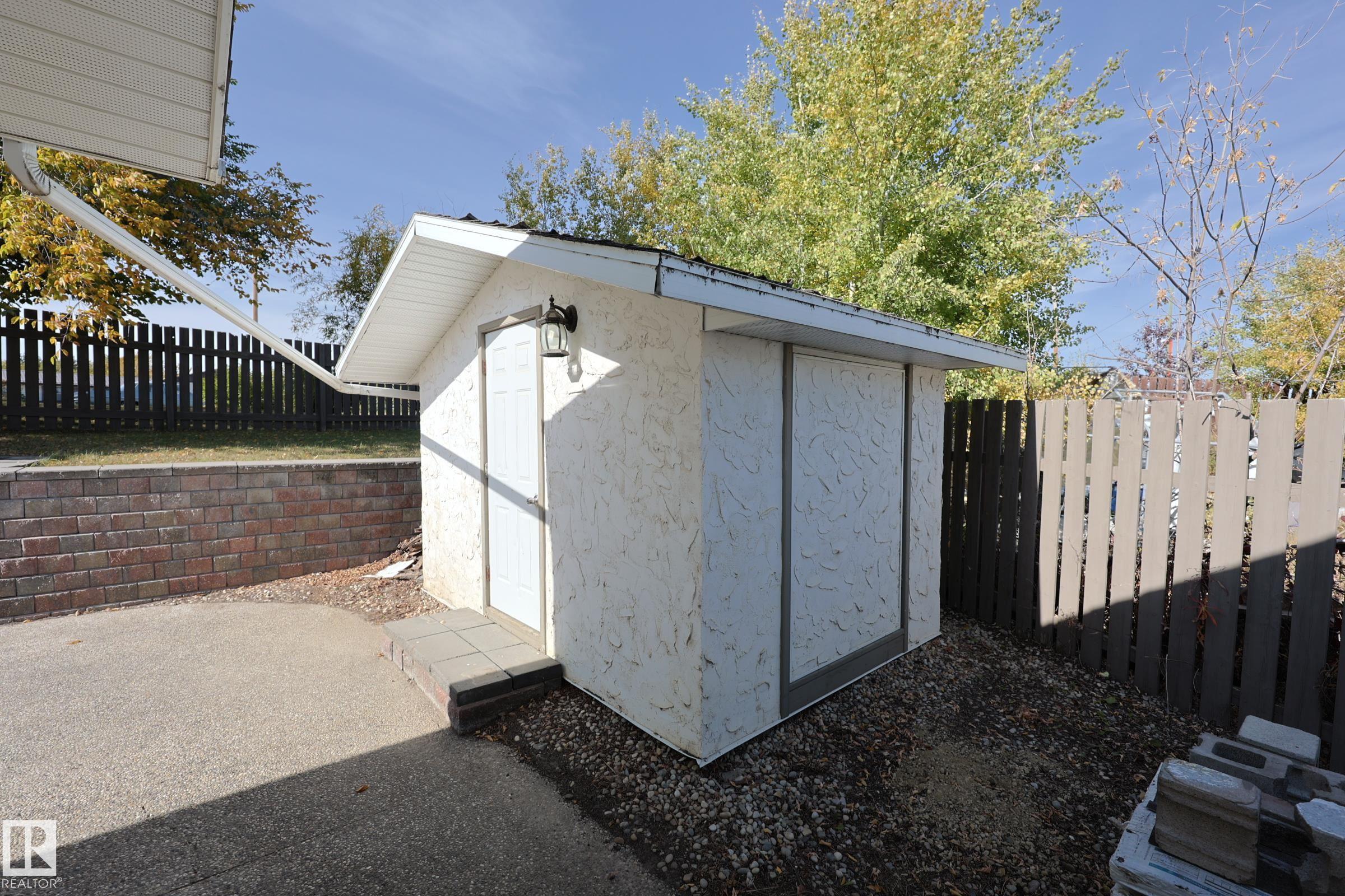 Renovated and Move in Ready! Located on the EDGE OF ONOWAY, close to Amenities, Schools and only 32 MIN TO EDMONTON. PIE LOT at the END OF A CUL DE SAC is nice a quiet. MAJOR UPDATES include, Roof, Windows, Doors, Furnace, Flooring, Paint. BRIGHT LIVING from the BAY WINDOW with real wood and REAL STONE CORNER FIREPLACE. L Shaped kitchen with GAS STOVE, new Countertop, sink and faucet plus a large picture window. Open Dinette with GARDEN DOOR TO REAR PATIO that spans most of the home. Upstairs to the PRIMARY SUITE WITH PRIVATE ENSUITE. Bedrooms 2 and 3 are similar in size with a full bath adjacent. 3rd level with a WIDE OPEN REC ROOM, 4th bedroom, half bathroom and LAUNDRY ROOM. 4th level is READY FOR FUTURE DEVELOPMENT with a cold room set up and dual sump pumps. 16 x 24 GARAGE IS INSULATED AND HEATED, and the Yard is LANDSCAPED AND FENCED FOR PETS with a solid stucco shed to match the house with an ATV door. GREAT OPPORTUNITY AT AN EVEN BETTER PRICE!