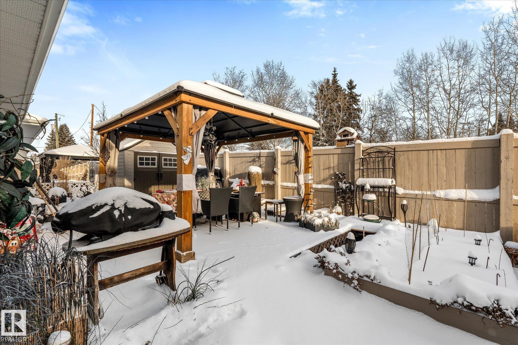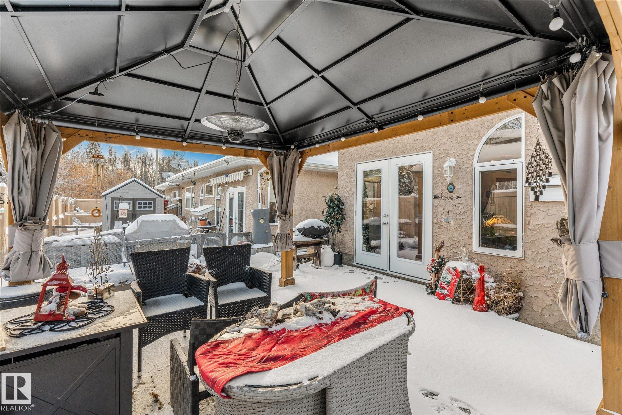 Experience comfortable 40+ living in Calibur Point Villas, a small and private enclave in Onoway. This duplex provides easy one level living with 2 bedrooms, 2 bathrooms, an attached garage, and an unexpectedly spacious yard. The interior feels open and inviting, featuring warm in floor heating that carries into the garage, high ceilings, a gas fireplace, and patio access for relaxing outdoors. The kitchen is practical and well laid out, offering plenty of oak cabinetry, an island for extra prep space, and a pantry for storage. The primary suite includes its own bathroom with a walk in shower and a generous closet. Wide passages and the stair free design enhance accessibility throughout the home. With only six units, the complex offers a quiet atmosphere, stucco exteriors, paved parking, and a fenced perimeter. Close to local amenities, this property offers a low maintenance lifestyle in a friendly, convenient location.