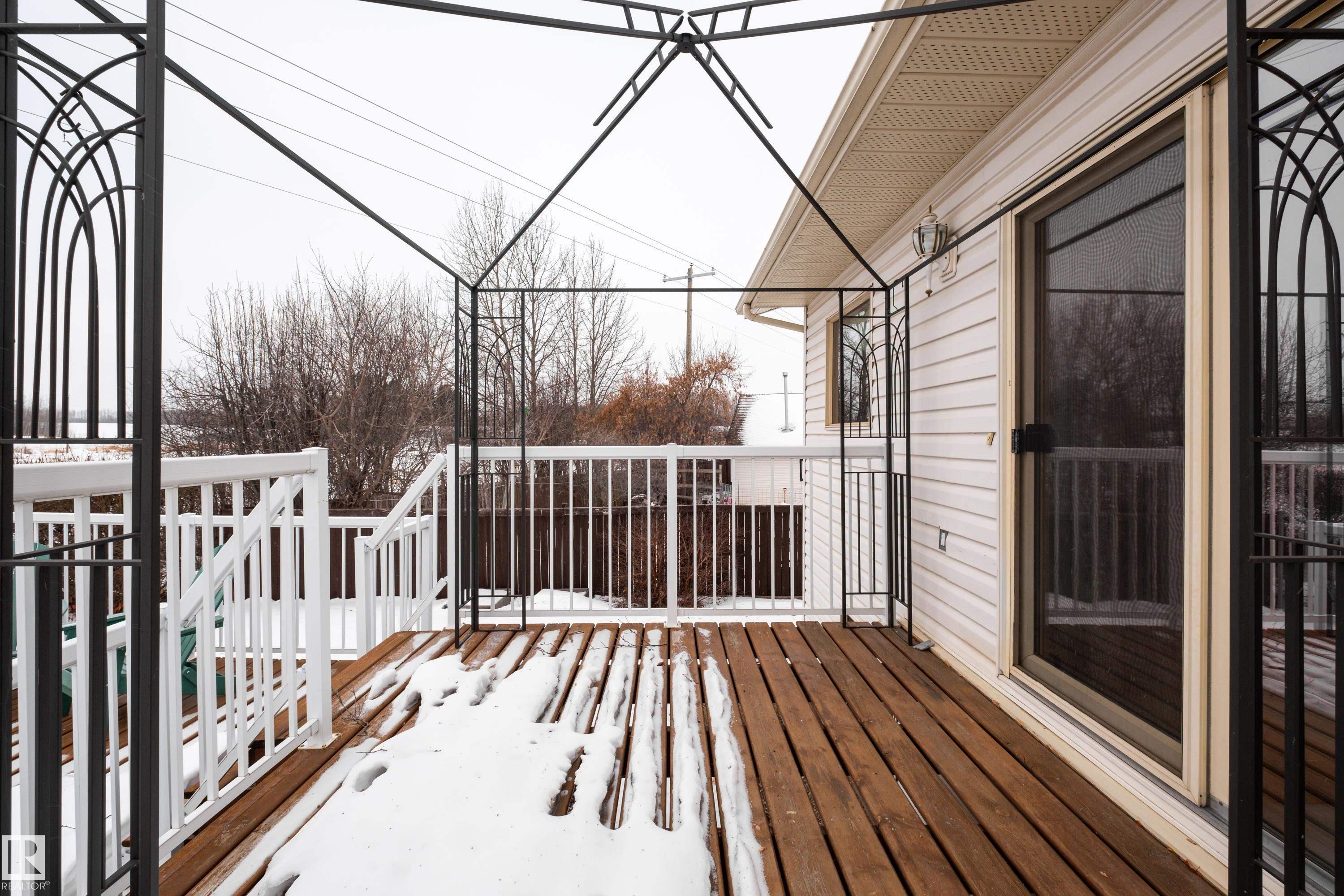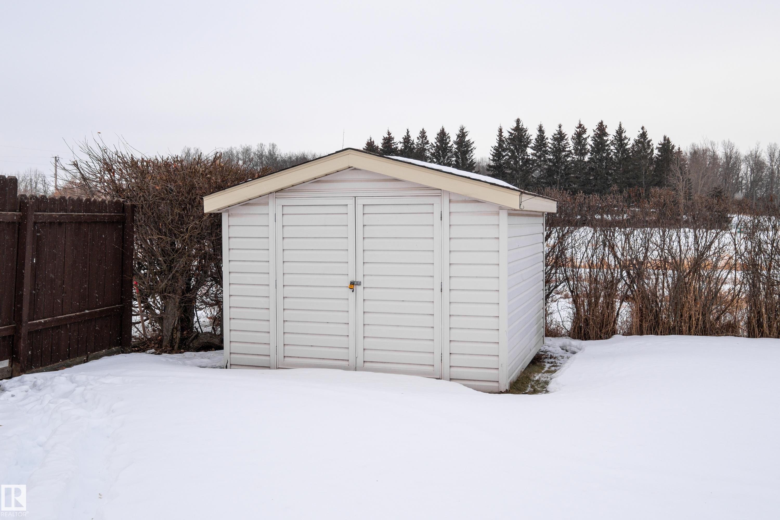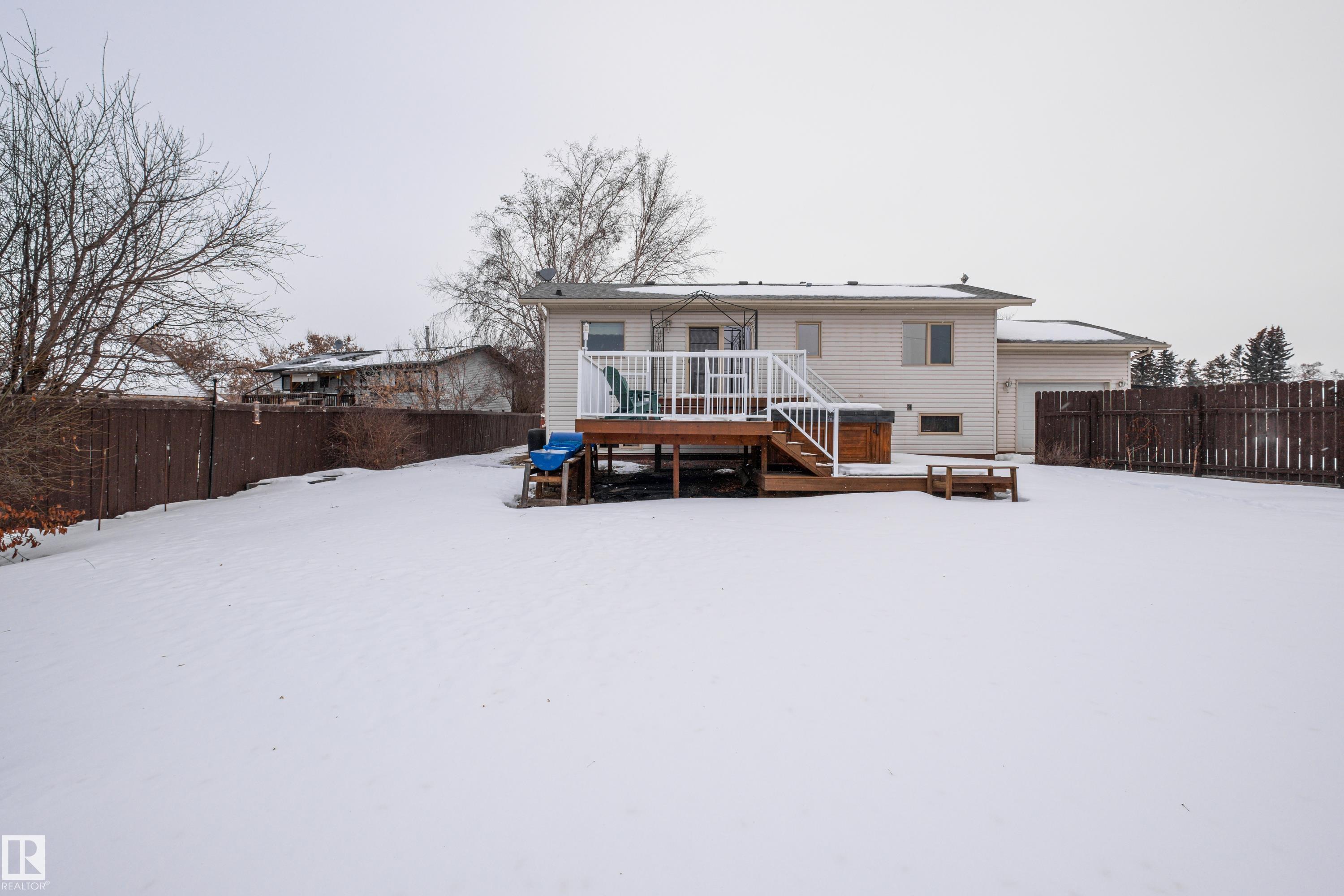 Meticulously kept, turn-key bi level ready for a new family to call it home! This custom built, second owner home sits on a generous 10,000+ sqft pie shaped lot backing a farmers field in a quiet cut de sac. Numerous upgrades over the past 12 months include Poly-B removal, new furnace and hot water tank, new washer/dryer, built in dishwasher and carpet so all the heavy lifting has been done. This unique floor plan boasts a main floor vaulted ceiling that lets in an abundance of natural light, 4 beds & 2.5 bath including a 3 pce ensuite, an oversized single attached garage, RV parking, multi tiered deck, storage shed and so much more! Location is key as you're within walking distance to all Onoway amenities and with no neighbours behind this home is a clear winner.