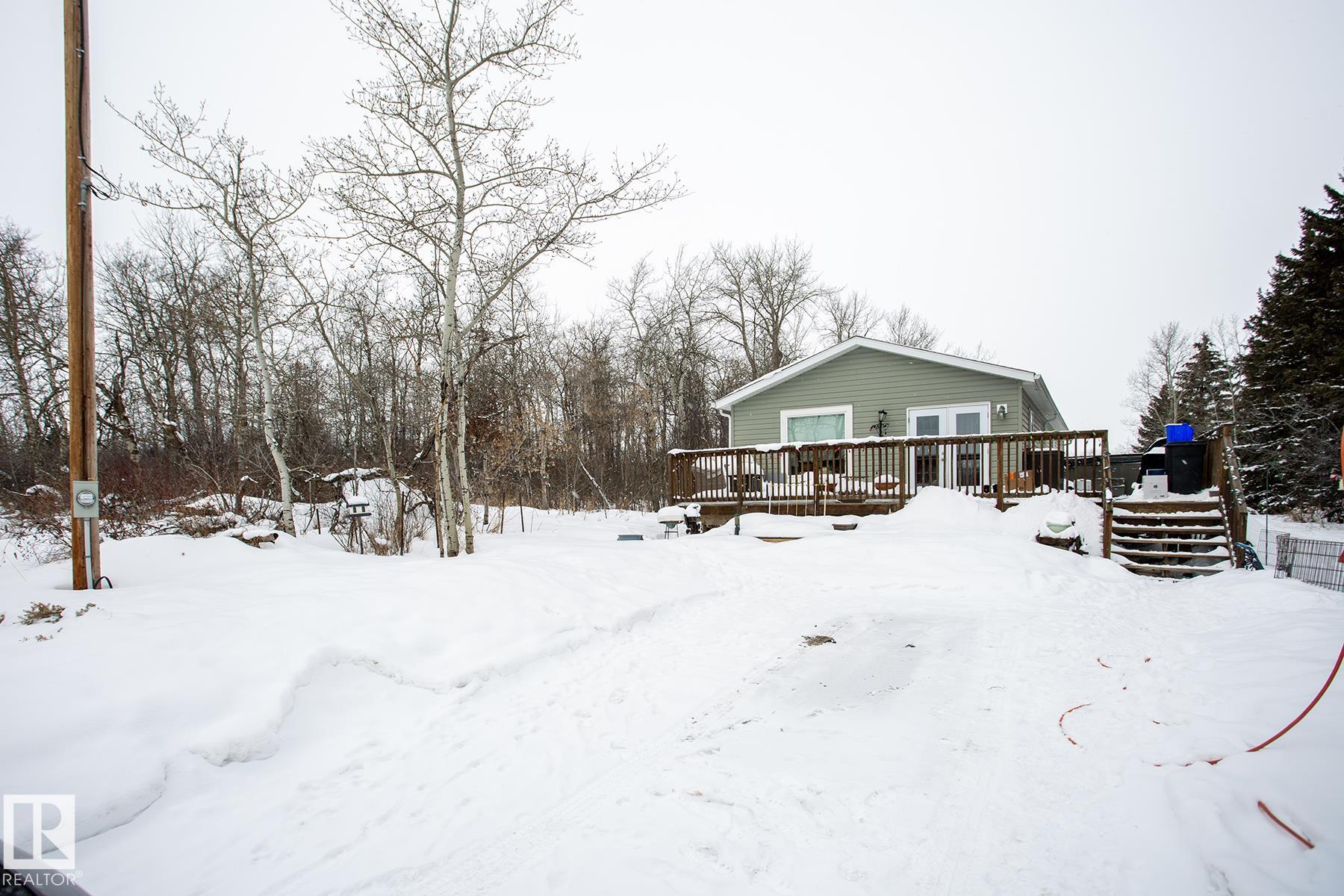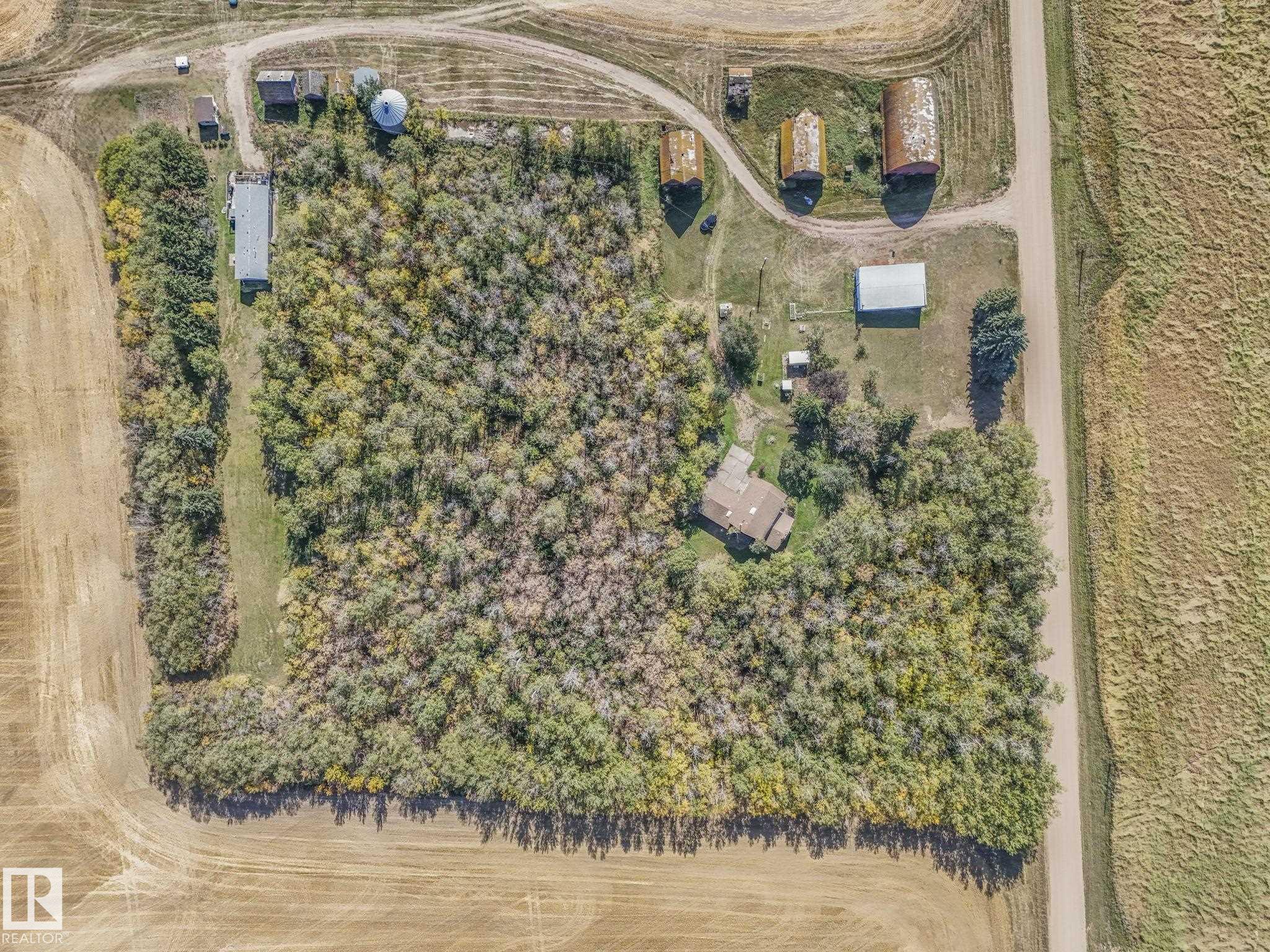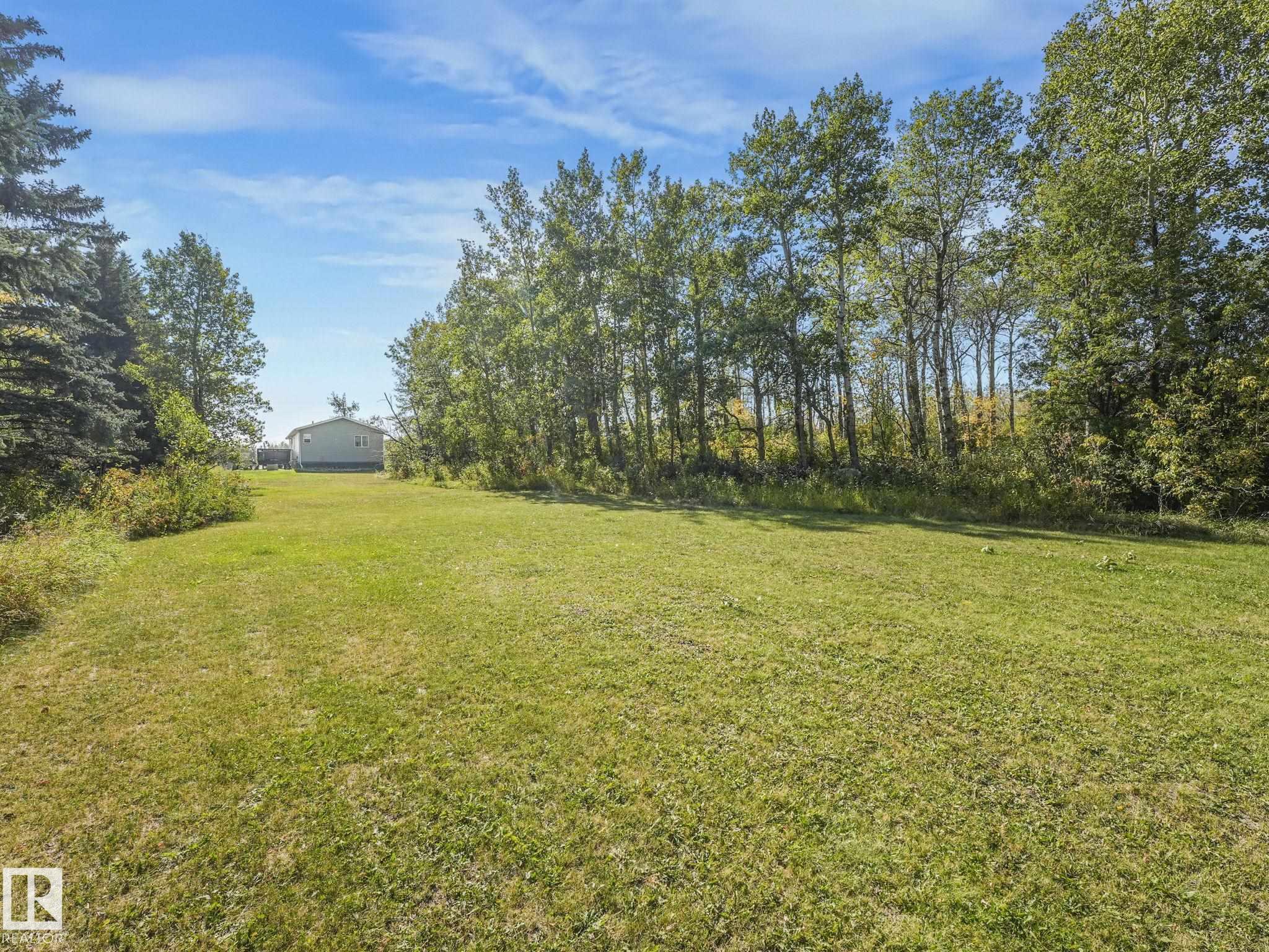 Hobby farmer? Need space for your business? Beautiful acreage living out of a subdivision surrounded by farmland. Ultimate privacy! 12 min to Morinville, 25 min to Edmonton, 4 min to Bon Accord. Live in the 2019 mobile home - set far back from the road and surrounded by lush trees. Reno the uninhabited log home. Many options to add value! The mobile home has all the modern amenities - 2 bedroom, 2 bathroom including a luxurious ensuite with a huge soaker tub, double vanity and large walk in shower. Open concept kitchen, dining, living room allows you to make the space your own - large table for family dinners or game nights, space for yoga and meditation or add in a cozy reading nook. Large deck helps you enjoy the summer nights. Vegetable garden already here as well as a large backyard with supple grass. Single car garage is great for storage. Many outbuildings to bring back to life including an electrified shop. Perfect location for country living but close enough to enjoy all the city amenities.