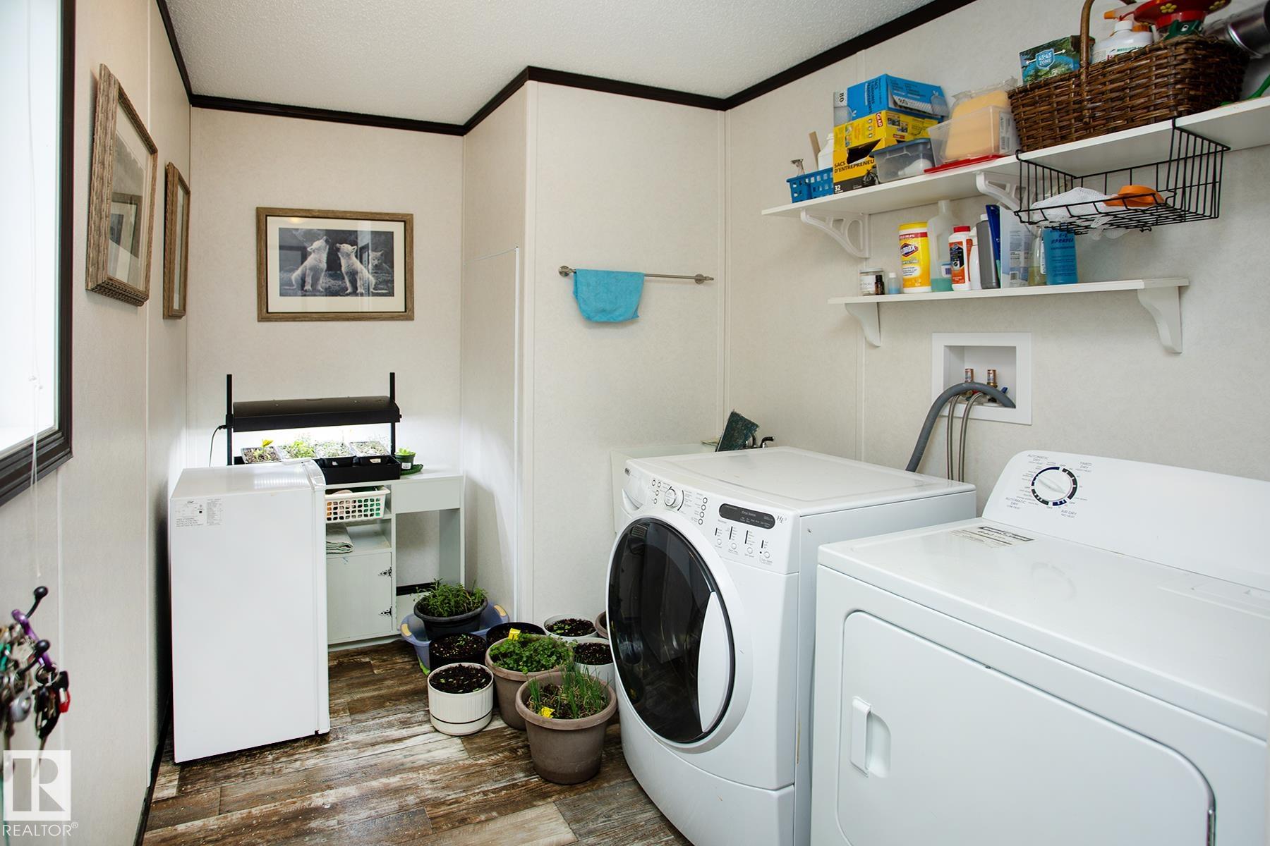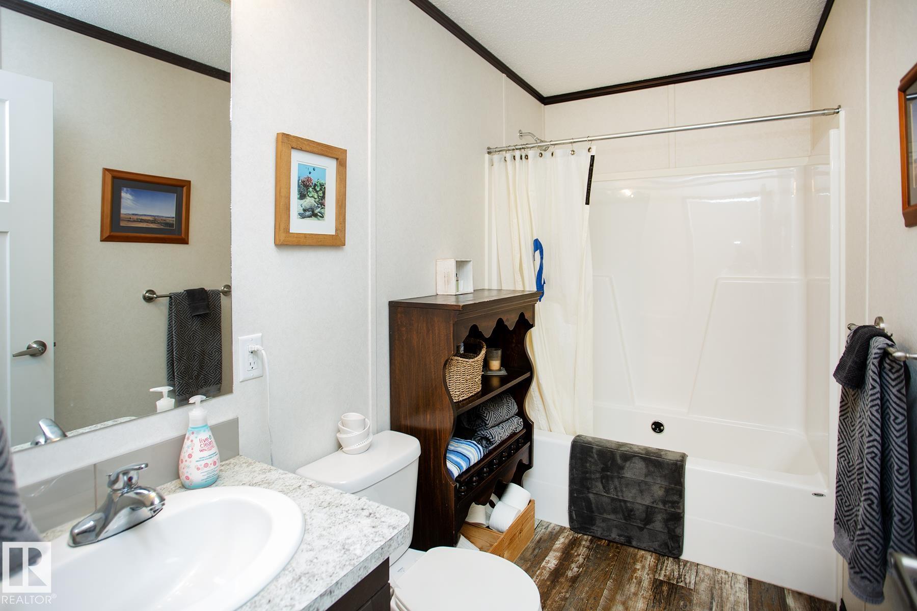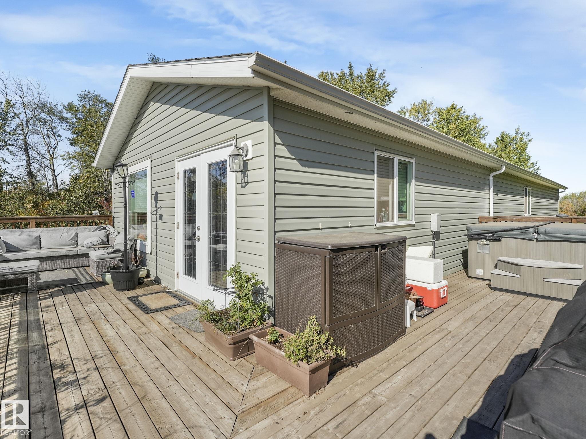 Hobby farmer? Need space for your business? Beautiful acreage living out of a subdivision surrounded by farmland. Ultimate privacy! 12 min to Morinville, 25 min to Edmonton, 4 min to Bon Accord. Live in the 2019 mobile home - set far back from the road and surrounded by lush trees. Reno the uninhabited log home. Many options to add value! The mobile home has all the modern amenities - 2 bedroom, 2 bathroom including a luxurious ensuite with a huge soaker tub, double vanity and large walk in shower. Open concept kitchen, dining, living room allows you to make the space your own - large table for family dinners or game nights, space for yoga and meditation or add in a cozy reading nook. Large deck helps you enjoy the summer nights. Vegetable garden already here as well as a large backyard with supple grass. Single car garage is great for storage. Many outbuildings to bring back to life including an electrified shop. Perfect location for country living but close enough to enjoy all the city amenities.