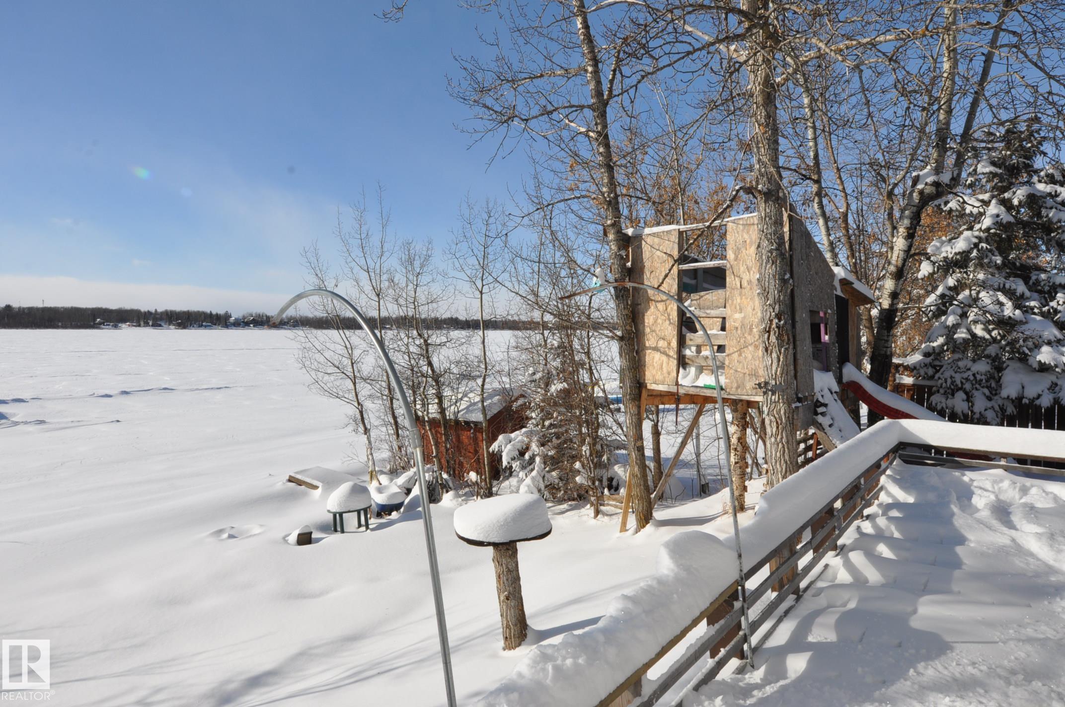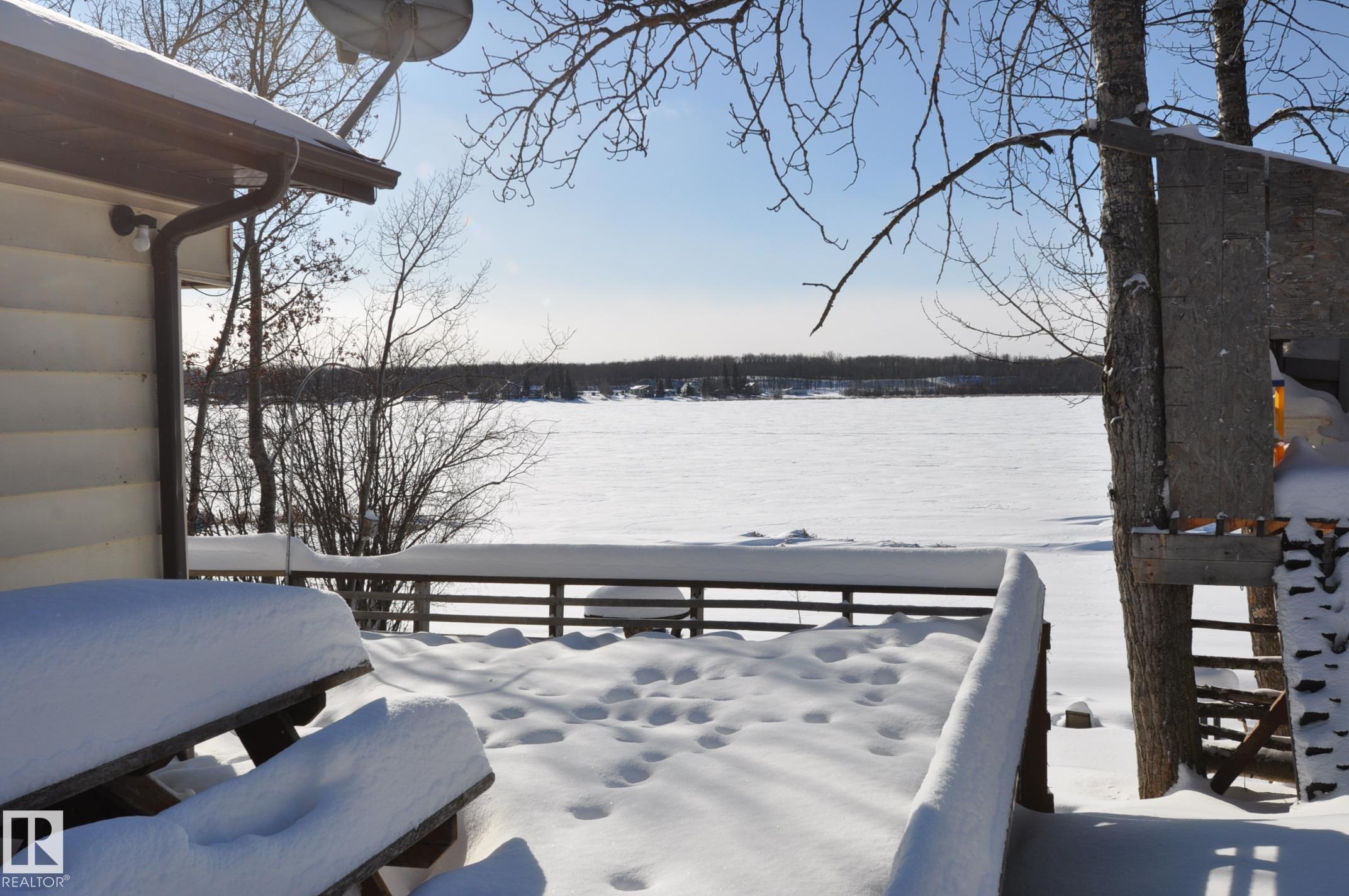 LAKE FRONT LIVING! Here's your chance to enjoy a year-round lakefront home or create the perfect weekend summer getaway. This 2-bedroom Manufactured Home w/addition sits on a fully serviced lot in Sandy Beach complete with a drilled well, septic holding tank, power, natural gas and phone. The open floor plan offers a cozy living room with large south-facing windows, a spacious kitchen, a generous dining area, two bedrooms, and a 4-piece bath. Access to the back deck off the boot room or wrap around from the front deck. Start your mornings with coffee overlooking the peaceful lake and end your evenings by the fire pit. The yard is lined with trees and includes a storage shed, tree-house, oversized single detached garage and a landscaped yard all located on a quiet street along the school bus route, you'll have plenty of outdoor activities and nature trails in Sandy Beach, plus quick paved access to Morinville, Onoway, Spruce Grove, and St. Albert. With some updating this home can be your year round oasis!