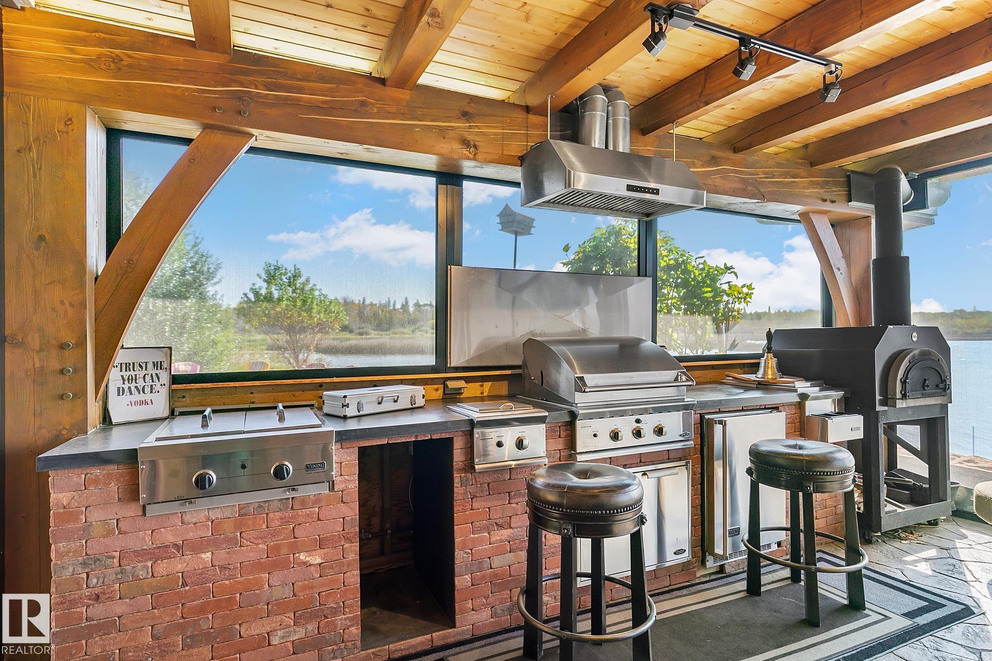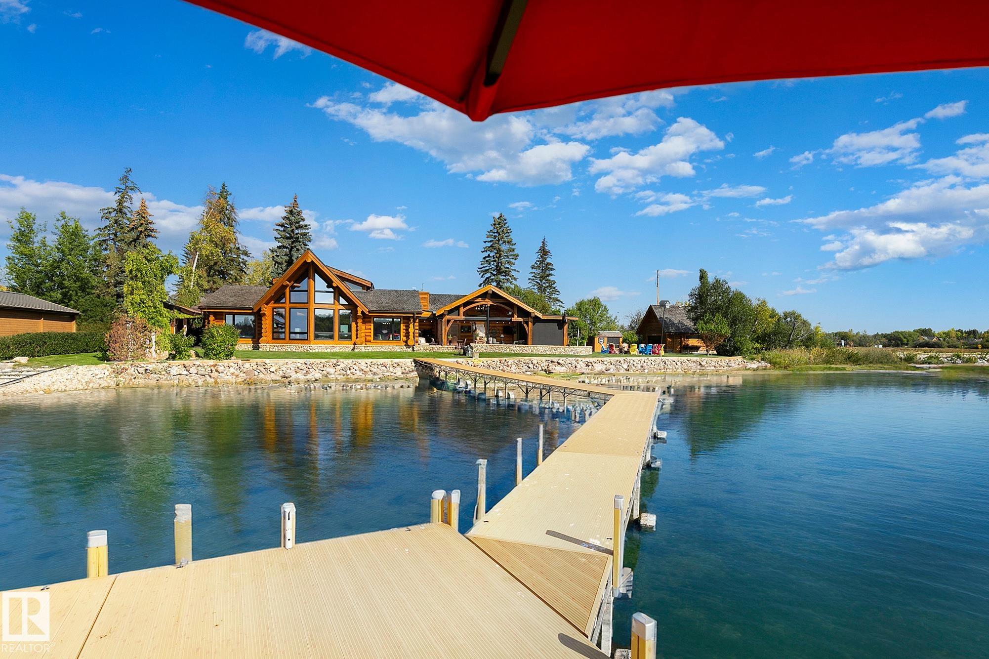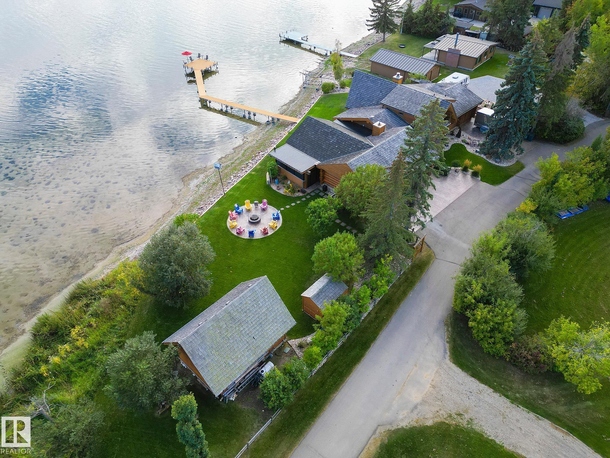Rare LAKEFRONT resort offered just in time for lake season! Imagine watching the sunrise over the lake & playing hockey on your own ODR, until sundown. HEAVENLY! Truly enjoyable in all 4 seasons. Connected by a private causeway, this divine half-acre property offers over $700,000 in upgrades. Pride of ownership exudes. Enjoy a 200-ft sandy beach with a rebuilt storm wall, a new Floe aluminum-cedar dock, & boat trolley, making it effortless to launch your boat at your convenience. The home features 50-year cedar shakes, triple-pane low-E windows & copper eavestroughs. Inside, you'll find a Wolf gas range, a Sub-Zero fridge, stone countertops, & quality cabinetry, along with updated stamped concrete & tile flooring, a spa-style steam shower & fresh paint. Outdoor living shines with a heated, enclosed patio featuring a fireplace & gas heaters, a built-in BBQ, a fire pit & beautifully landscaped, irrigated grounds, a turn-key lakefront getaway with history, community spirit & modern luxury.