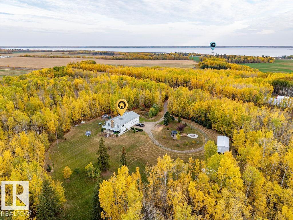 SPECTACULAR, modern LAKESIDE RETREAT! a perfect blend of country, privacy, adventure, and amenities. Set on a beautiful 27.8 Acres treed PARADISE! Just minutes from Lac Ste Anne, this 3-bedroom, 2.5-bath home offers bright open-concept living Kitchen features a gas stove, SS appliances, and a stunning stone fireplace. Upstairs, the primary suite opens onto a deck, that spans the width of the house, where you can enjoy peaceful treetop views. Outside, discover kms of quad trails, gravel pit, & several outbuildings for hobbies or storage. Evenings are best spent around the fire pit under the stars, surrounded by fruit trees and fresh air. Backup solar equipment, Heatmor wood fired boiler for infloor heating, Huge heated attached workshop w/ Loft & enough room to park your RV! & store vehicles (39'x45.6') this property offers true independence. Can choose to be fully off grid or on. Boating, golf, and trails nearby--this isn't just a home; it's a lifestyle built for those who crave space, nature, & freedom.
