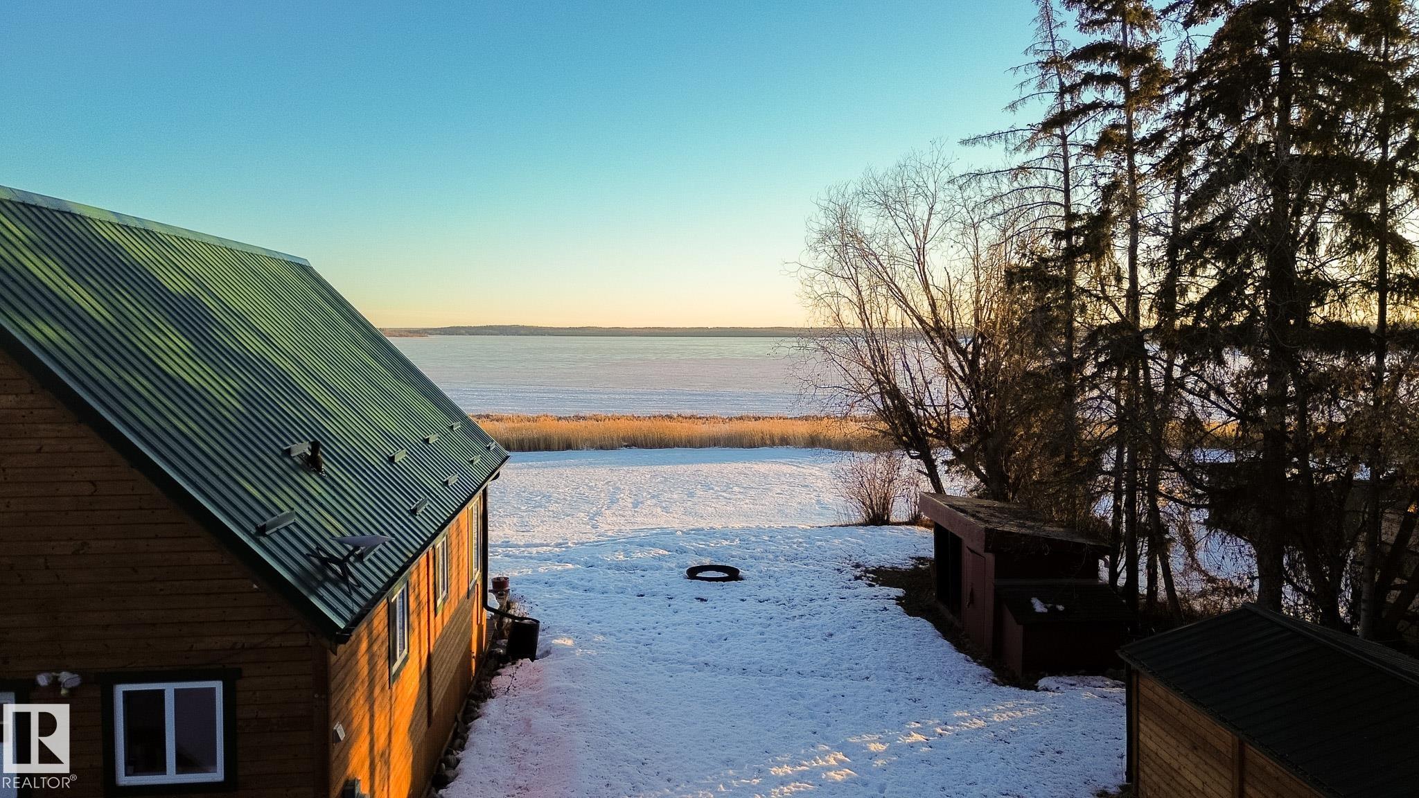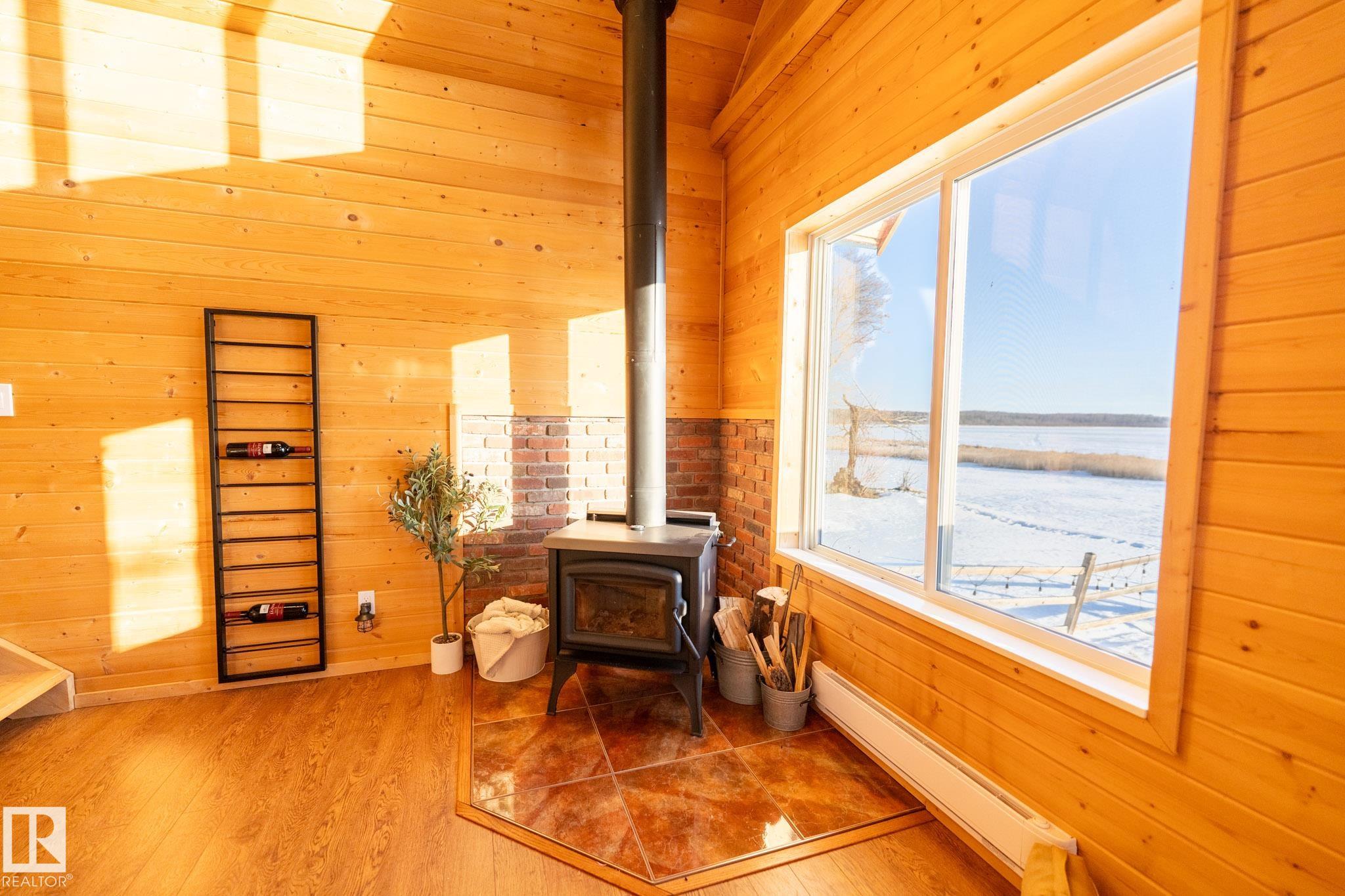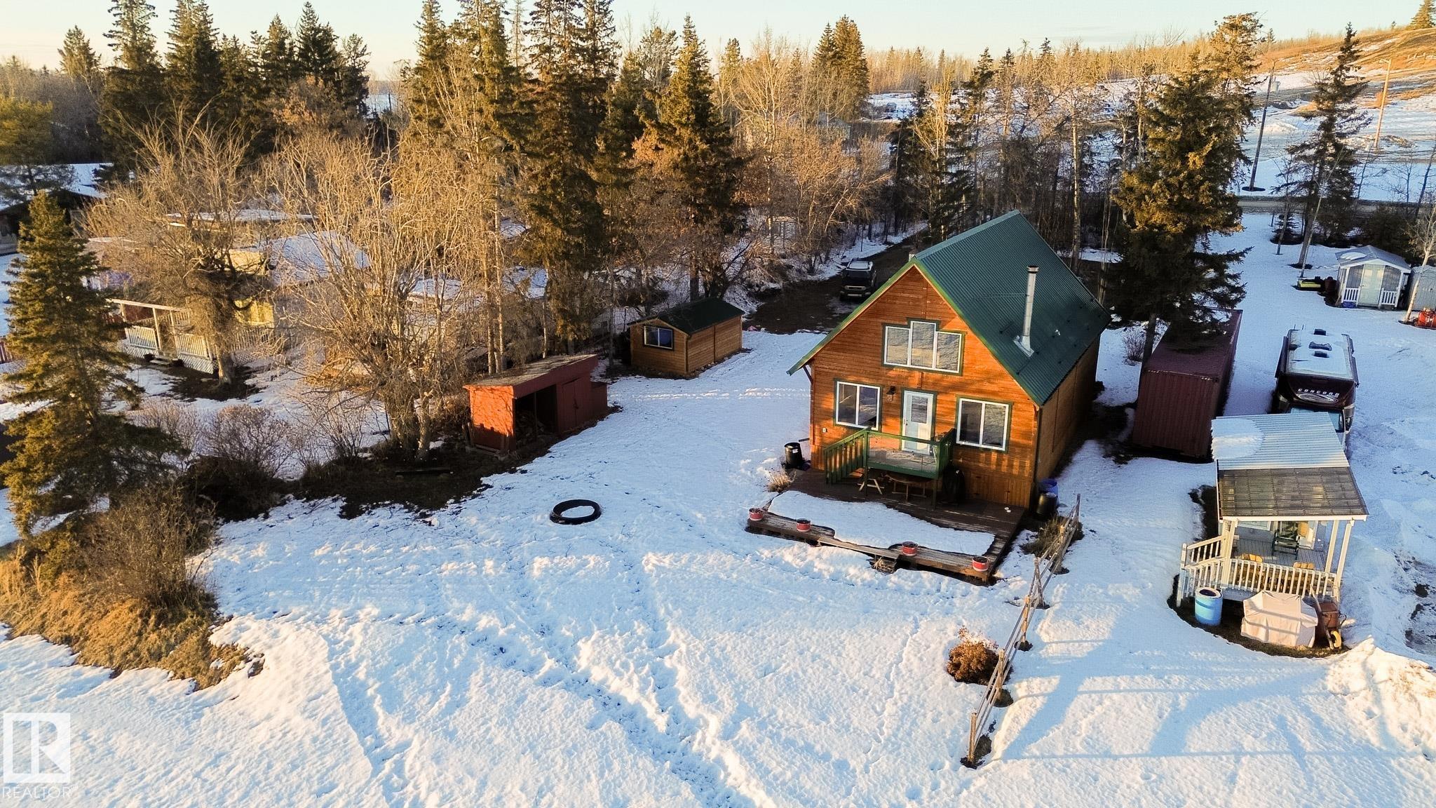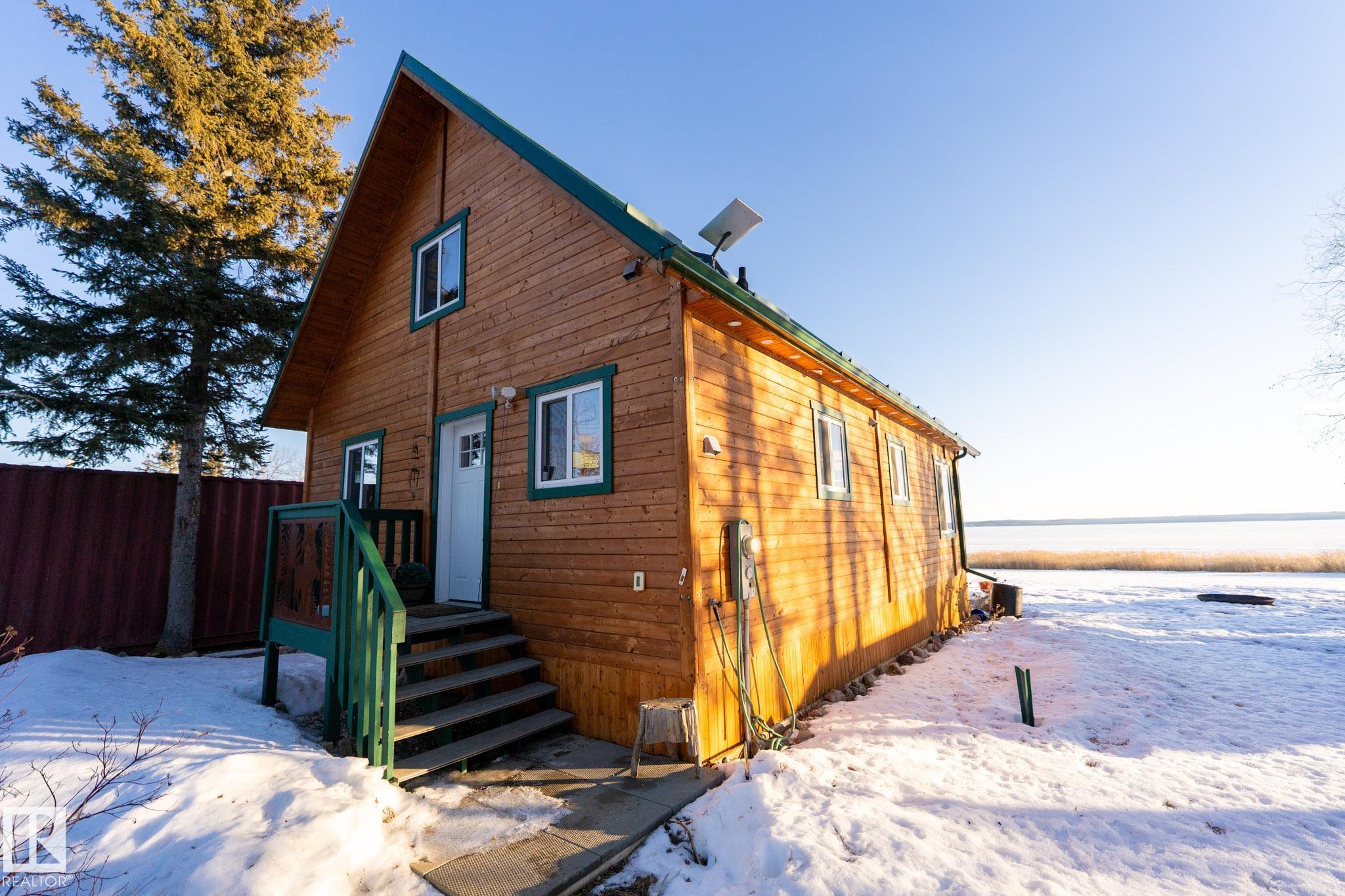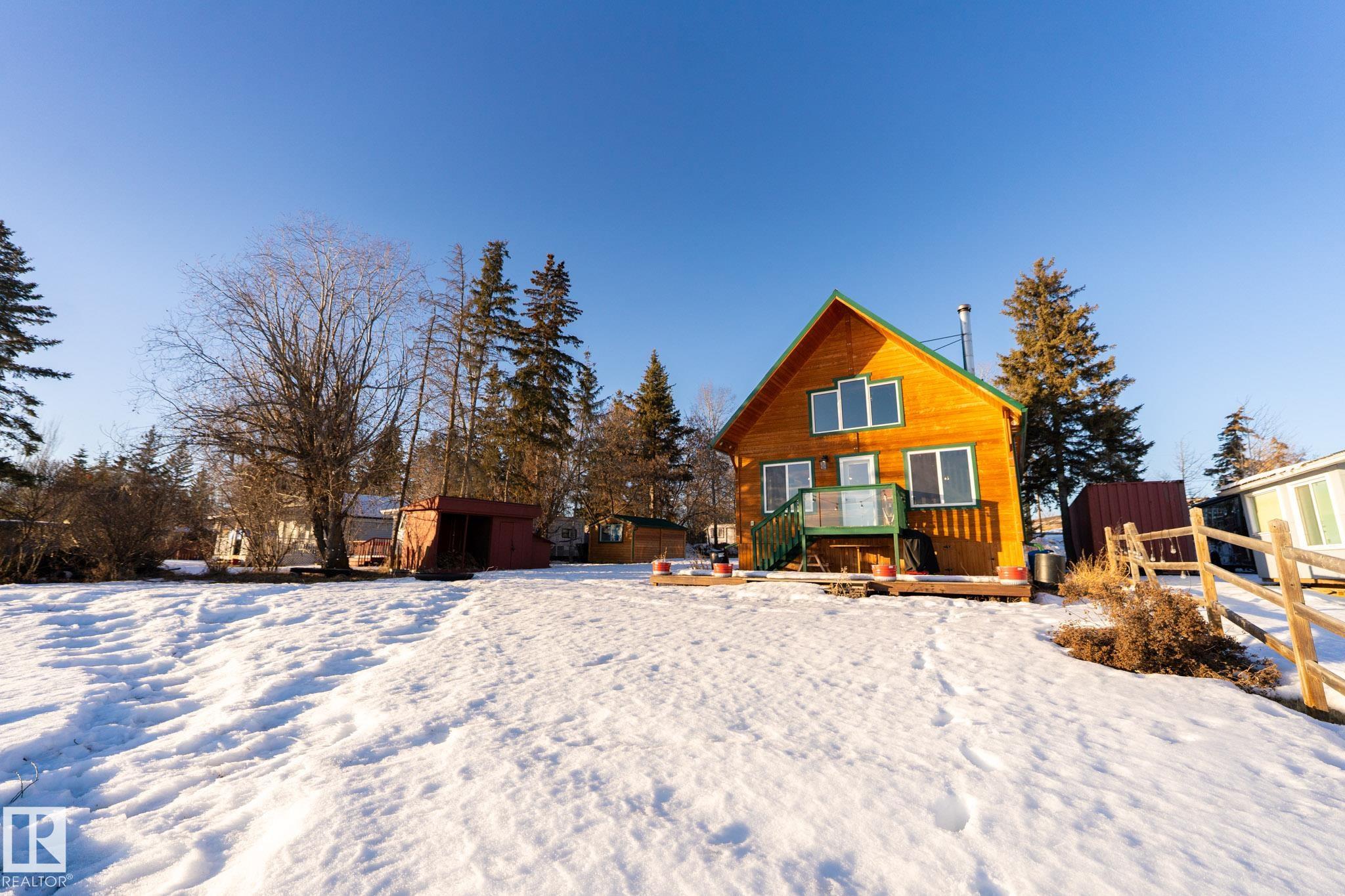 Neverending memories will be created here at this Lakefront home on Sandy Beach, locateded on the south shore of Lac Ste. Anne. This custom chalet-style home sits on 2 Lots and offers direct lake access. With stunning west-facing views, and a peaceful setting just steps from the water. Built in 2016, the home features an 18-foot vaulted ceiling with an open-concept kitchen, dining, and living area designed to capture natural light and lake views. The main floor includes a bedroom, 1.5 bathrooms, and quality wood finishes throughout. A loft overlooks the living space and provides additional sleeping or lounge area. Enjoy a wood-burning stove, expansive windows, and a south-facing lakeside deck ideal for relaxing or entertaining. The treed lot balances privacy with open space, complete with firepit area and room for gatherings. Fully serviced with power, heat cistern, and a holding tank. A rare opportunity to own a turnkey waterfront retreat ideal for year-round use, recreation, or quiet escape.