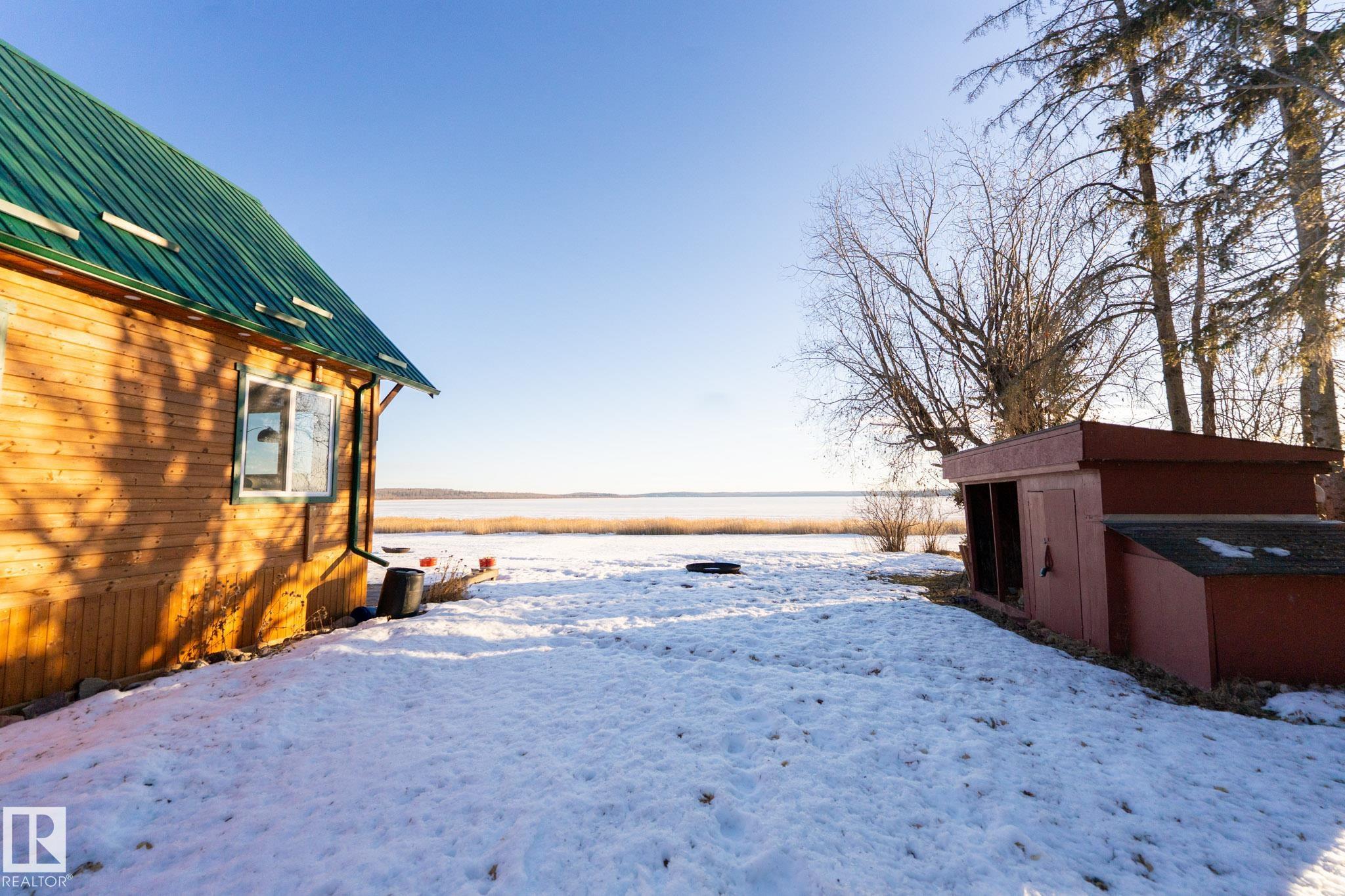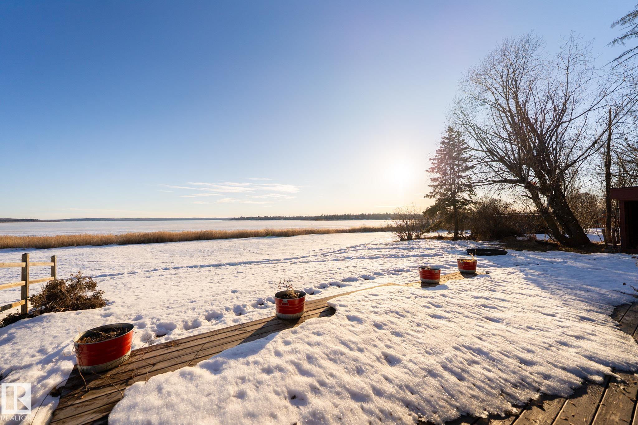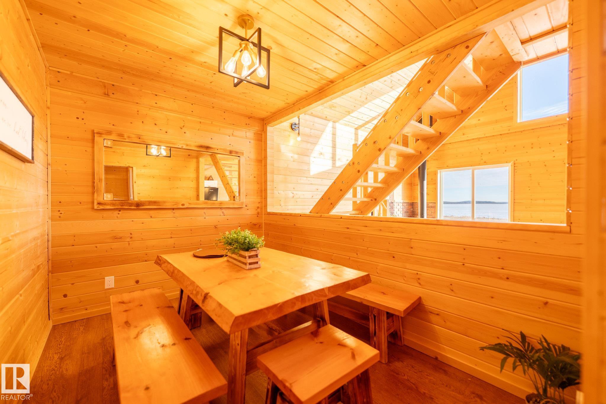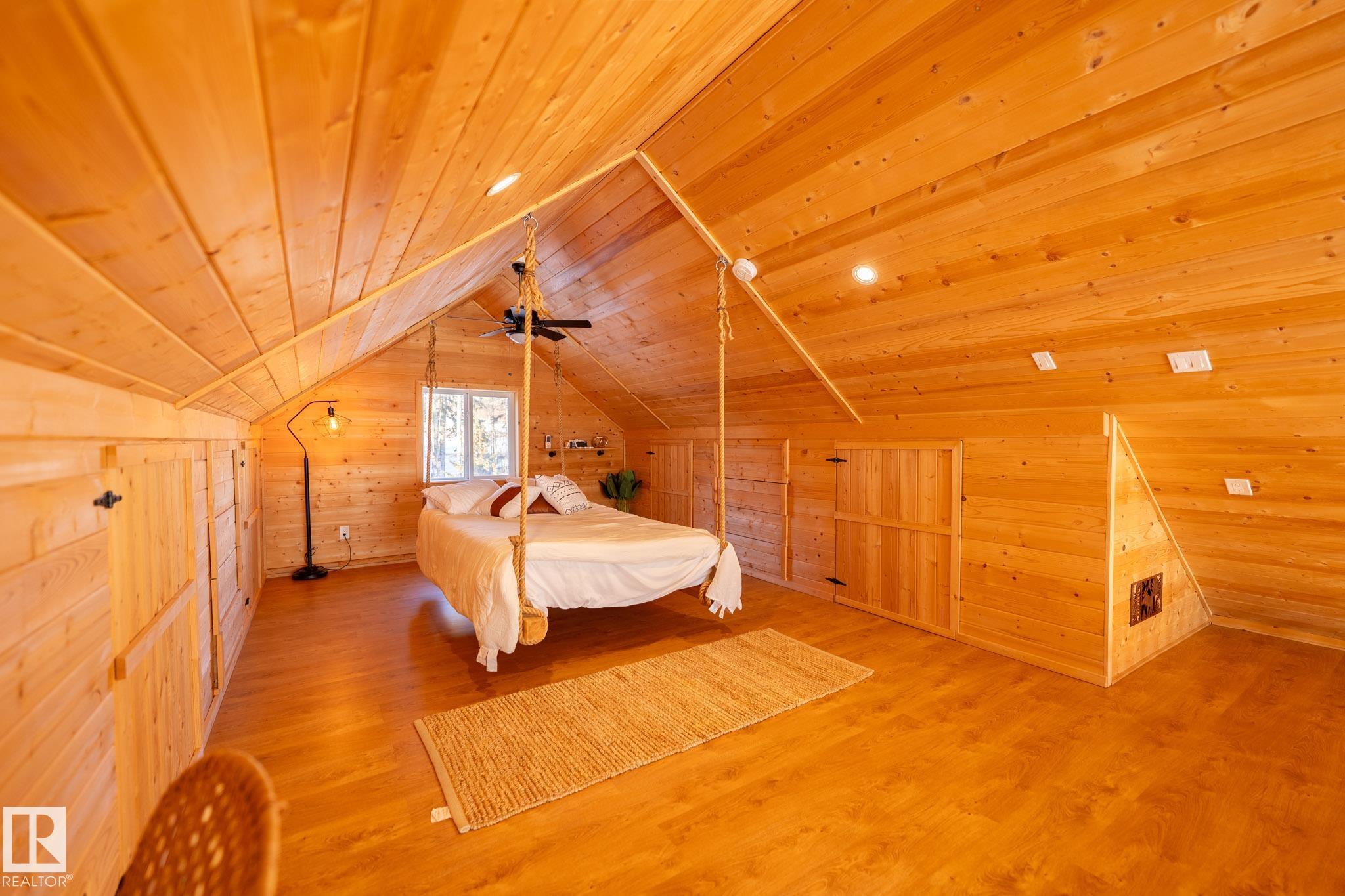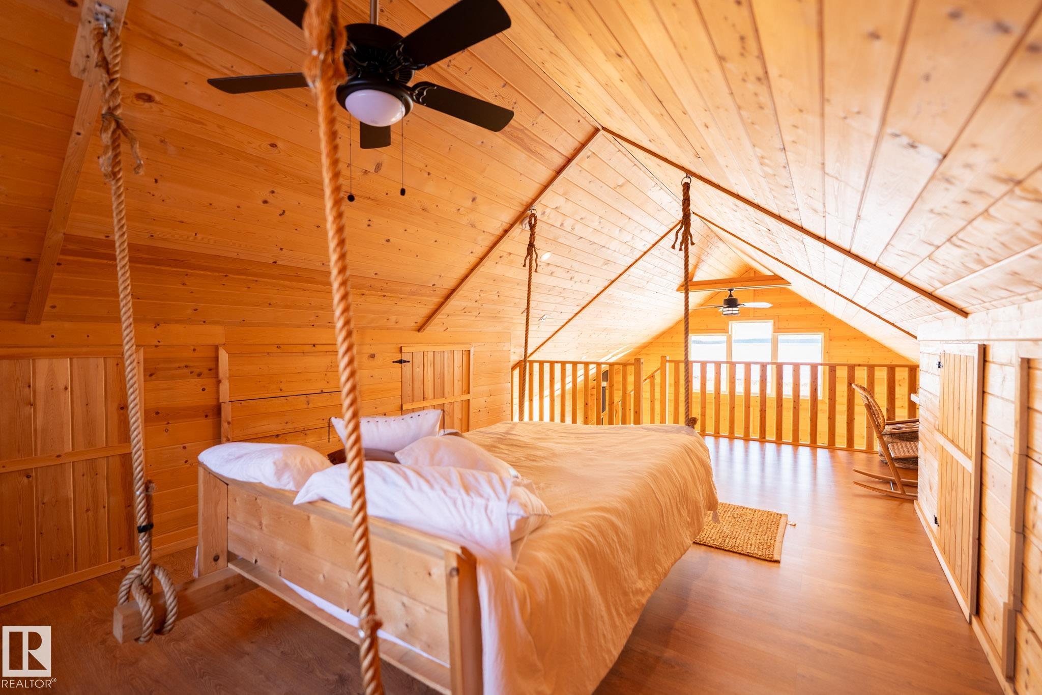 Neverending memories will be created here at this Lakefront home on Sandy Beach, locateded on the south shore of Lac Ste. Anne. This custom chalet-style home sits on 2 Lots and offers direct lake access. With stunning west-facing views, and a peaceful setting just steps from the water. Built in 2016, the home features an 18-foot vaulted ceiling with an open-concept kitchen, dining, and living area designed to capture natural light and lake views. The main floor includes a bedroom, 1.5 bathrooms, and quality wood finishes throughout. A loft overlooks the living space and provides additional sleeping or lounge area. Enjoy a wood-burning stove, expansive windows, and a south-facing lakeside deck ideal for relaxing or entertaining. The treed lot balances privacy with open space, complete with firepit area and room for gatherings. Fully serviced with power, heat cistern, and a holding tank. A rare opportunity to own a turnkey waterfront retreat ideal for year-round use, recreation, or quiet escape.
