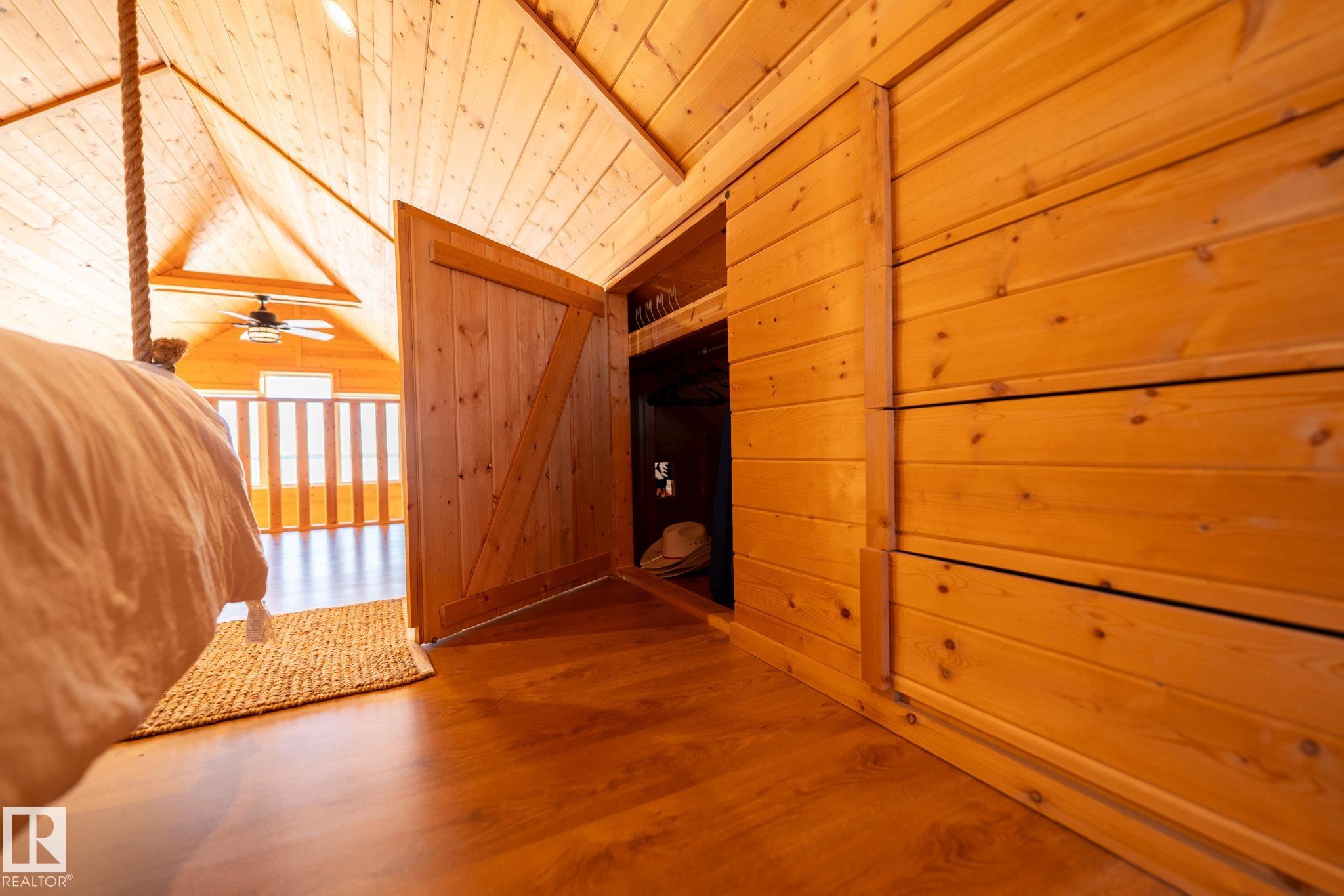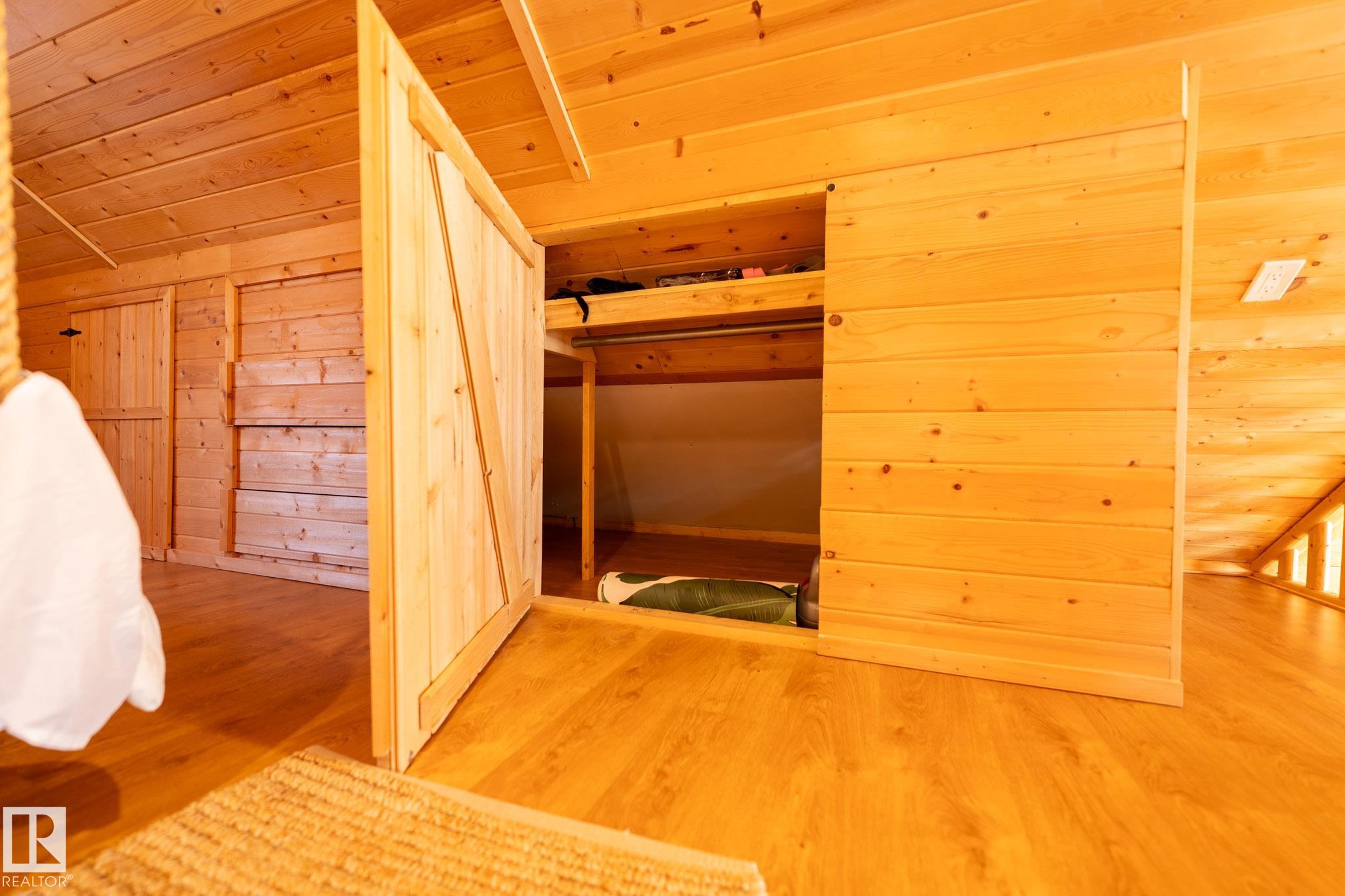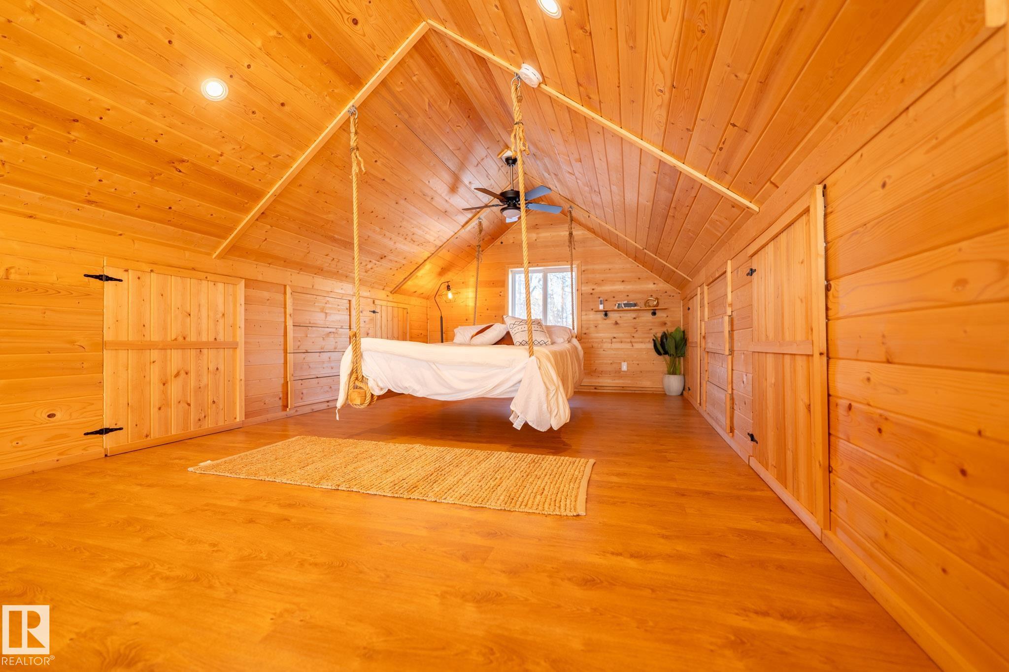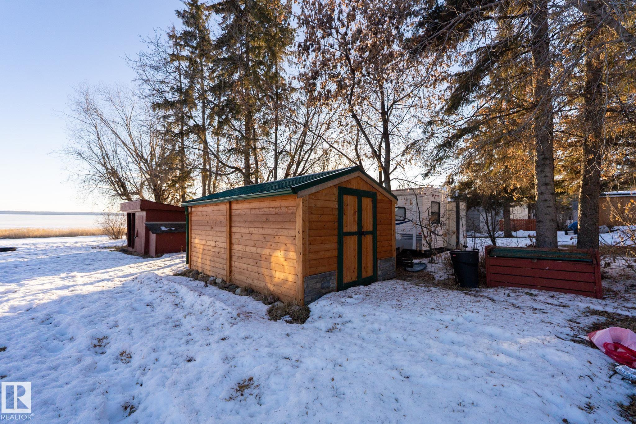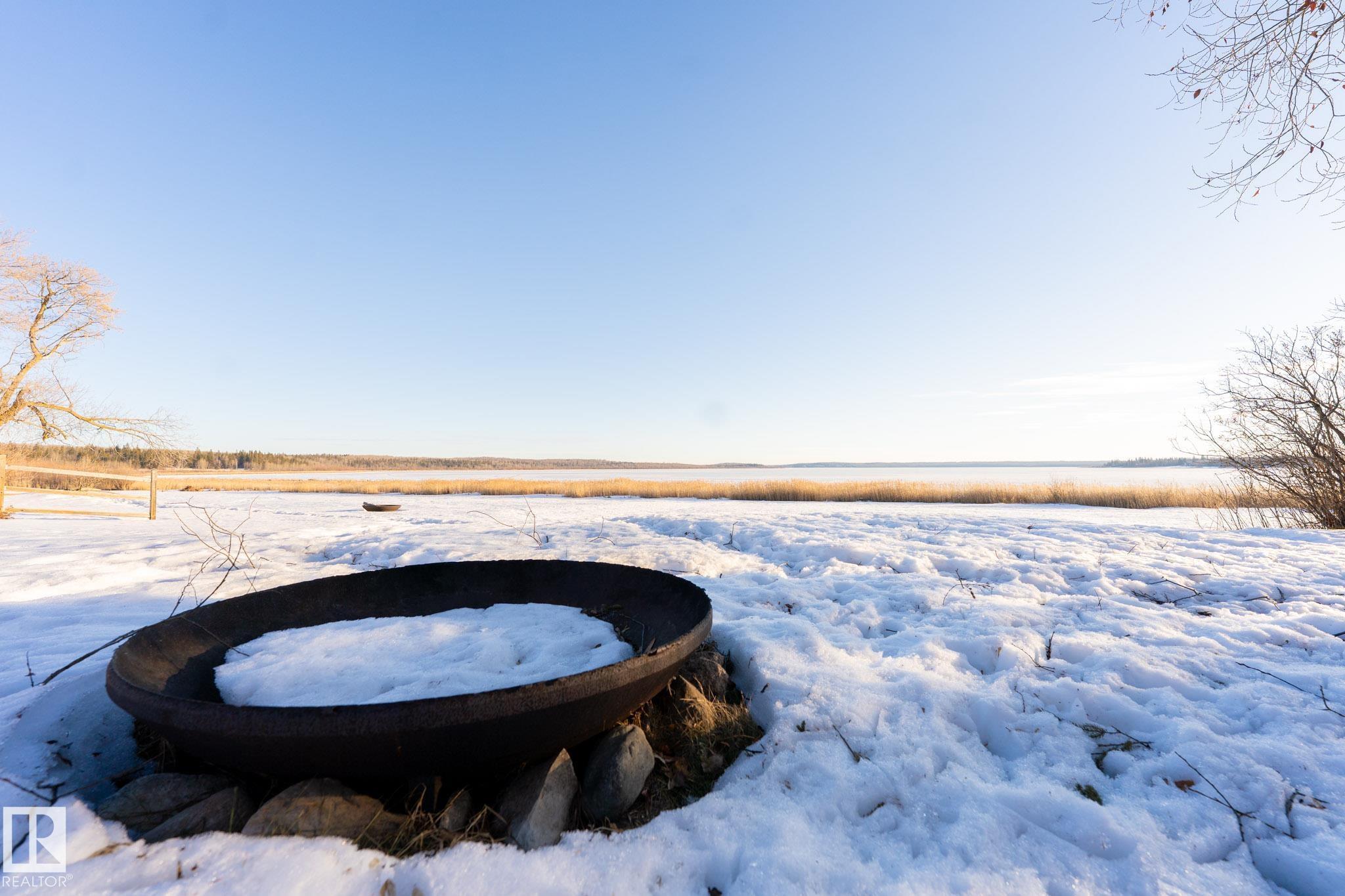Neverending memories will be created here at this Lakefront home on Sandy Beach, locateded on the south shore of Lac Ste. Anne. This custom chalet-style home sits on 2 Lots and offers direct lake access. With stunning west-facing views, and a peaceful setting just steps from the water. Built in 2016, the home features an 18-foot vaulted ceiling with an open-concept kitchen, dining, and living area designed to capture natural light and lake views. The main floor includes a bedroom, 1.5 bathrooms, and quality wood finishes throughout. A loft overlooks the living space and provides additional sleeping or lounge area. Enjoy a wood-burning stove, expansive windows, and a south-facing lakeside deck ideal for relaxing or entertaining. The treed lot balances privacy with open space, complete with firepit area and room for gatherings. Fully serviced with power, heat cistern, and a holding tank. A rare opportunity to own a turnkey waterfront retreat ideal for year-round use, recreation, or quiet escape.