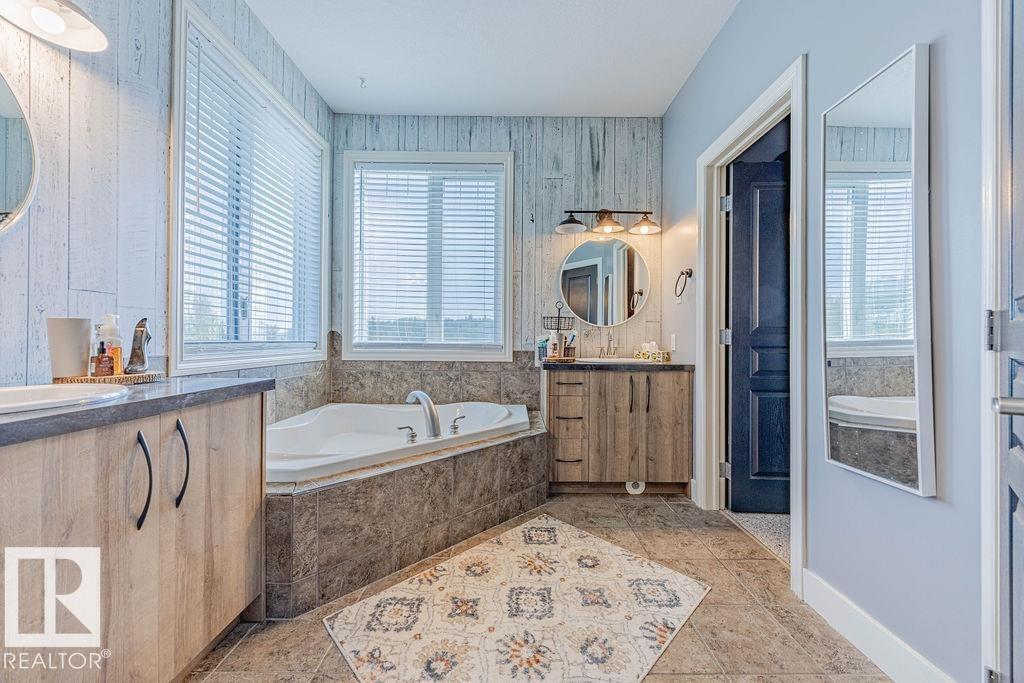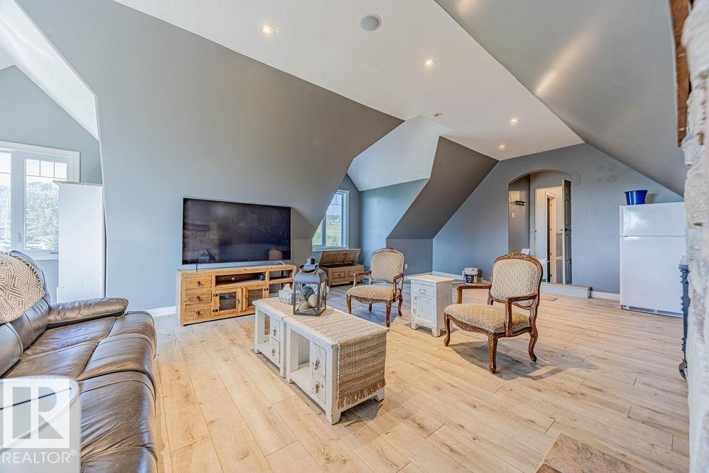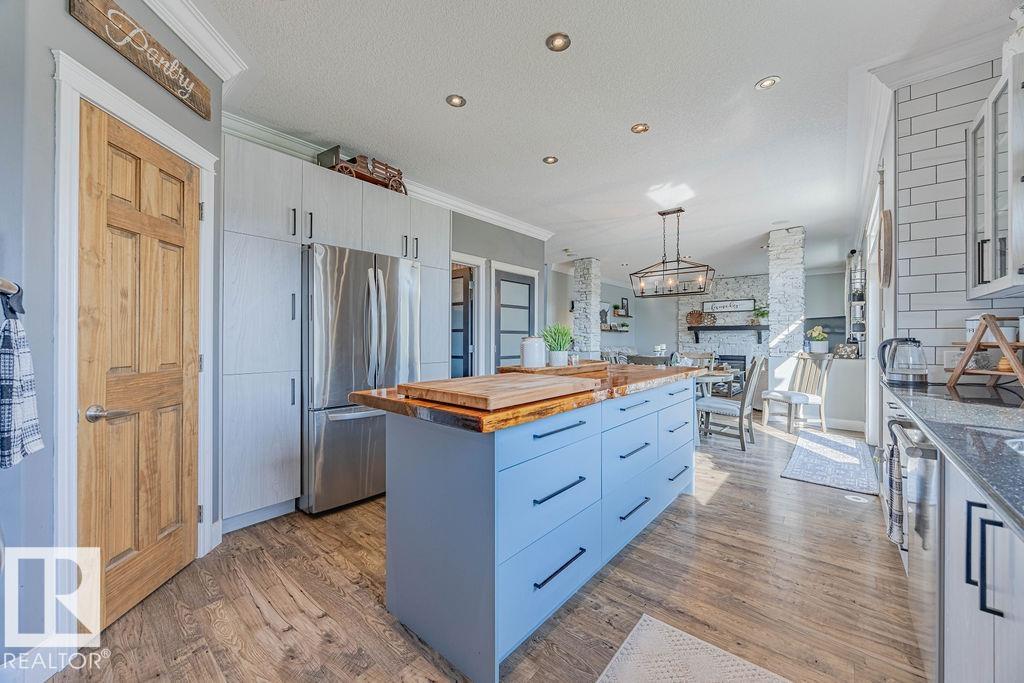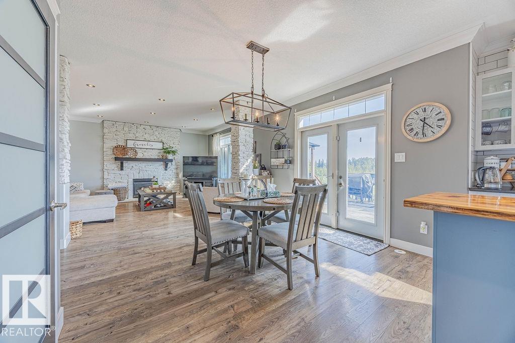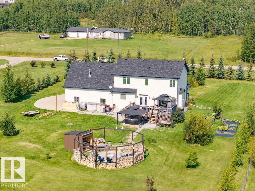 Stunning 5-bedroom acreage on 1.64 acres backing onto nature preserve (Ducks Unlimited). Just a short drive to St. Albert, Spruce Grove or Edmonton. This move-in ready home features 9-ft vaulted ceilings, tile & hardwood flooring, and a designer kitchen with black granite counters, stainless steel appliances & walk-through pantry. A spacious mudroom, main floor laundry & den add convenience. Upstairs, enjoy a large bonus room with gas fireplace, a primary retreat with walk-in closet & 5-pc ensuite, plus 2 more bedrooms & full bath. The fully finished basement offers in-floor heating, 2 bedrooms & 4-pc bath. Outside boasts a covered front porch, back deck, fenced yard, paved driveway & aggregate walkways. Acreage living at its best!