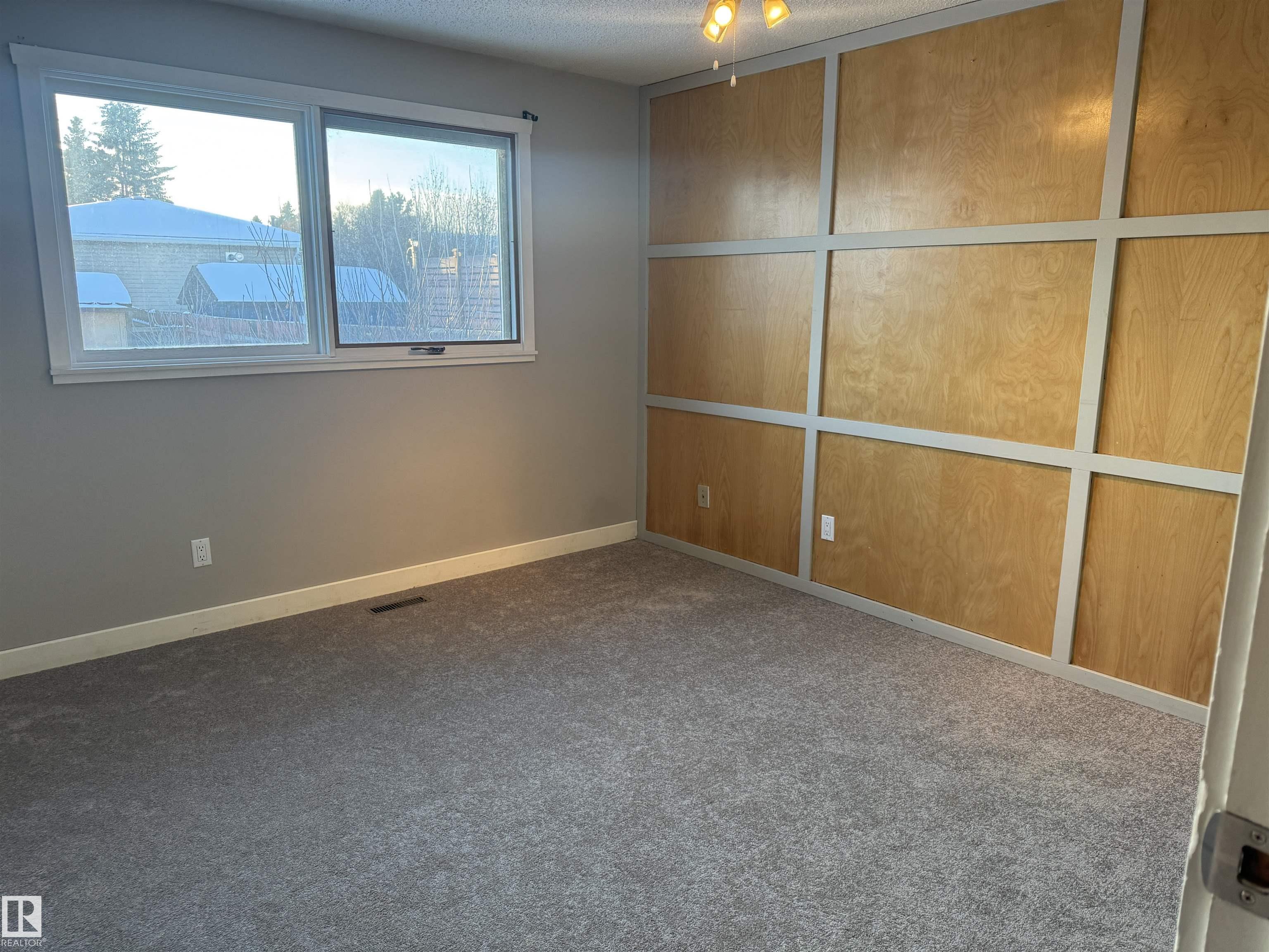 You will love this family home with 3 bedroom bungalow with a 4th bedroom in the basement. Located in the mature community of Forest Green, close to schools, Stony Plain's walking trail system and playgrounds. Great open floor plan with Upgrades that include several new windows (2025), newer carpet in the upstairs bedrooms, updated main bathroom (2022), large storage room, newer hot water tank and Central Air conditioning!! Enjoy the Large ground level rear deck in the expansive rear yard with plenty of room for a future garage. There is a large storage shed that stays also.