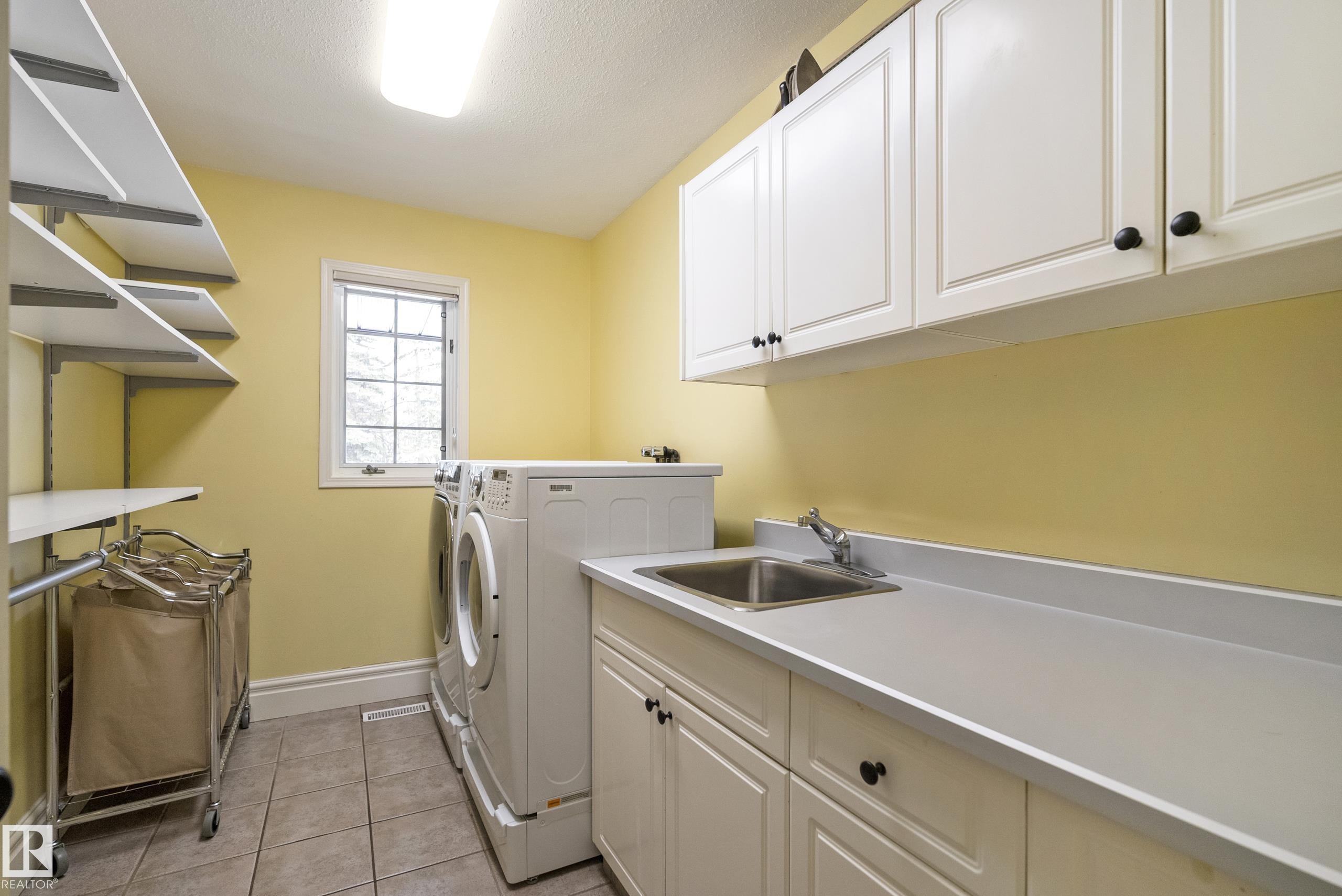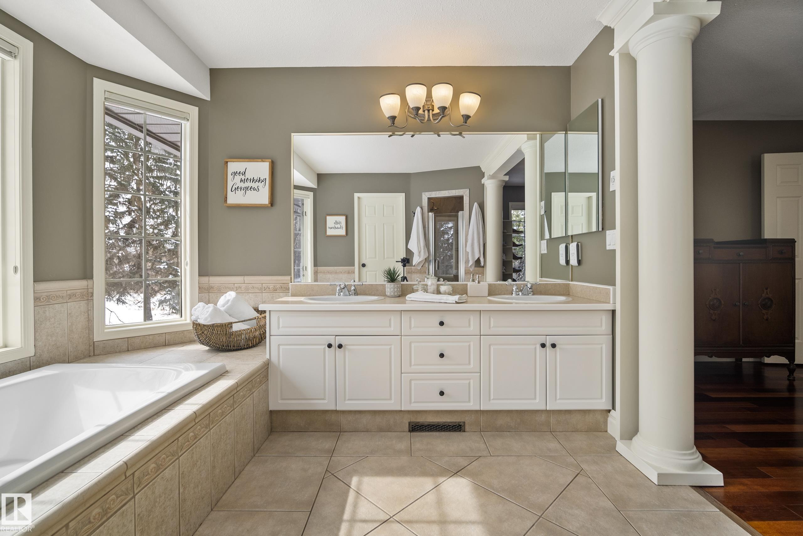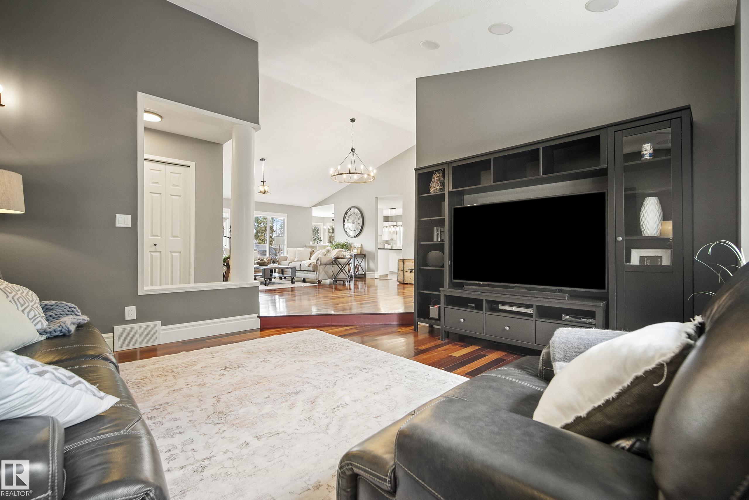 Acreage Living just 2 mins to the City of Edmonton! Fully treed & private 1.5 acre lot, this stunning 2400+ sq.ft WALKOUT bungalow offers the perfect blend of space, privacy & convenience. Pride of ownership shines! This 5 bed 5 bath home. Main floor features an open concept layout w/ a spacious living area, vaulted ceilings, chef inspired kitchen w/ large island, plus a cozy family room w/ fireplace. The primary retreat offers a luxurious 5 pc ensuite & walk-in closet. Walkout basement is flooded w/ natural light w/ a massive rec space, wet bar, fireplace, gym & games area, 2 additional bedrooms & 2 full baths. Enjoy the outdoors & privacy from the wrap around decks overlooking the beautifully treed lot, exposed aggregate patio & hot tub. Heated triple garage 35x23 w/ plenty of space for vehicles & toys, plus ample room for RV parking &/or shop, plus large 14x20 powered shed. Upgrades include furnaces, AC, shingles, oversized eaves, downspouts complete with gutter guard & much more. RARE OPPORTUNITY! 10+