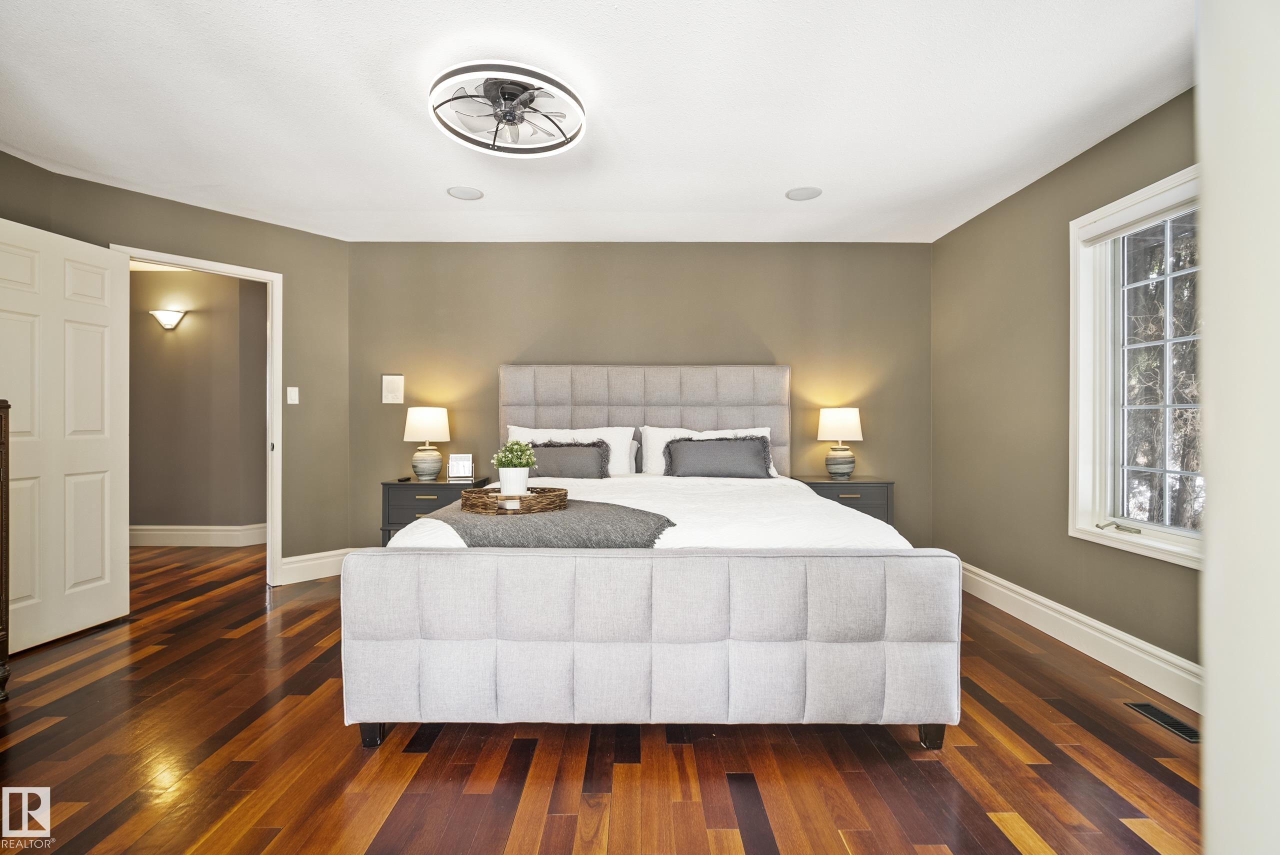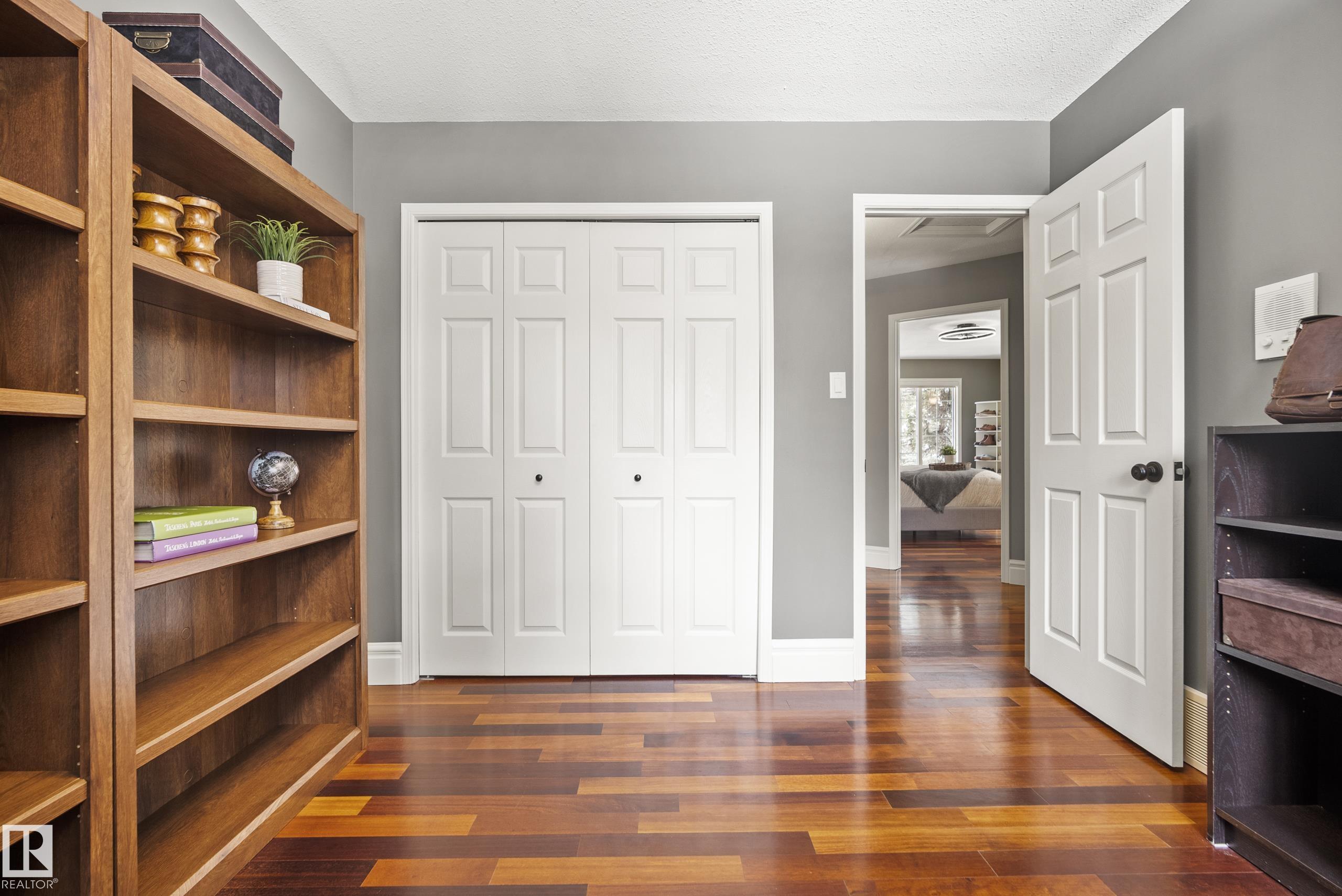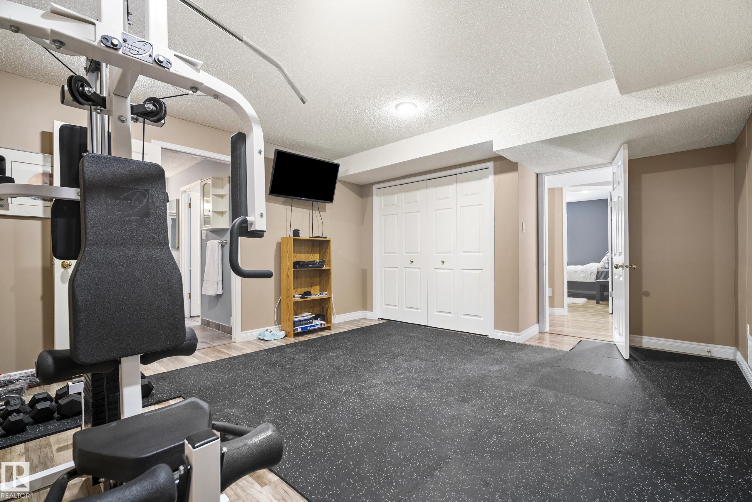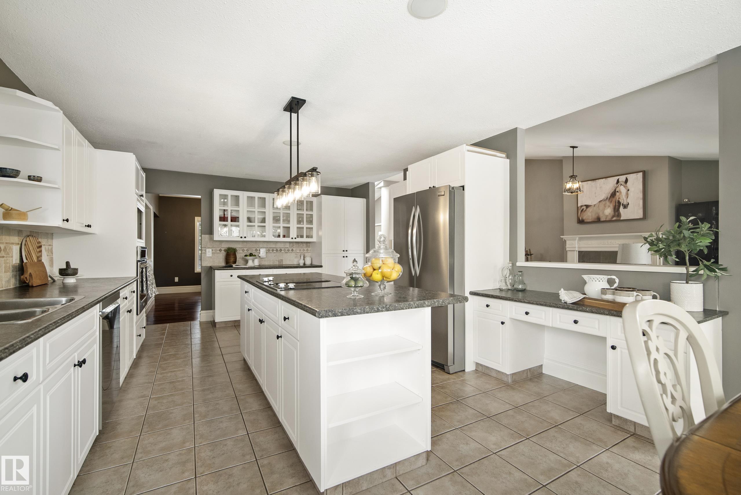 Acreage Living just 2 mins to the City of Edmonton! Fully treed & private 1.5 acre lot, this stunning 2400+ sq.ft WALKOUT bungalow offers the perfect blend of space, privacy & convenience. Pride of ownership shines! This 5 bed 5 bath home. Main floor features an open concept layout w/ a spacious living area, vaulted ceilings, chef inspired kitchen w/ large island, plus a cozy family room w/ fireplace. The primary retreat offers a luxurious 5 pc ensuite & walk-in closet. Walkout basement is flooded w/ natural light w/ a massive rec space, wet bar, fireplace, gym & games area, 2 additional bedrooms & 2 full baths. Enjoy the outdoors & privacy from the wrap around decks overlooking the beautifully treed lot, exposed aggregate patio & hot tub. Heated triple garage 35x23 w/ plenty of space for vehicles & toys, plus ample room for RV parking &/or shop, plus large 14x20 powered shed. Upgrades include furnaces, AC, shingles, oversized eaves, downspouts complete with gutter guard & much more. RARE OPPORTUNITY! 10+