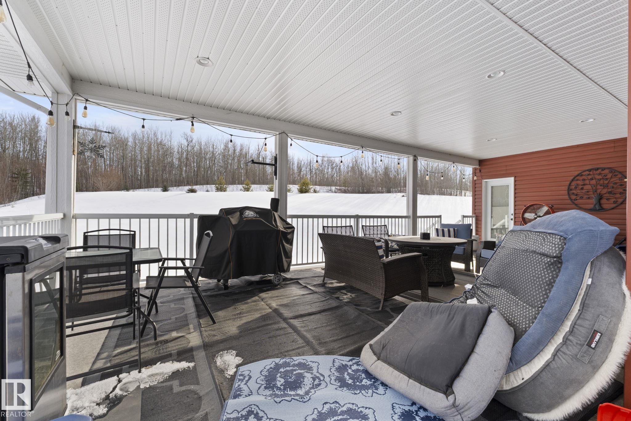 Looking to have it all? You've just found it! 2.28 acres backing trees, 6 bedrooms, 3 full baths, over 3685 SqFt of total living space, 4-car garage, walkout basement & only 6 km's to Stony Plain. Relax in this turn-key home built in 2015 & make memories with all it has to offer. Step inside & feel right at home in the bright, open-concept main floor - perfect for gathering & entertaining. The kitchen is the heart of it all, featuring a large island w/ eating bar, corner pantry & beautiful cabinets flowing seamlessly into the dining & living areas w/ beautiful views in every direction. The king-sizedPrimary Bdrm is your private retreat w/ walk-in closet & 4 pce ensuite. Main floor laundry rm w/sink adds everyday ease. The walkout basement is ready to be the popular hangout spot, huge rec room & wet bar area w/ beverage fridge & dishwasher. A 4-car garage means room for all your vehicles, toys & more. Unwind on the massive wrap around covered upper deck. Enjoy the peace of this serene private oasis.