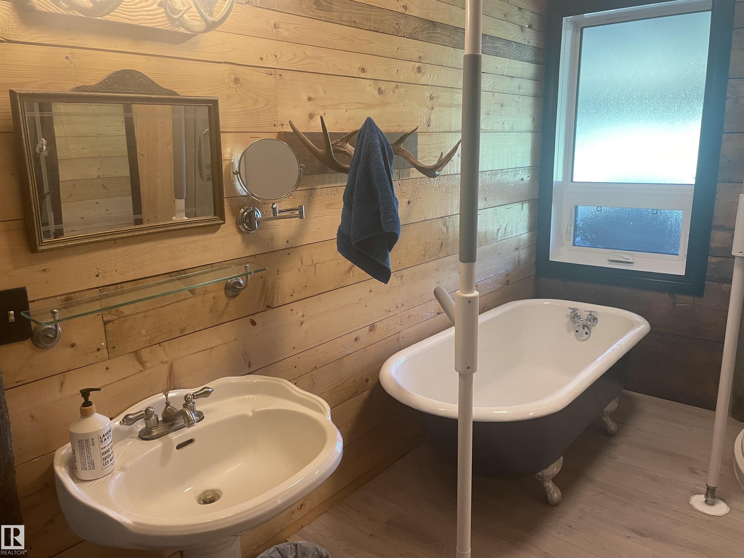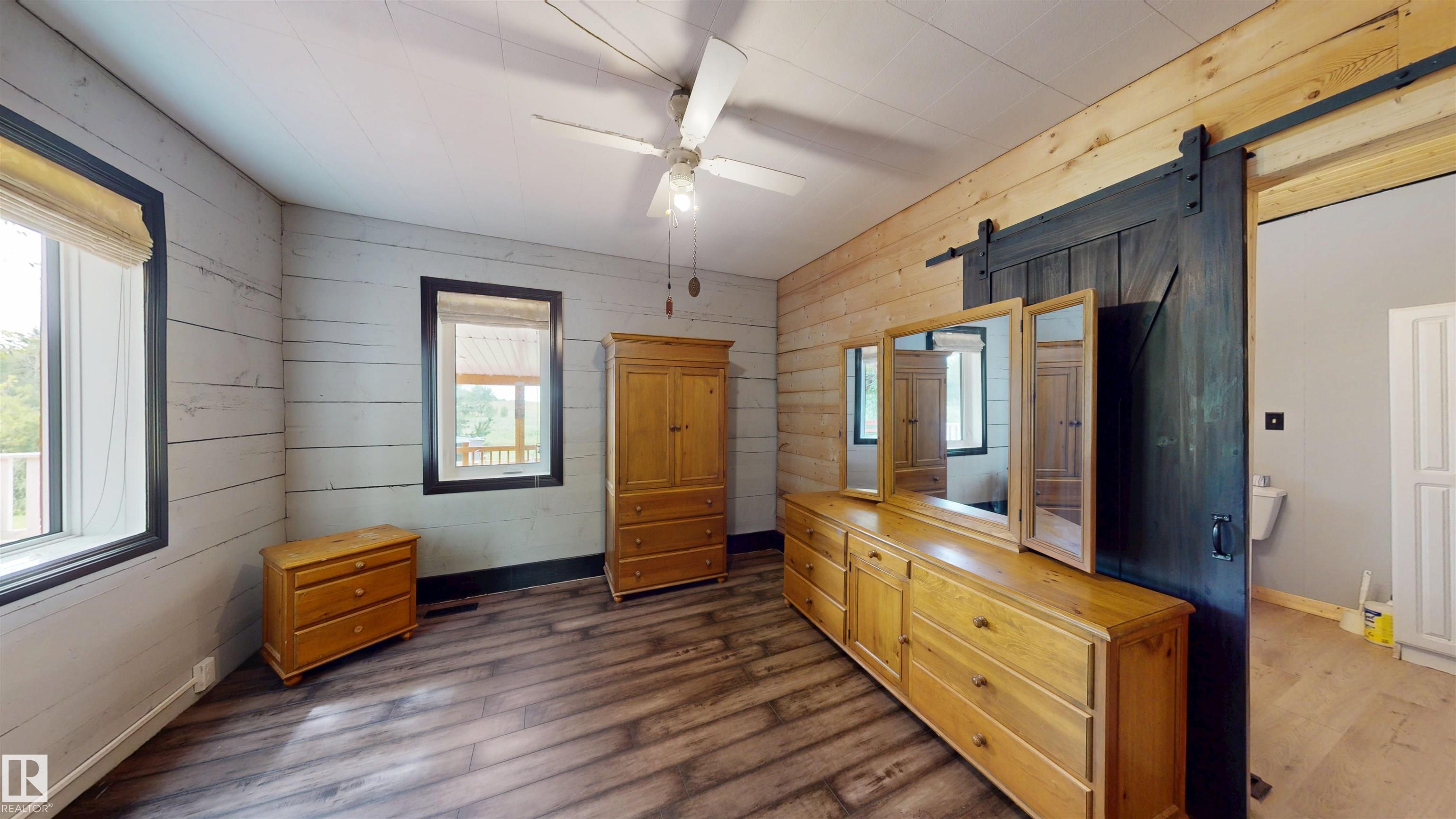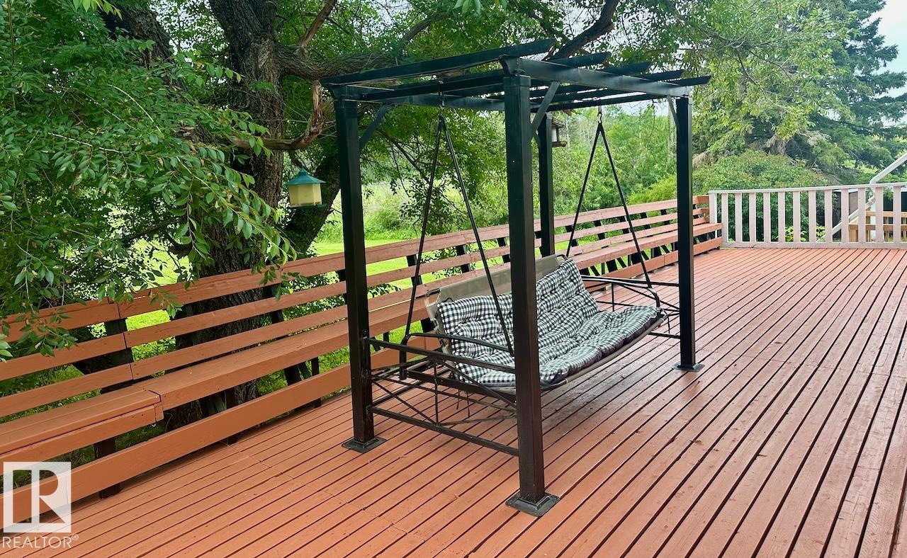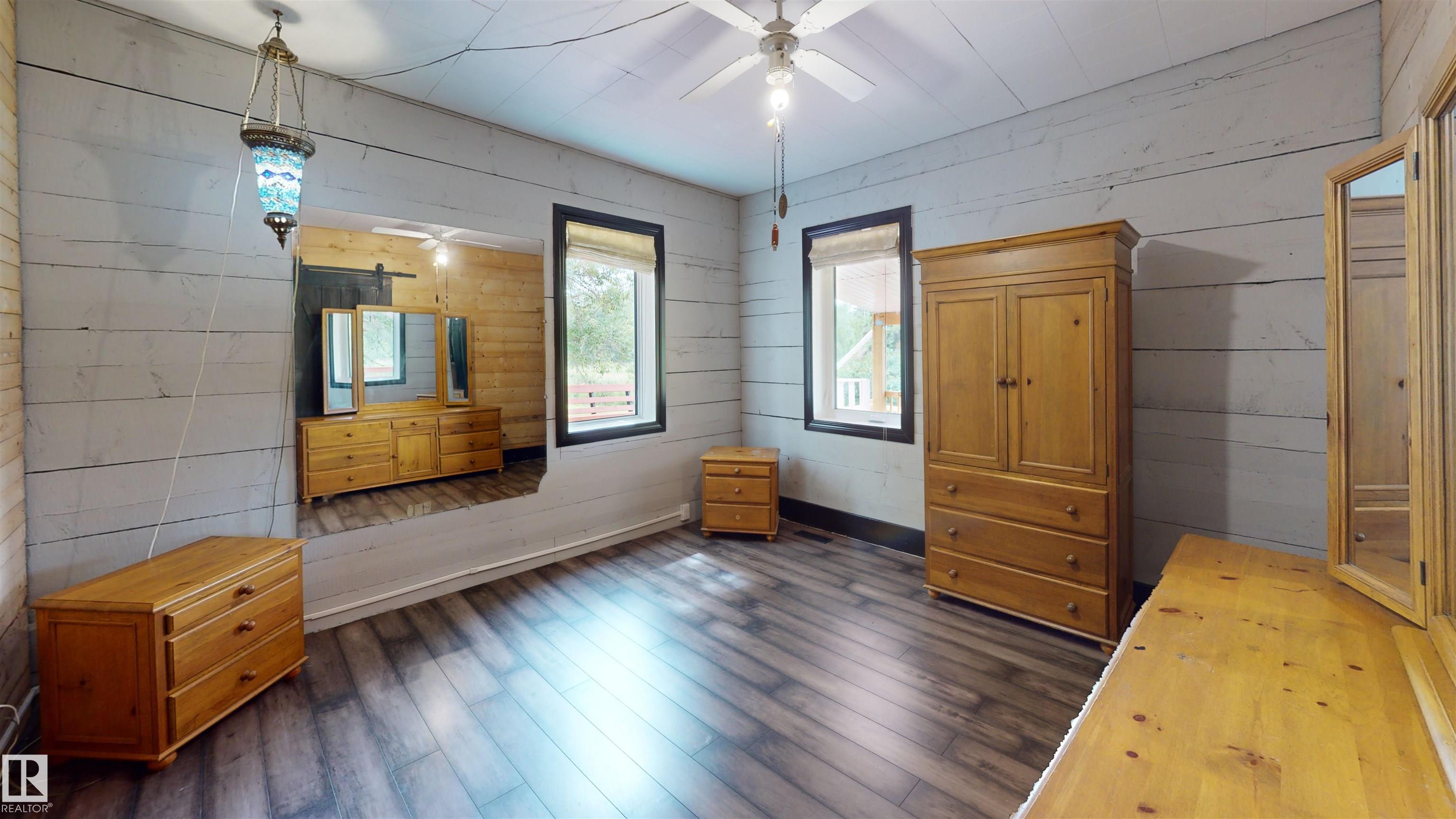 A perfect balance of rural serenity and modern acreage living agricultural zoned, out of subdivision, featuring a heritage square-cut log home. A recent $150K renovation: triple-pane windows, commercial grade LVP flooring, high efficiency furnace with humidifier, water heater, water treatment system, & reverse osmosis system. The Nordic marble natural gas fireplace anchors the open dining and kitchen area, a culinary oasis with upscale appliances, granite countertops on soft-close kitchen cabinets, custom backsplash, spacious island with eating bar. Main floor offers a spacious primary bedroom with a private 4 pc ensuite. Upstairs are 3 bedrooms and 3 pc bath. Step outside onto 1,100 sq ft of covered and open, wrap around deck, for entertaining. Store your cars and toys in the 936 sq/ft 3 Bay heated shop with mezzanine, custom bay doors with automatic openers, engineered concrete pad with durable protective coating and floor drain. Property includes a 2nd residence (ready for rebuild) & a double garage.