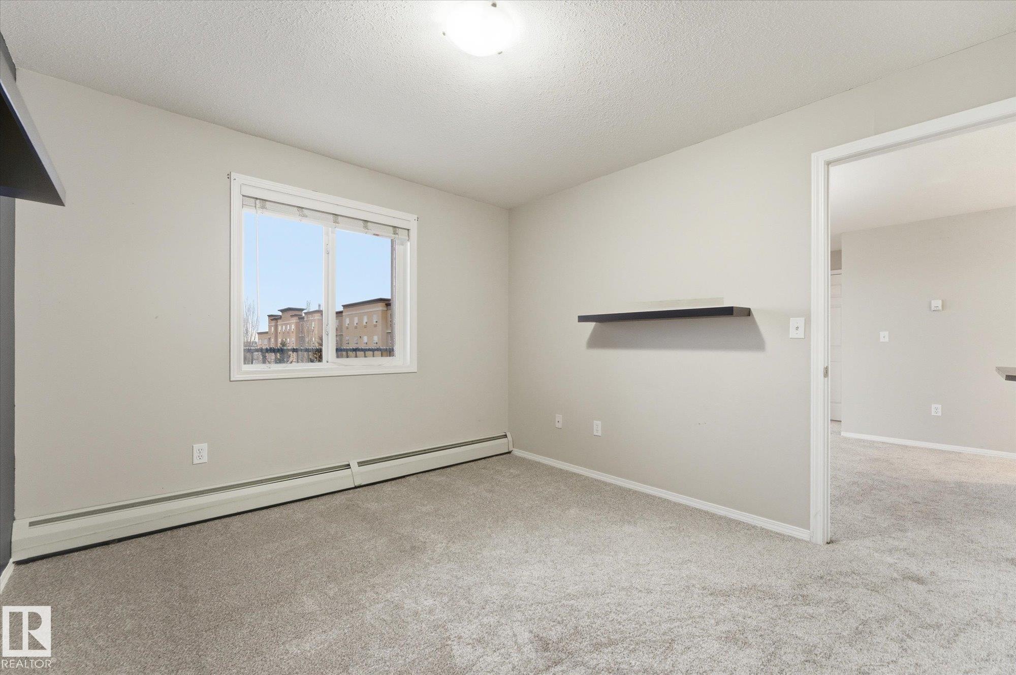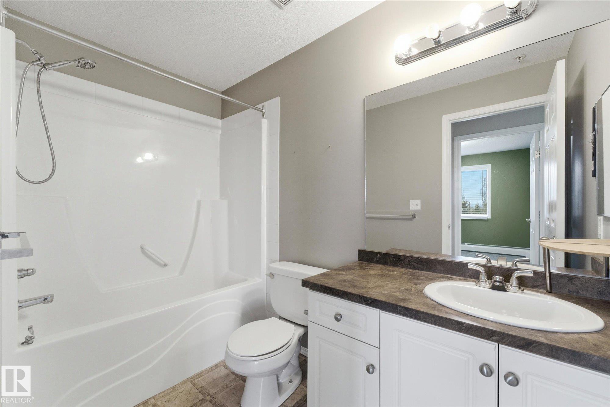 Discover this affordable 2-bedroom, 2-bathroom condo at Station 33 in Stony Plain, featuring a spacious layout with a 3-piece ensuite. Featuring new kitchen cabinet doors, the comfort of brand new carpet and just recently professionally cleaned. This third-floor unit includes convenient in-suite laundry and additional storage, along with a private patio perfect for Summer. Benefit from assigned underground secured parking with an oversized stall and ample visitor parking. This well-run condo is ideally located near shopping, Stony Plain Hospital, and Highway 16A, making it perfect for both convenience and accessibility. Some photos are virtually staged.