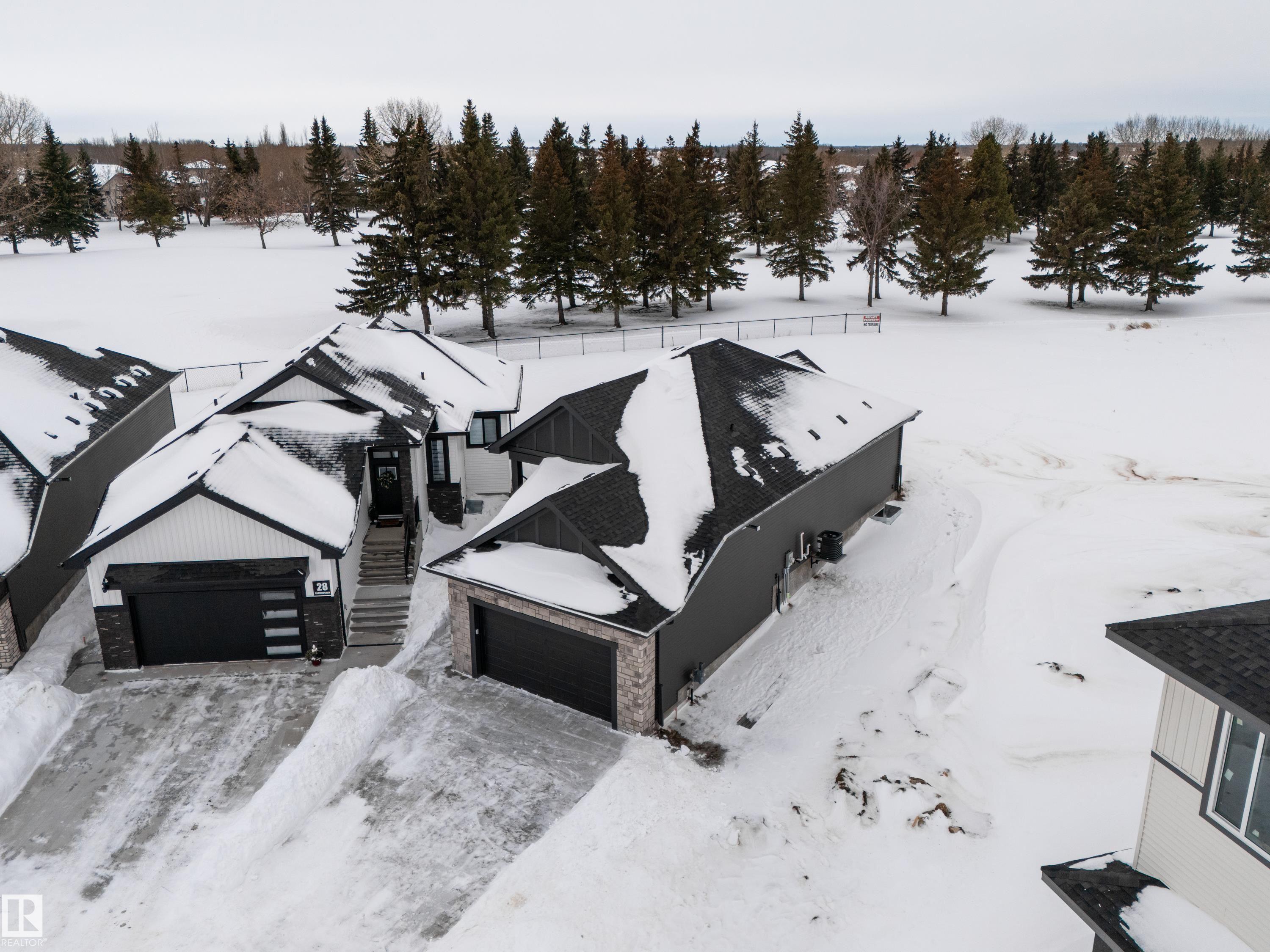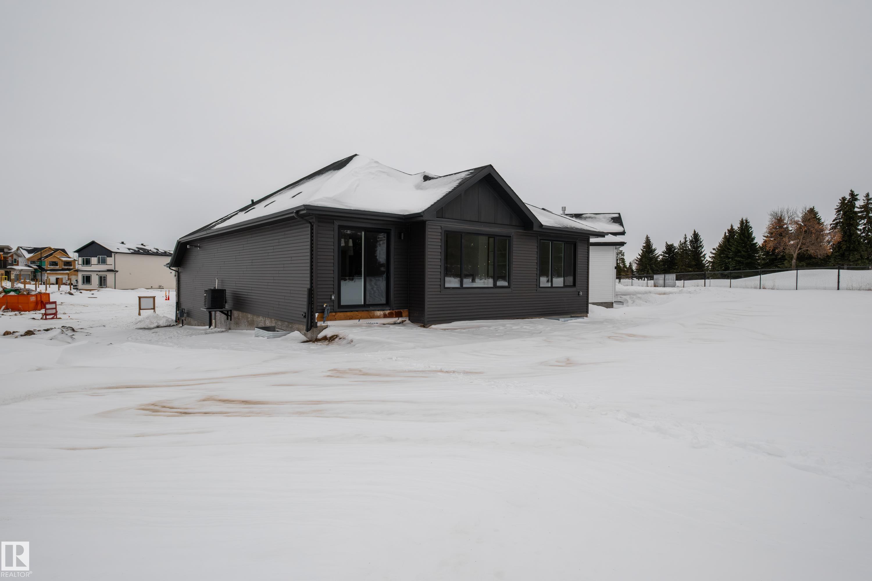 Nestled on a .24 acre pie shaped lot backing the 3rd hole of the Stony Plain Golf Course awaits a truly unique bungalow brought to life by HRD Homes. With sophisticated details and high end finishings around every corner this home exudes elegance and class. This open concept home is bright & airy and features 2 beds, 1.5 bath, vinyl plank flooring, tiled kitchen backsplash, s/s appliances, under cabinet lighting, a large island that's perfect for gatherings, walk through pantry, main floor laundry, custom built ins & wooden details, tankless hot water system, heated garage, BBQ gas line, 9ft ceilings w/ 8ft solid core doors and the-list goes on. The basement is unfinished but not needed unless desired as you have over 1,520sqft of living space on the main level. A home like this rarely comes to market and is perfect for empty nesters looking for a large lot or those looking to downsize yet still wanting the high end finishes and attention to detail.