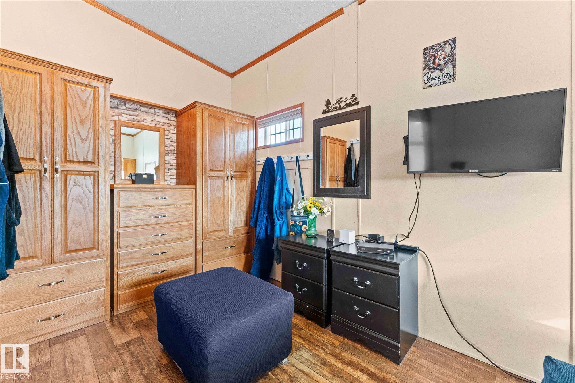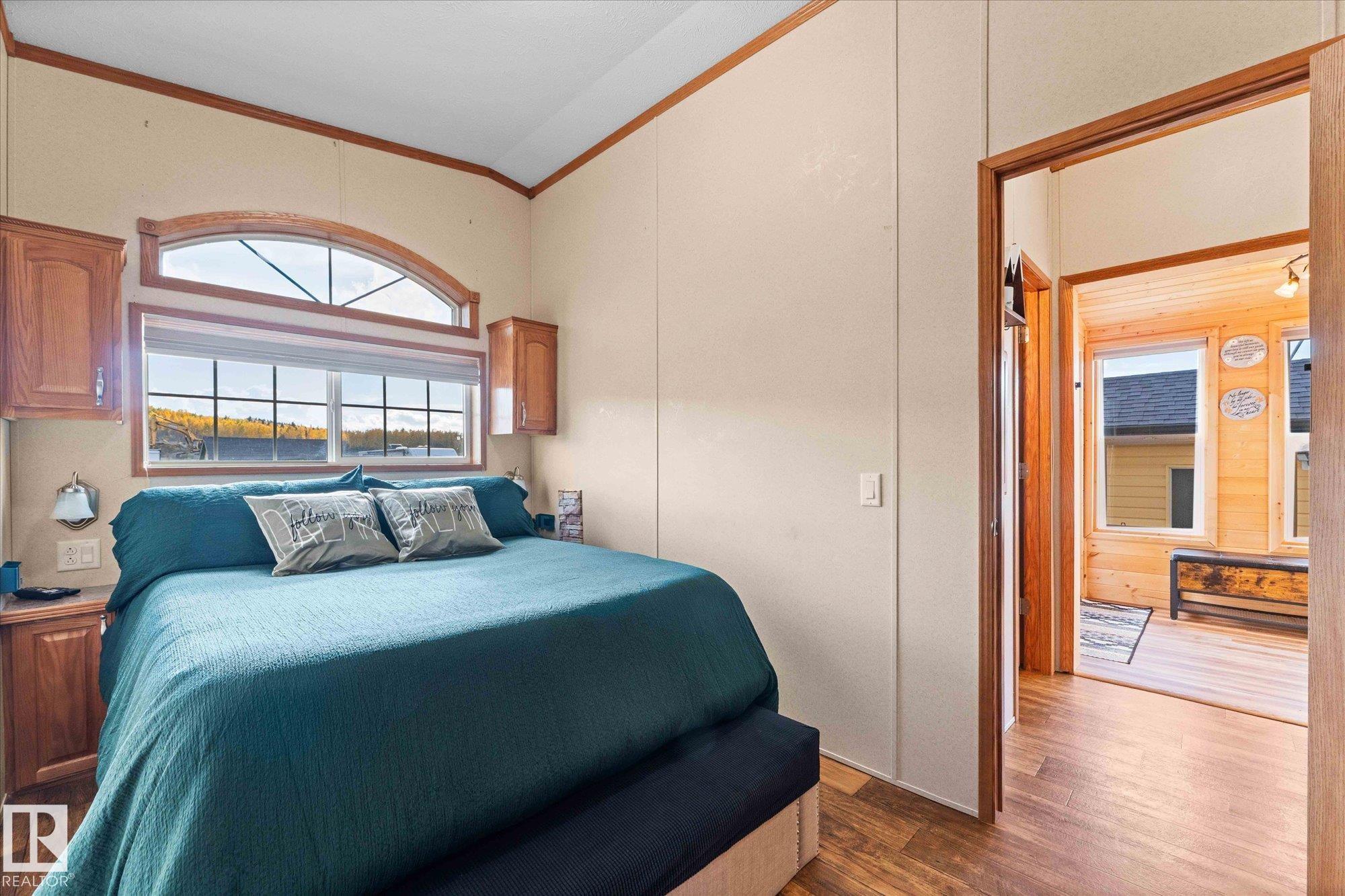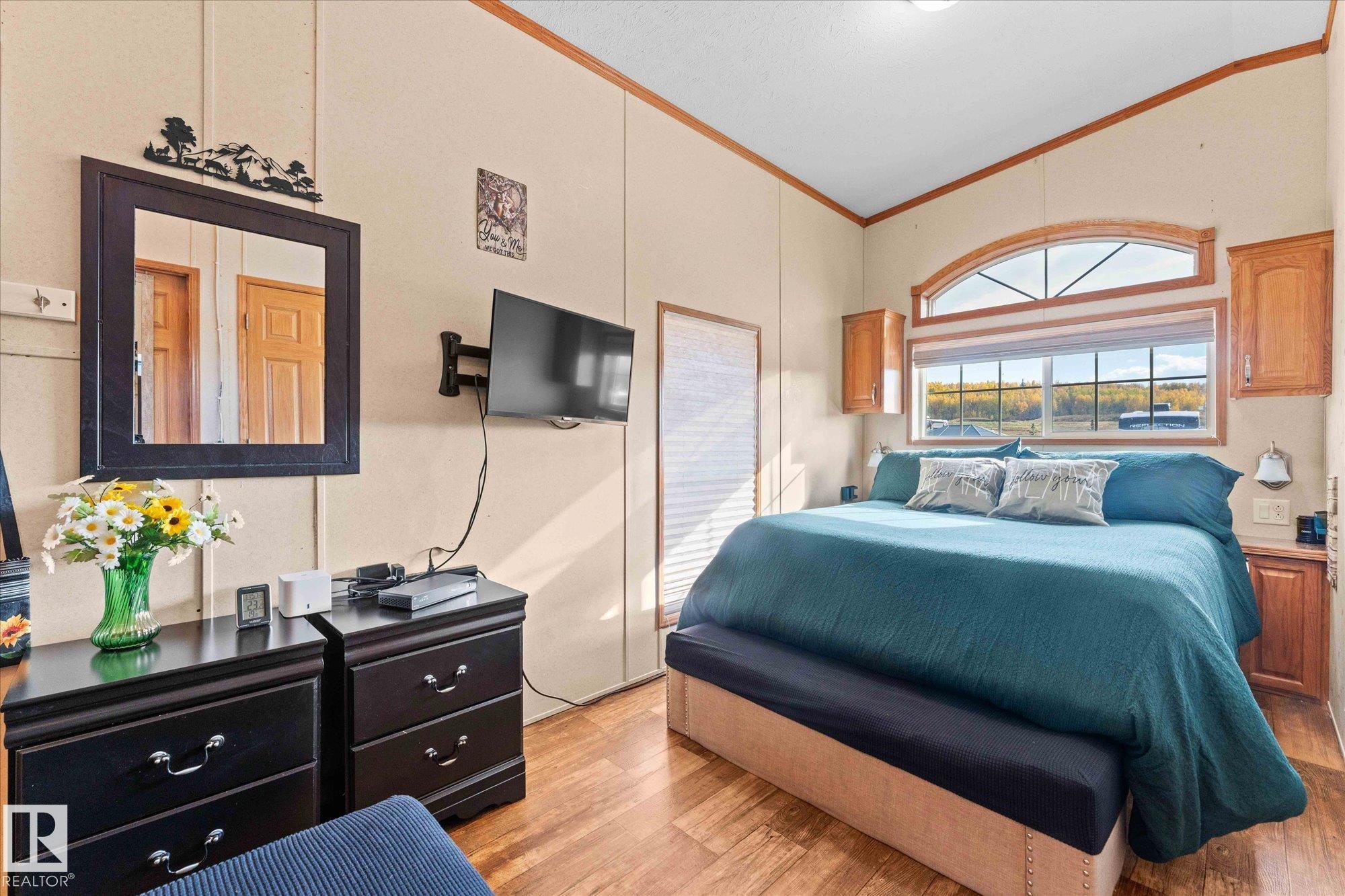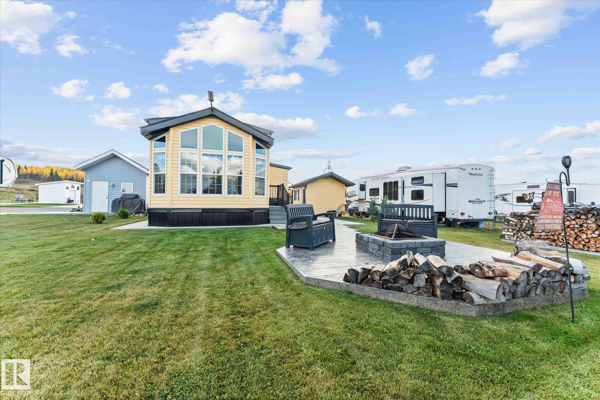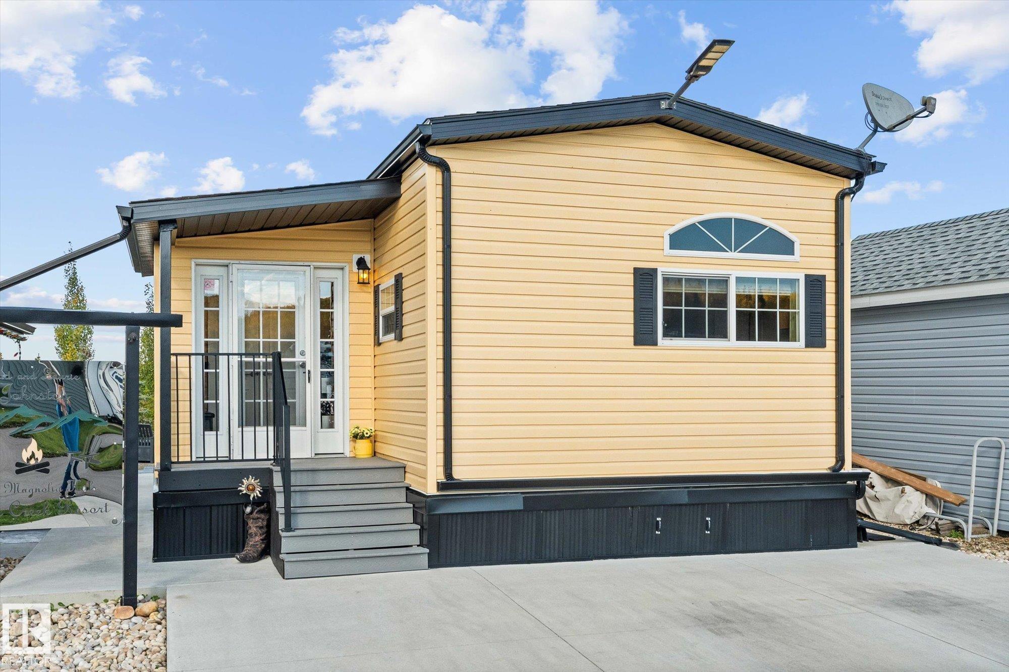 Are you ready for the vacation lifestyle, in one of a handful of 4-SEASON park models at the stunning Trestle Creek Golf Resort? This sunny unit, located in Phase 5 - Magnolia Hills, is turn-key & ready for its new owner! Outside, the beautifully landscaped & paved 45 x 100 ft lot features a fantastic 10'x14' storage shed for all your toys, side porch & firepit area. Step inside to find a spacious mudroom with plenty of storage. As you venture further into the home, you will find a 4-piece bath & the large primary bedroom - previously 2 bedrooms, which can be divided to suit your needs. The kitchen, with plenty of storage features a black appliance package including a gas range. The highlights of the main living space include soaring windows, high ceilings, a built-in buffet, cozy fireplace & a west facing sliding glass patio door. The year-round amenities and events at Trestle Creek are endless, from the Water Park, to the Walking Trails, to the Restaurant & Pro Shop - you'll love resort living!