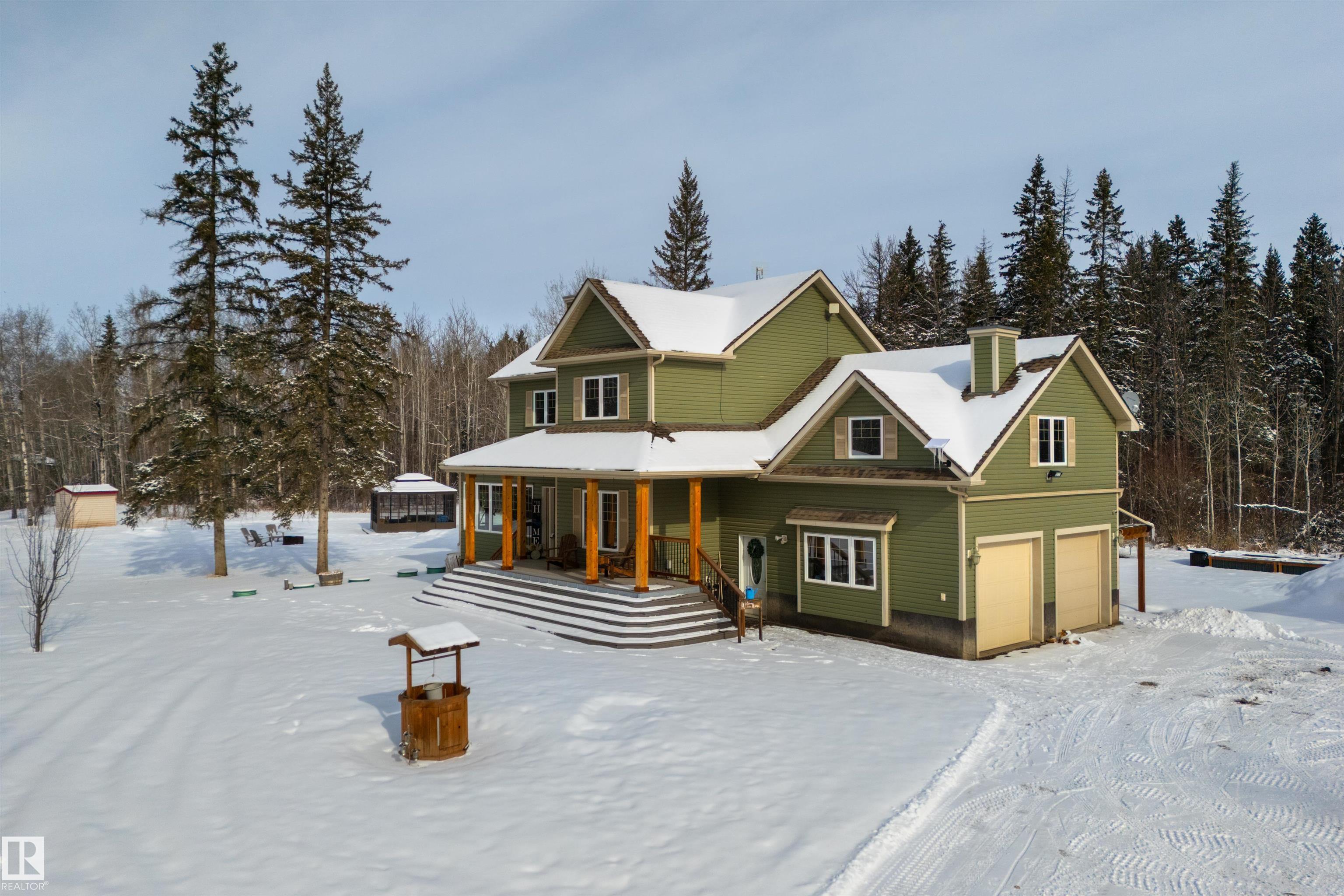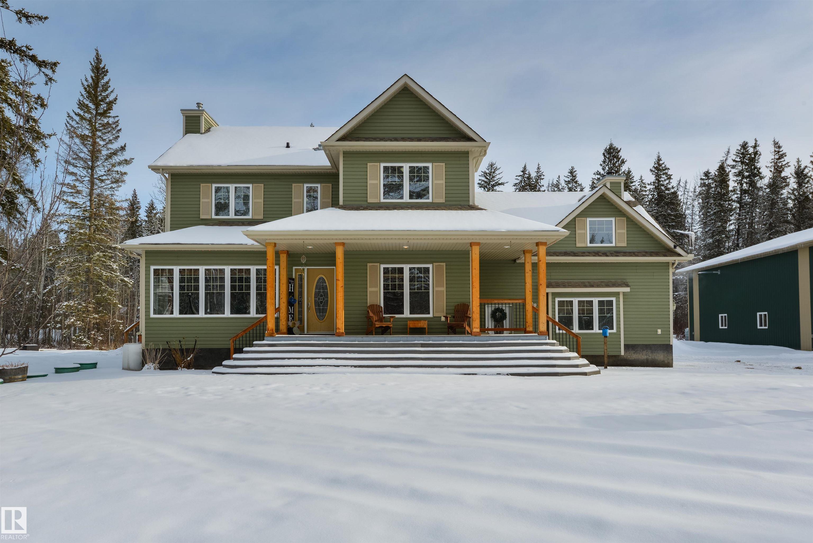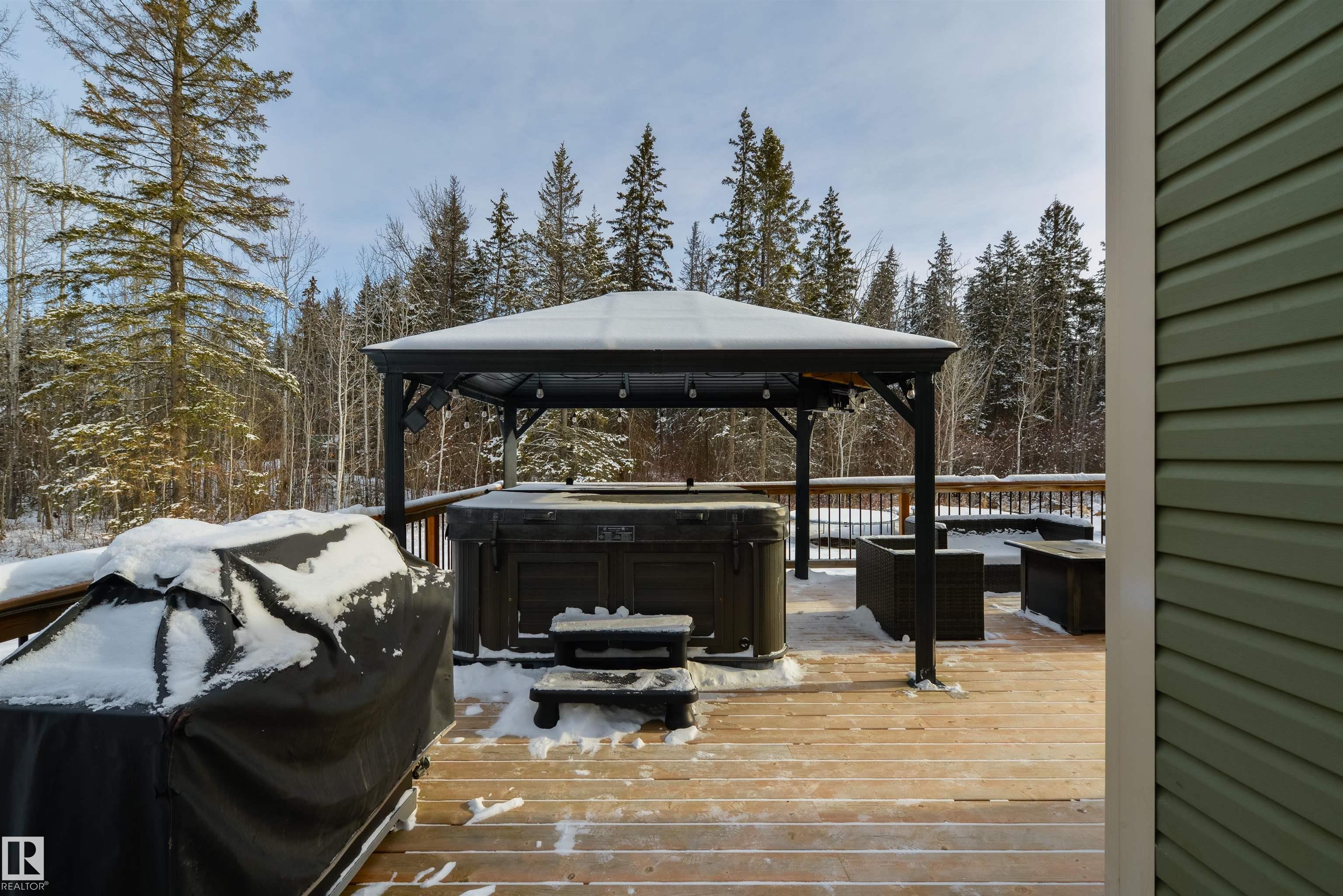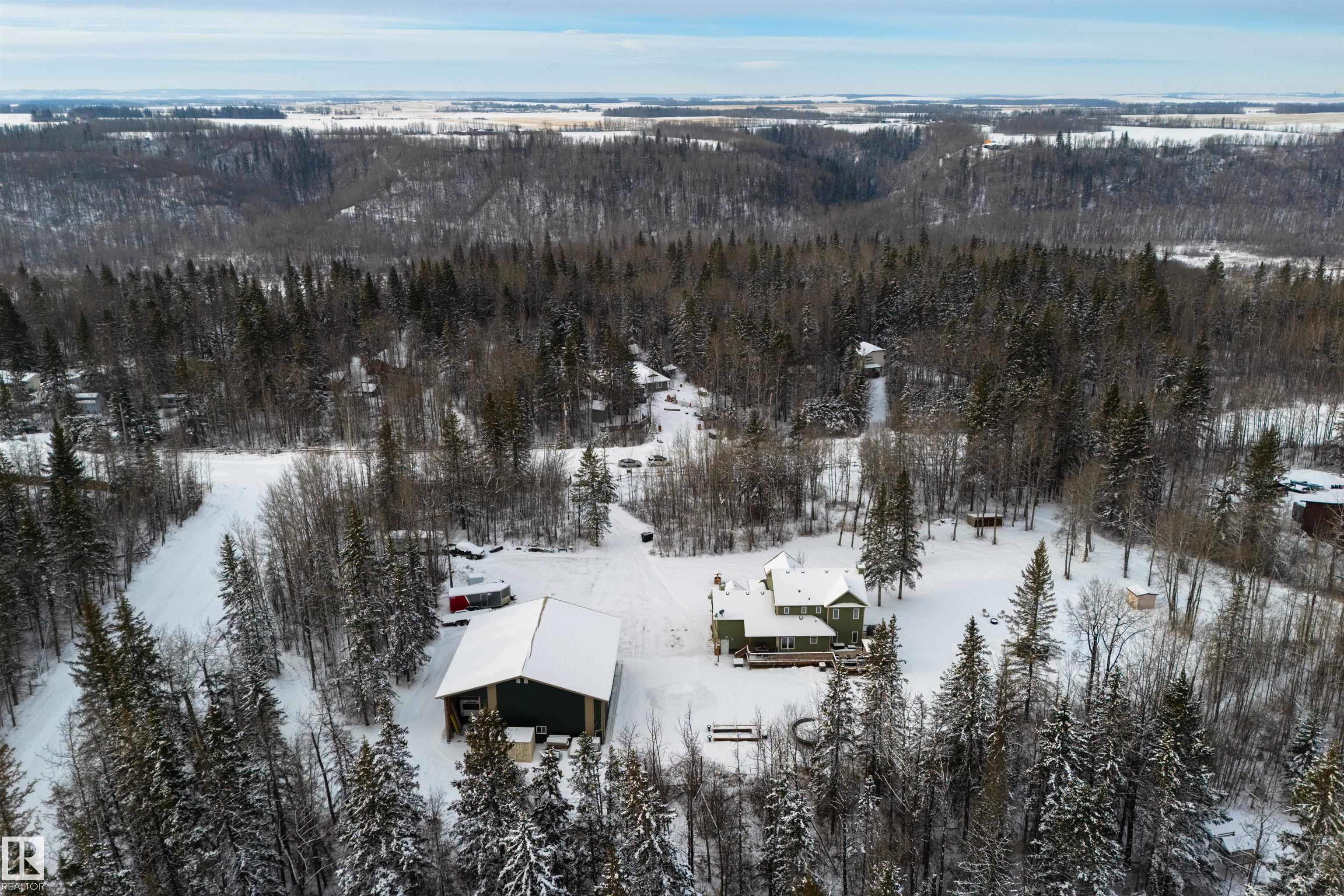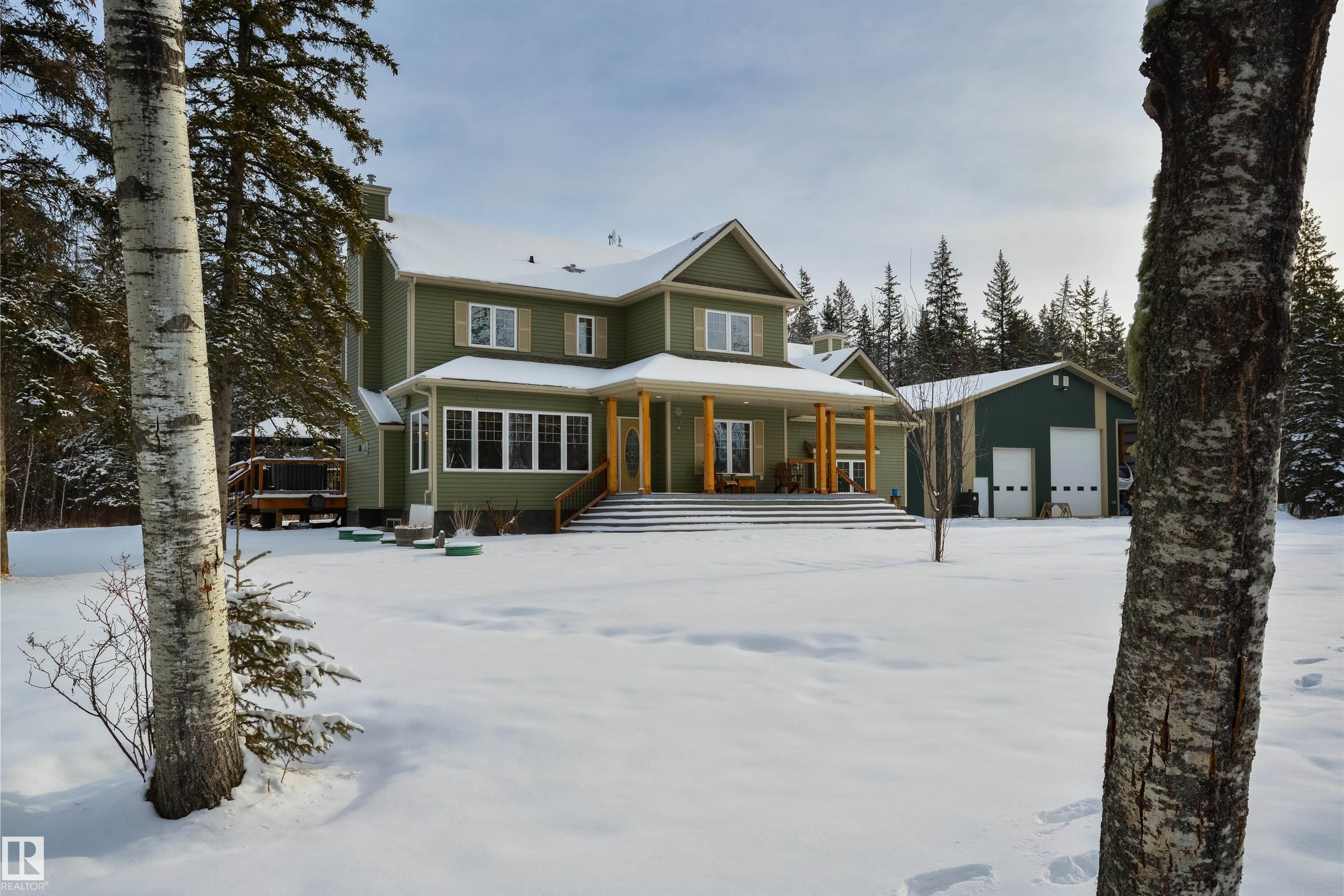Imagine your kids launching off a 100' zipline while you soak in the hot tub -- the North Saskatchewan River just a short walk away. Set on 3.46 acres approximately 25 minutes SW of Spruce Grove, this beautifully treed property delivers a stunning backdrop & the acreage lifestyle you've been longing. A wrap-around deck covers half the home, permanent outdoor lighting illuminates the exterior, and there's room to breathe in every direction. Inside, every detail feels intentional - A/C, a gas fireplace, hardwood flooring, office/den, granite countertops in the kitchen, 9' ceilings on the top two floors, main floor laundry, wood stove in the bonus room, a finished basement, and 4 total bedrooms including a king-sized owner's suite with walk-through closet & 5pc ensuite. Then there's the shop -- 52' x 56', 18' ceilings, two oversized overhead doors, radiant heat, and a mezzanine. Properties like this are rare, and the buyers that find them? They don't let go.