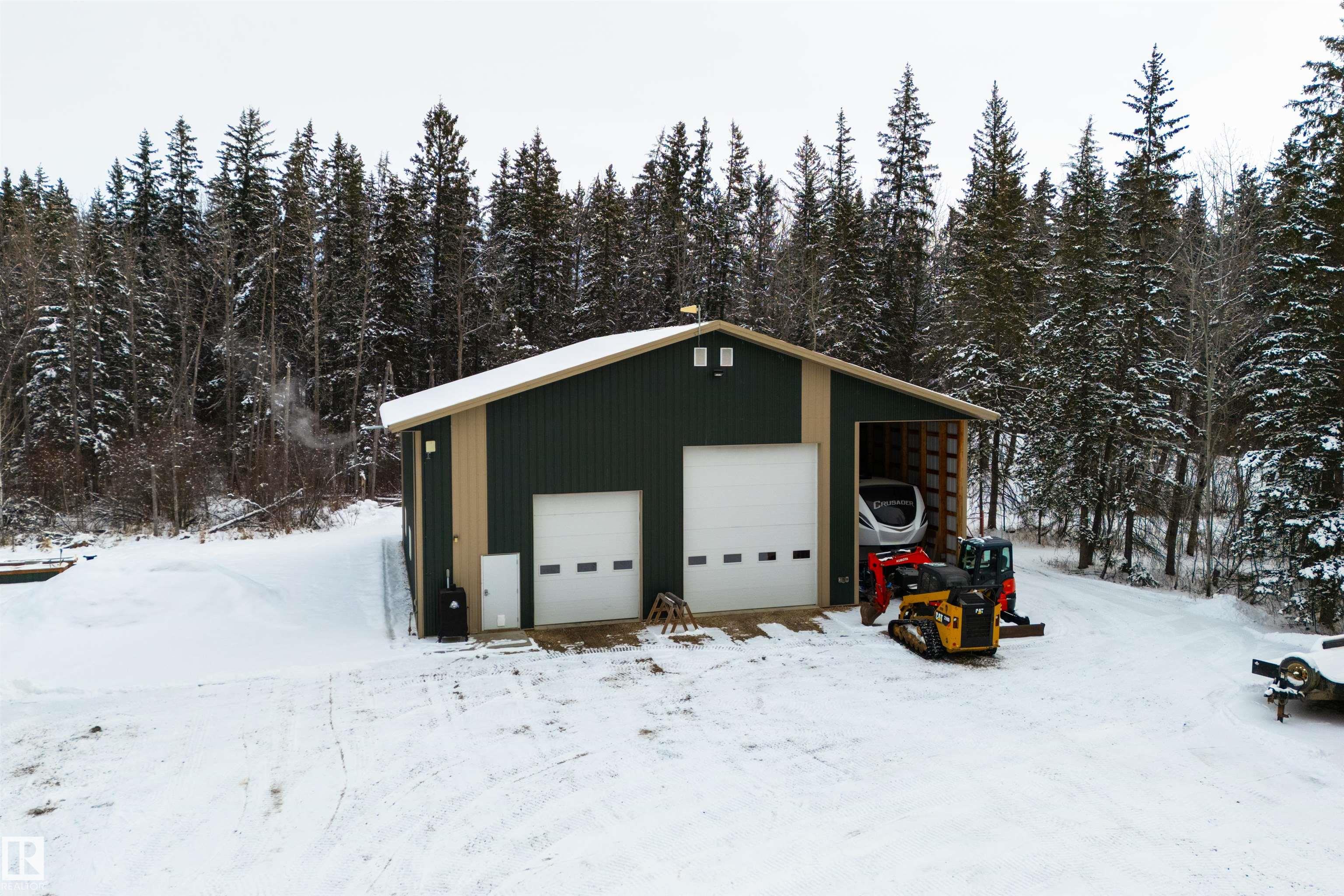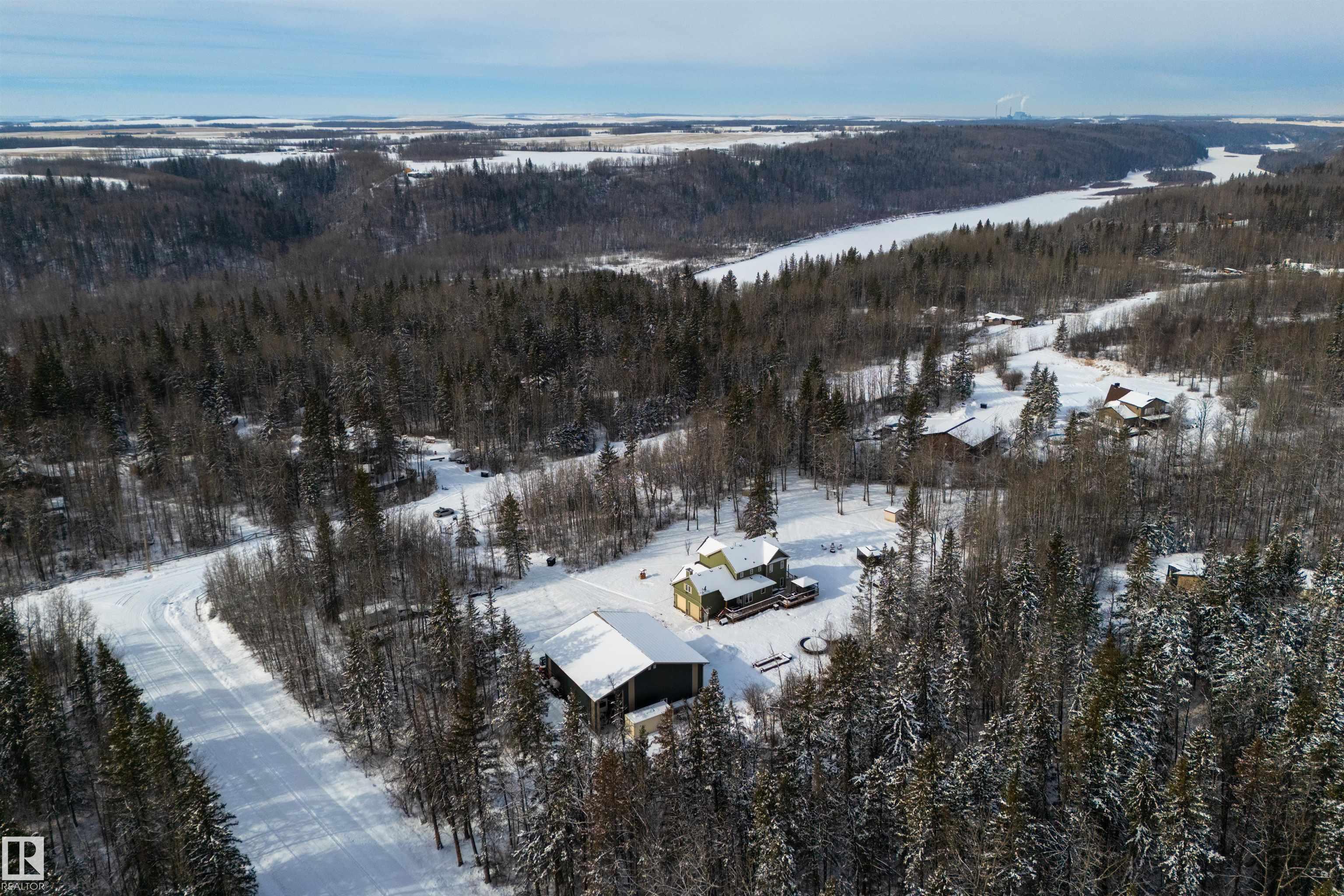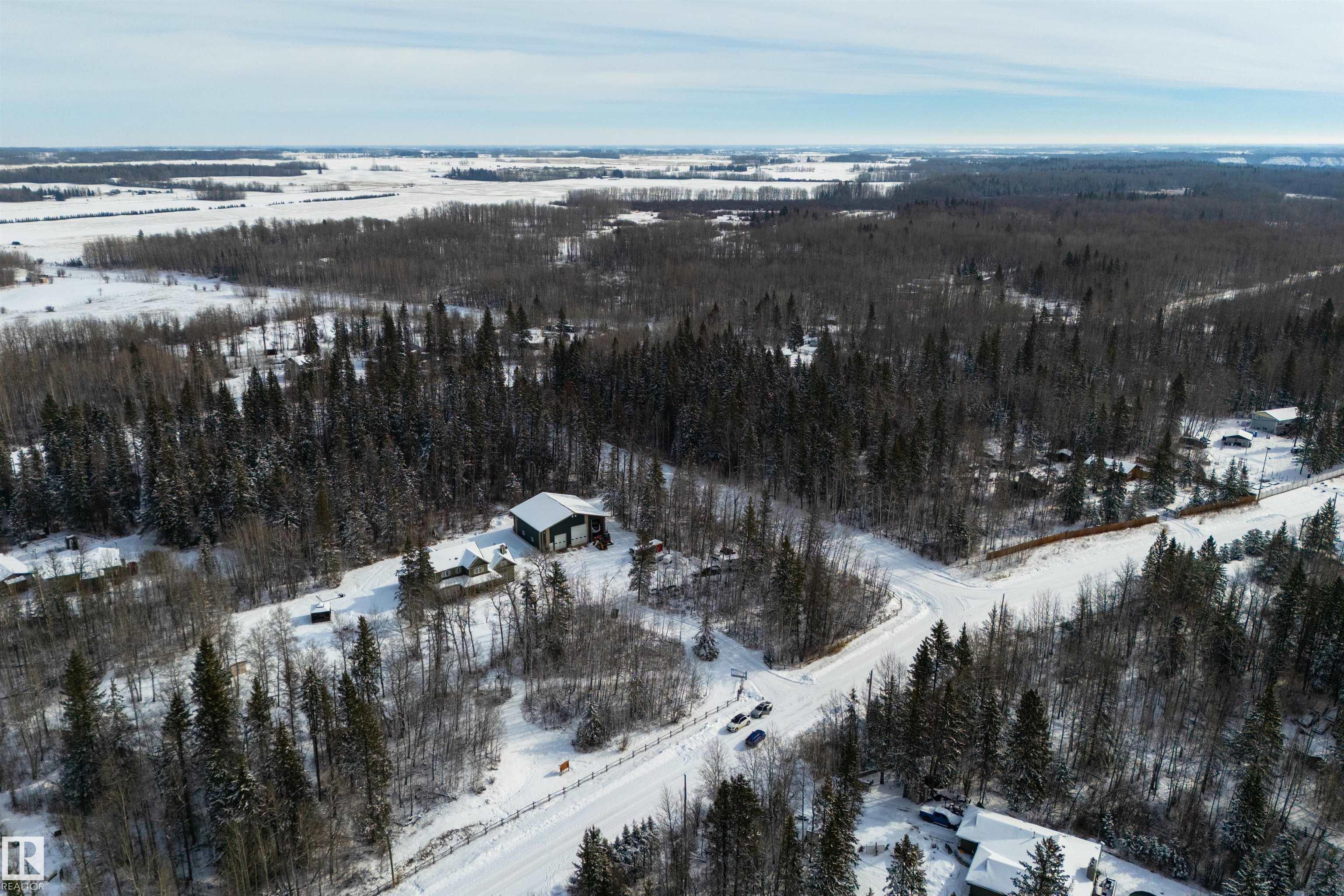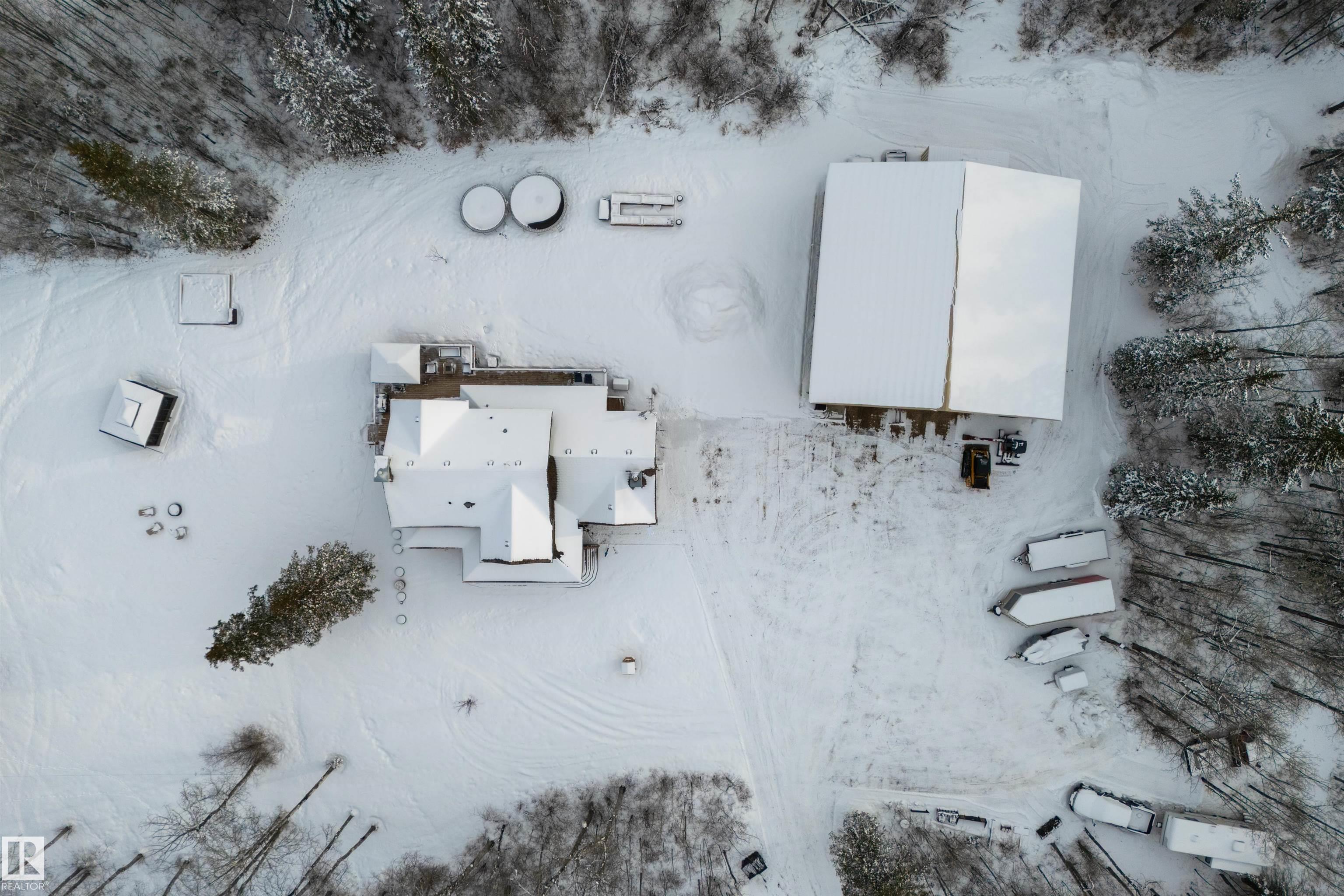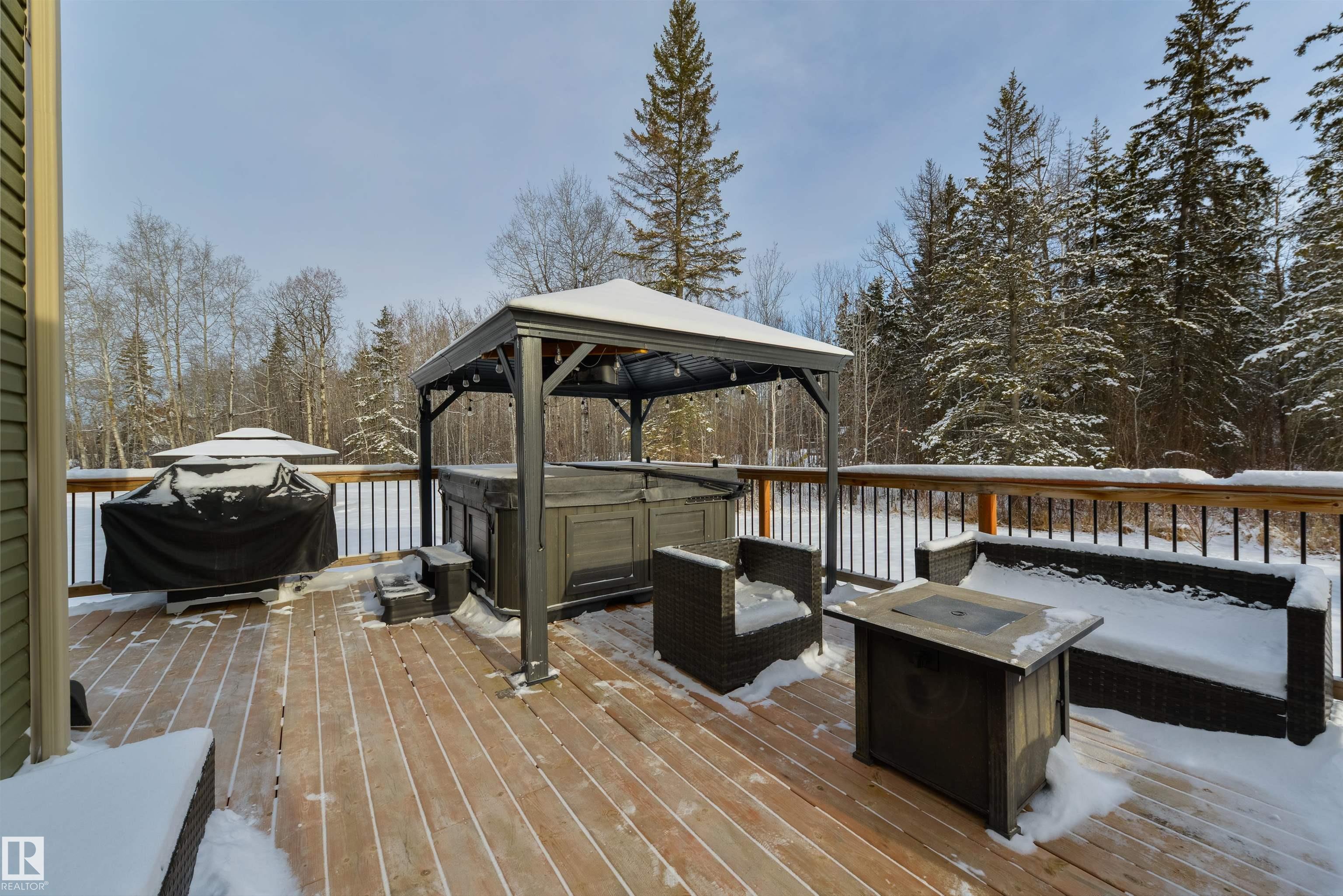 Imagine your kids launching off a 100' zipline while you soak in the hot tub -- the North Saskatchewan River just a short walk away. Set on 3.46 acres approximately 25 minutes SW of Spruce Grove, this beautifully treed property delivers a stunning backdrop & the acreage lifestyle you've been longing. A wrap-around deck covers half the home, permanent outdoor lighting illuminates the exterior, and there's room to breathe in every direction. Inside, every detail feels intentional - A/C, a gas fireplace, hardwood flooring, office/den, granite countertops in the kitchen, 9' ceilings on the top two floors, main floor laundry, wood stove in the bonus room, a finished basement, and 4 total bedrooms including a king-sized owner's suite with walk-through closet & 5pc ensuite. Then there's the shop -- 52' x 56', 18' ceilings, two oversized overhead doors, radiant heat, and a mezzanine. Properties like this are rare, and the buyers that find them? They don't let go.