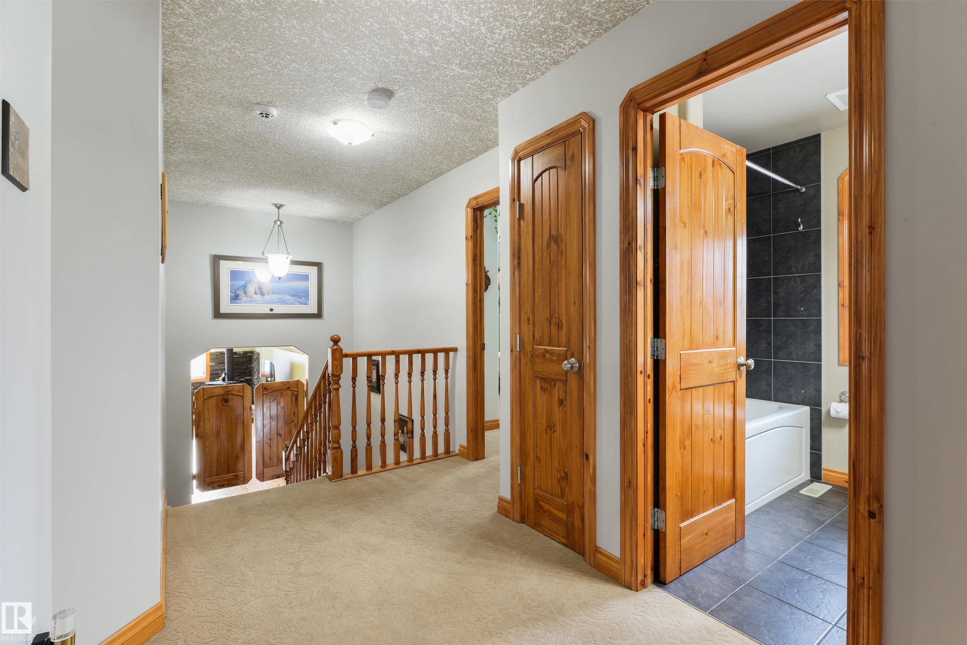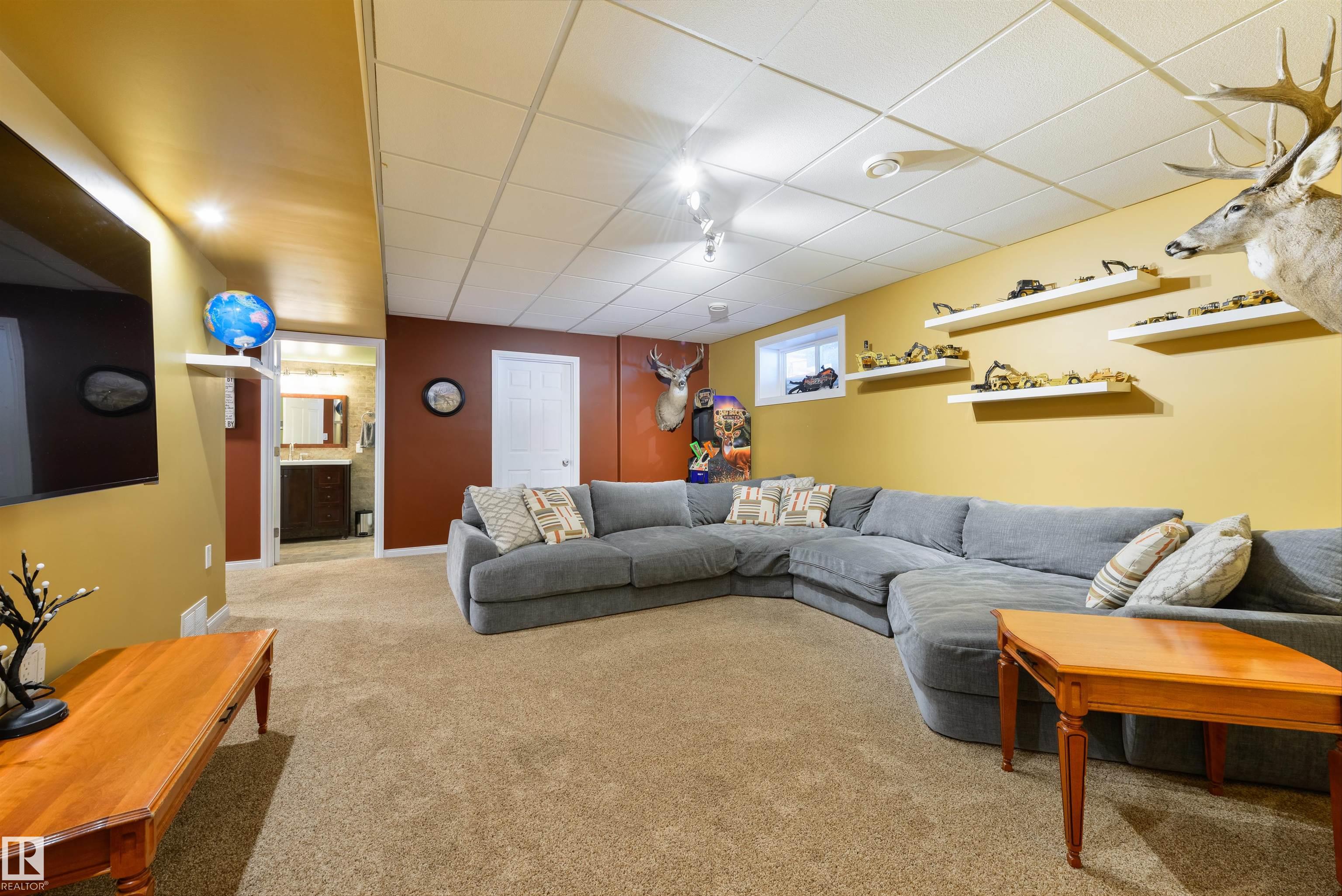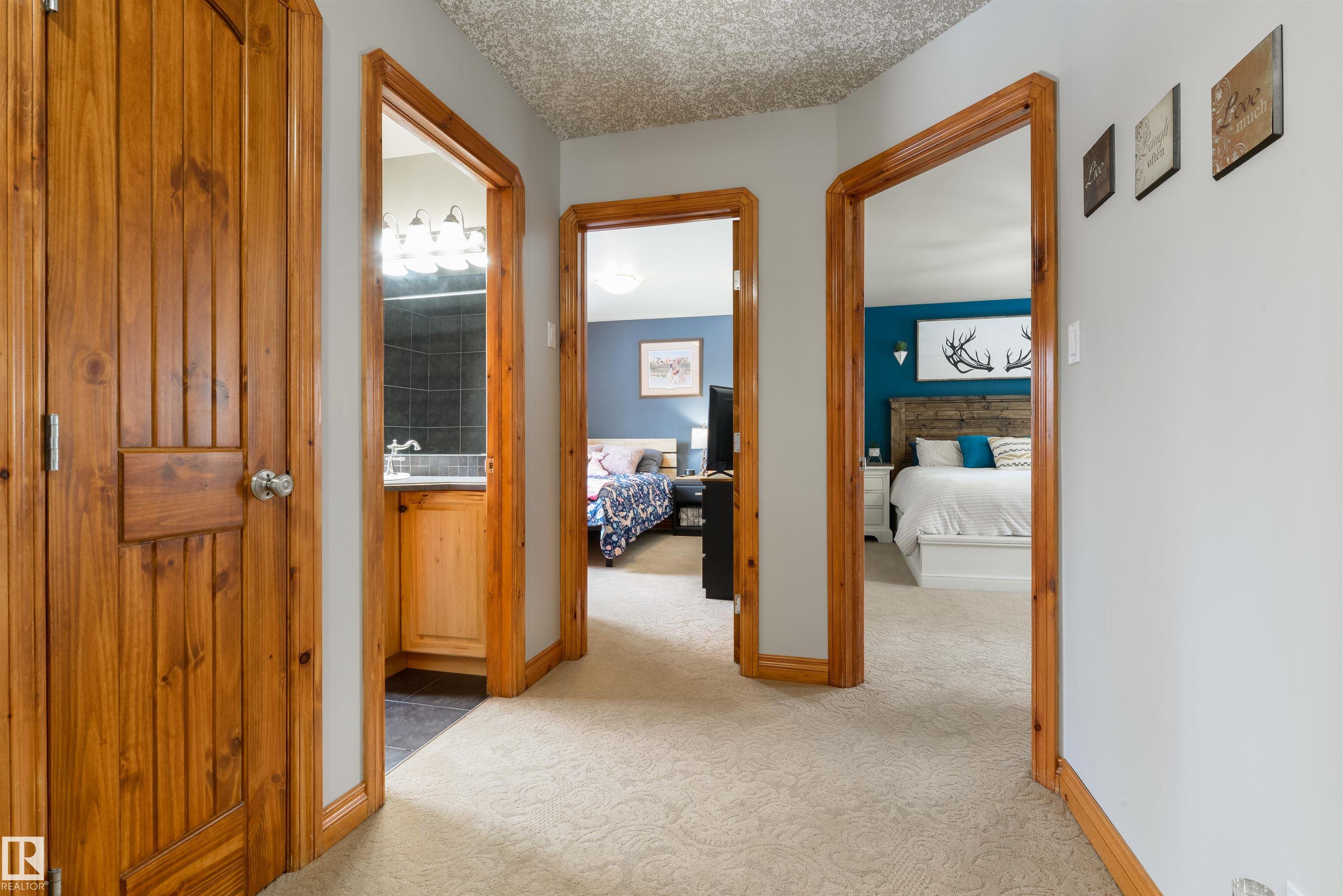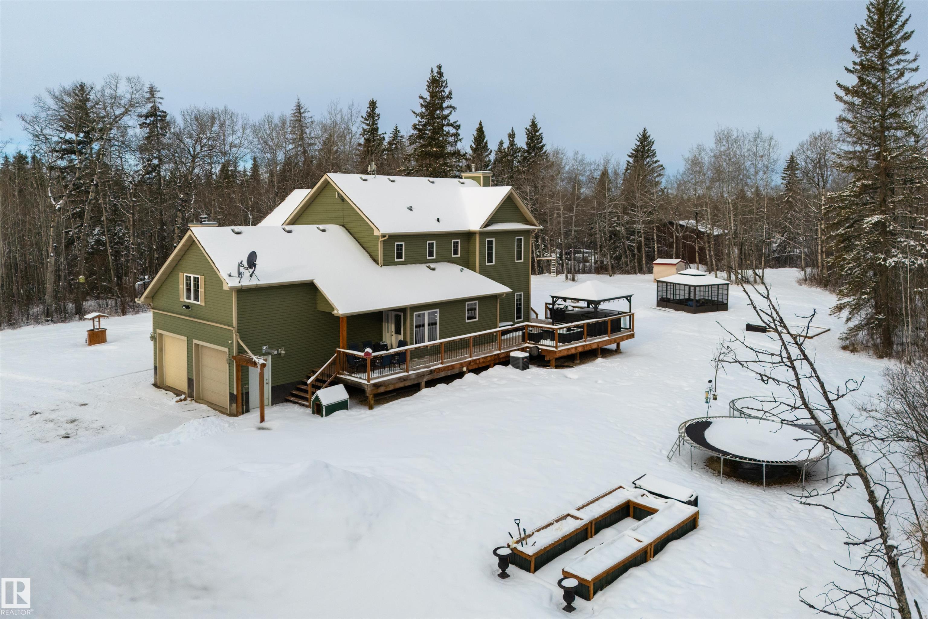 Imagine your kids launching off a 100' zipline while you soak in the hot tub -- the North Saskatchewan River just a short walk away. Set on 3.46 acres approximately 25 minutes SW of Spruce Grove, this beautifully treed property delivers a stunning backdrop & the acreage lifestyle you've been longing. A wrap-around deck covers half the home, permanent outdoor lighting illuminates the exterior, and there's room to breathe in every direction. Inside, every detail feels intentional - A/C, a gas fireplace, hardwood flooring, office/den, granite countertops in the kitchen, 9' ceilings on the top two floors, main floor laundry, wood stove in the bonus room, a finished basement, and 4 total bedrooms including a king-sized owner's suite with walk-through closet & 5pc ensuite. Then there's the shop -- 52' x 56', 18' ceilings, two oversized overhead doors, radiant heat, and a mezzanine. Properties like this are rare, and the buyers that find them? They don't let go.