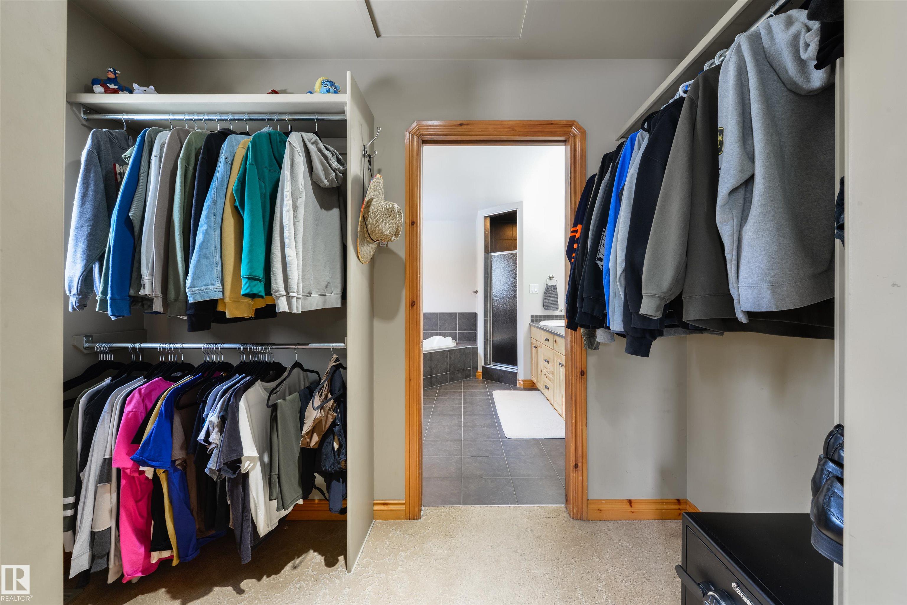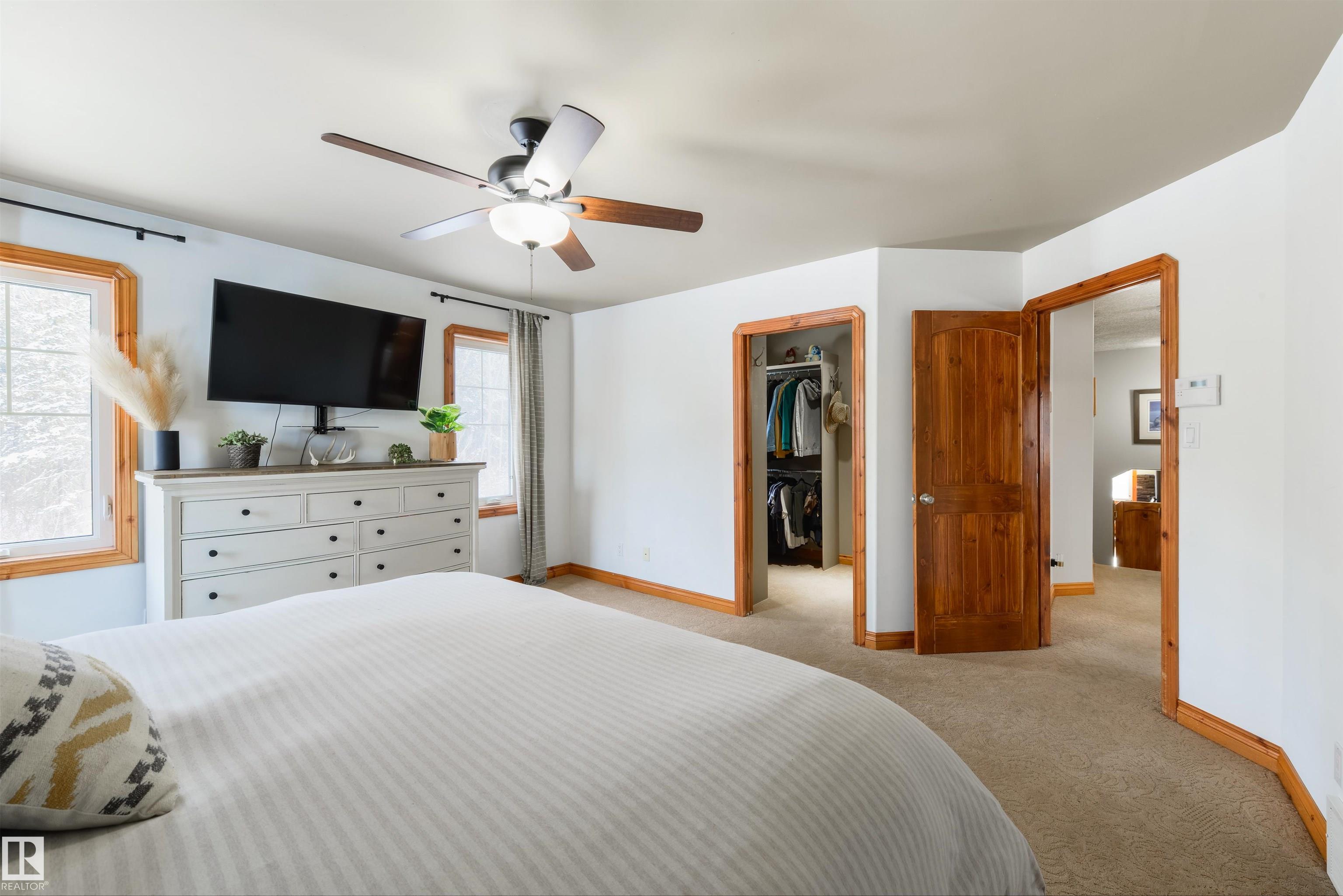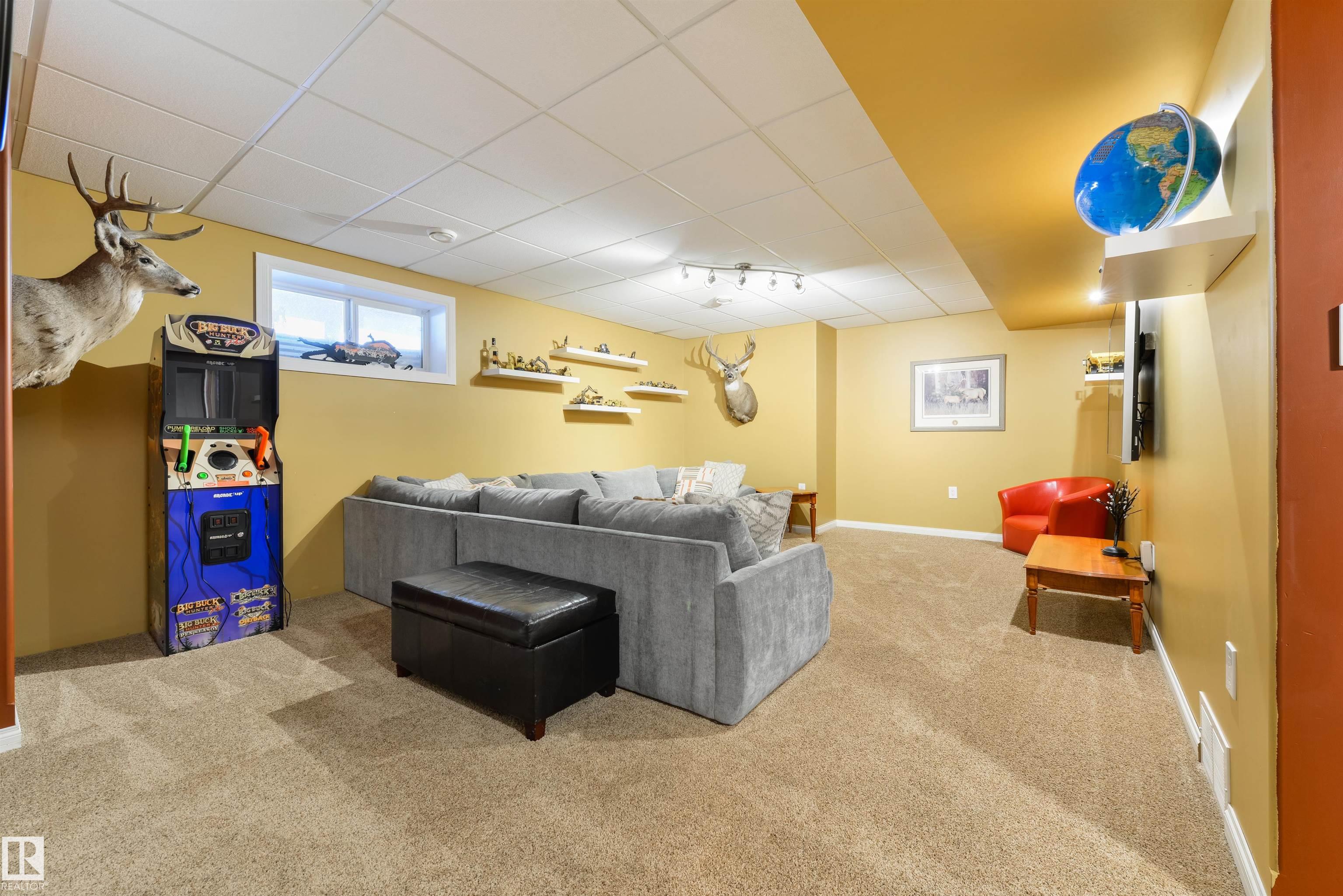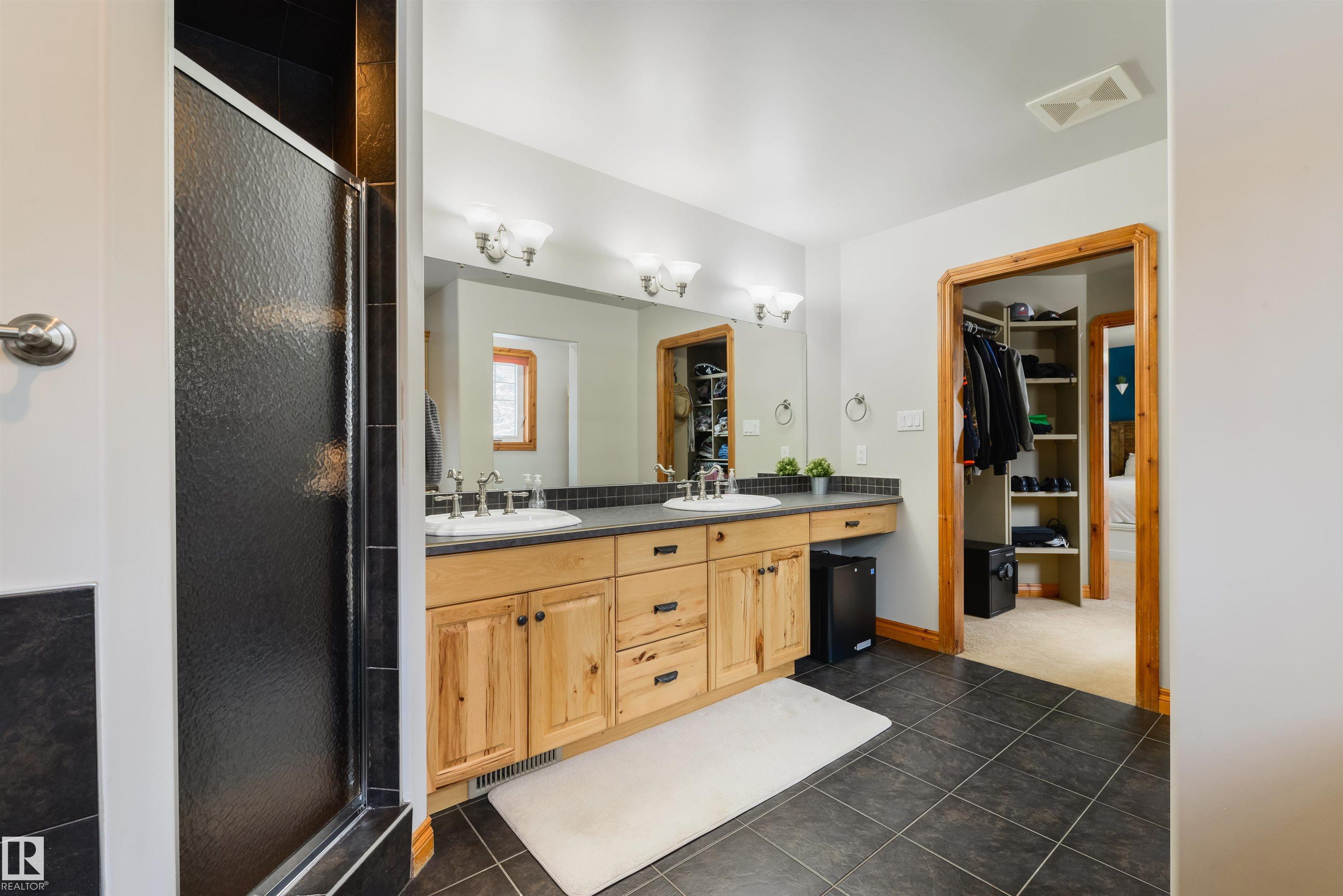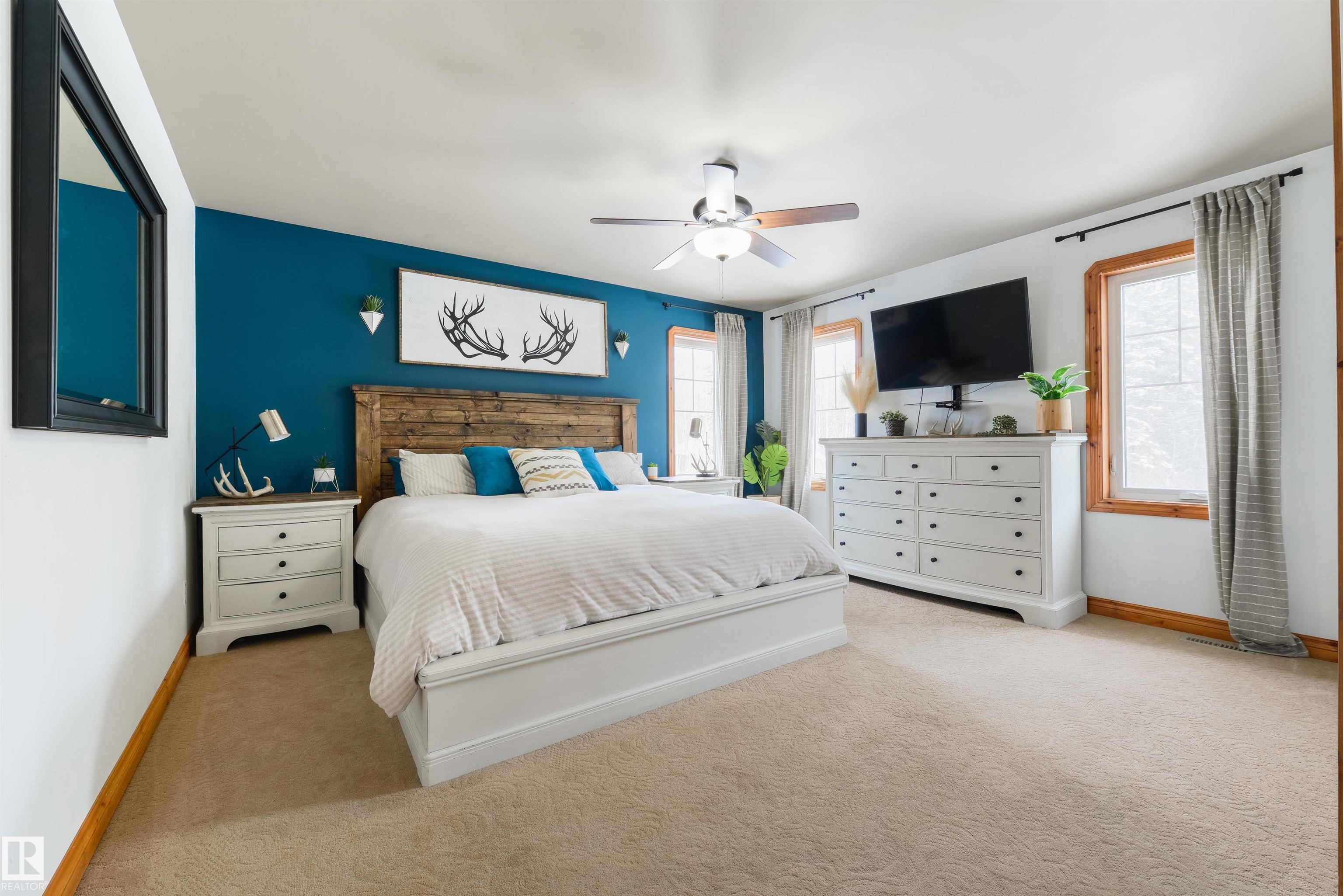 Imagine your kids launching off a 100' zipline while you soak in the hot tub -- the North Saskatchewan River just a short walk away. Set on 3.46 acres approximately 25 minutes SW of Spruce Grove, this beautifully treed property delivers a stunning backdrop & the acreage lifestyle you've been longing. A wrap-around deck covers half the home, permanent outdoor lighting illuminates the exterior, and there's room to breathe in every direction. Inside, every detail feels intentional - A/C, a gas fireplace, hardwood flooring, office/den, granite countertops in the kitchen, 9' ceilings on the top two floors, main floor laundry, wood stove in the bonus room, a finished basement, and 4 total bedrooms including a king-sized owner's suite with walk-through closet & 5pc ensuite. Then there's the shop -- 52' x 56', 18' ceilings, two oversized overhead doors, radiant heat, and a mezzanine. Properties like this are rare, and the buyers that find them? They don't let go.