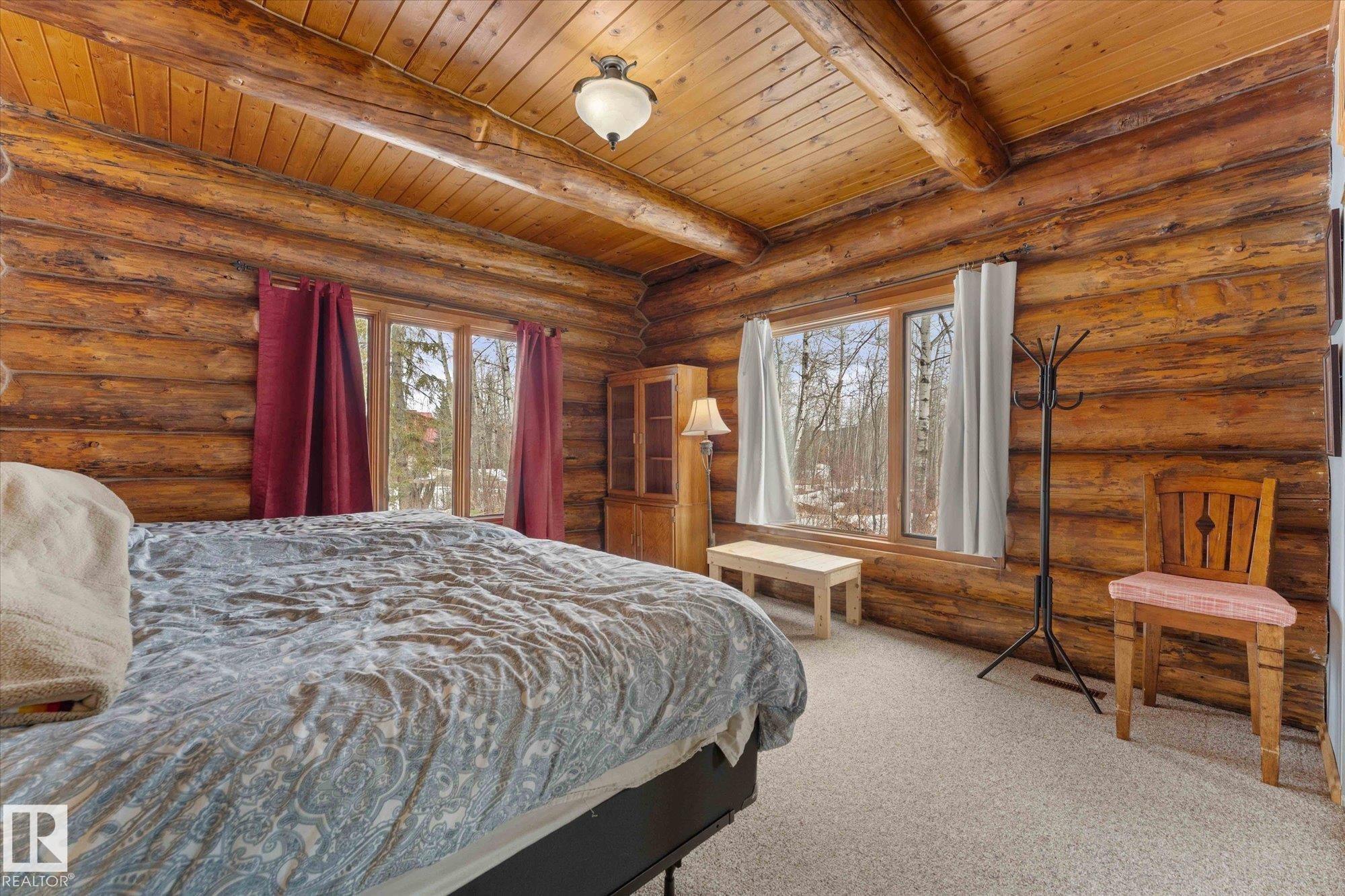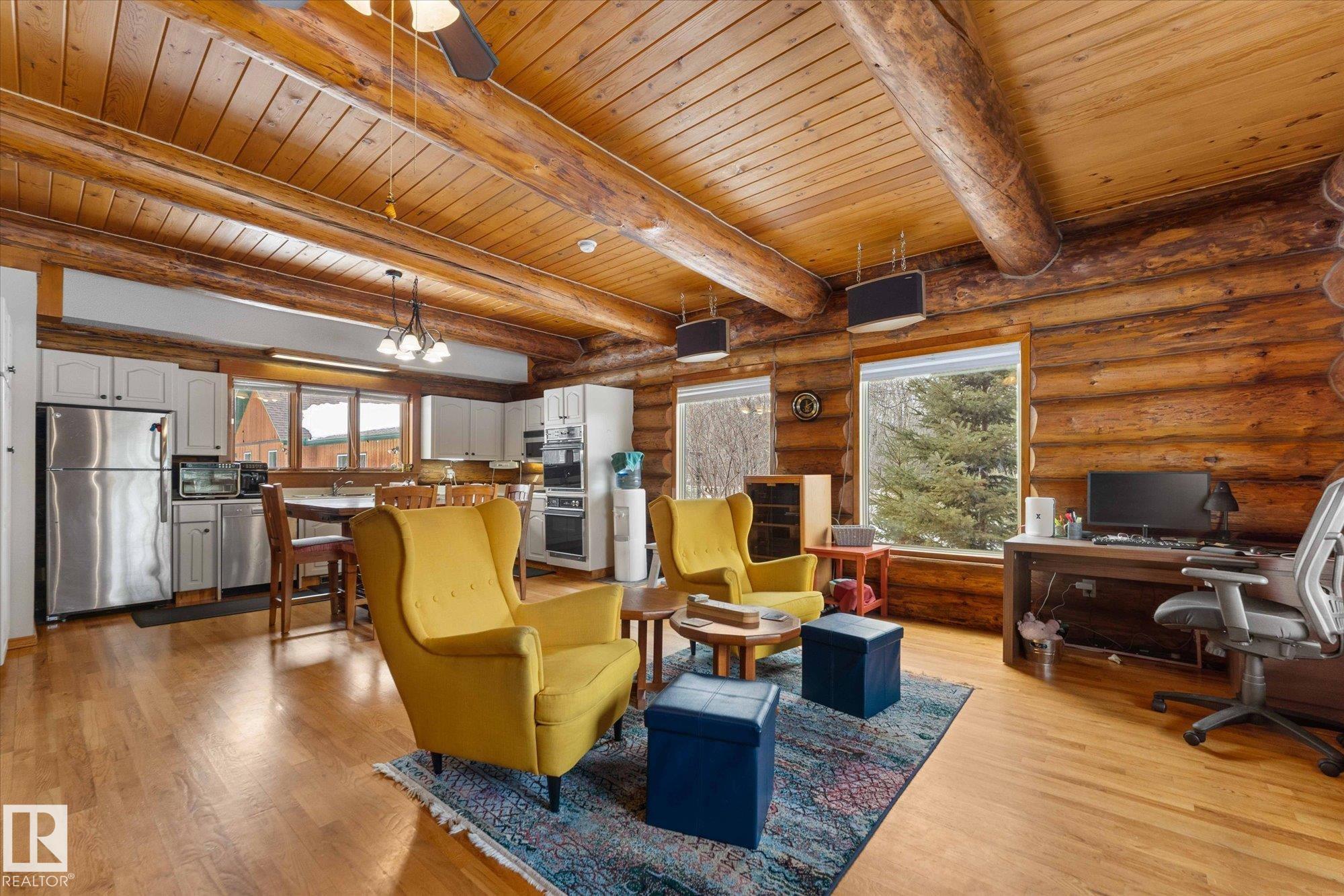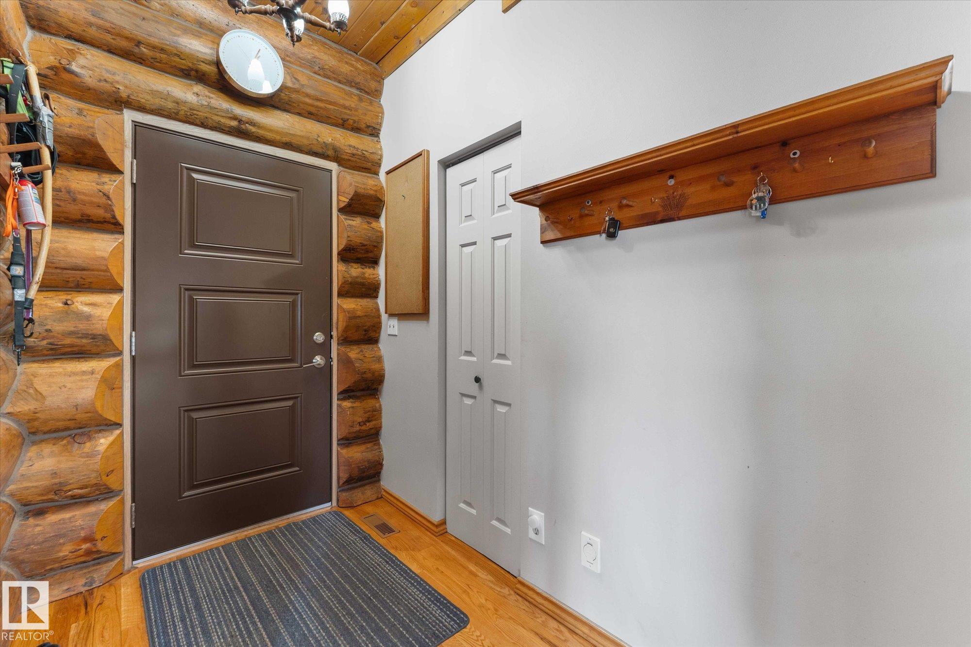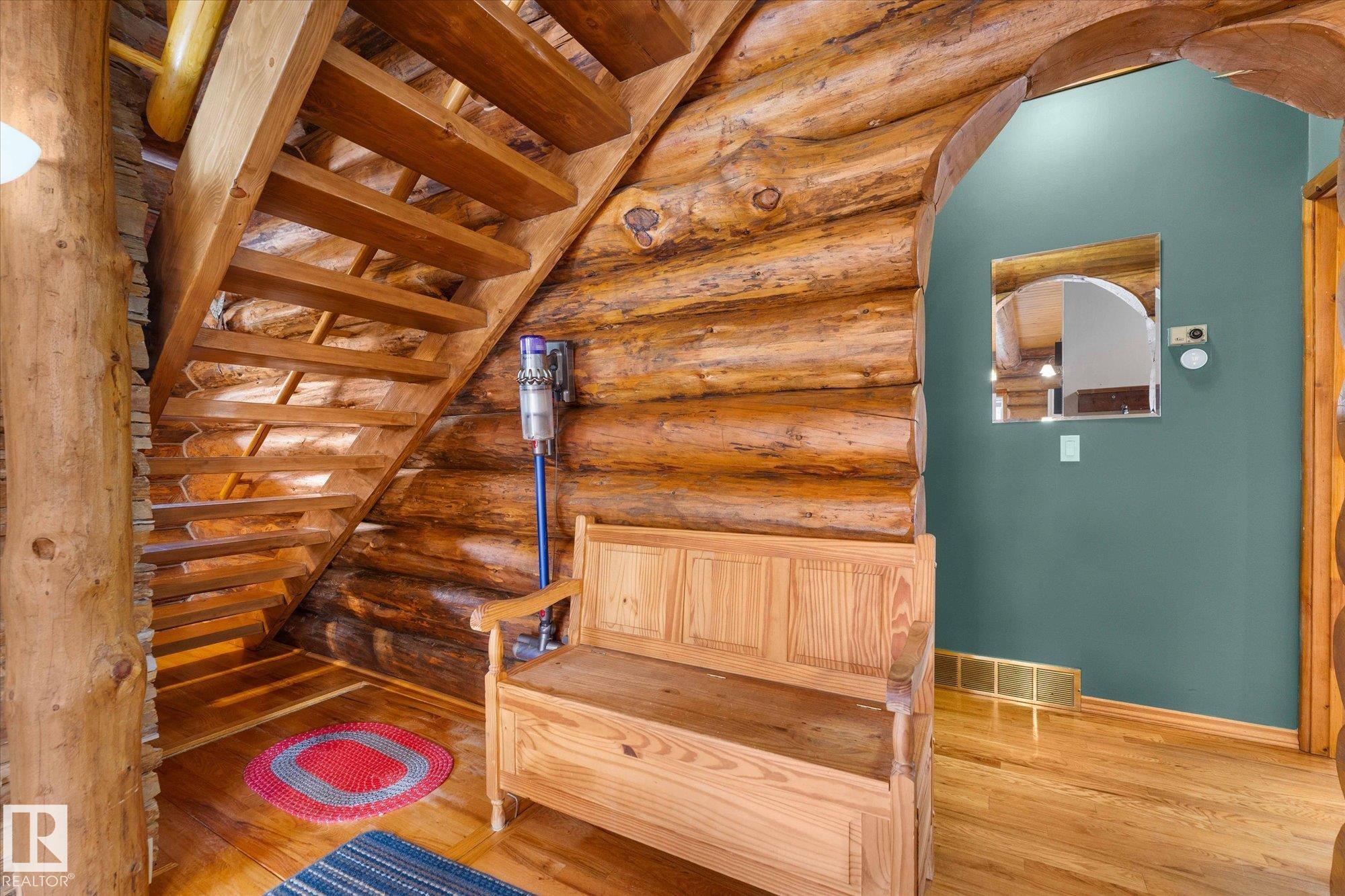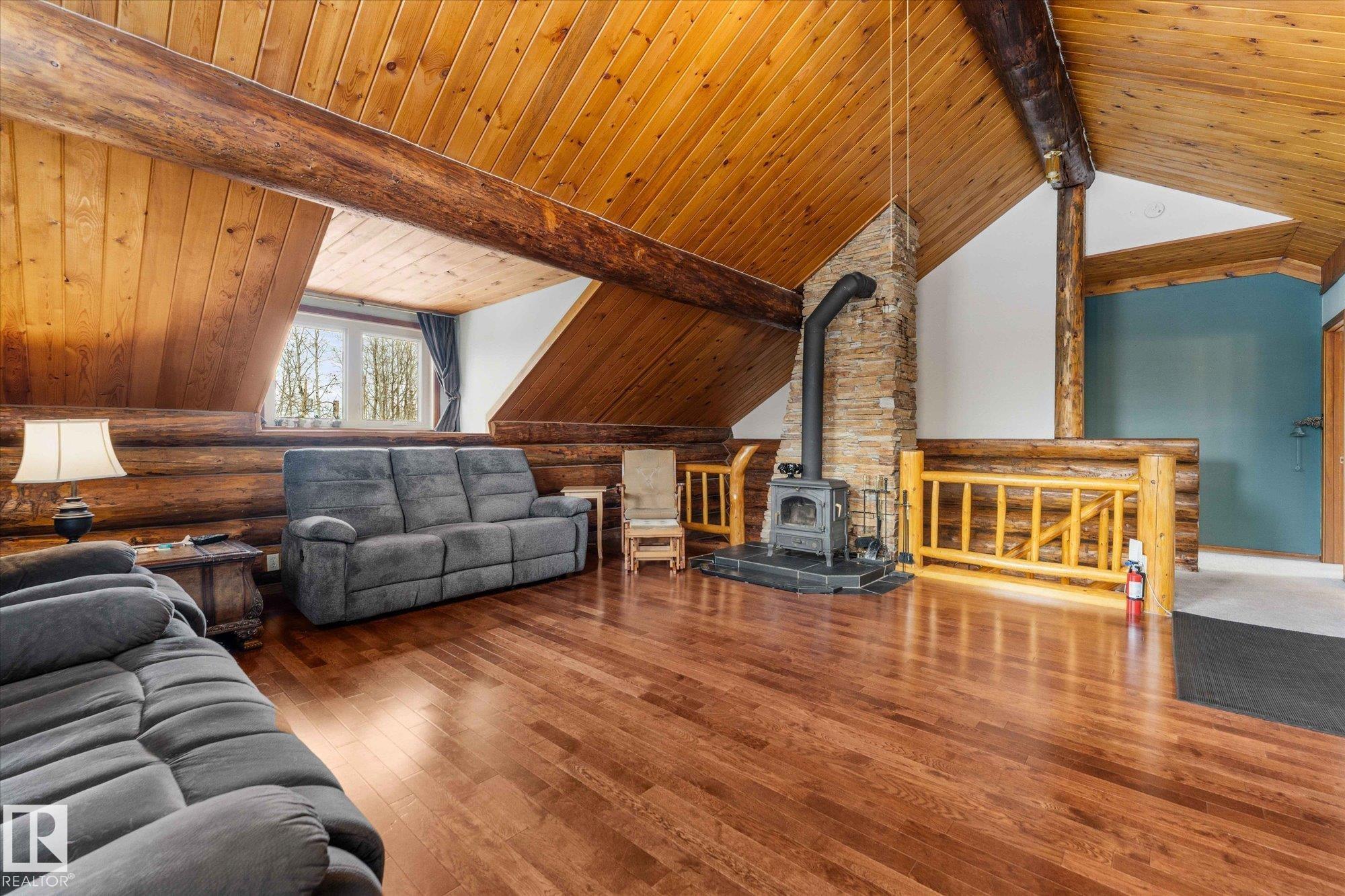 Crafted to Endure. Designed to Be Remembered. A fully restored authentic log home near Wabamun Lake, where natural materials and meticulous craftsmanship define the experience. At the center are two dramatic hand-laid stacked stone fireplaces--crafted stone-by-stone, one on each floor, to create natural depth, texture, and presence. It anchors the space and reflects a level of artisan construction rarely achieved today. Authentic log construction and rich natural materials create a timeless ambiance. Professional restoration, including updated sealants and chinking, enhances durability while preserving the integrity of the home. Warm, functional living spaces support both quiet mornings and gatherings. A large heated garage/shop, mature private setting, and covered outdoor areas extend the experience year-round. A level of craftsmanship rarely seen in today's construction--this is a home that supports the kind of moments people hold onto, built to be appreciated today and carried forward for years to come.