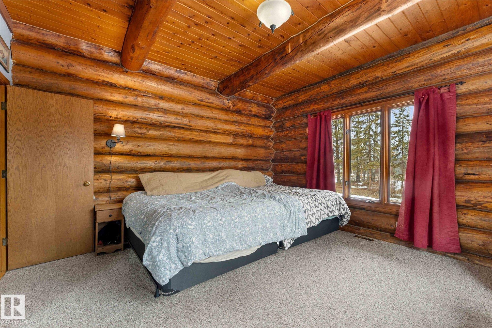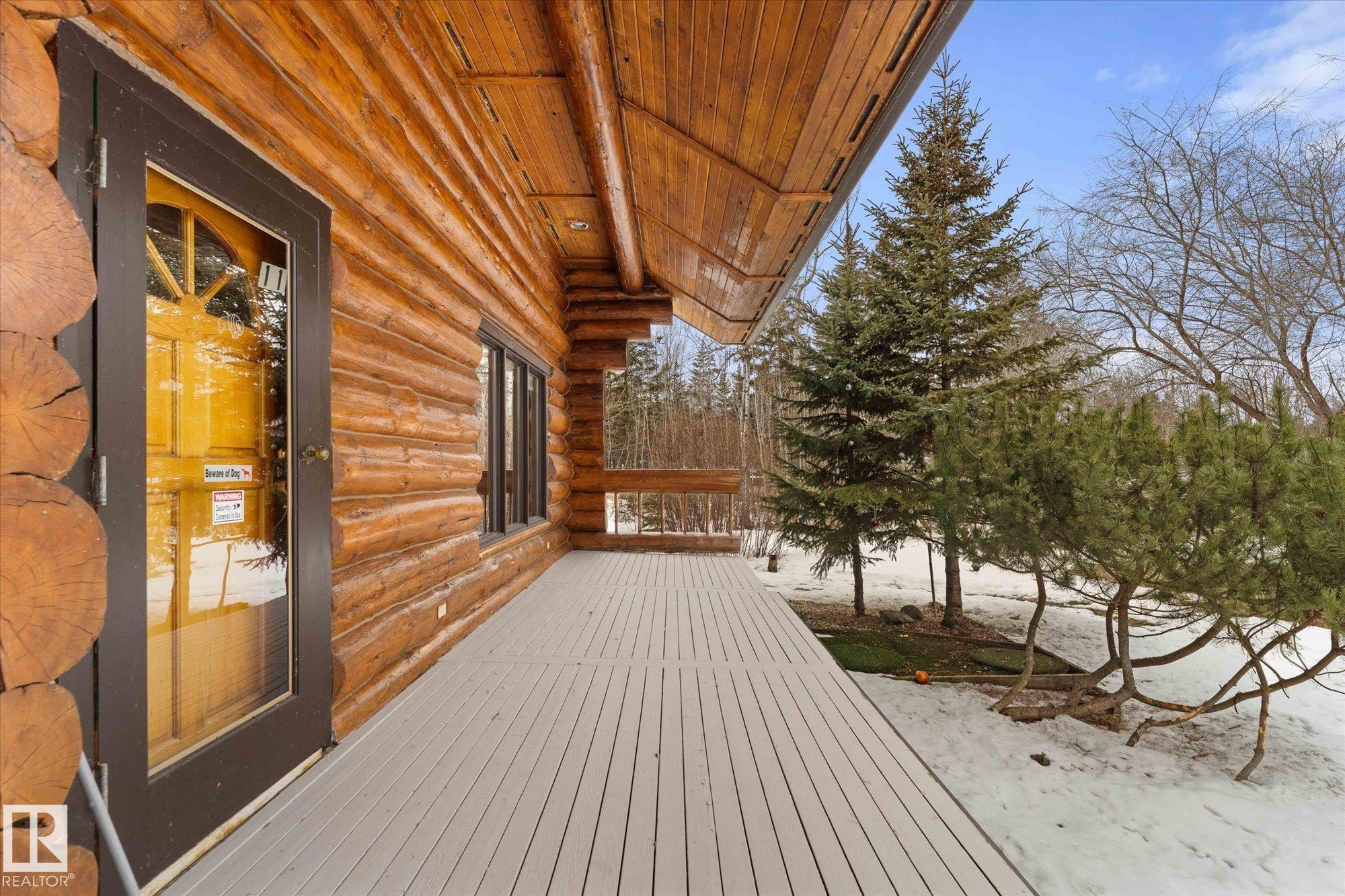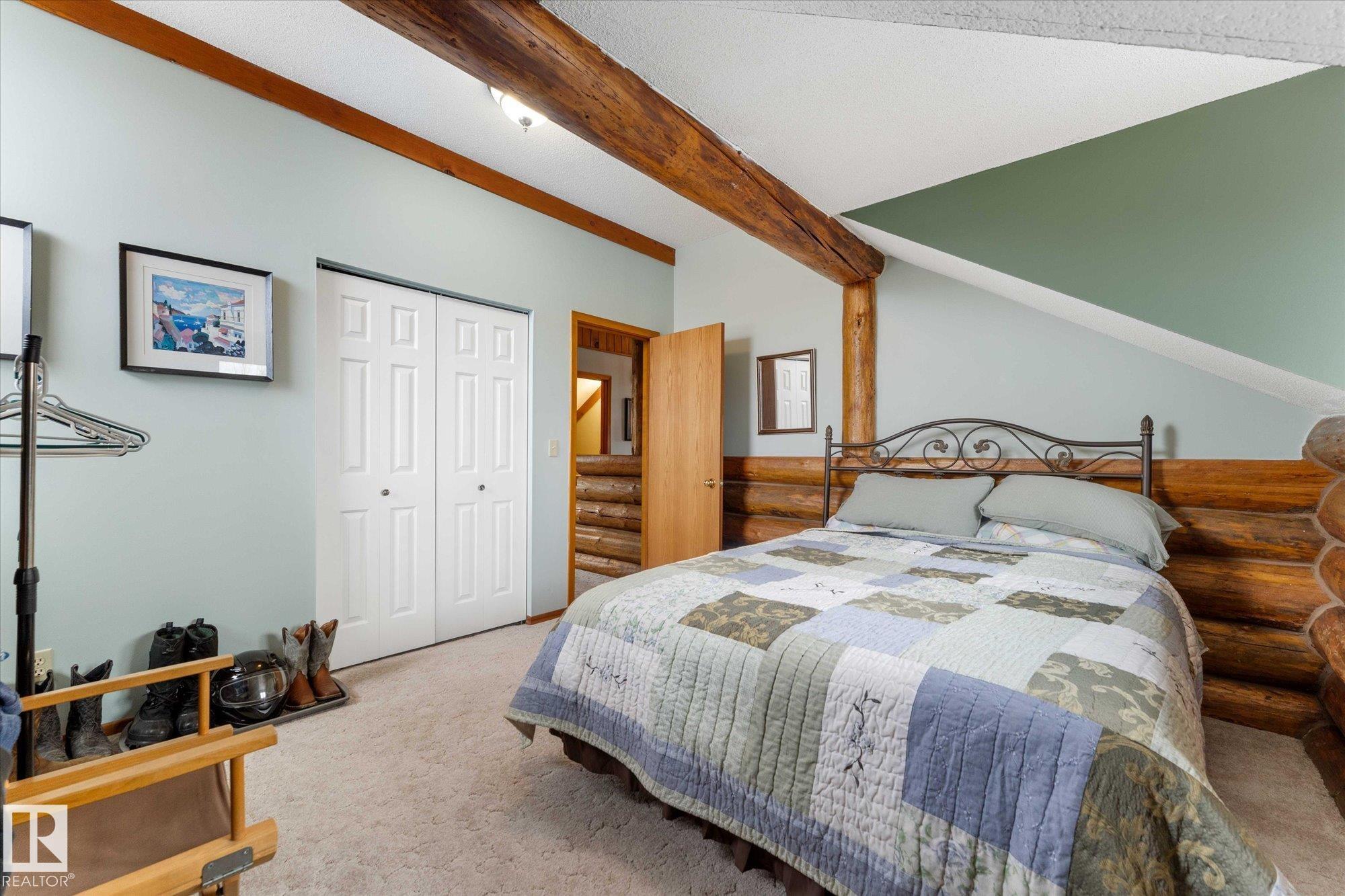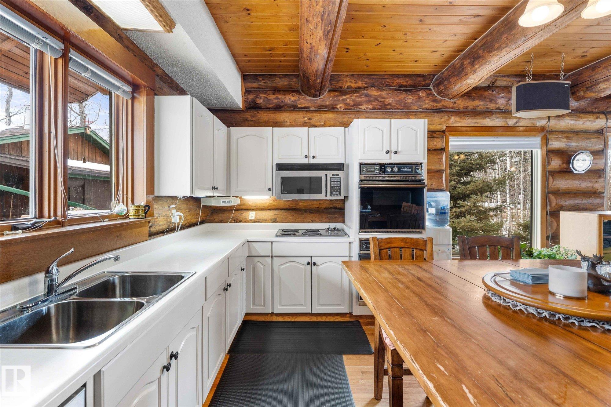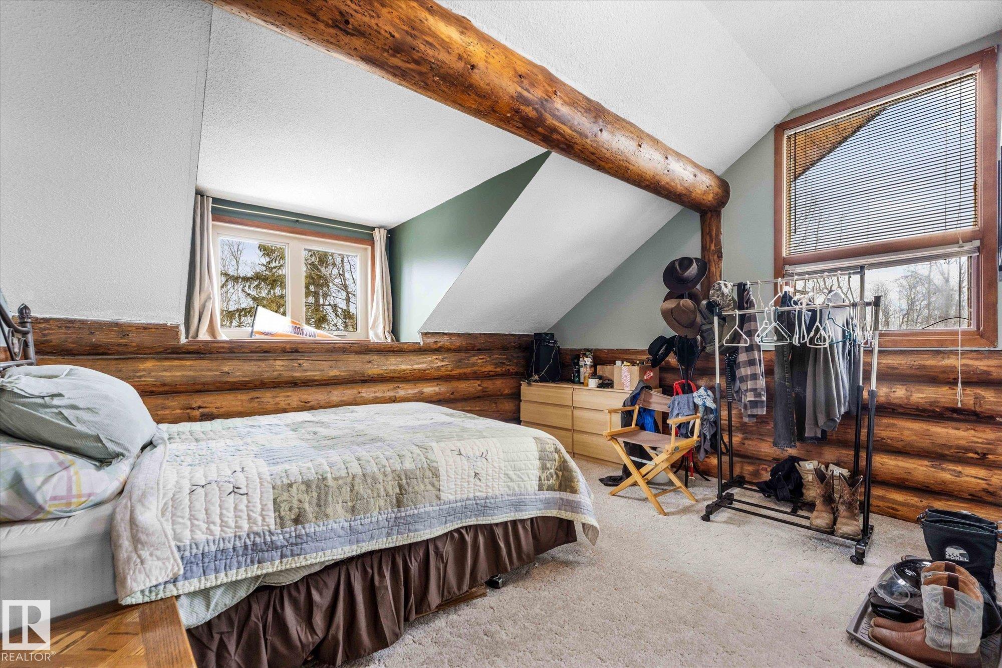 Crafted to Endure. Designed to Be Remembered. A fully restored authentic log home near Wabamun Lake, where natural materials and meticulous craftsmanship define the experience. At the center are two dramatic hand-laid stacked stone fireplaces--crafted stone-by-stone, one on each floor, to create natural depth, texture, and presence. It anchors the space and reflects a level of artisan construction rarely achieved today. Authentic log construction and rich natural materials create a timeless ambiance. Professional restoration, including updated sealants and chinking, enhances durability while preserving the integrity of the home. Warm, functional living spaces support both quiet mornings and gatherings. A large heated garage/shop, mature private setting, and covered outdoor areas extend the experience year-round. A level of craftsmanship rarely seen in today's construction--this is a home that supports the kind of moments people hold onto, built to be appreciated today and carried forward for years to come.