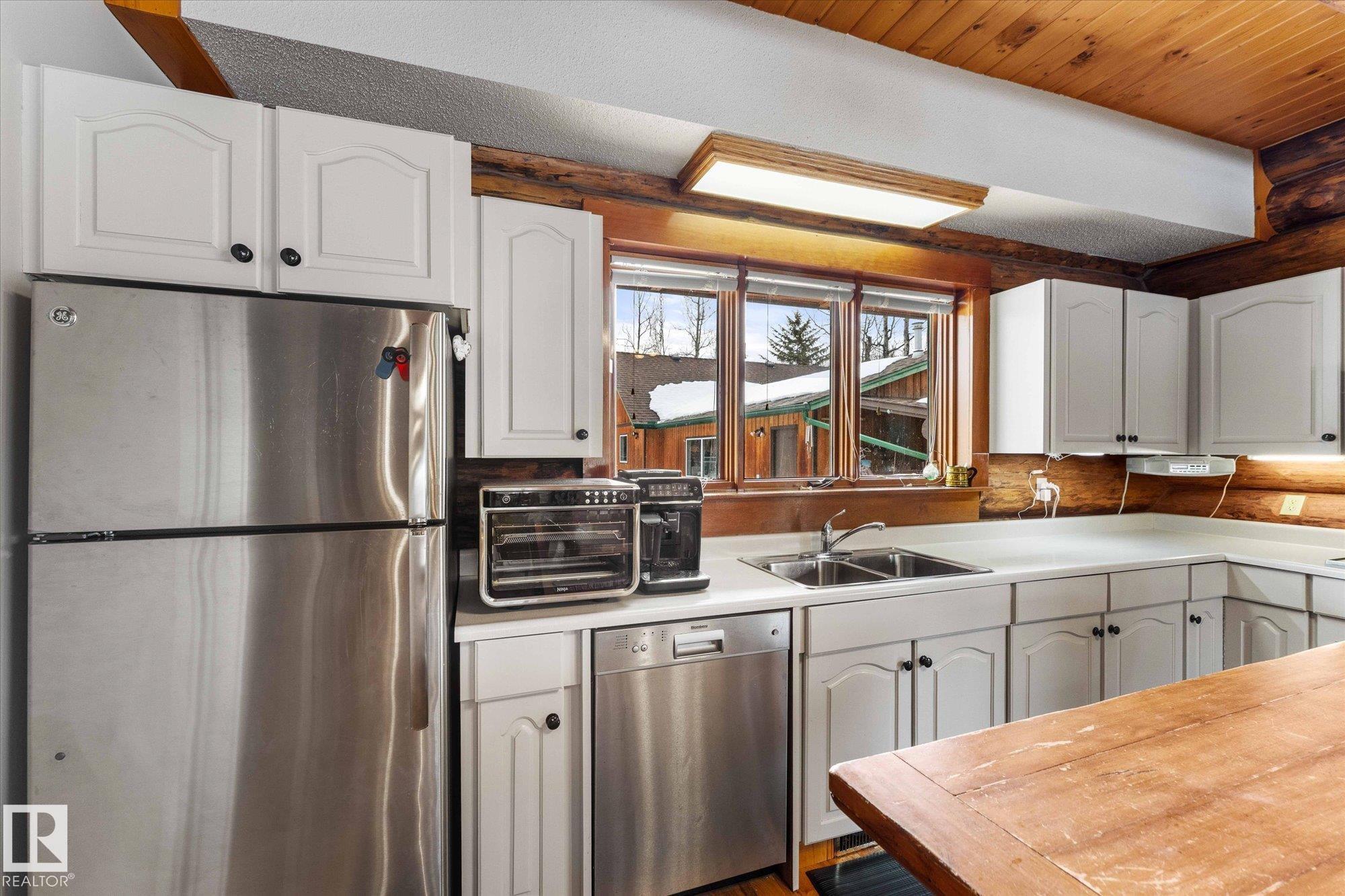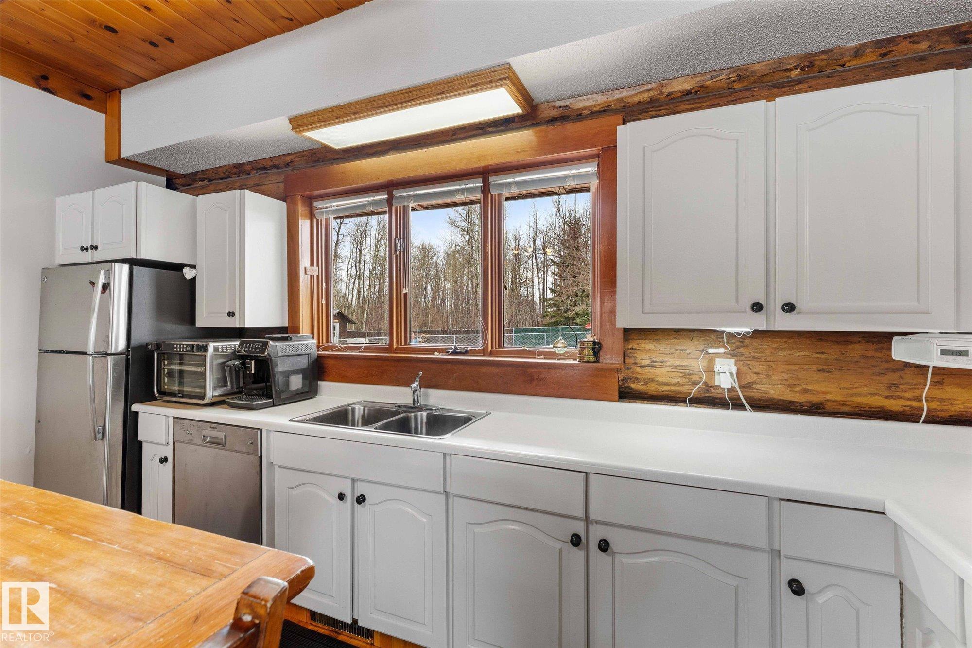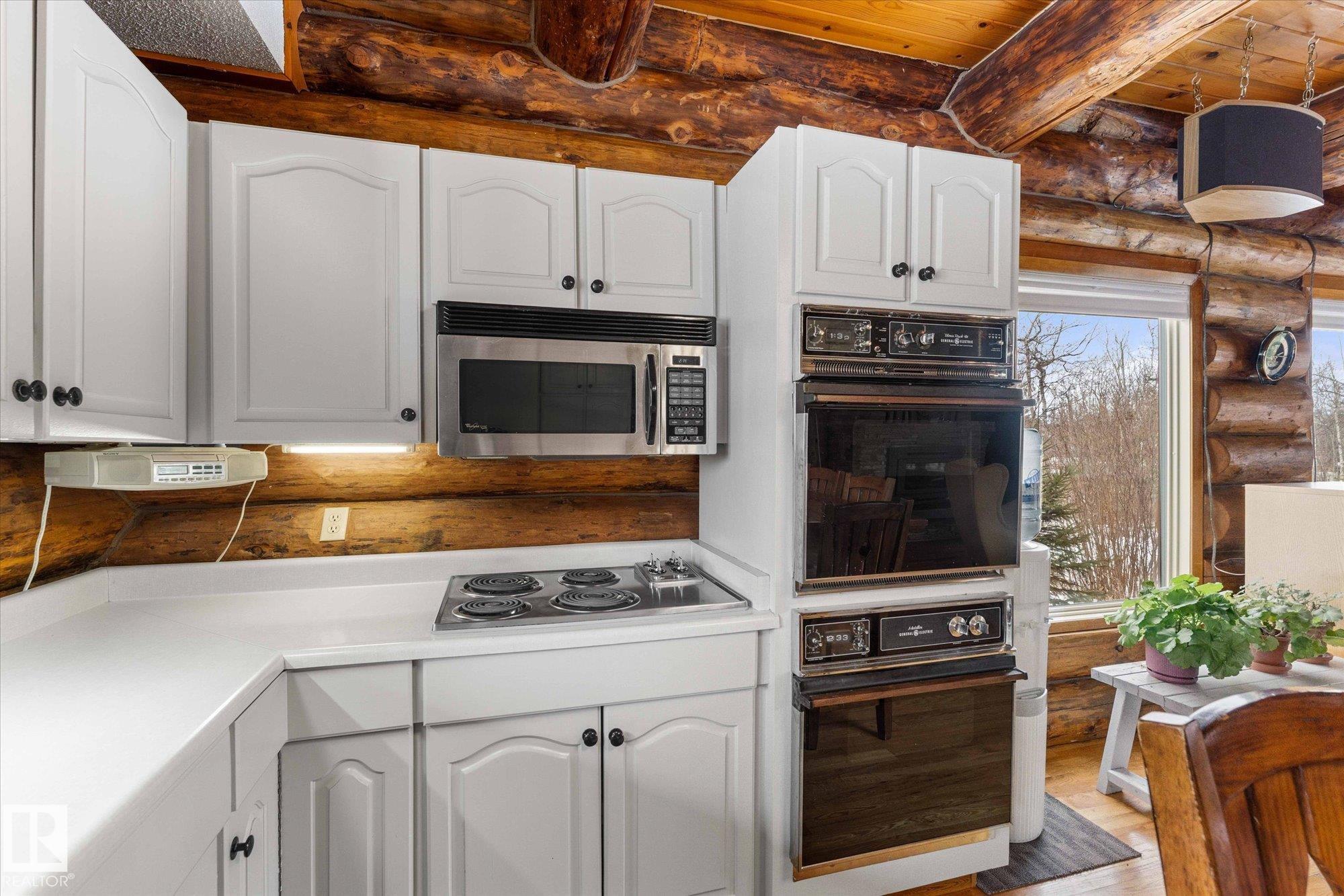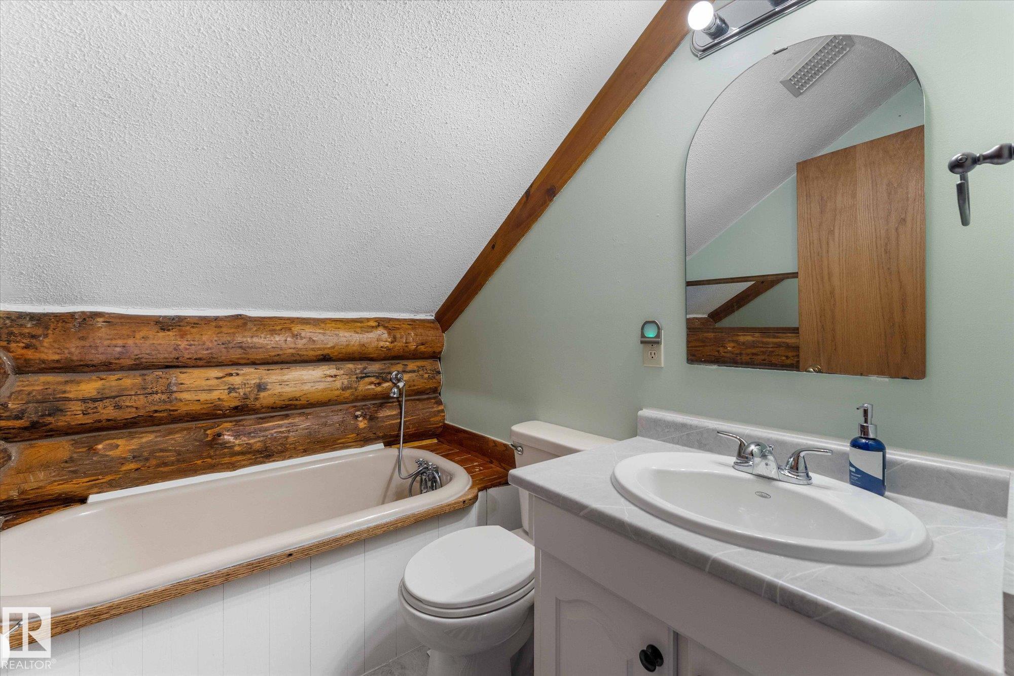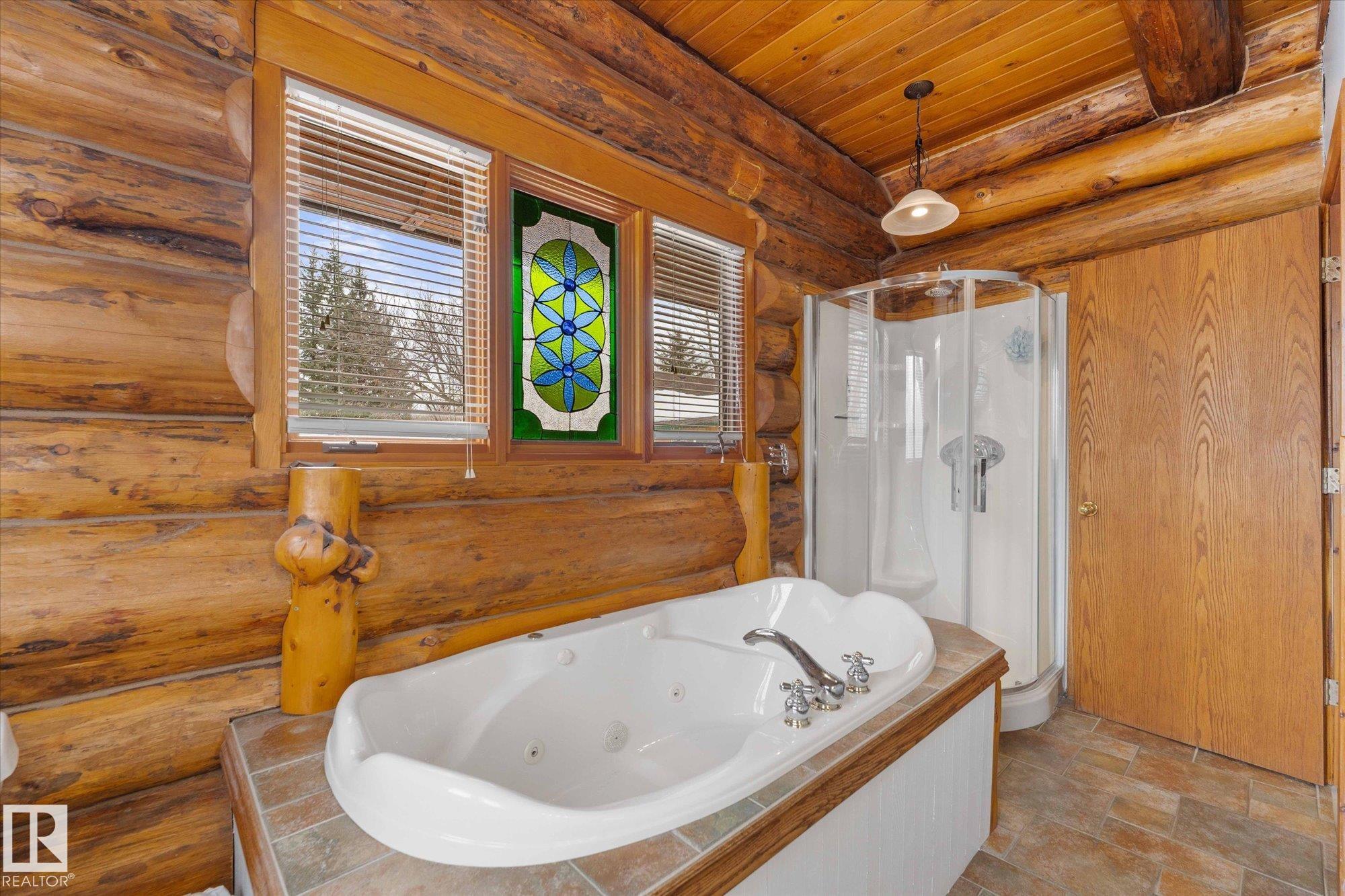 Crafted to Endure. Designed to Be Remembered. A fully restored authentic log home near Wabamun Lake, where natural materials and meticulous craftsmanship define the experience. At the center are two dramatic hand-laid stacked stone fireplaces--crafted stone-by-stone, one on each floor, to create natural depth, texture, and presence. It anchors the space and reflects a level of artisan construction rarely achieved today. Authentic log construction and rich natural materials create a timeless ambiance. Professional restoration, including updated sealants and chinking, enhances durability while preserving the integrity of the home. Warm, functional living spaces support both quiet mornings and gatherings. A large heated garage/shop, mature private setting, and covered outdoor areas extend the experience year-round. A level of craftsmanship rarely seen in today's construction--this is a home that supports the kind of moments people hold onto, built to be appreciated today and carried forward for years to come.