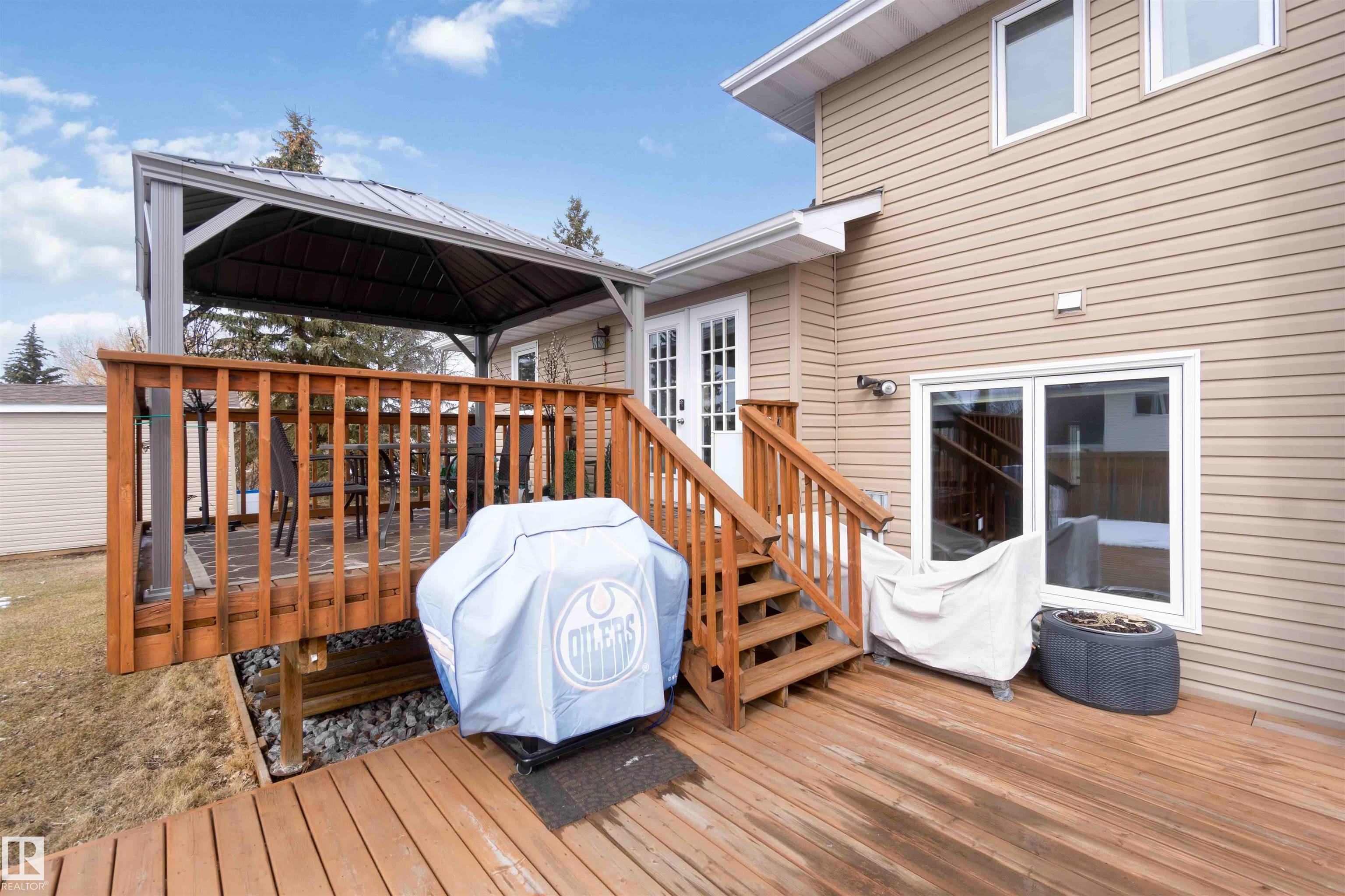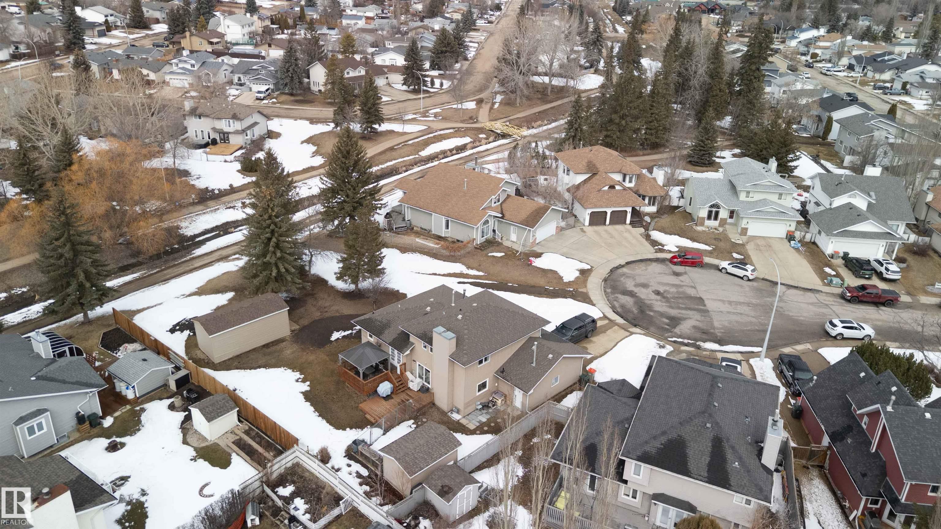 RARE opportunity on a MASSIVE pie-shaped lot backing directly onto a greenbelt & scenic walking trail homes like this seldom come to market. Tucked away on a quiet, treed cul-de-sac, this impressive property offers over 2,700 sq ft of developed living space across five well designed levels perfect for growing families. Enjoy warm evenings on the expansive 2 tier deck overlooking the huge, private backyard with southwest exposure that fills the home with natural light. Inside, the home is bright & beautifully updated with a modern open-concept layout. The renovated kitchen features granite countertops, SS appliances, a lg central island. The spacious living room is anchored by a gas FP with a floor-to-ceiling acoustic paneling surround. New vinyl plank flooring & carpet run throughout, with most windows replaced. The fully developed walk-up basement offers an in-law suite with a separate entrance--ideal for extended family. Updates include windows, lighting, flooring, furnace, HW tank & O/S 20x26 shed.