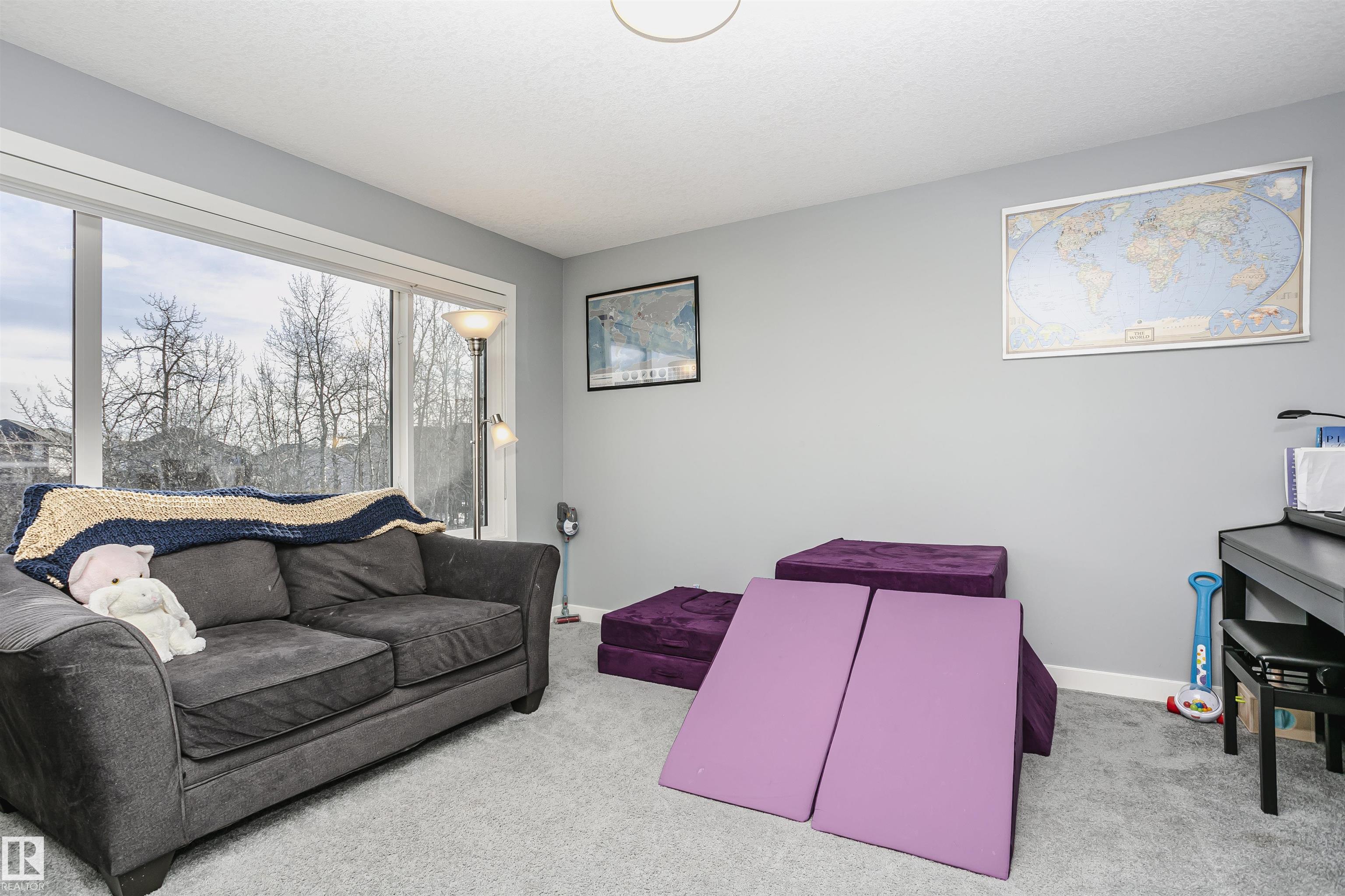 Seeking a family friendly area, mins from Jesperdale Playground? Maybe something only a few yrs old, over 2300 sq ft & packed w upgrades? Welcome home! This 2 storey offers a rare triple tandem garage w EV plug hook-up. Inside features a spacious foyer connecting to a bright airy staircase, main floor office, updated lighting & an open concept kitchen w extended height cabinets, walk-through pantry, quartz counters & breakfast bar island. The living room peeks up to the bonus room above with yard & views out back + cozy FP. Upstairs features a bonus room, a unique main bath w sep tub & vanity zones & a luxurious primary suite connected to laundry w spa-like ensuite & lg WIC. The newly fin bsmnt offers a lg bed, full bath w custom tile, roughed-in bar area. Outside enjoy the deck w trellis, patio lights, 2 gas lines + salt water Arctic Spa hot tub. Backing onto a forested green space & stream w walking trails. Extras include central AC, solar panel system, on-demand HWT, HVAC system & 200 amp service.