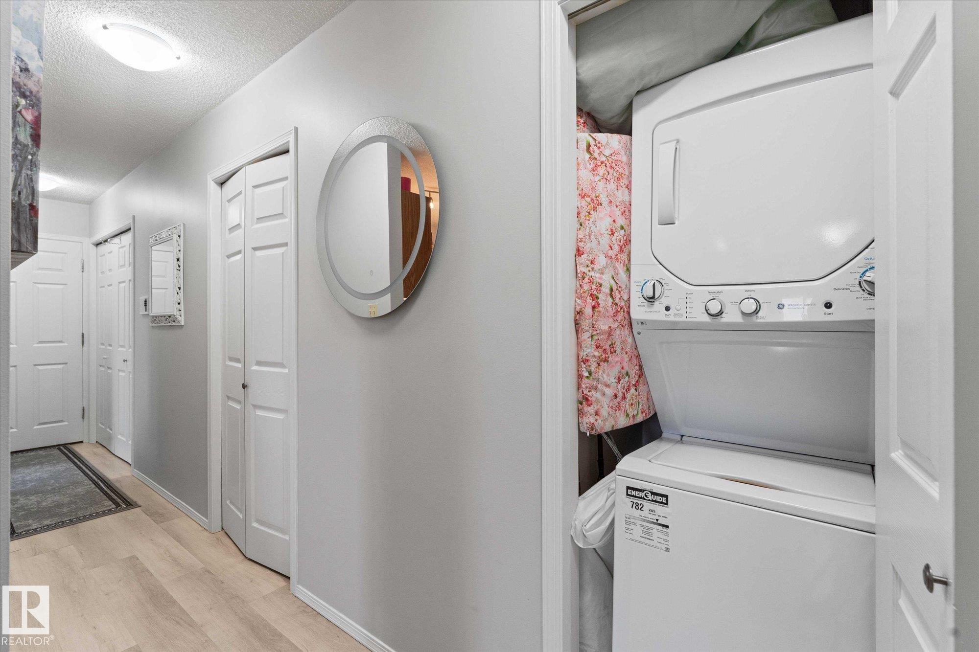 AFFORDABLE TOP FLOOR UNIT IN EXCELLENT CONDITION! Wonderful 45 + building on Church Road. One bedroom suite with one bathroom. In suite laundry with newer stackable washer/dryer set. The home has gorgeous vinyl flooring throughout. A nice sized kitchen and eating area plus a large and bright living room! There's a nice sized balcony as well! The buildiing has an elevator, a large shed outside for shared storage and one parking stall covered by a carport to keep the snow off! The building is in great condition and well taken care of! Adorable and affordable in a great area close to many amenities, a medical center and public transportation!