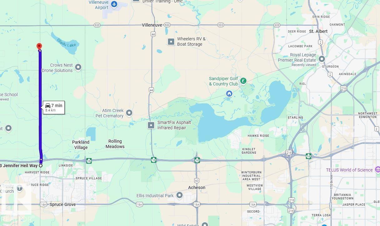 Acreage Opportunity! 3 ACRES surround by MATURE TREES and only 7 MINUTES TO SPRUCE GROVE (on paved roads). Plenty of room to BUILD A HOME PLUS A SHOP, and you can build what you want, with no architectural controls. Zoned Country Residential. TREE LINED DRIVEWAY plus the lot has slope to ACCOMMODATE A WALKOUT BASEMENT. Power and Gas are READY TO CONNECT plus a fresh water cistern. Bussing to Muir Lake School and Stony Plain.