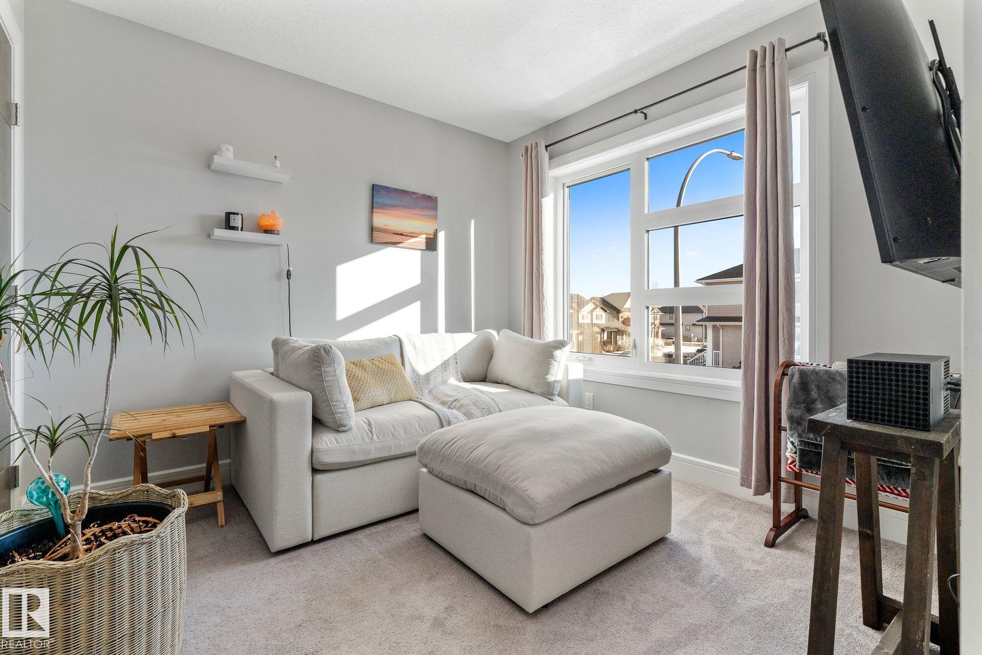 Modern 2016 family home with sun-filled living spaces, a fully landscaped backyard & a partially finished basement, all steps from walking trails and schools! The welcoming entry leads to the sun-filled living & dining space. The kitchen shines w/ two-toned cabinetry, quartz countertops, s/s appliances, a gas range & storage. Updated lighting & flooring (2023) give this space a modern, fresh feel. The powder room & backyard access complete the main level. Enjoy the fully fenced and landscaped backyard, perfect for summer evenings-- and the double detached garage with convenient back alley access. Upstairs features stacked laundry and three bedrooms, including the primary, w/ a walk-in closet & 4-piece ensuite. The partially finished basement adds an extra bedroom & open flex space (ideal for a rec room or home office). Relax on the front deck in the morning sun, stay cool with the central A/C, prime location to playgrounds, shopping & quick access to HWY 16/16A. What an opportunity!