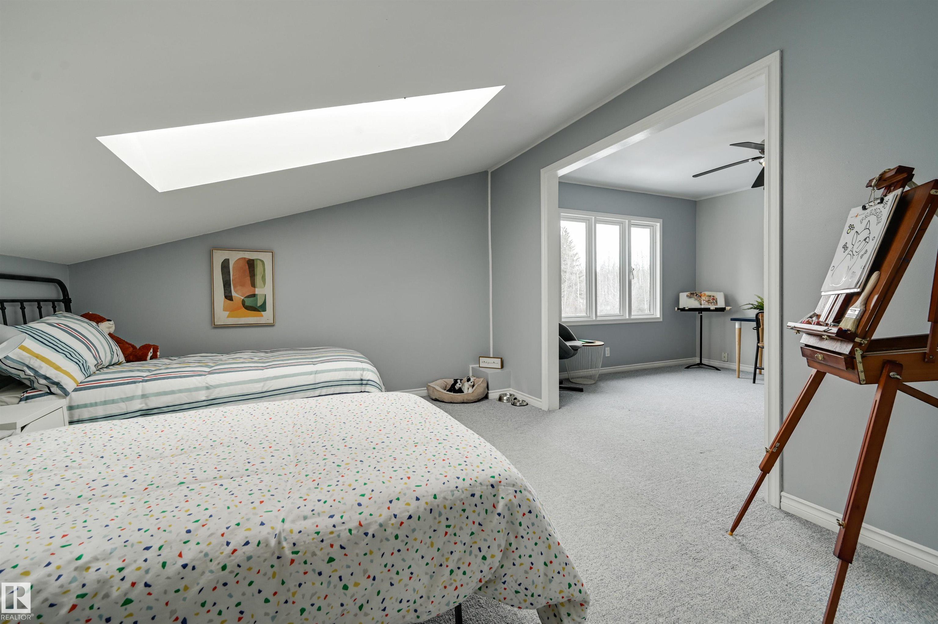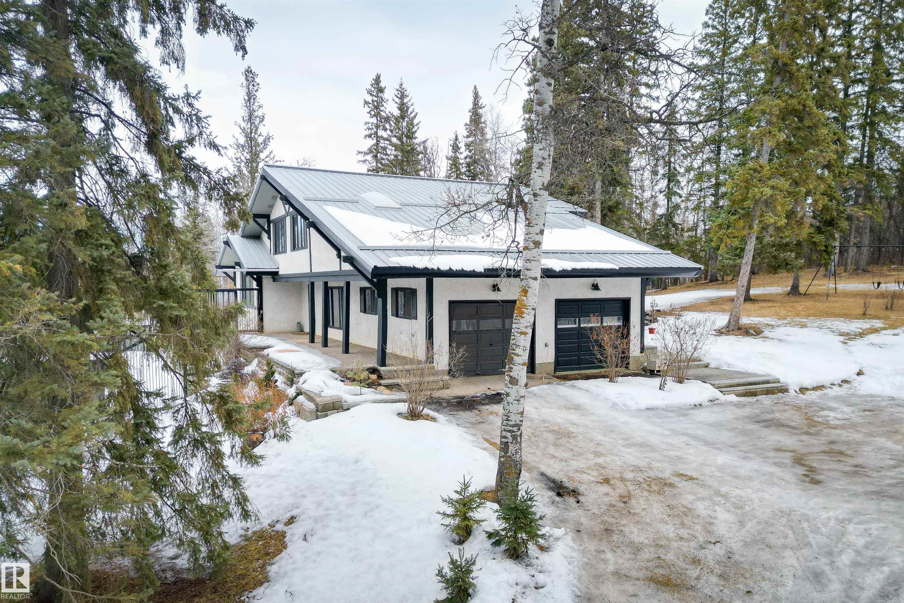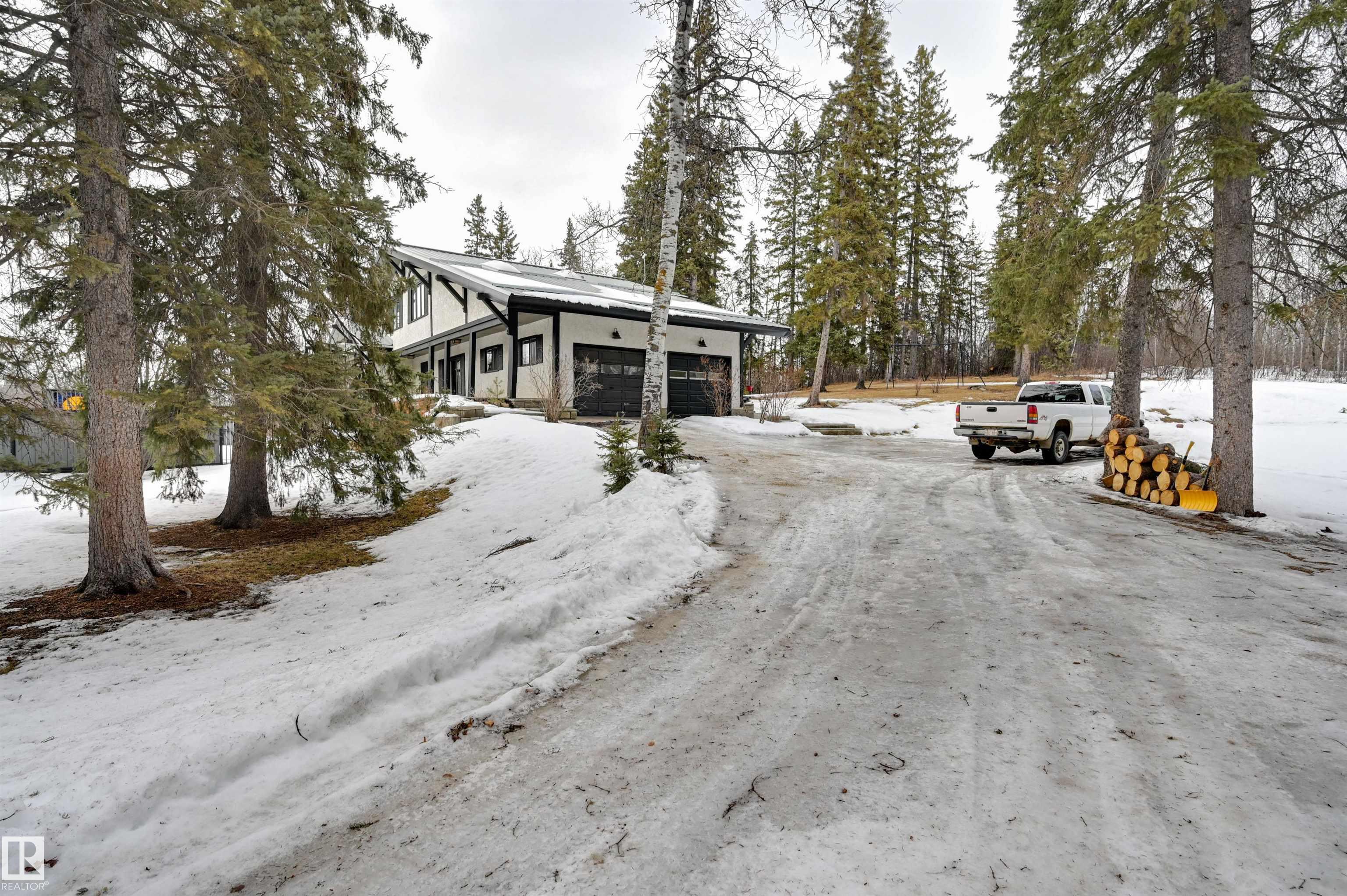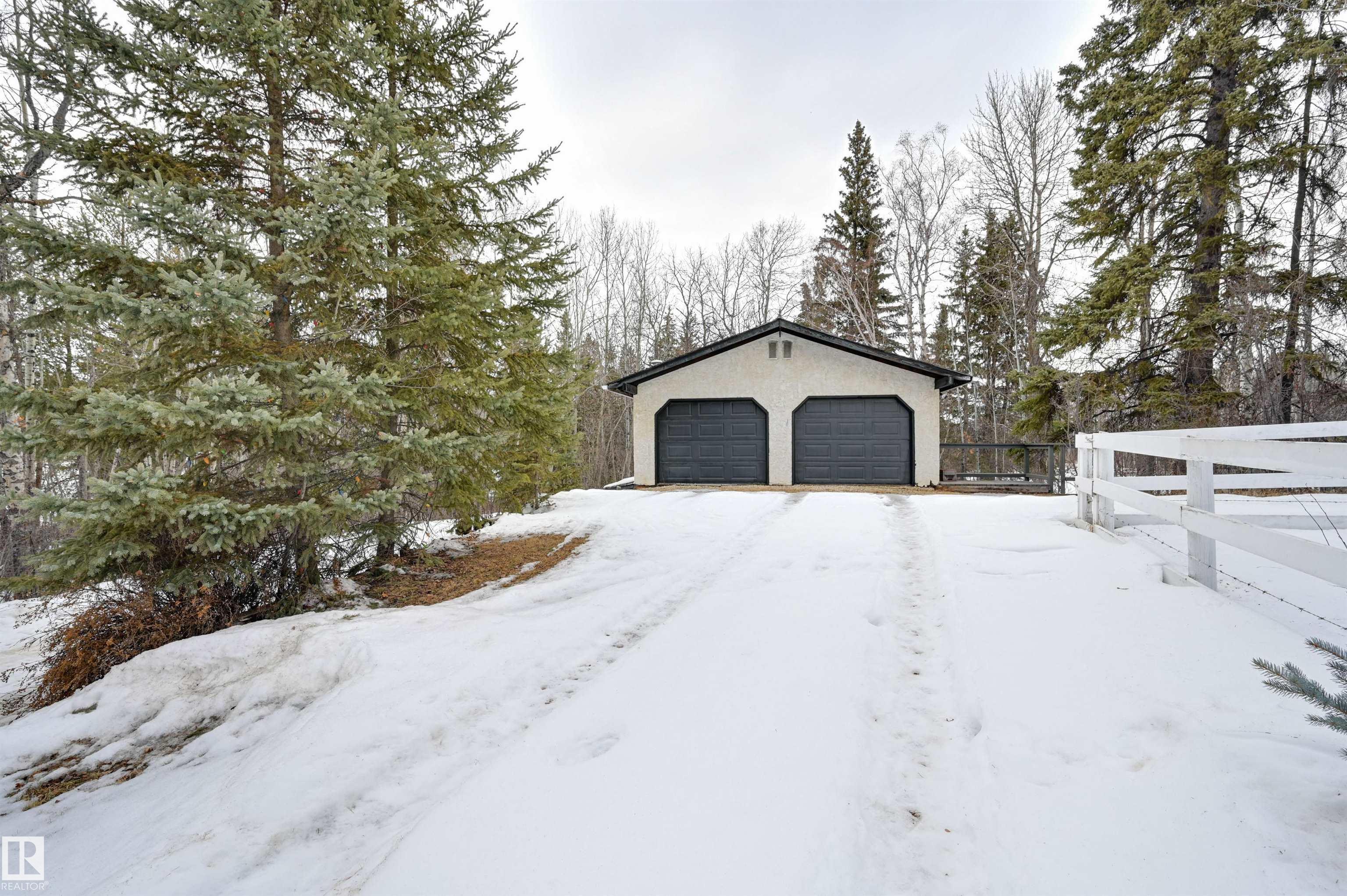 Welcome to Hennig Acres! This 3 bed + 3 bath home awaits. Situated on 9.25 acres, this beautiful home offers everything. Walk through your farmhouse-style front door + across the vinyl floor to your kitchen + dining area. Your open-concept kitchen offers plenty of cabinet, cupboard, + counter space for all your culinary needs. Enjoy breakfast with natural light pouring into your dining area. Cozy carpet takes you to your living room with a stunning stone mantle fireplace! Enjoy a flex space just above, where you can create a formal dining area that overlooks your property. Upstairs, you will find your primary bedroom, featuring French doors that open to your private ensuite. 2 additional bedrooms, a bathroom + gorgeous vaulted ceilings complete this level. Head downstairs to your theatre room, the perfect place for movie nights, or to your rec room! Your double detached garage keeps toys + vehicles secure. Rest assured with a tank + field septic system + drilled well. Country living meets modern comforts!